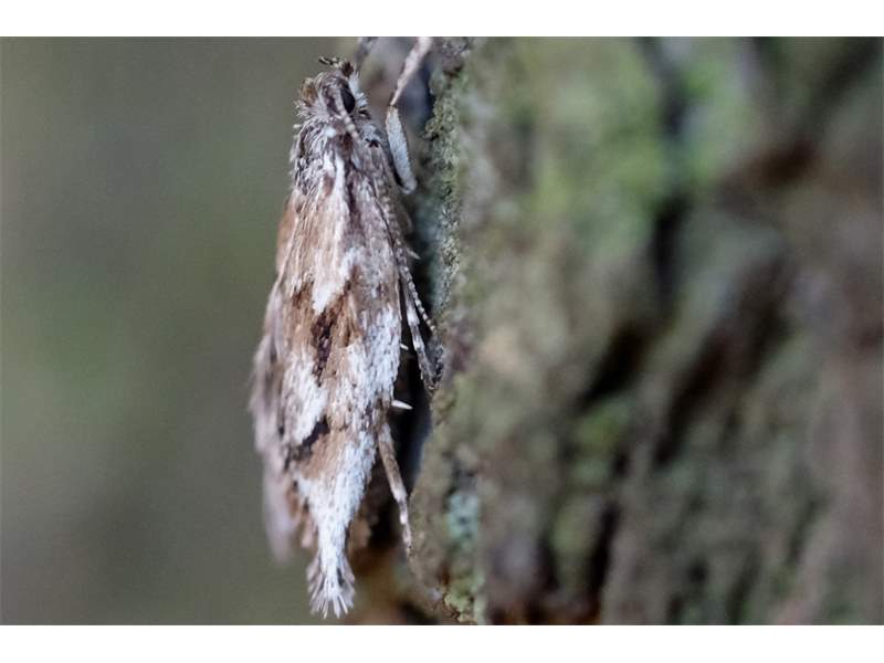 Herbstbuchenmotte (Diurnea lipsiella (Denis & Schiffermüller, 1775)), Chemnitz Zeisigwald-Planitzwiese, Nachts am angestrahlten Gebäude, 30.10.2018, Laboraufnahme (© Lutz Böttger)( Bild vergrößern)
