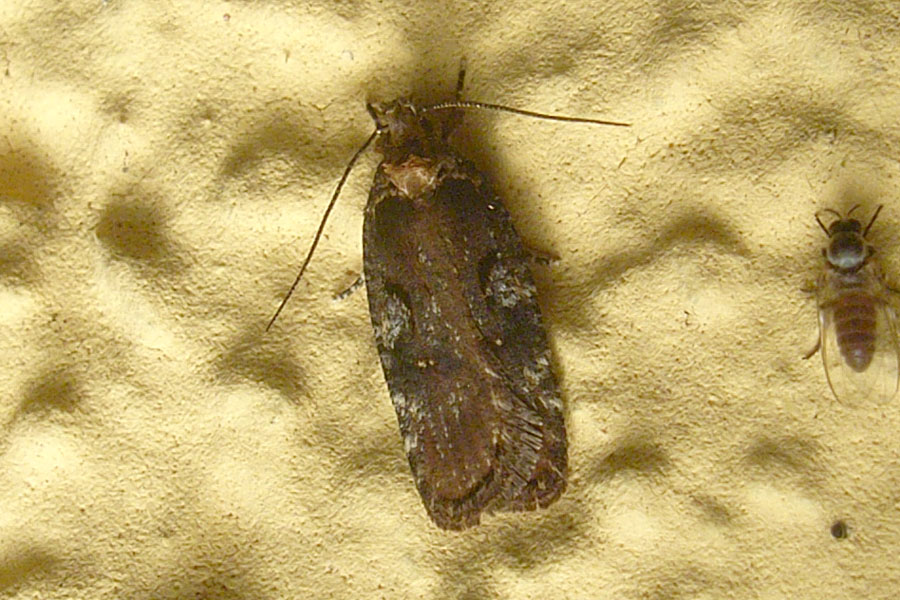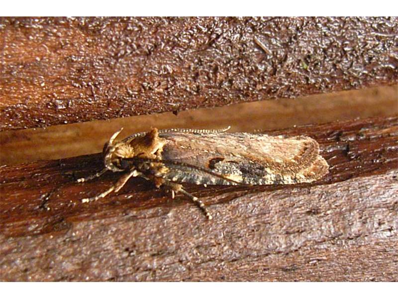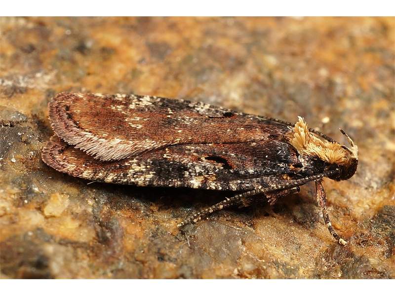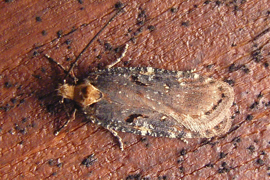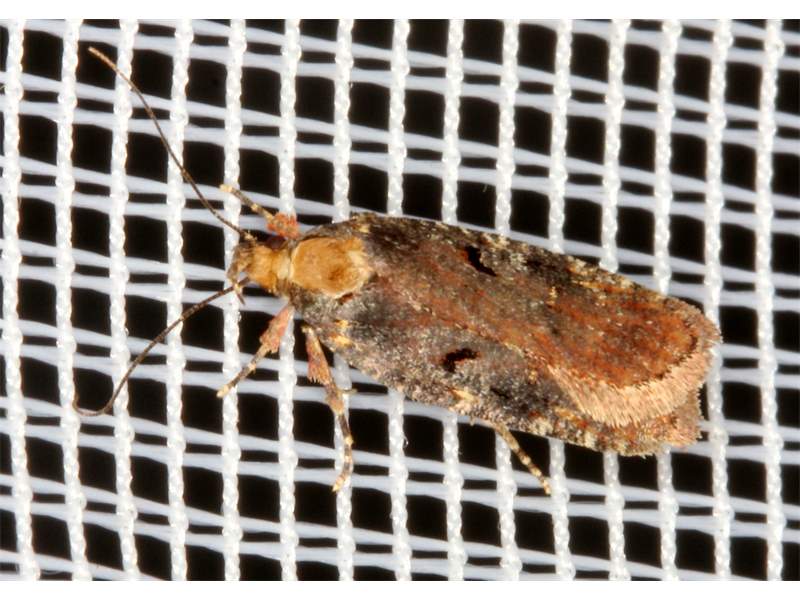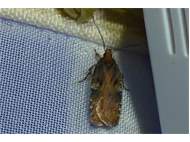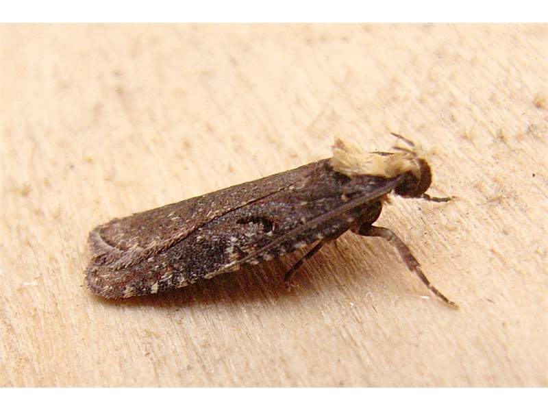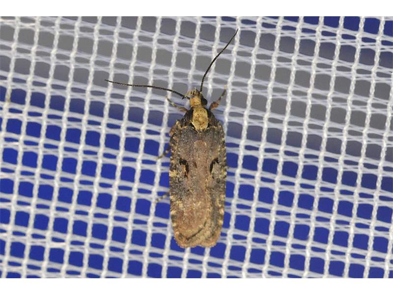 Beleg und Zuchtfalter von Agonopterix liturosa. Raupen Anfang Mai 2005 auf einer Ruderalflur bei Königsbrück in versponnenen Blättern von Johanniskraut eingetragen. Falter Anfang Juni 2005 geschlüpft.