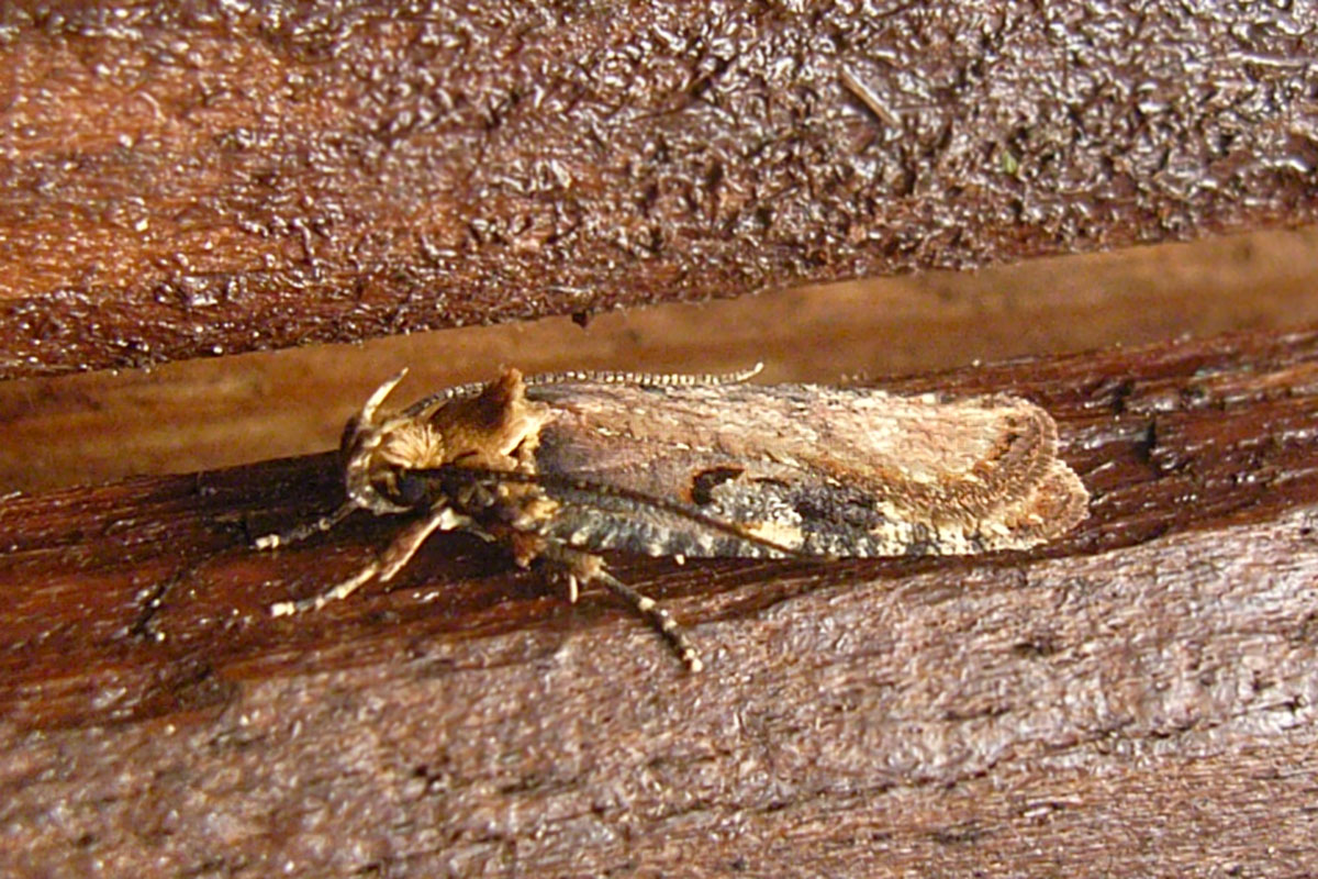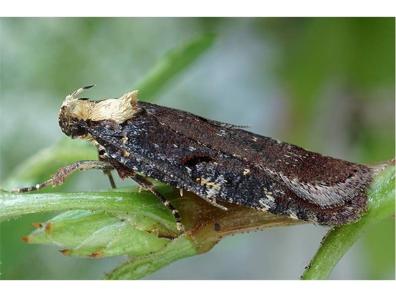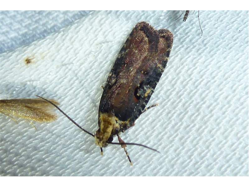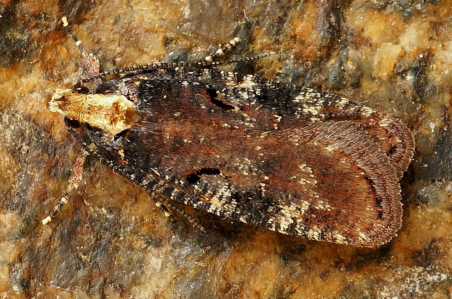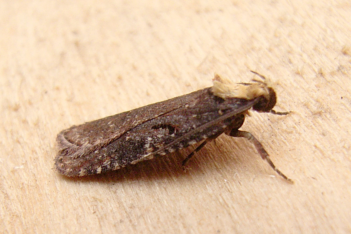Beleg und Zuchtfalter von Agonopterix liturosa. Raupen Anfang Mai 2005 auf einer Ruderalflur bei Königsbrück in versponnenen Blättern von Johanniskraut eingetragen. Falter Anfang Juni 2005 geschlüpft.