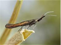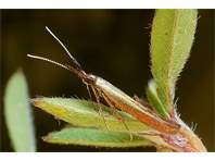 Die Larven wurden bislang nicht beobachtet. Falter wurden aus Trifolium pratense (Stübner & Nuss 2003) und T. arvense (Graf) gekeschert.