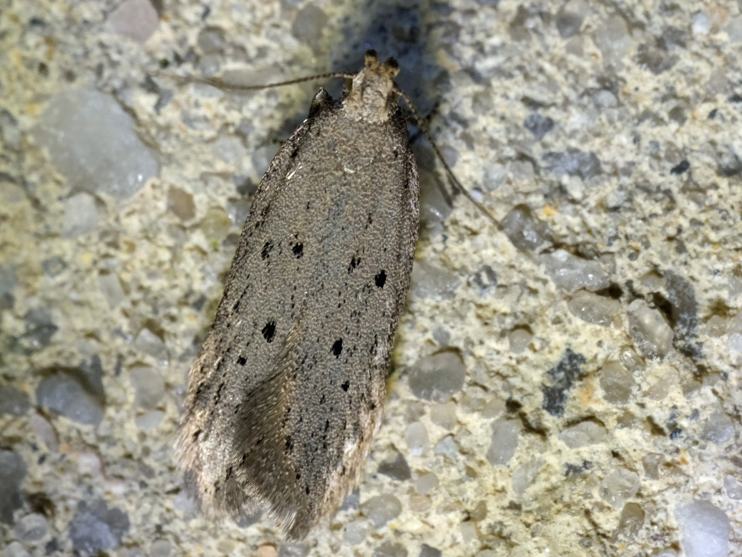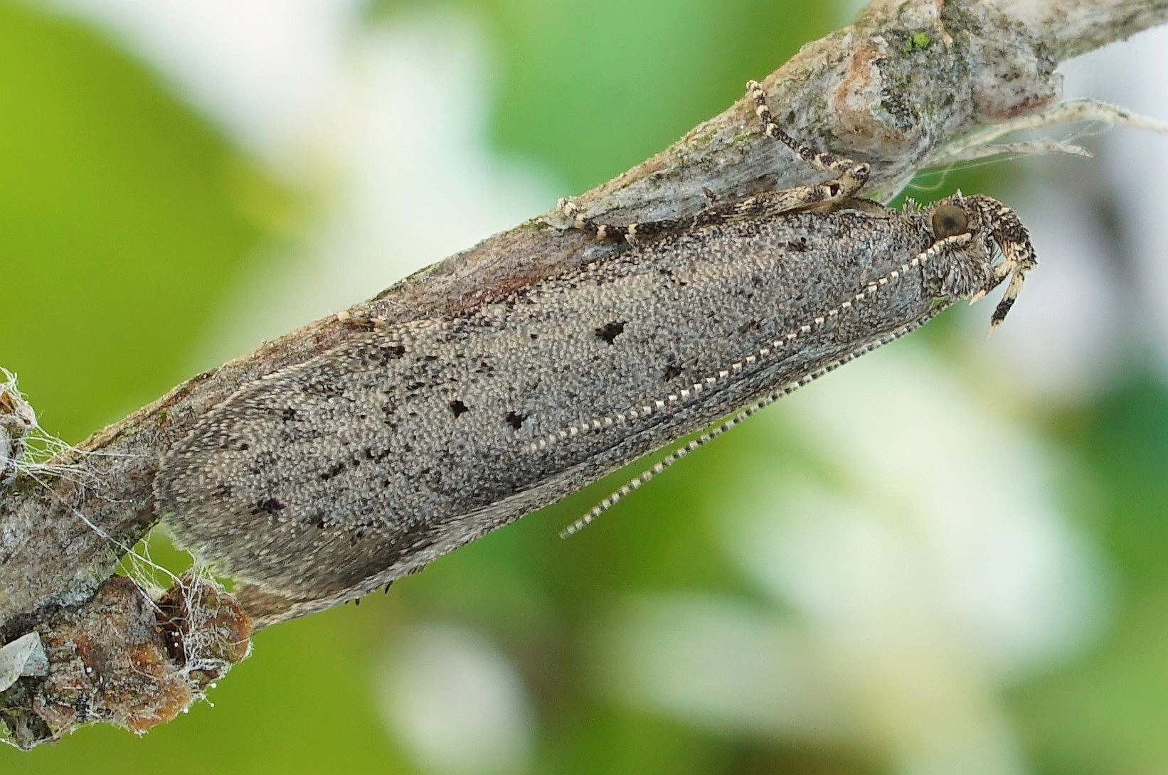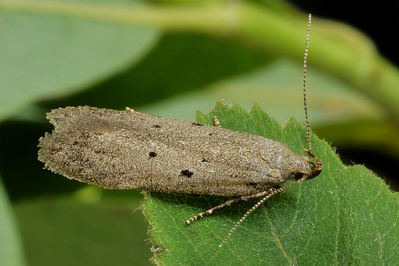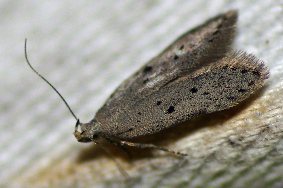 Zuchtfalter von Athrips mouffetella. Erhalten aus im April 2002 bei Lohsa, von Lonicera tatarica, eingetragenen Raupen. Falter am 11. Mai 2002 geschlüpft