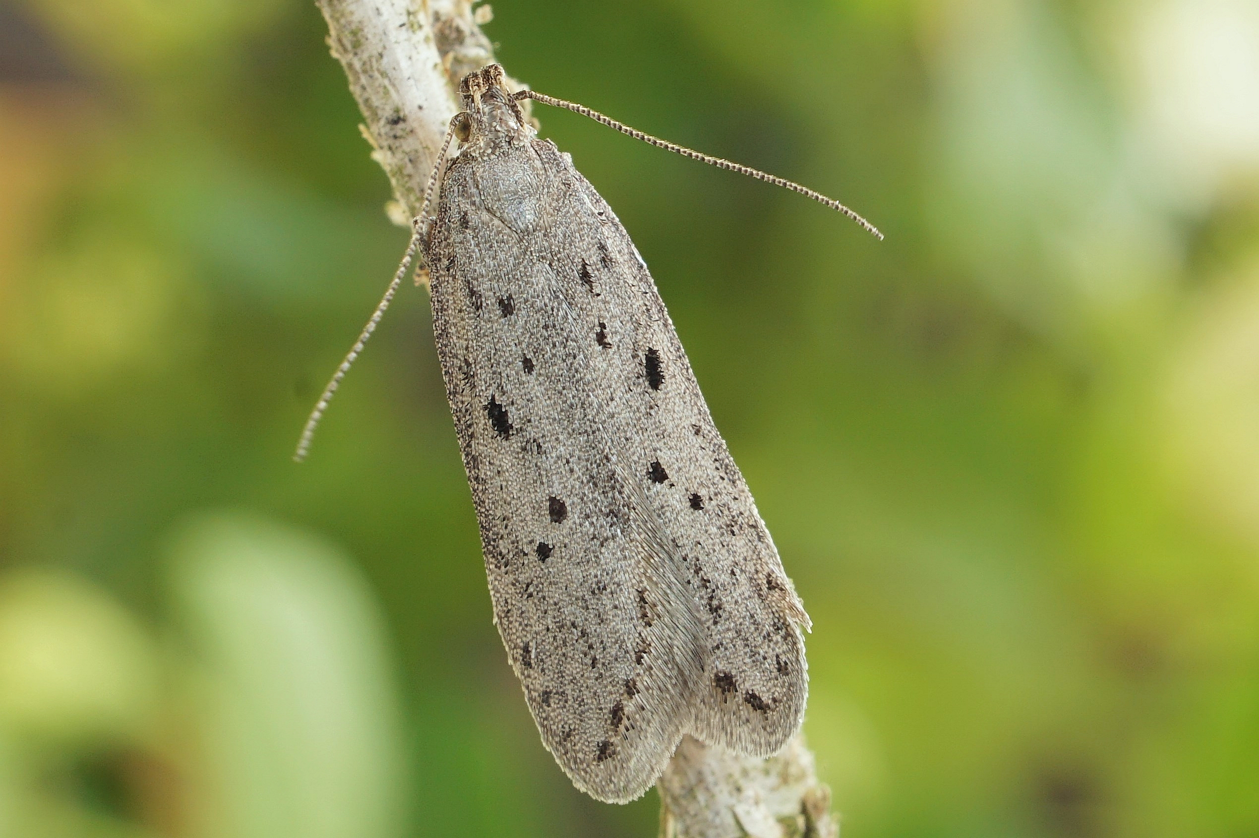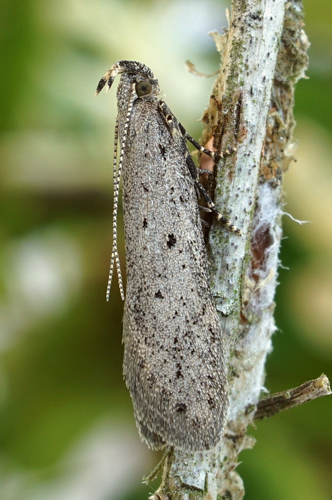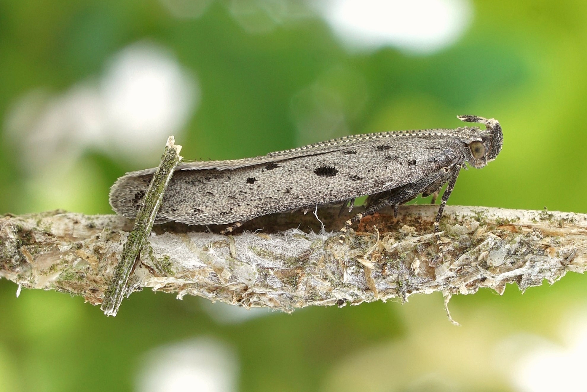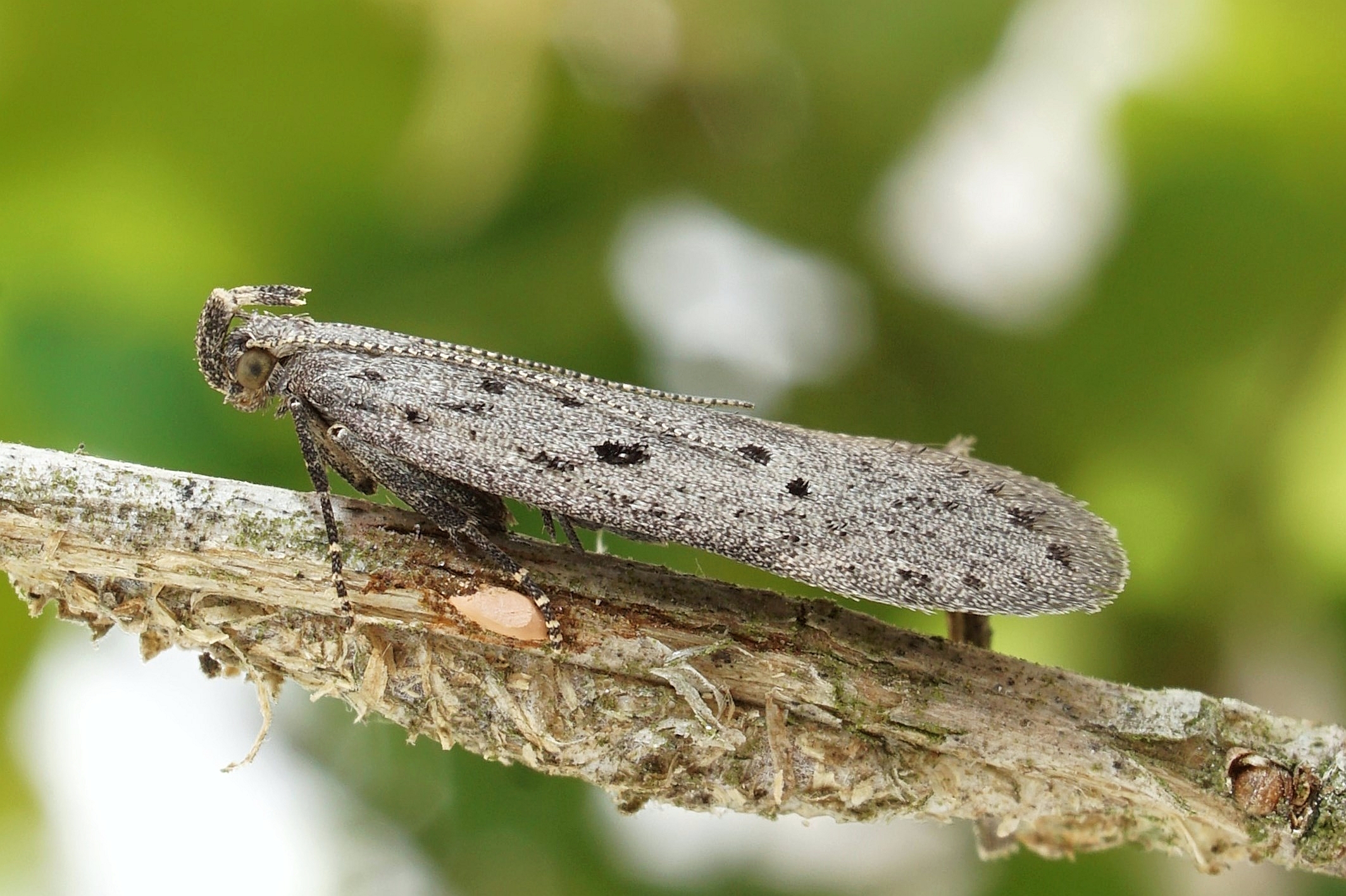 Zuchtfalter von Athrips mouffetella. Erhalten aus im April 2002 bei Lohsa, von Lonicera tatarica, eingetragenen Raupen. Falter am 11. Mai 2002 geschlüpft (© Friedmar Graf)( Bild vergrößern)