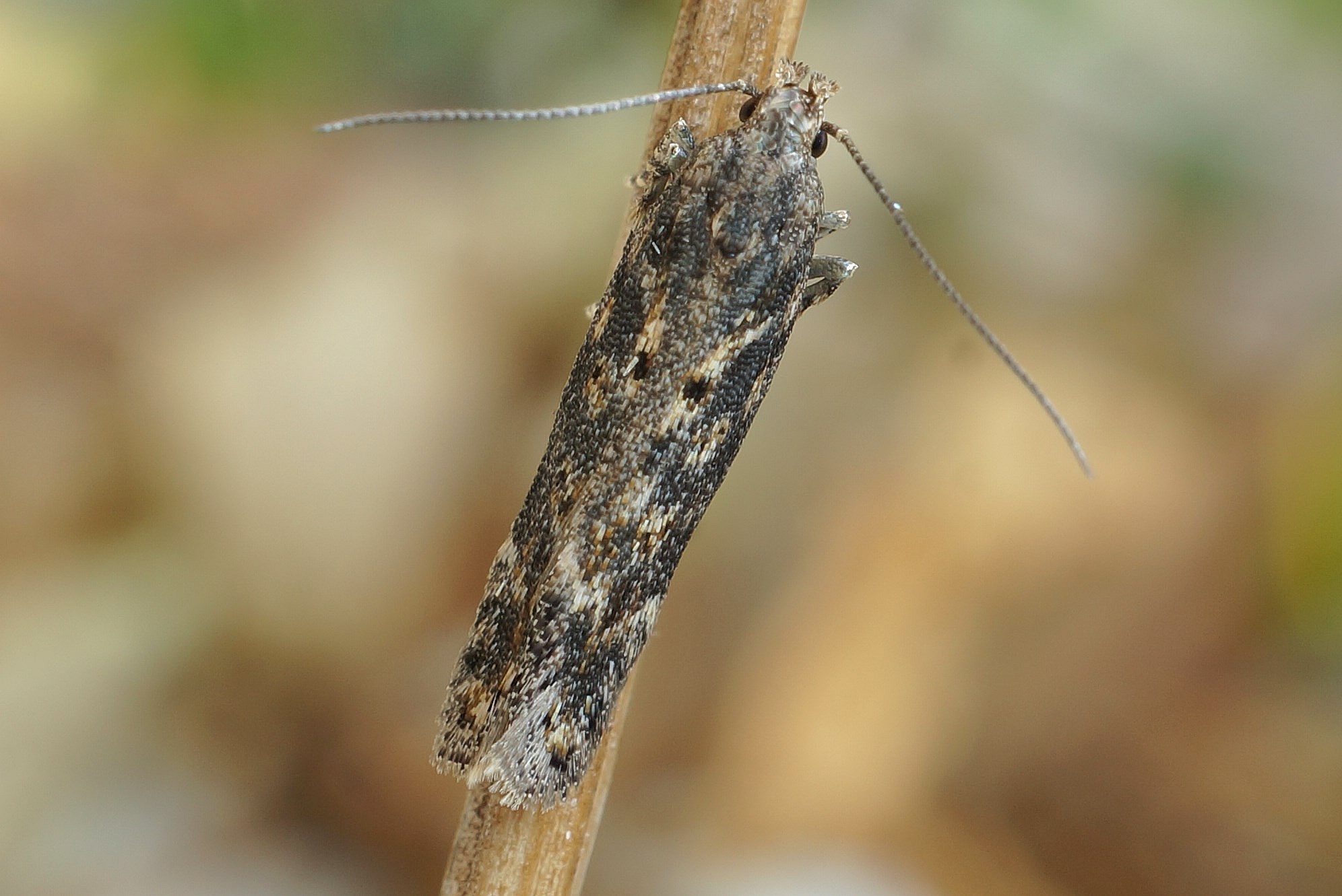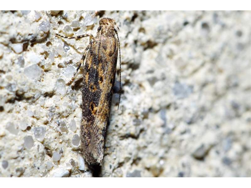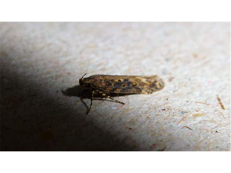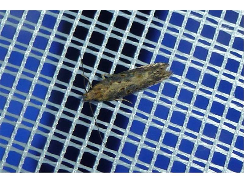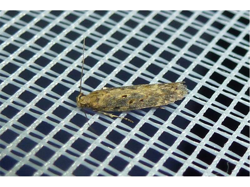 Scrobipalpa ocellatella, die Rübenmotte, am 17. September auf einer Agrar Brache am Waldrand in der Umgebung von Ober-Prauske am Licht (© Friedmar Graf)( Bild vergrößern)