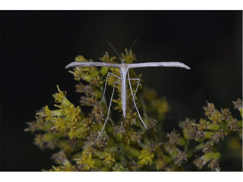 Emmelina monodactyla in der Gemarkung Hohenprießnitz, Kahns Berg, an Goldrute (Solidago), Oktober 2014