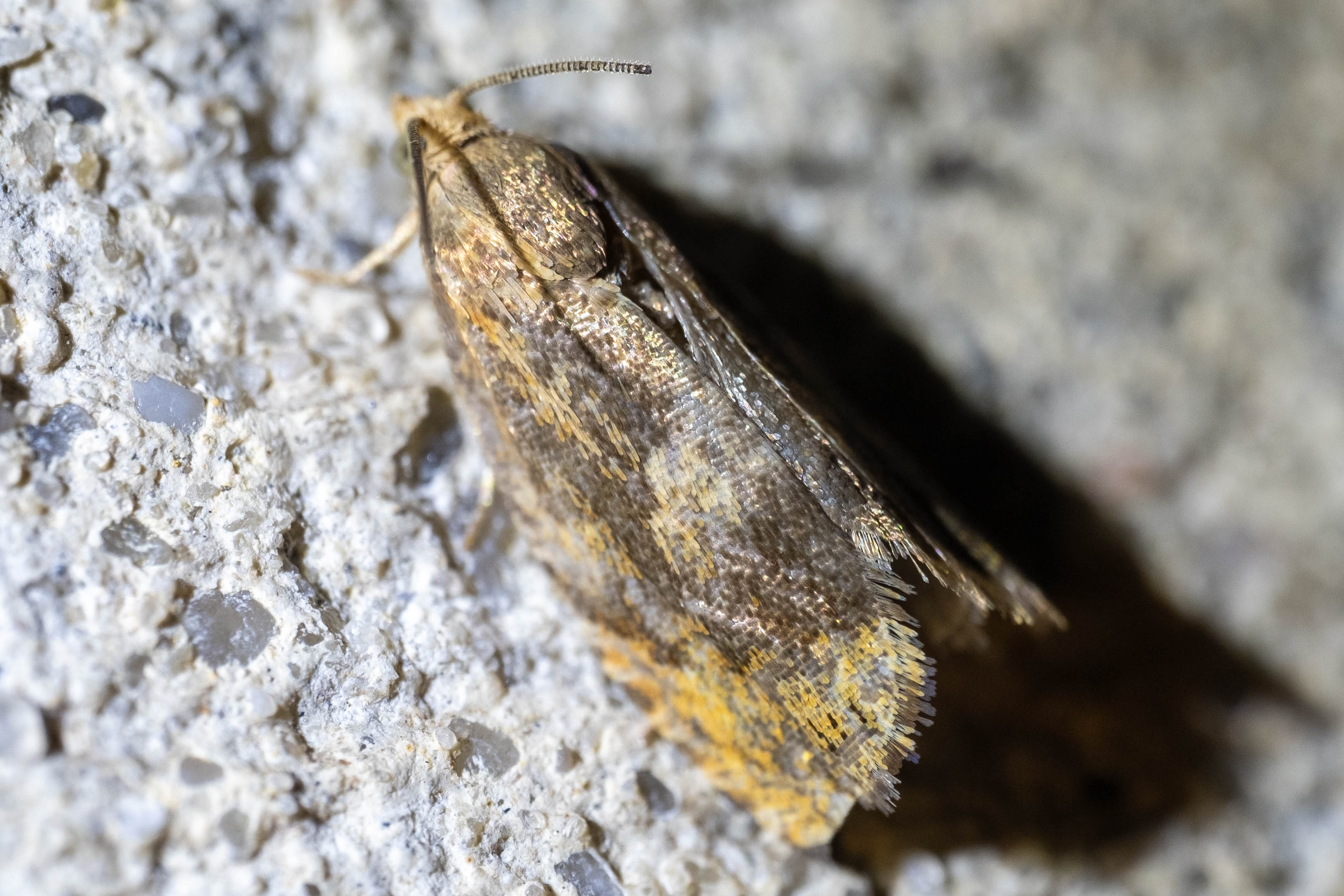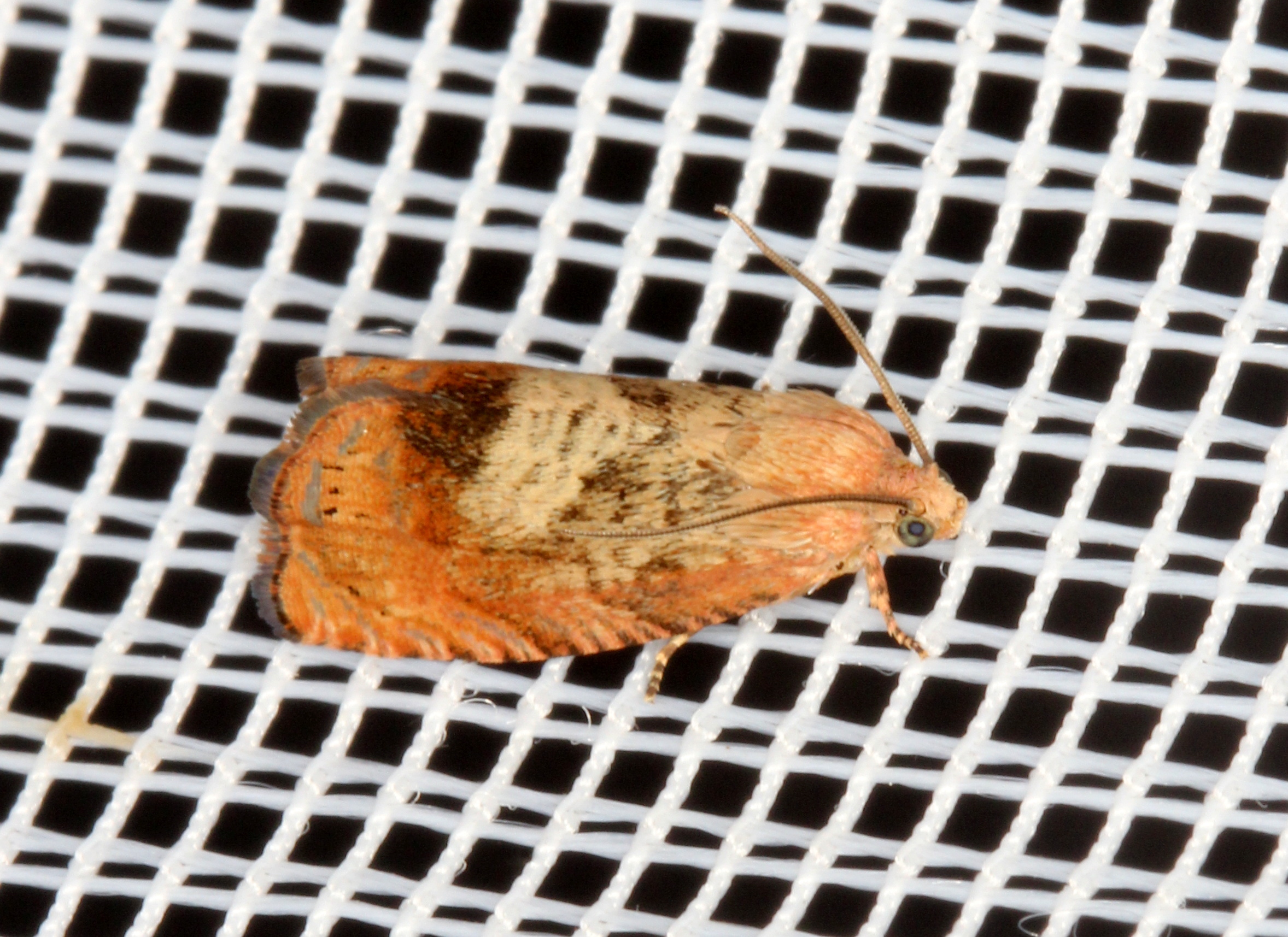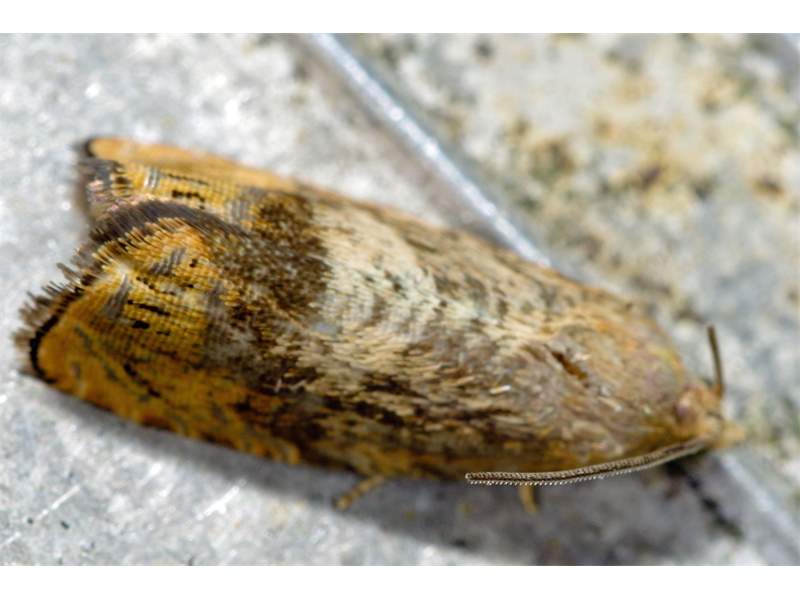 Kastanienwickler (Cydia amplana (Hübner, 1800)) Park Bischheim im Haselbachtal, Lichtfang am 25.07.2019