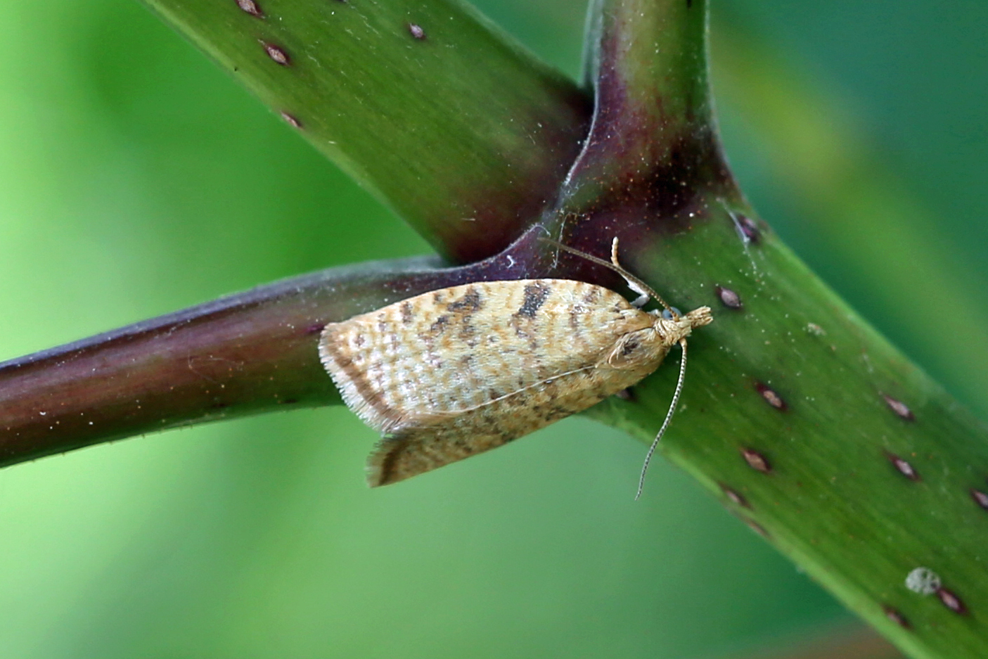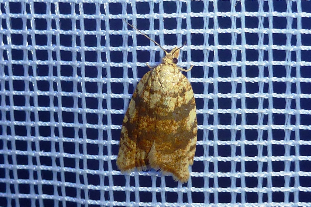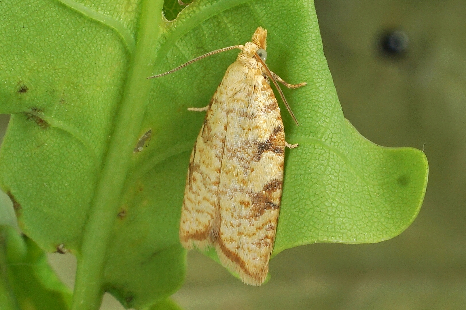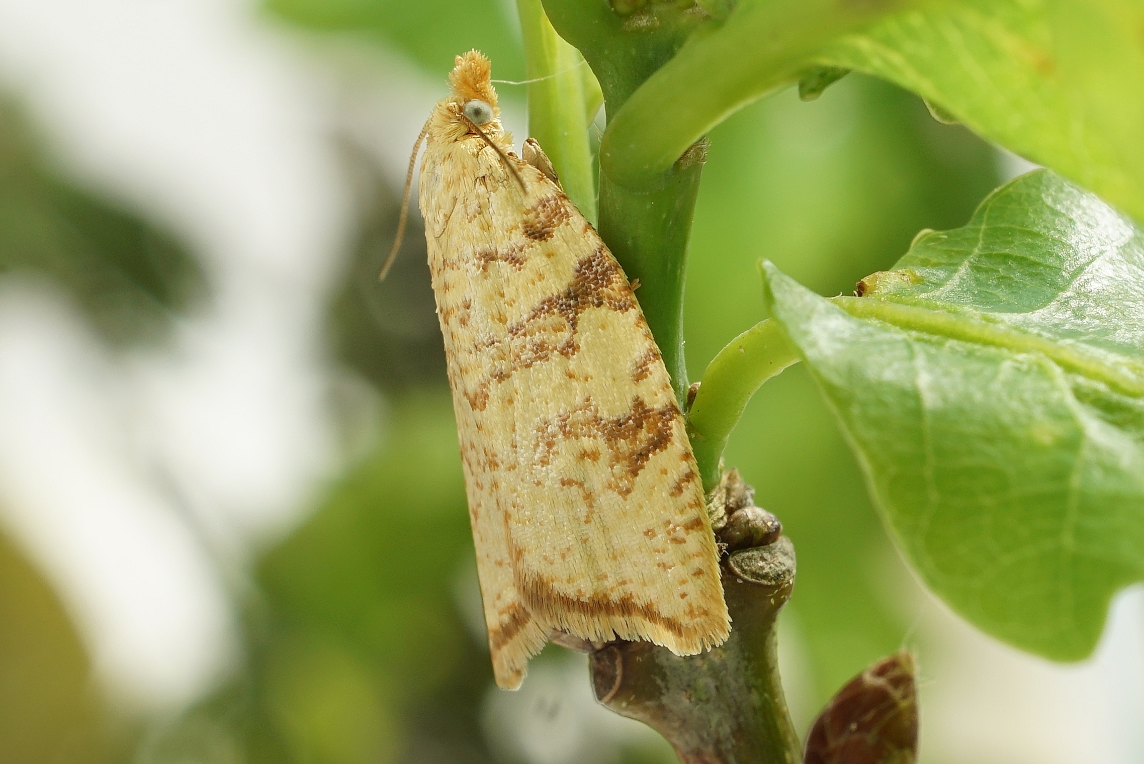 Aleimma loeflingiana (Linnaeus, 1758), Larven Anfang April 2019 aus der Umgebung von Gröditz unbewusst mit mit Echenzweigen eingetragen. Weiterzuch bei Zimmertemperatur bis zum Falter, e.l. 3. Mai 2019 (© Friedmar Graf)( Bild vergrößern)