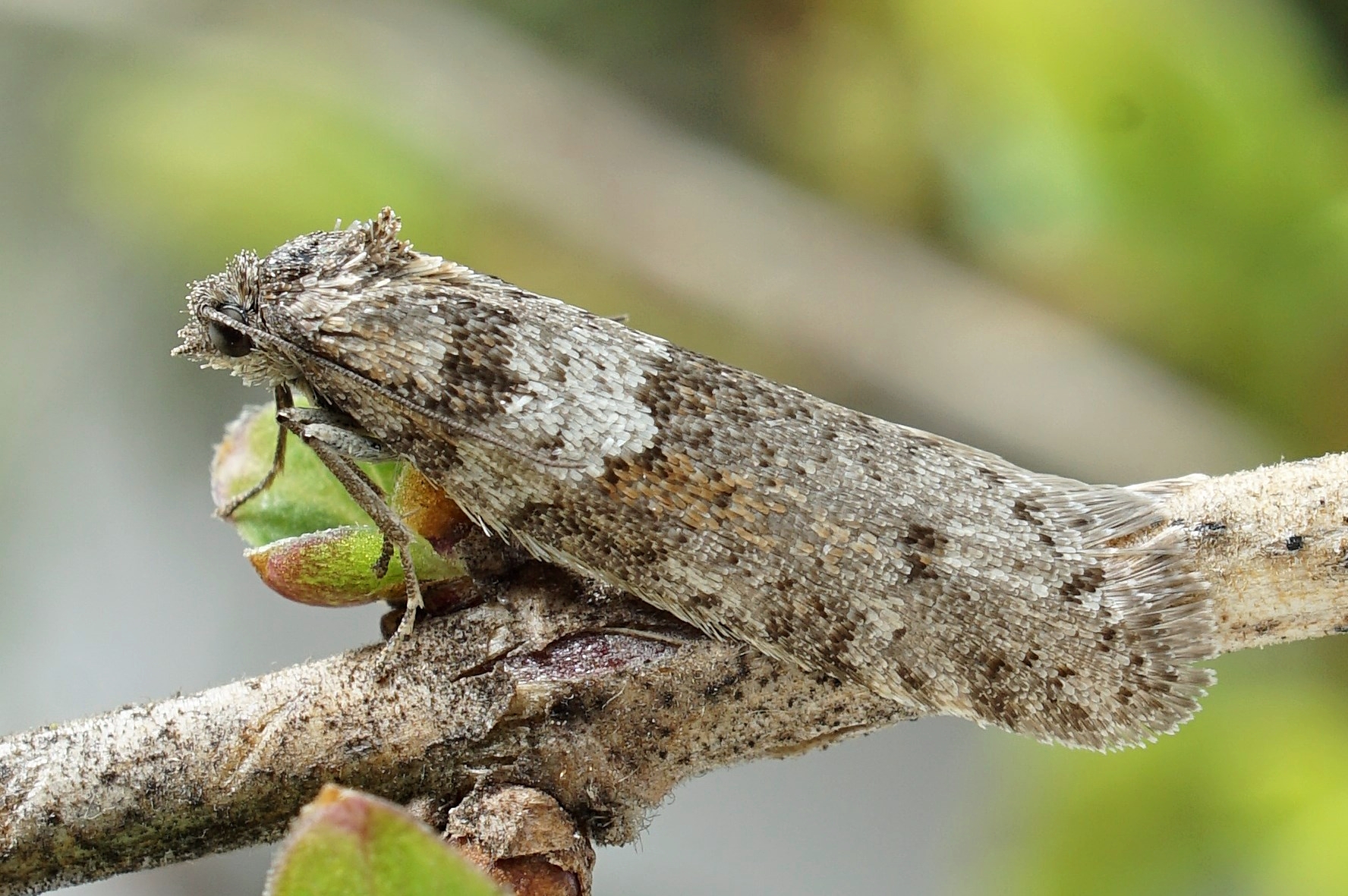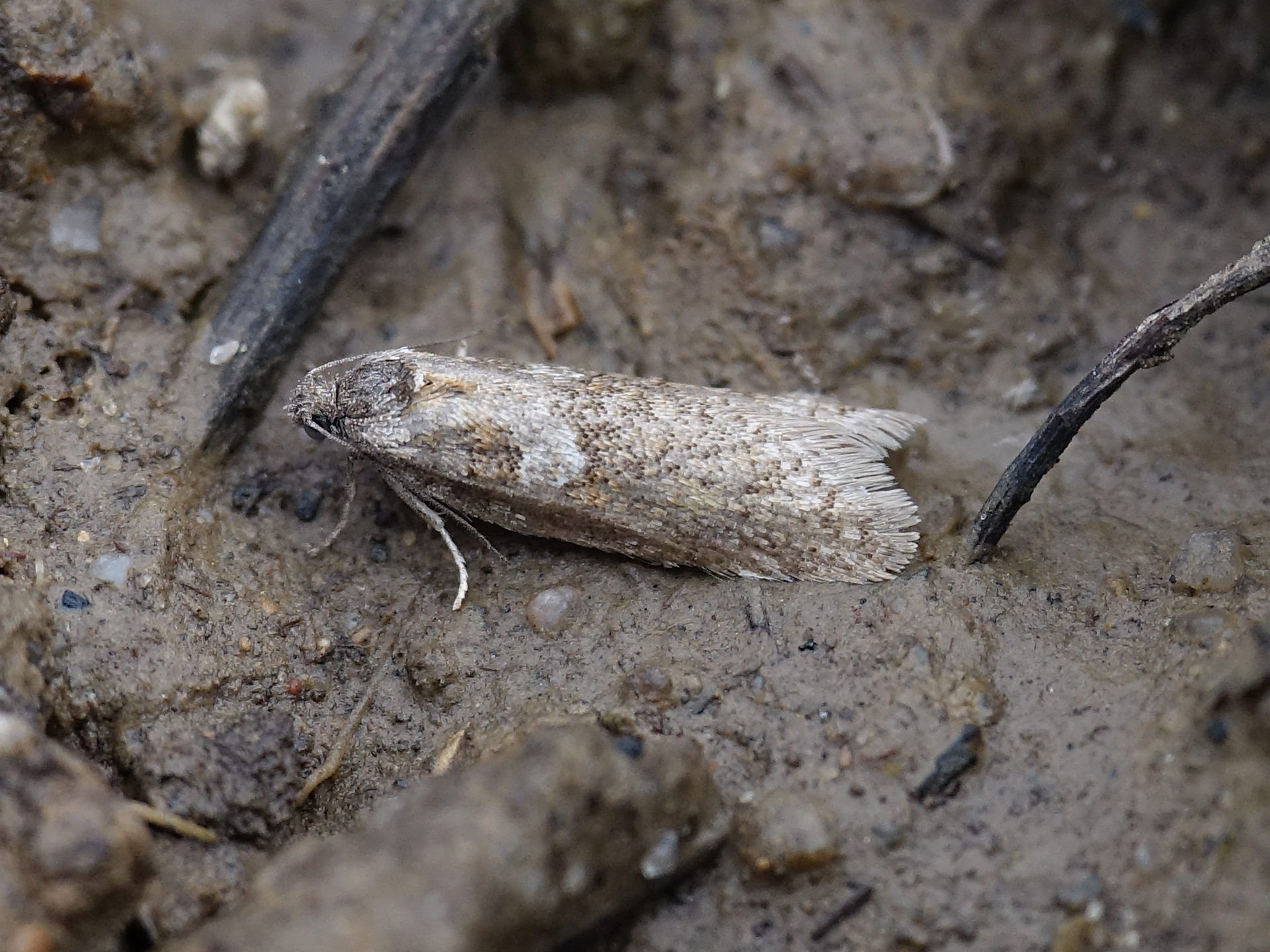 Tortricodes alternella, Wickler o.dt.N., Tribus Cnephasiini, lichter Birken-Mischwald, Falterlänge ca. 12-13mm, Chemnitz Zeisigwald Stadtrand zu Euba, 30.März 2018