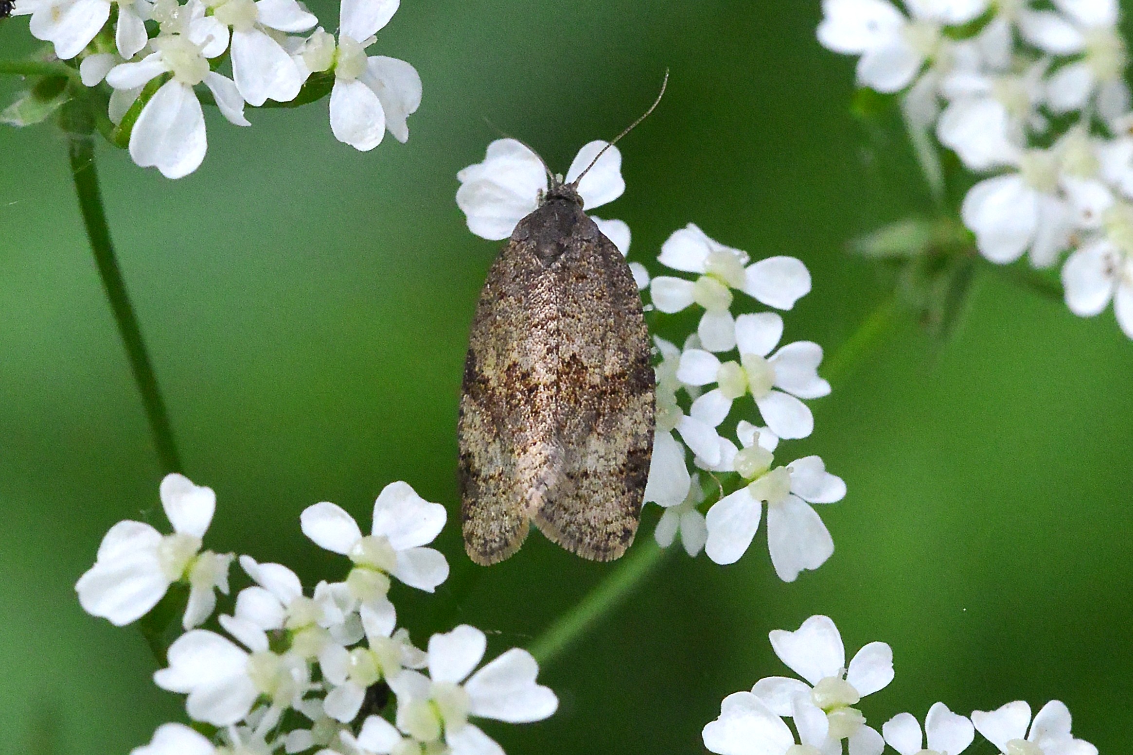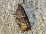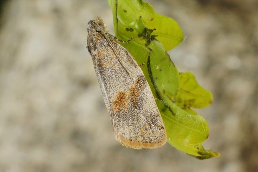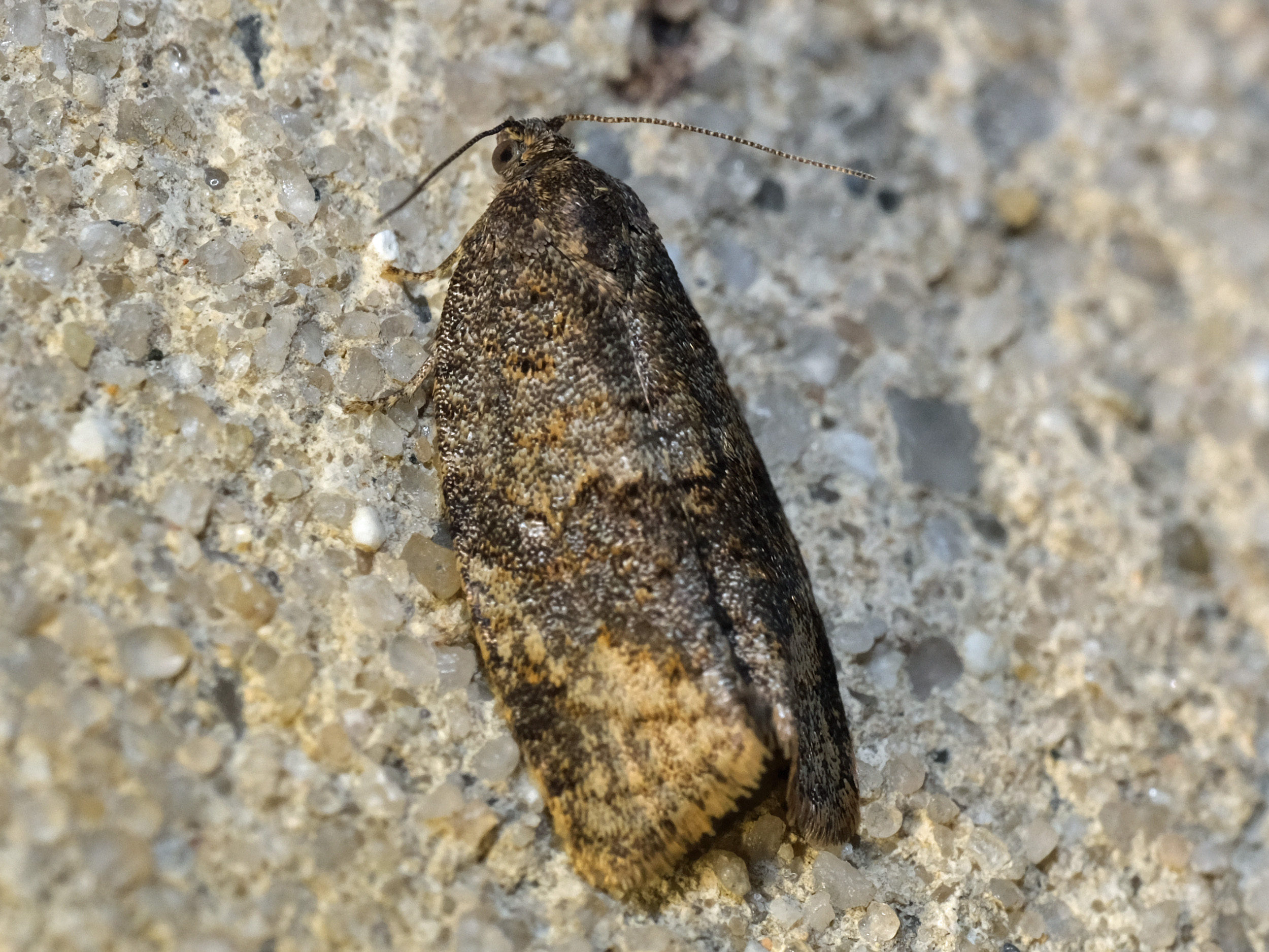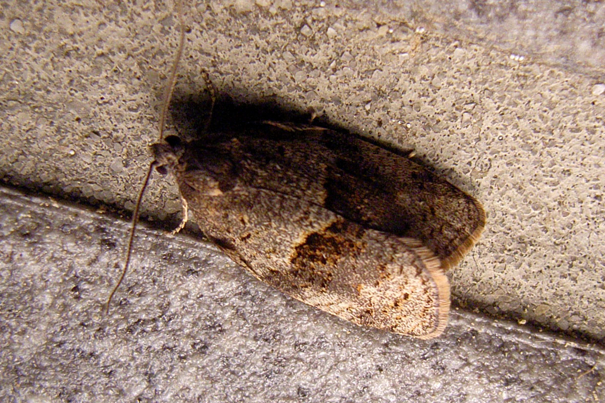 Syndemis musculana, Südlicher Waldrand (vord. Zeisigwald) am hellen, nachts angeleuchteter Gebäudewand, Fund: Mittags,