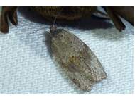 Syndemis musculana, Südlicher Waldrand (vord. Zeisigwald) am hellen, nachts angeleuchteter Gebäudewand, Fund: Mittags, (© Lutz Böttger)( Bild vergrößern)