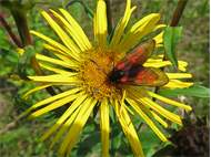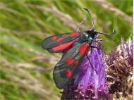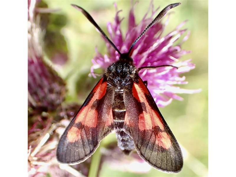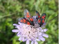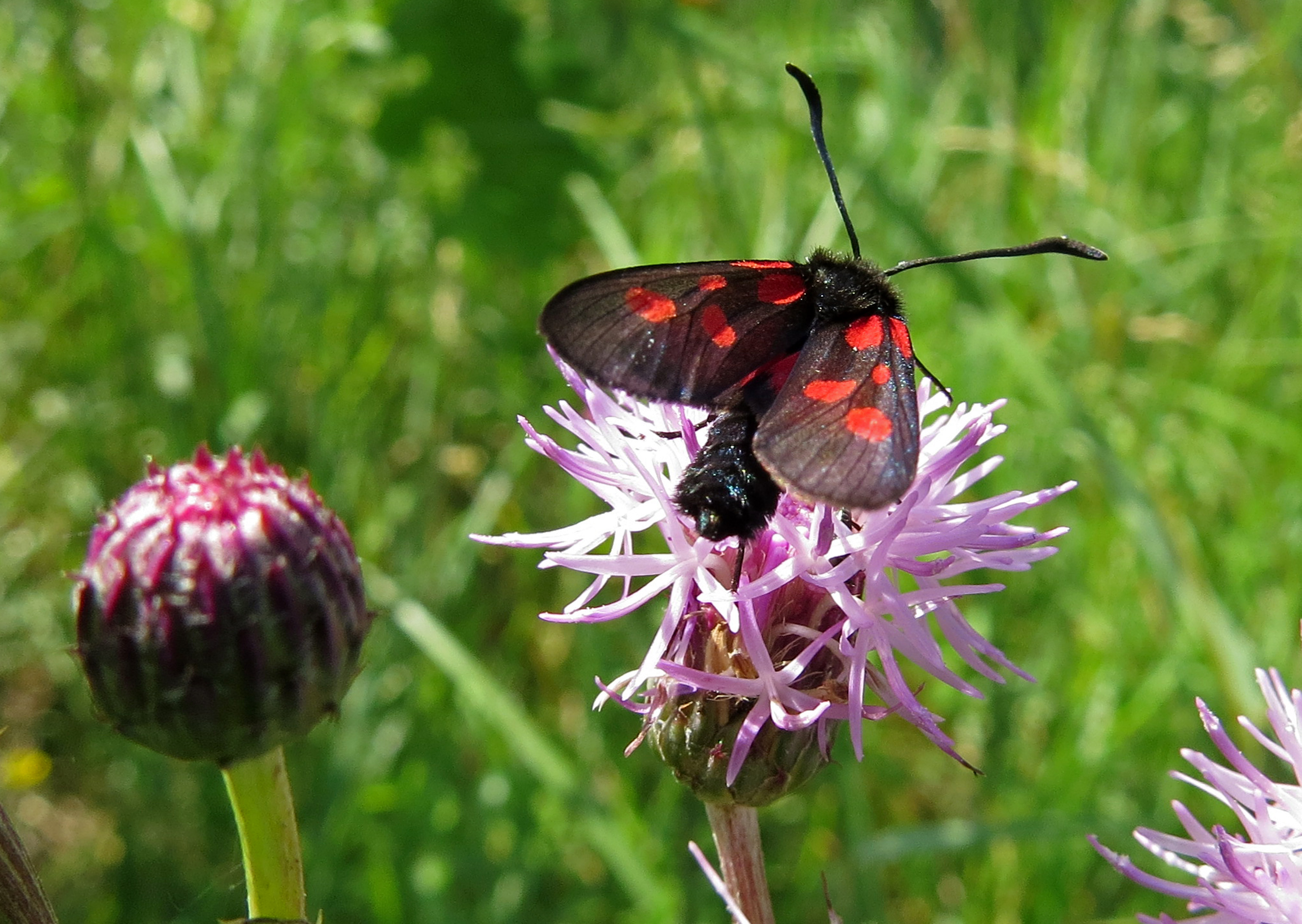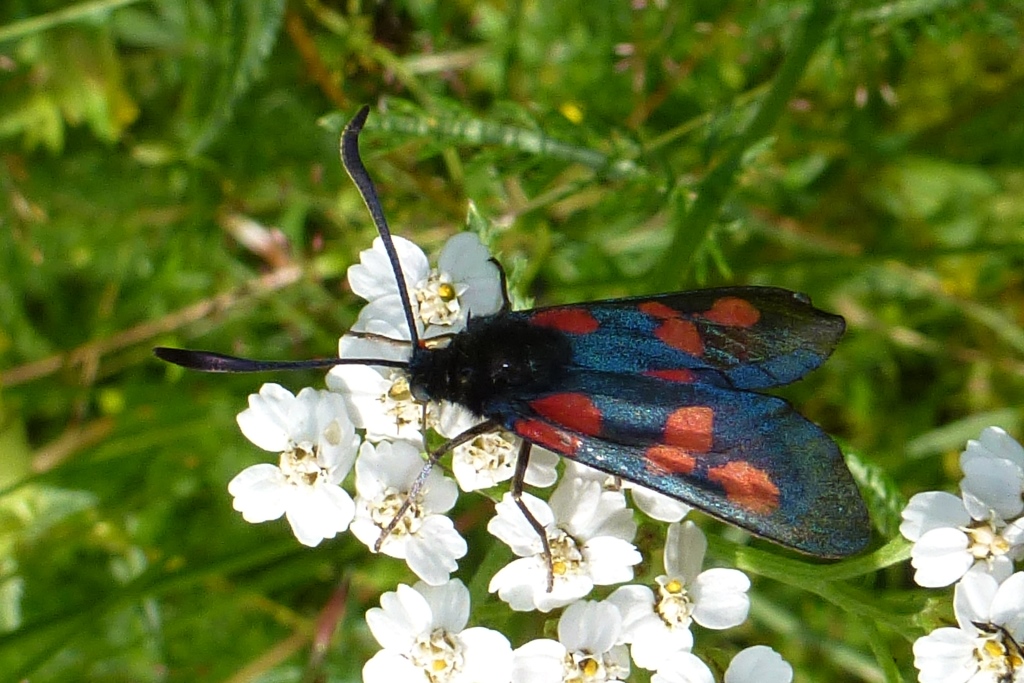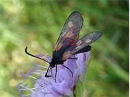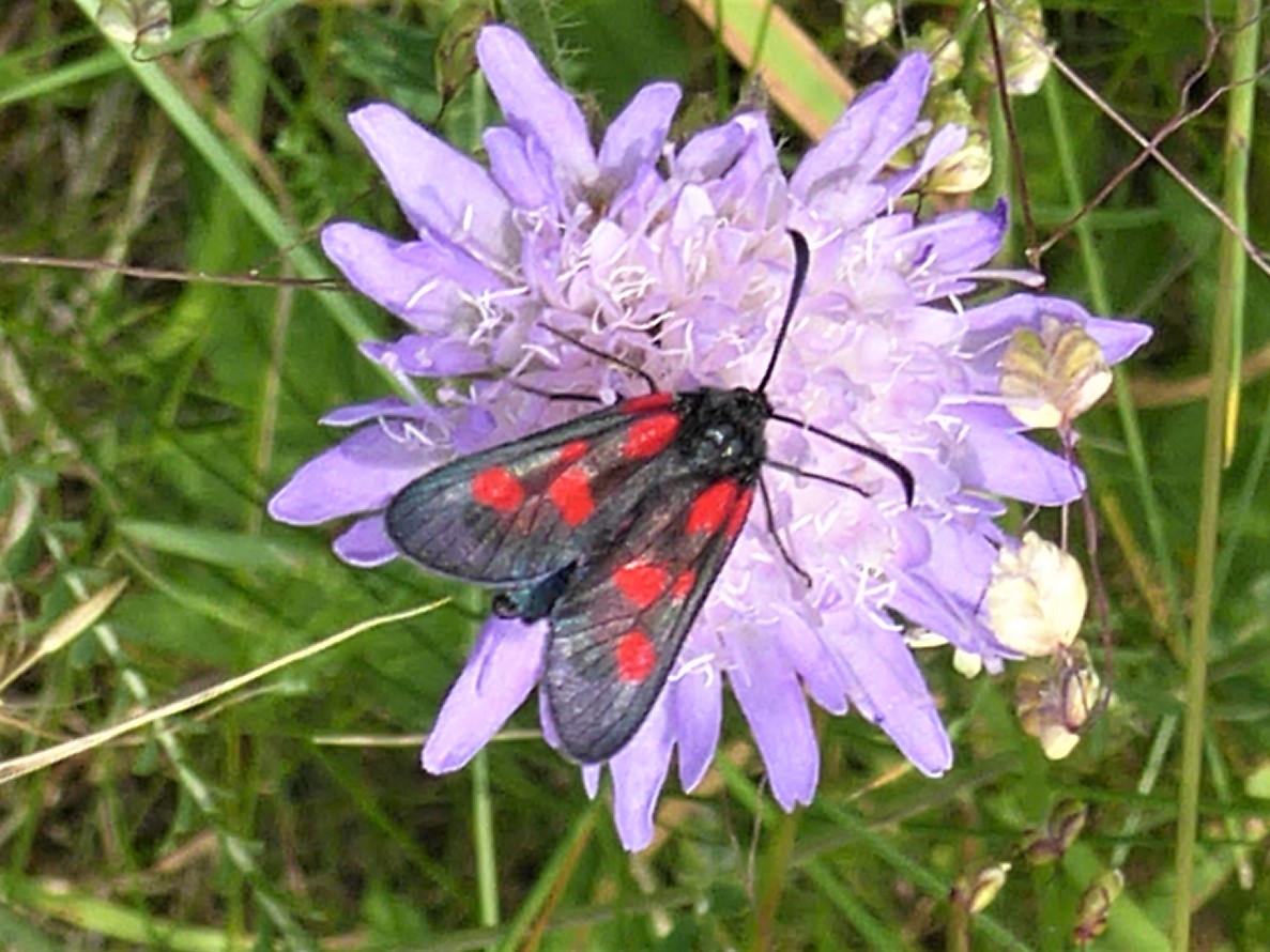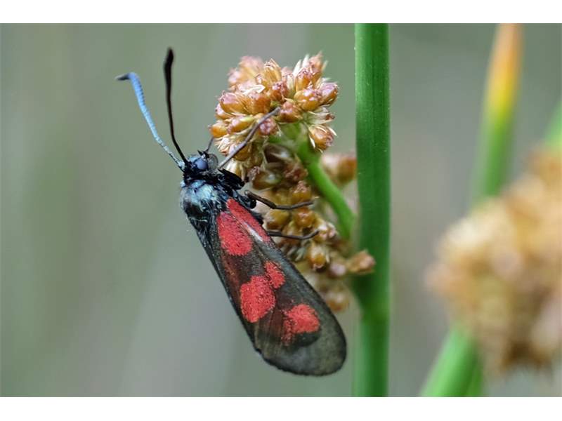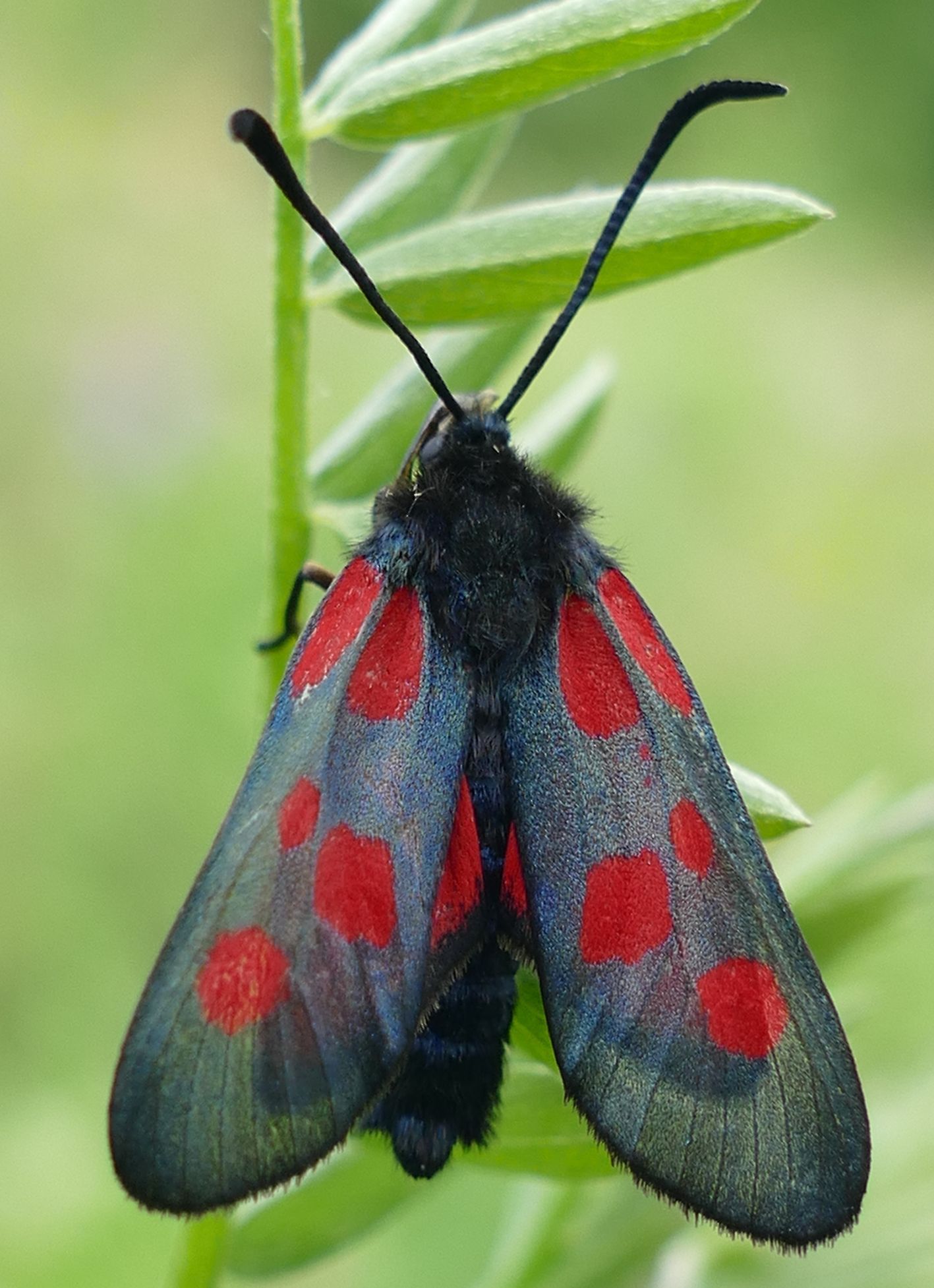 Kleines Fünffleckwidderchen (Zygaena viciae (Denis & Schiffermüller, 1775)),es wurden im Ödlandbereich mehrere Tiere beobachtet, Zwickau, Juni 2018 (© Bernhard Karich)( Bild vergrößern)