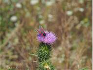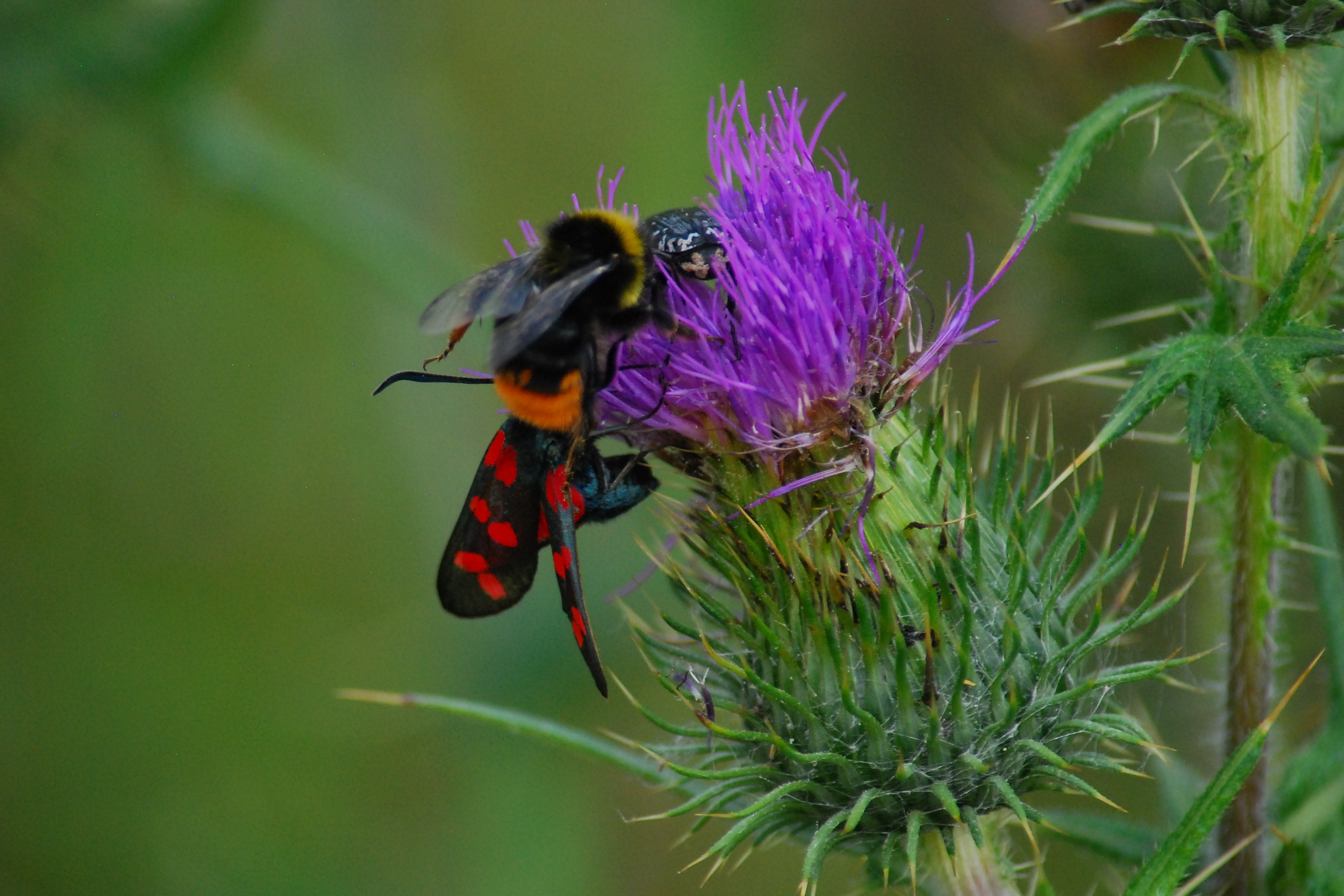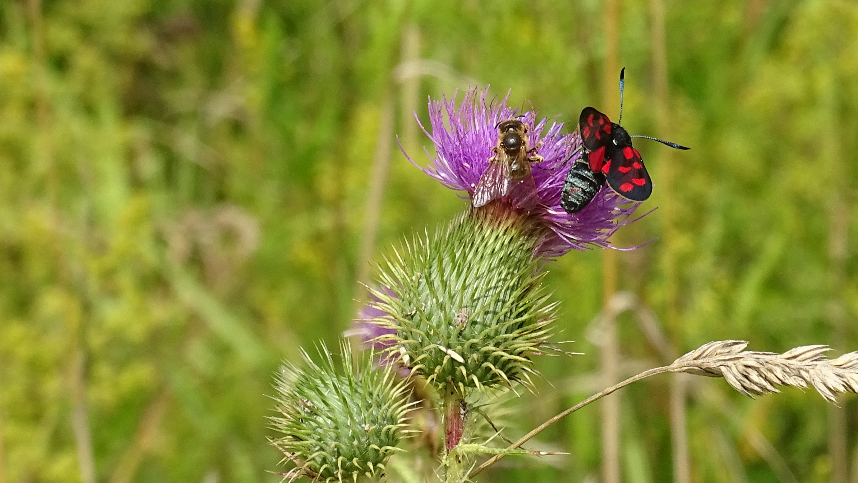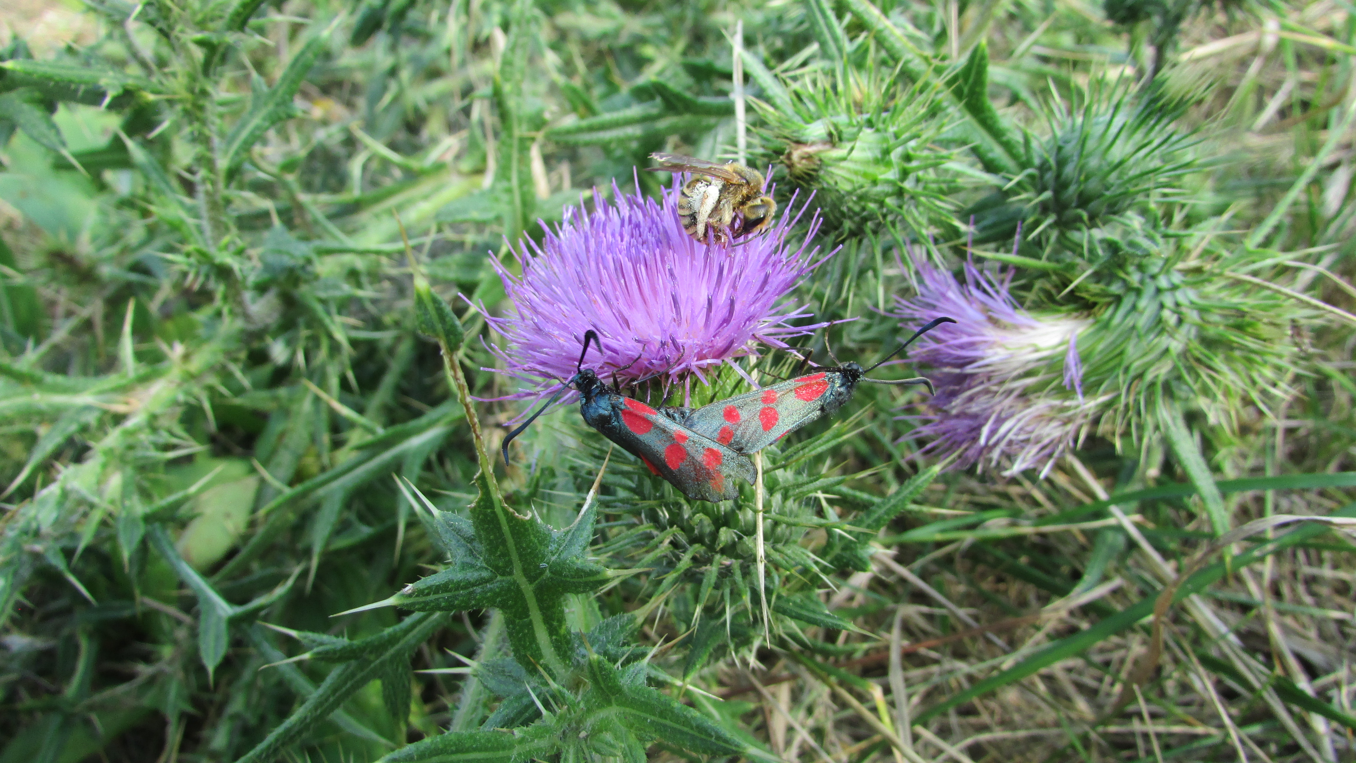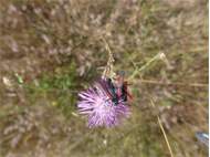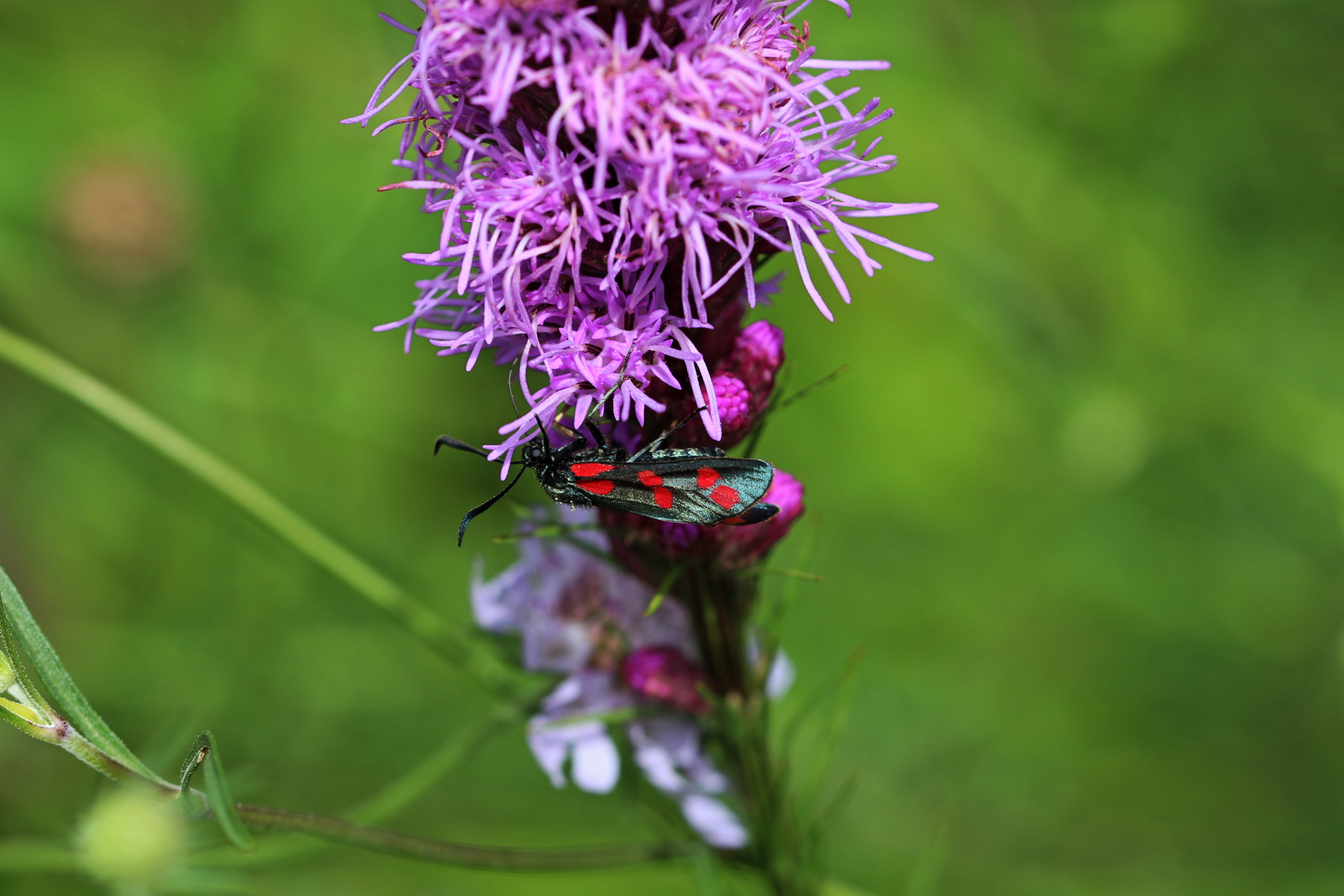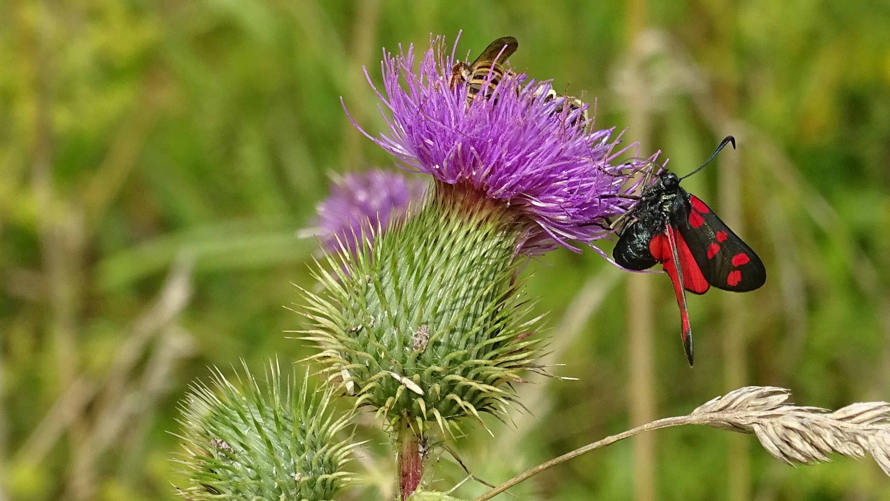 Sechsfleck-Widderchen (Zygaena filipendulae (Linnaeus, 1758)),Freital/Wurgwitz,Hammerteich,Wegrand auf Kratzdistel,Aug.2019