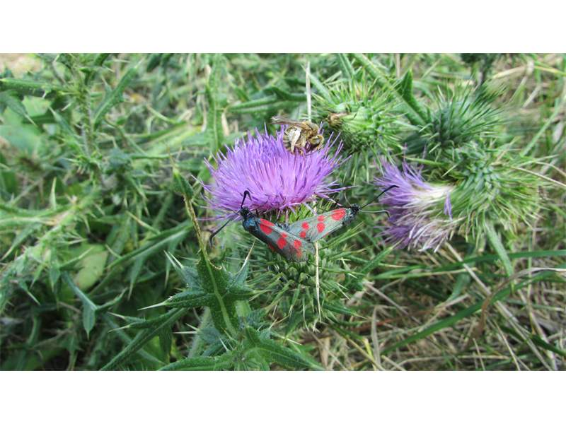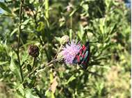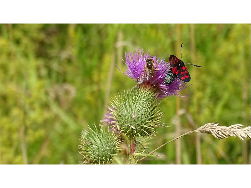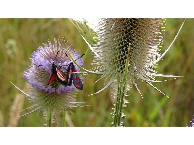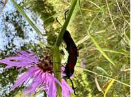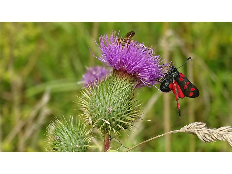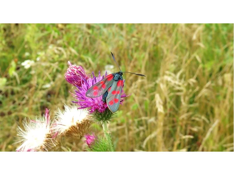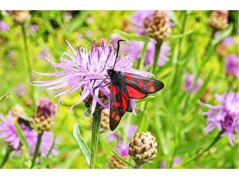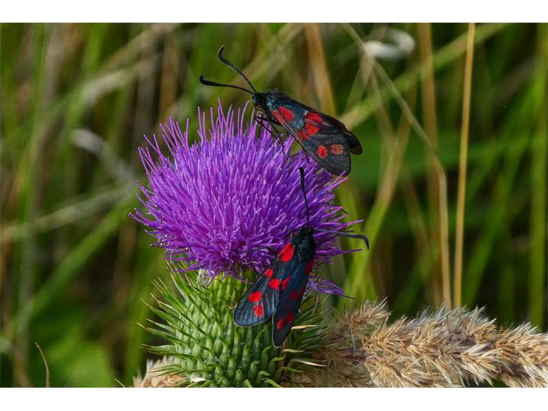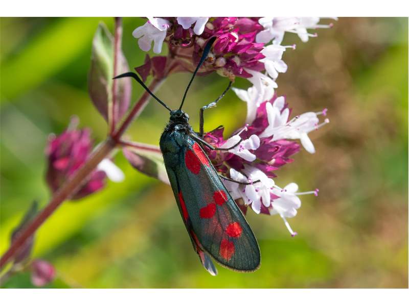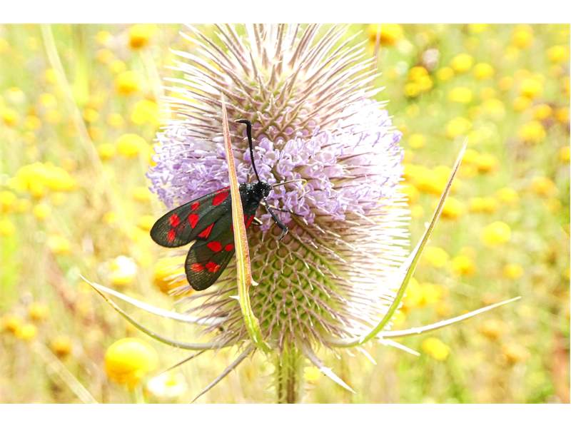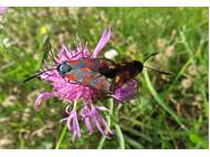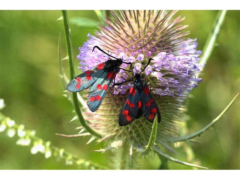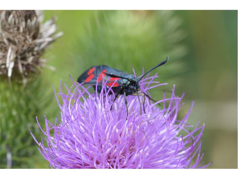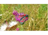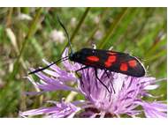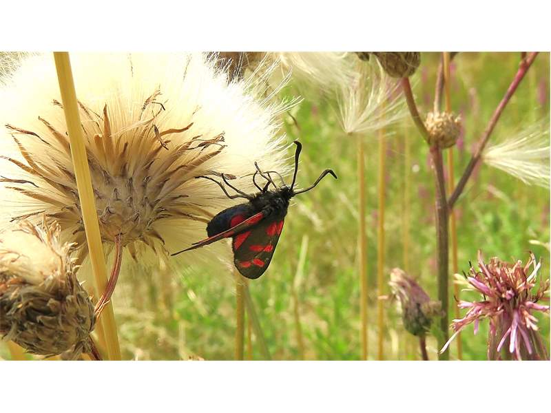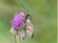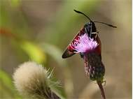 Sechsfleck-Widderchen (Zygaena filipendulae (Linnaeus, 1758)),Freital/Wurgwitz,Hammerteich,Wegrand auf Kratzdistel,Aug.2019 (© Manfred Wonka)( Bild vergrößern)