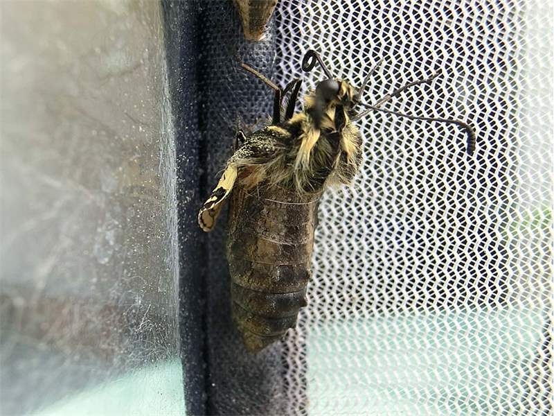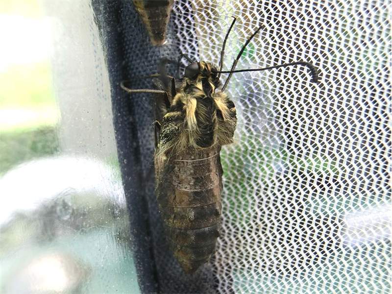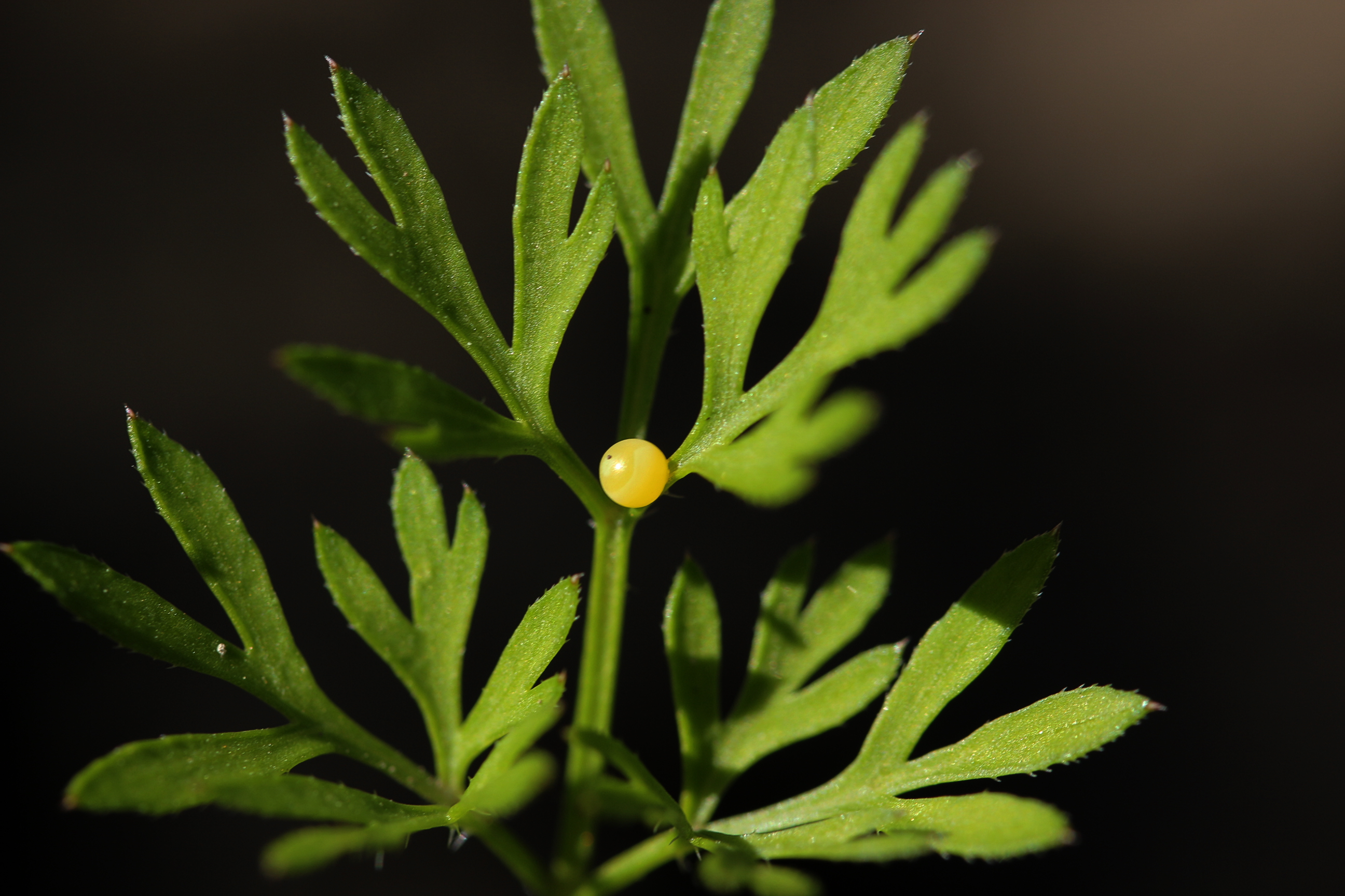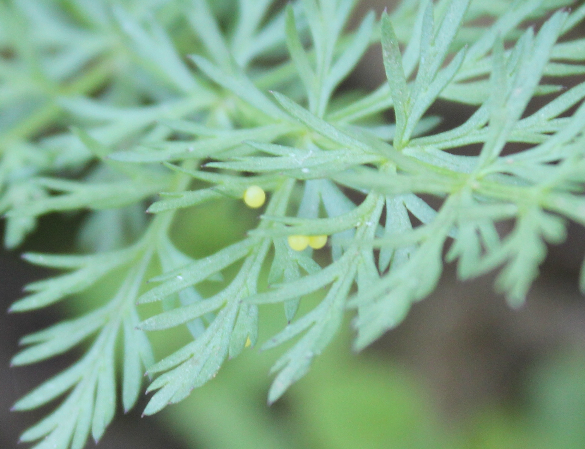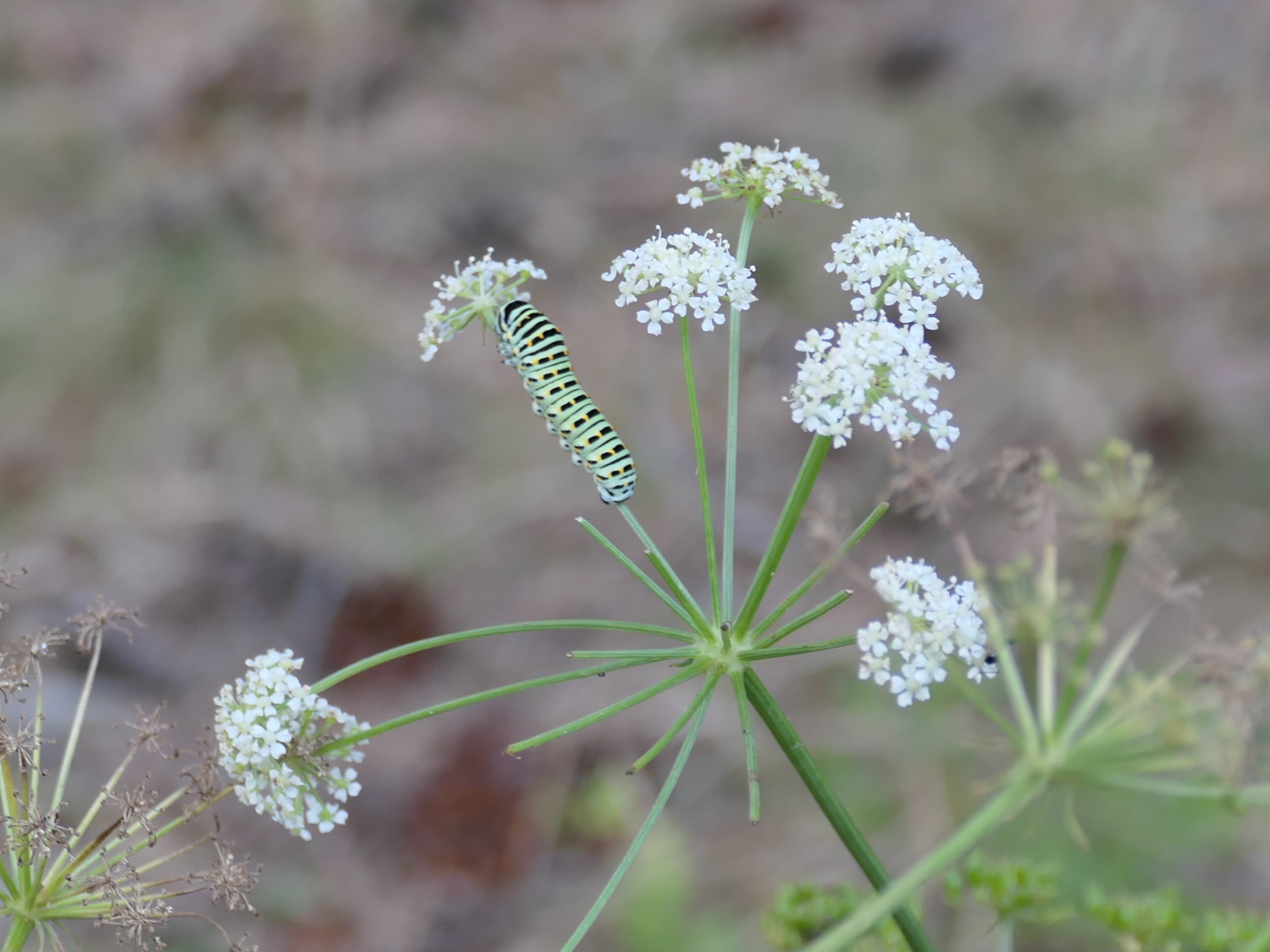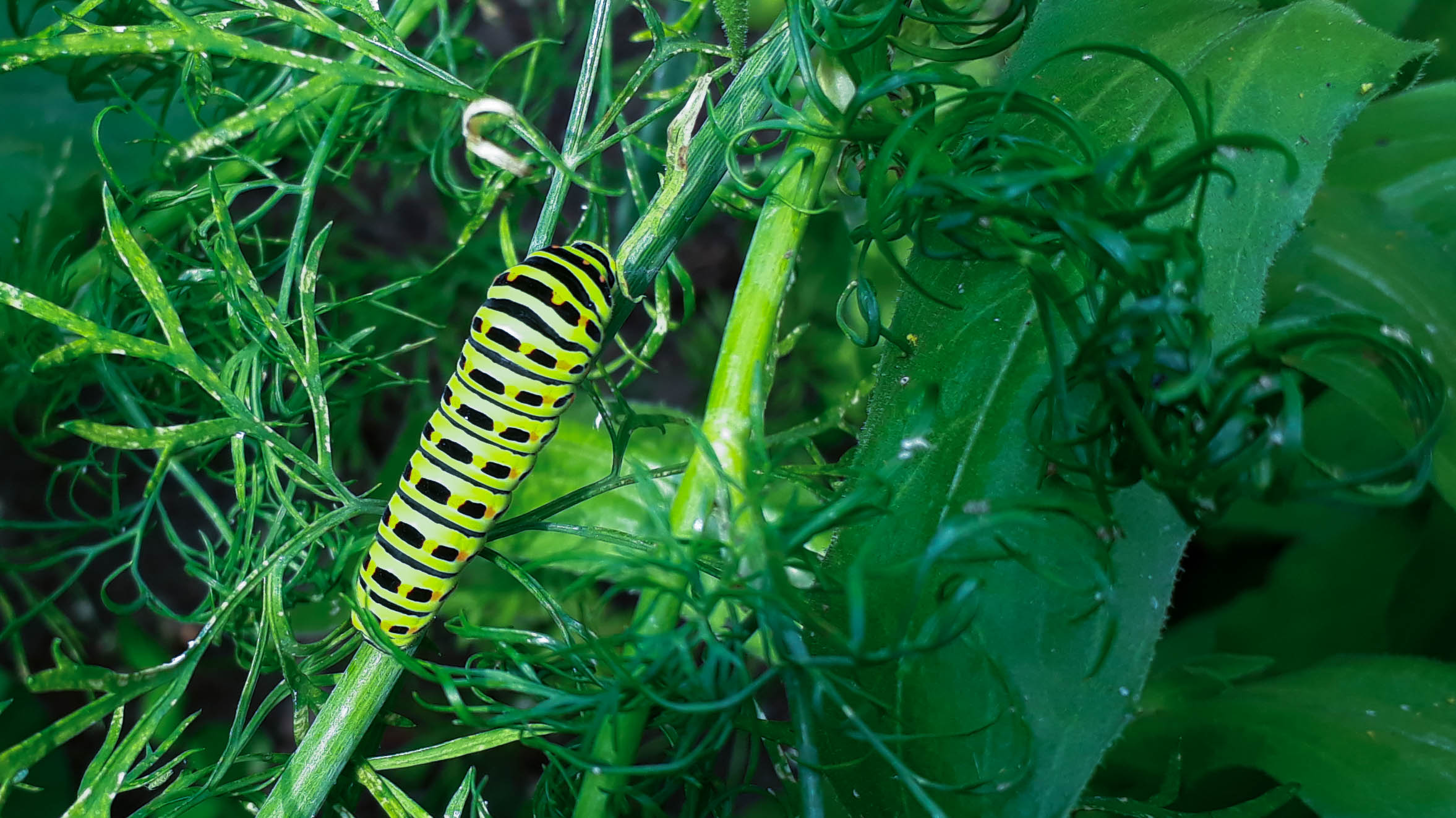 Schwalbenschwanz (Papilio machaon Linnaeus, 1758), Weibchen bei der Eiablage in Blütenknospen der Wilden Möhre (Daucus carota), Elbtal bei Meißen, Juli 2018
