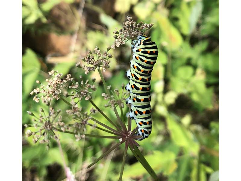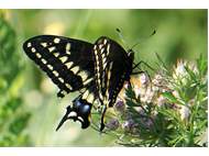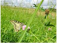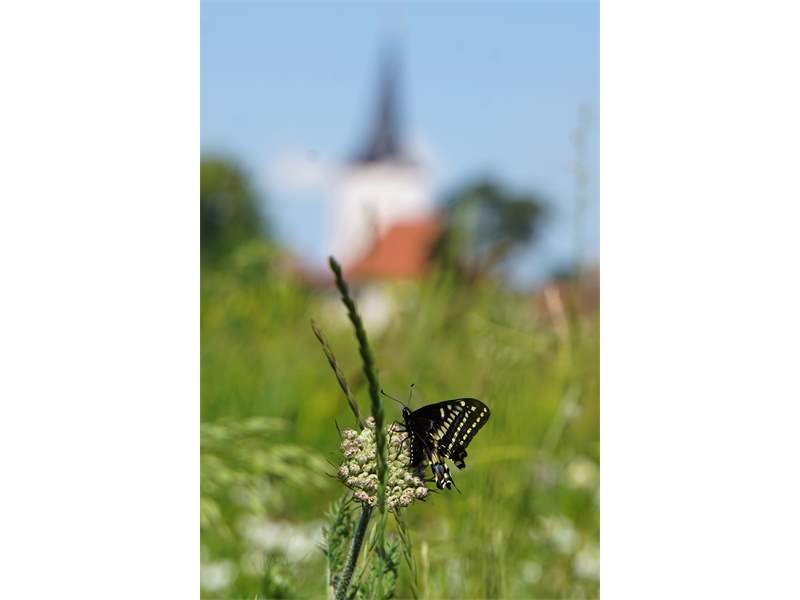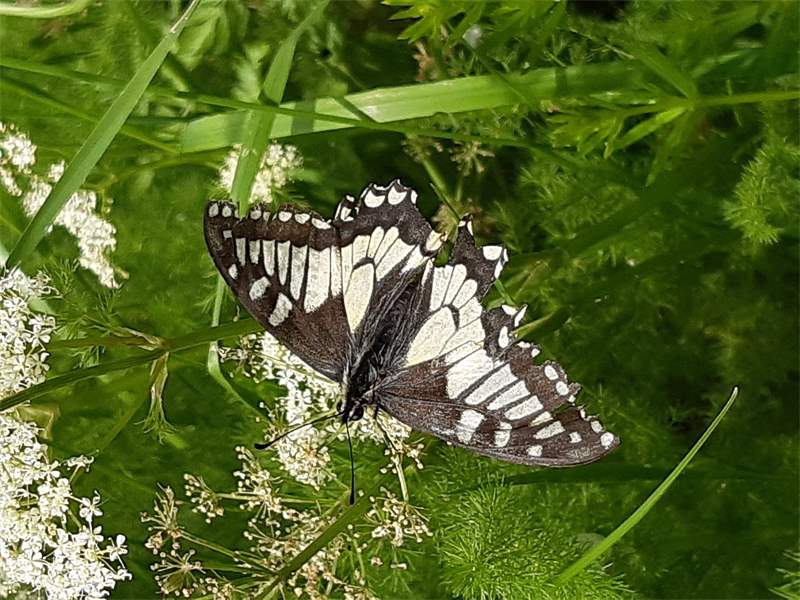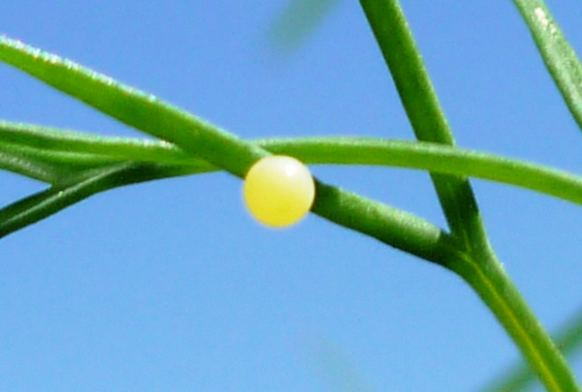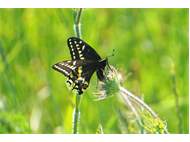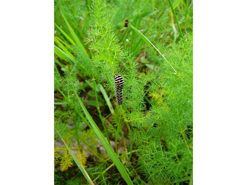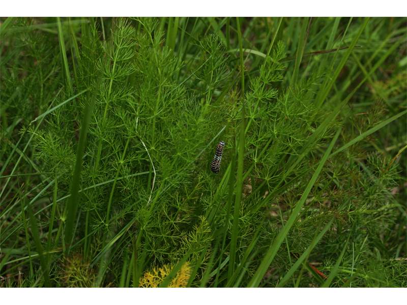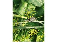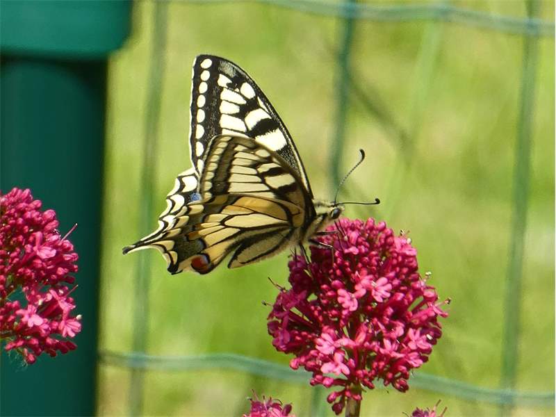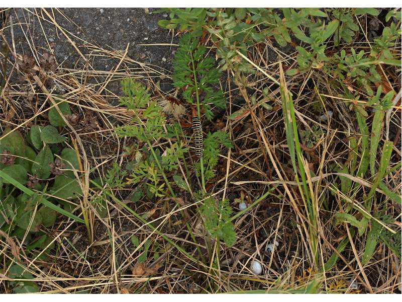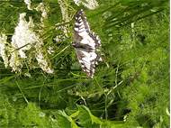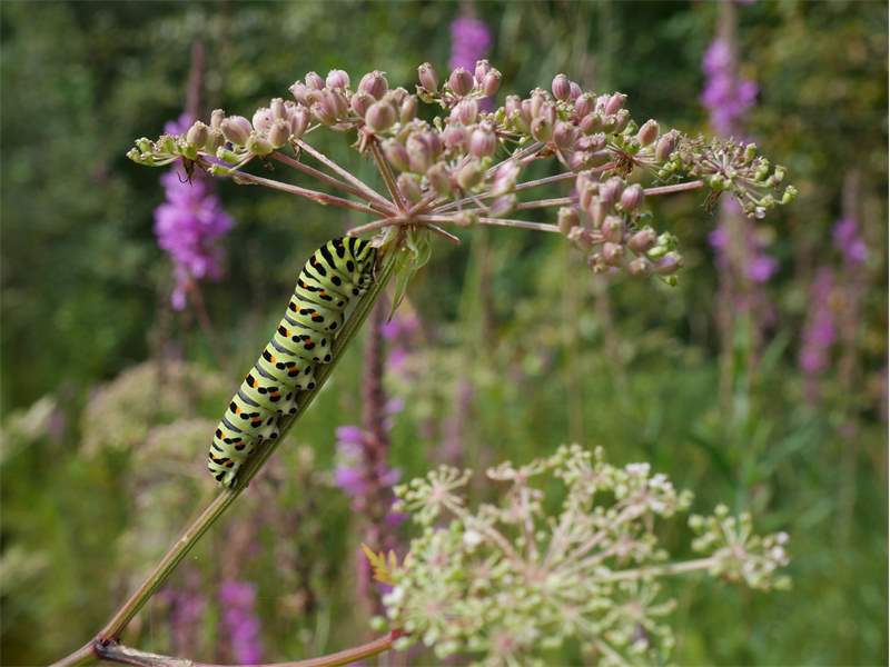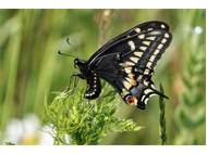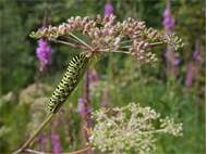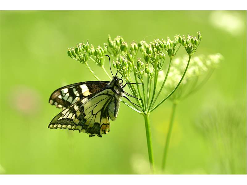 Schwalbenschwanz (Papilio machaon Linnaeus, 1758), Weibchen bei der Eiablage in Blütenknospen der Wilden Möhre (Daucus carota), Elbtal bei Meißen, Juli 2018 (© Michael Braune)( Bild vergrößern)