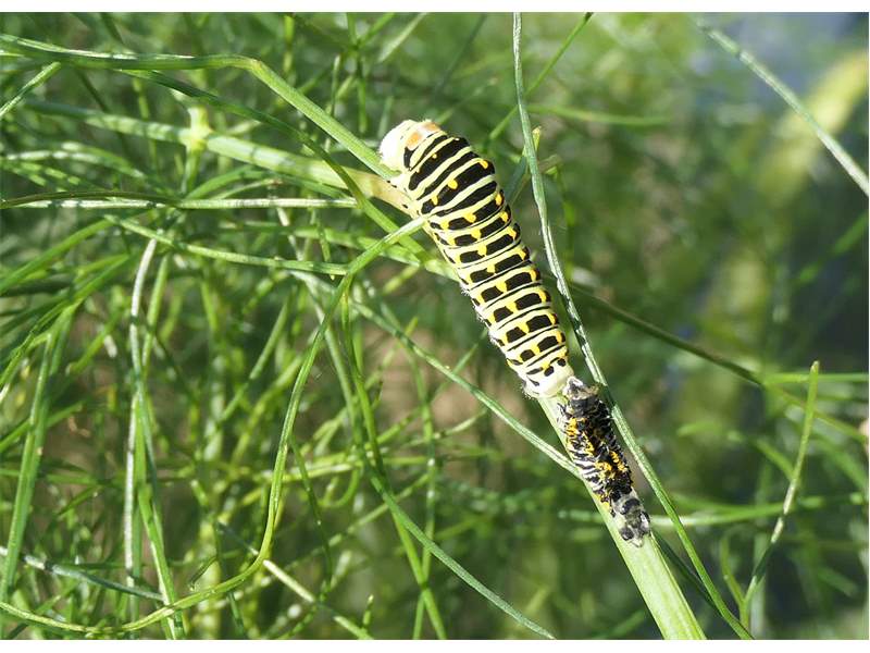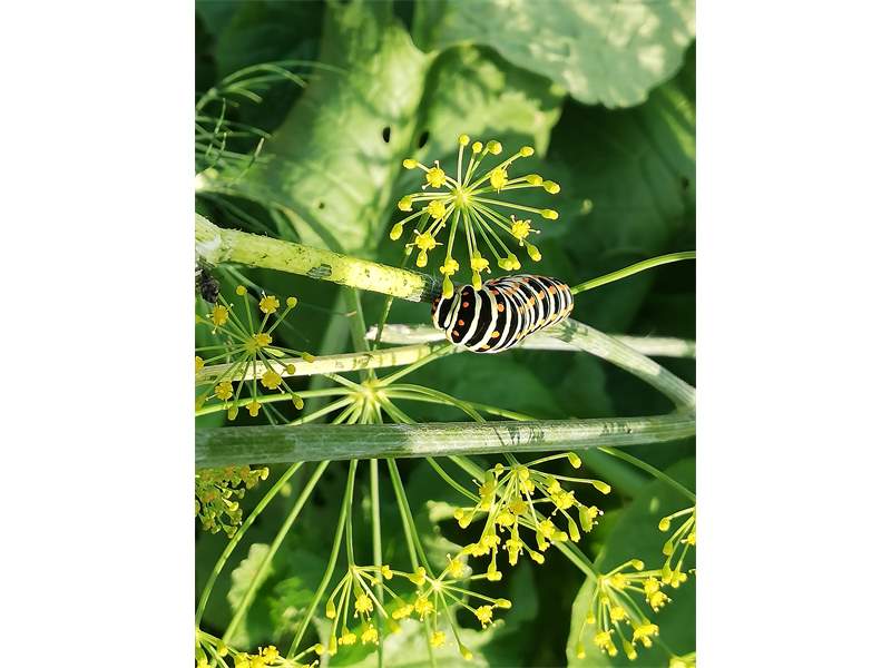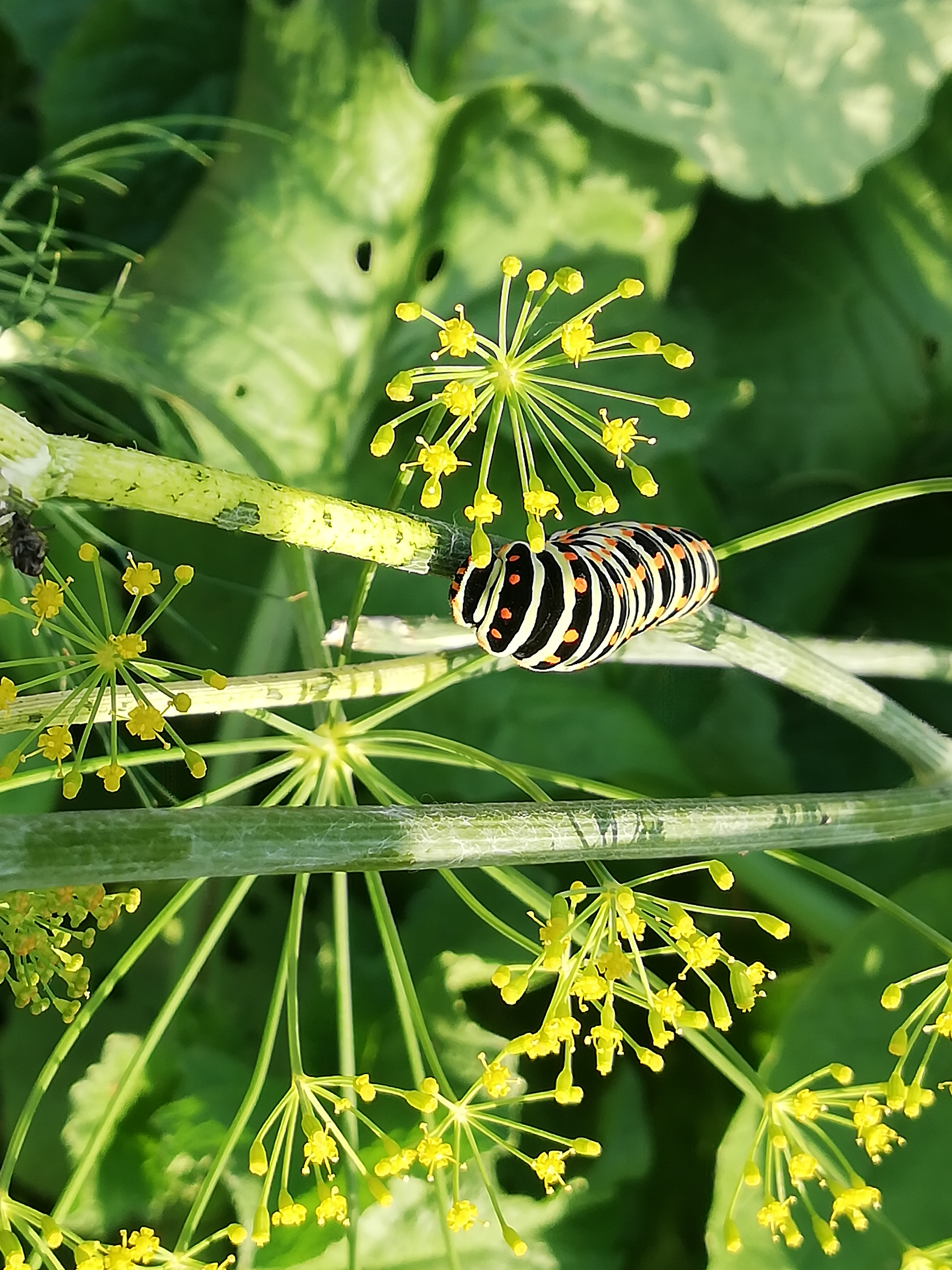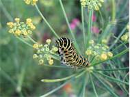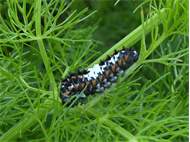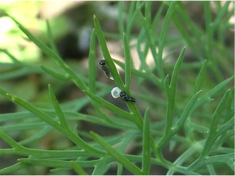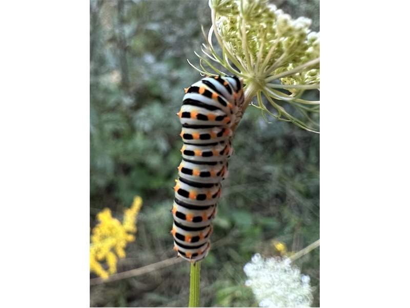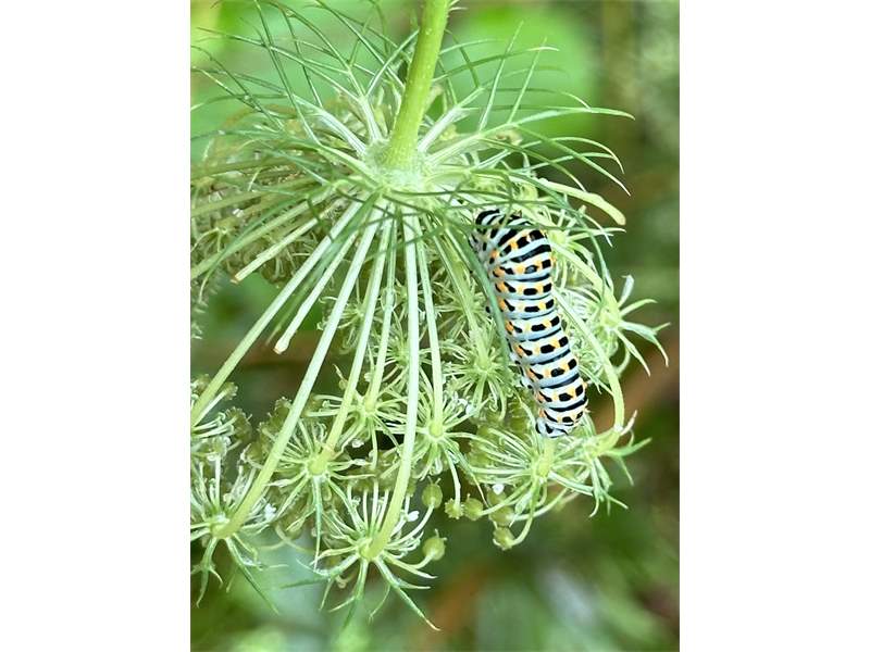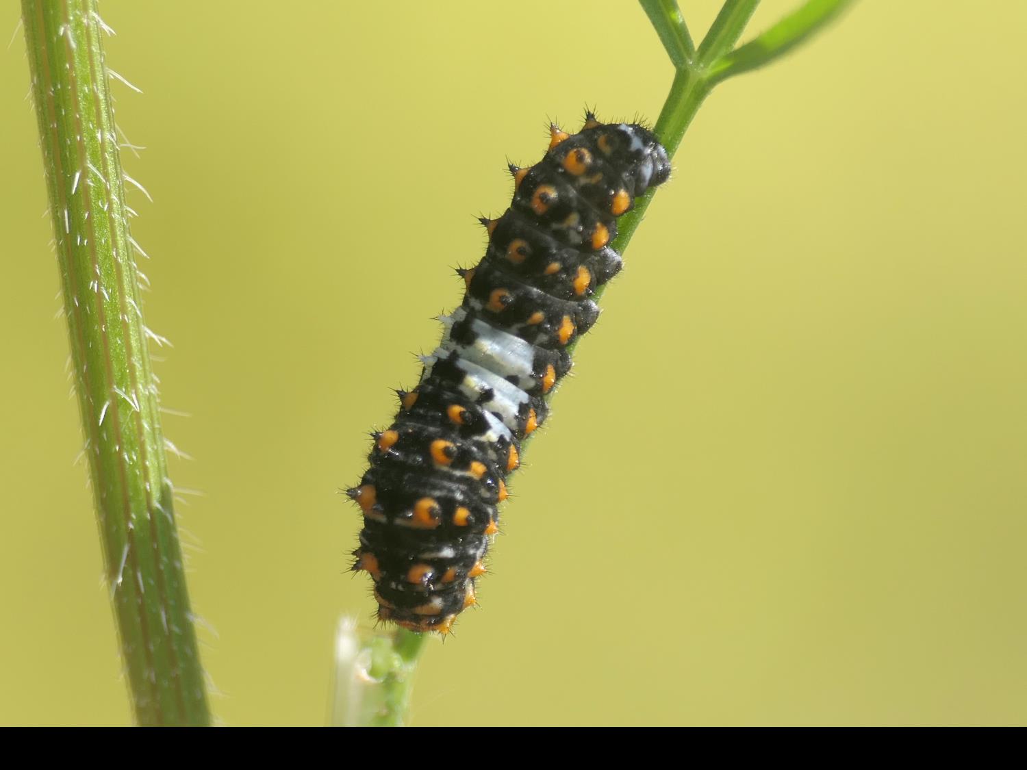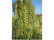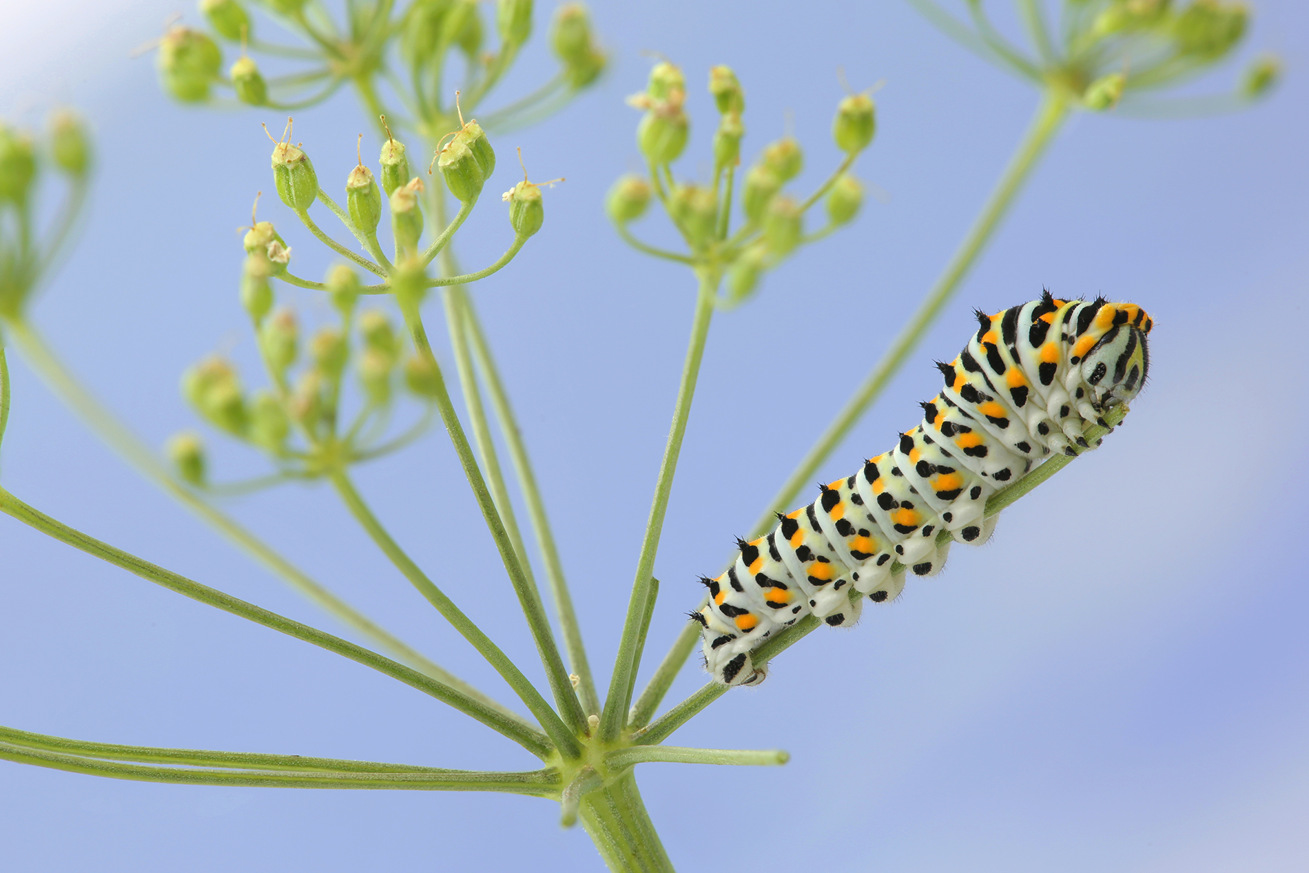 Schwalbenschwanz (Papilio machaon Linnaeus, 1758), Weibchen bei der Eiablage in Blütenknospen der Wilden Möhre (Daucus carota), Elbtal bei Meißen, Juli 2018 (© Michael Braune)( Bild vergrößern)