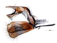 Männliches Genital von Thymelicus lineola. Sebnitz, Hinterhermsdorf, Neudorfschenke, 5.viii.1938, Skell. MTD prep. no. 307, F. Zöphel. (© Friederike Zöphel )( Bild vergrößern)