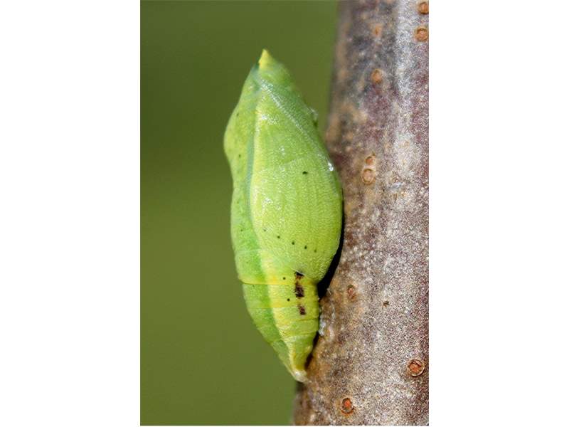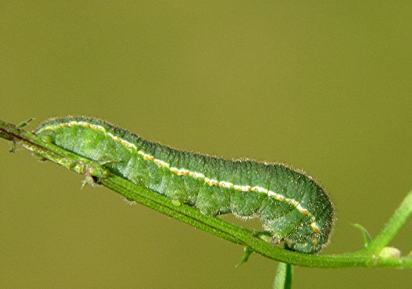 Erstes Larvenstadium mit schwarzem Kopf und hellbraunem Körper. Spätere Larvenstadien grün, mit einer weißlich-gelben bis gelben Seitenlinie (vergleiche Colias alfacariensis).