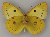 Männchen des Hufeisenkleegelblings vom 2. August 1985 aus Arnstadt (Thüringen), leg. M. Nuß. Coll. Senckenberg Museum für Tierkunde Dresden (© Matthias Nuß)( Bild vergrößern)