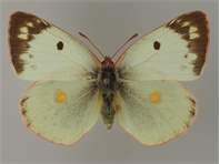 Männchen des Hufeisenkleegelblings vom 2. August 1985 aus Arnstadt (Thüringen), leg. M. Nuß. Coll. Senckenberg Museum für Tierkunde Dresden. Flügelunterseiten