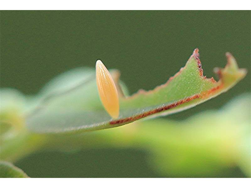 An Hufeisenklee abgelegtes Ei von Colias alfacariensis. Juli 2016, Belfort, Frankreich (© Matthias Hartung)( Bild vergrößern)