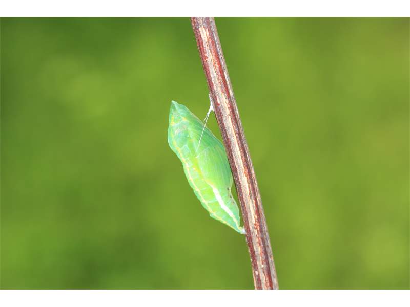 Puppe von Colias alfacariensis, die aus dem Ei vom 22.7.2016 gezüchtet wurde. August 2016, Belfort, Frankreich (© Matthias Hartung)( Bild vergrößern)