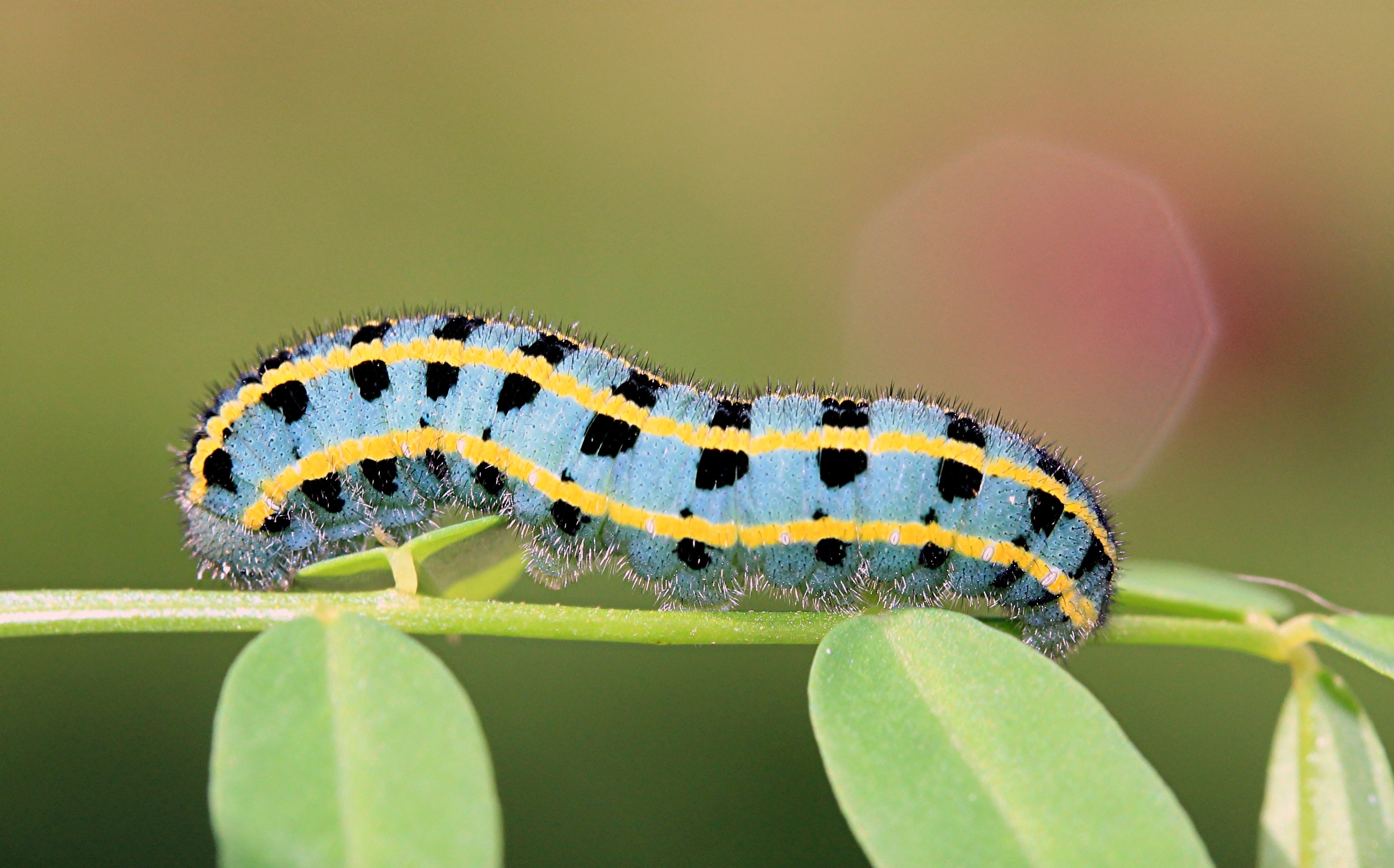 Raupe von Colias alfacariensis, die aus dem Ei vom 22.7.2016 an Bunter Kronwicke gezüchtet wurde. August 2016, Belfort, Frankreich (© Matthias Hartung)( Bild vergrößern)