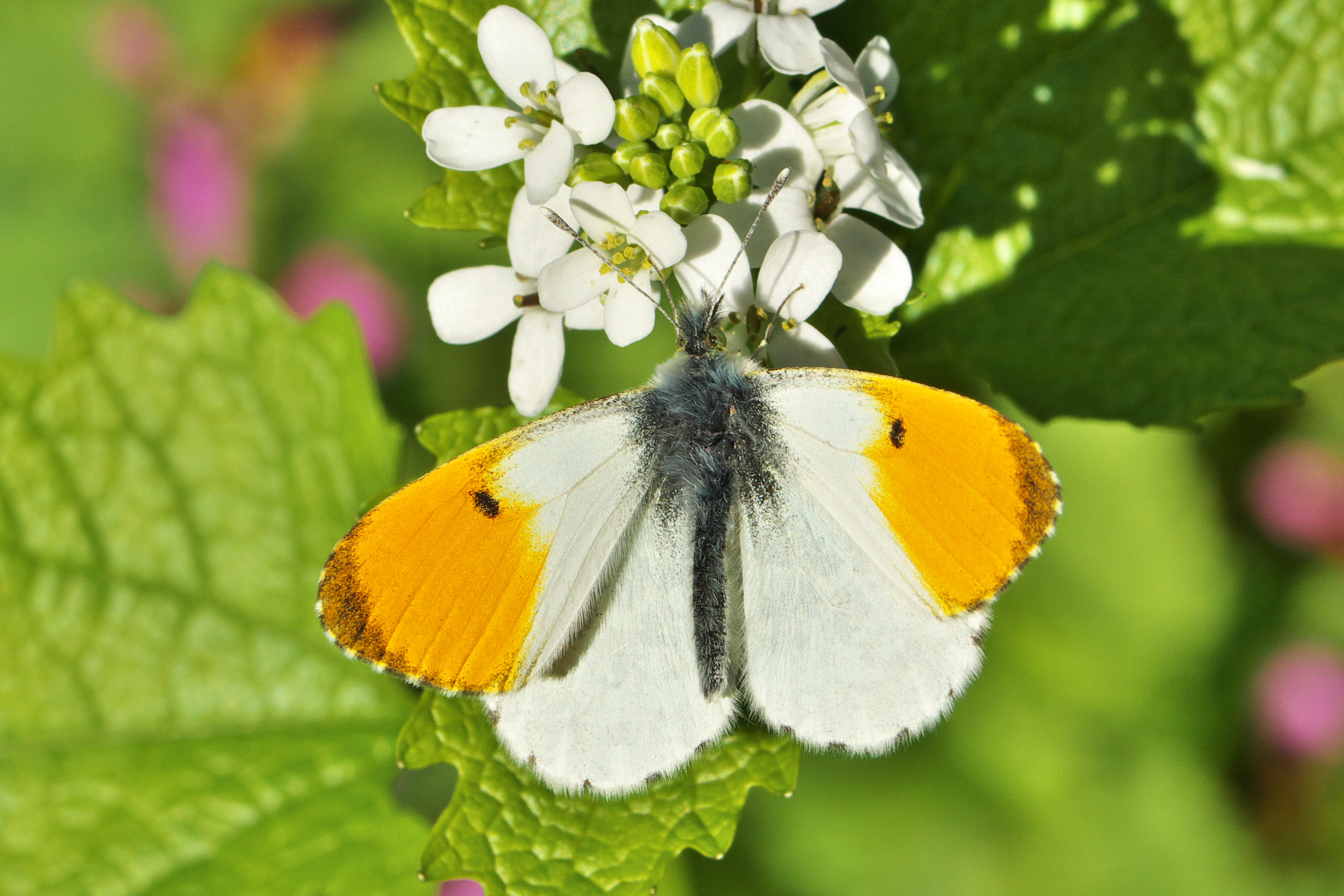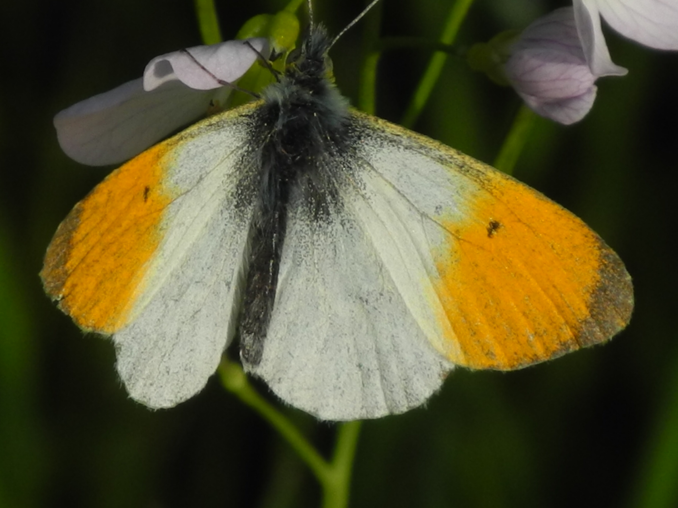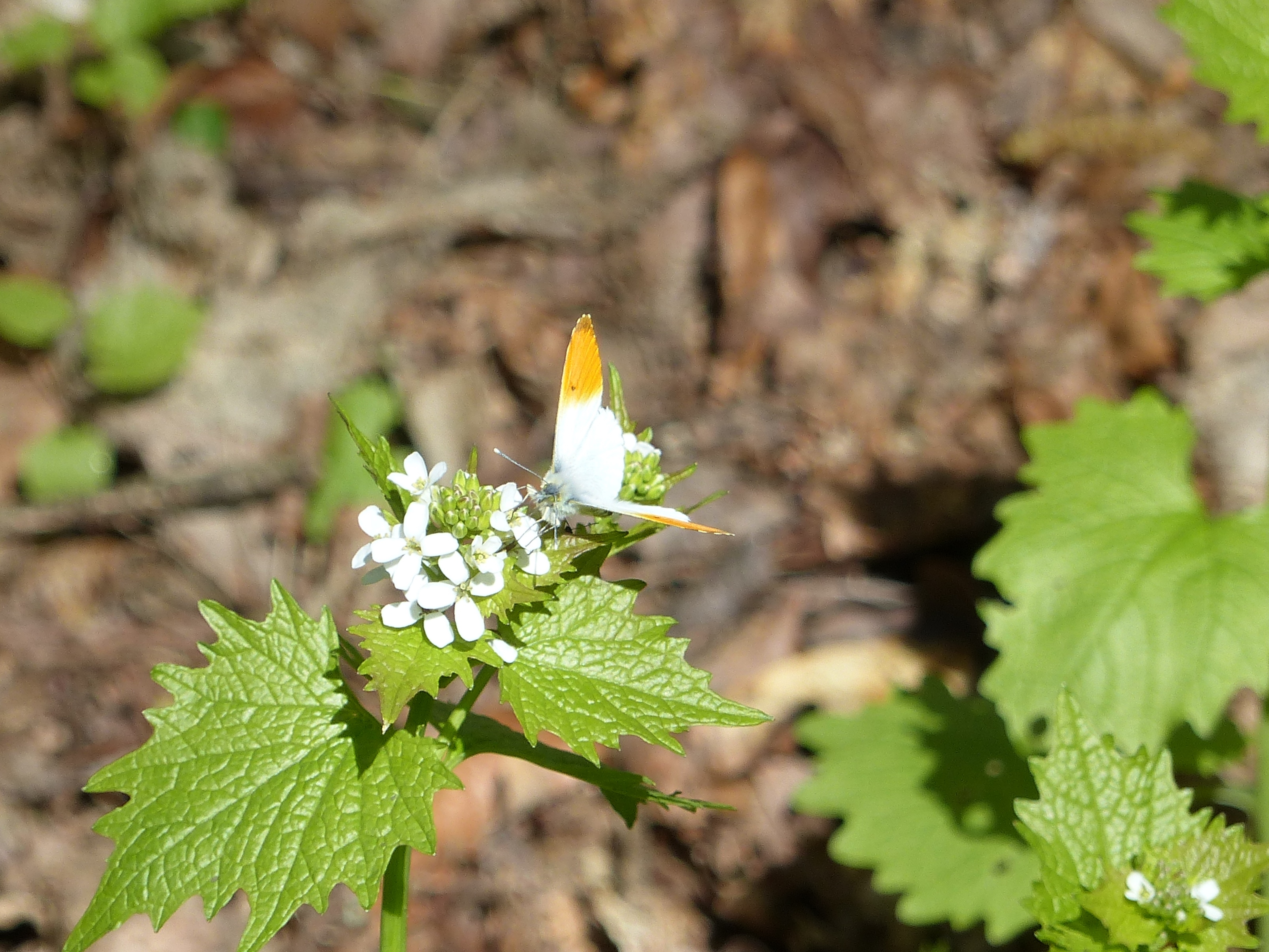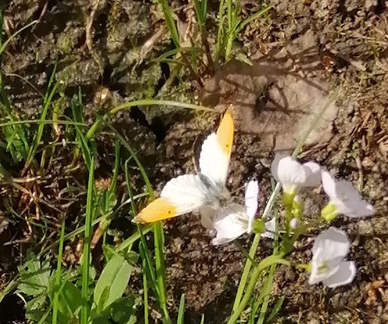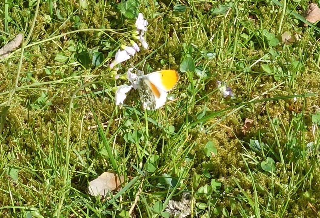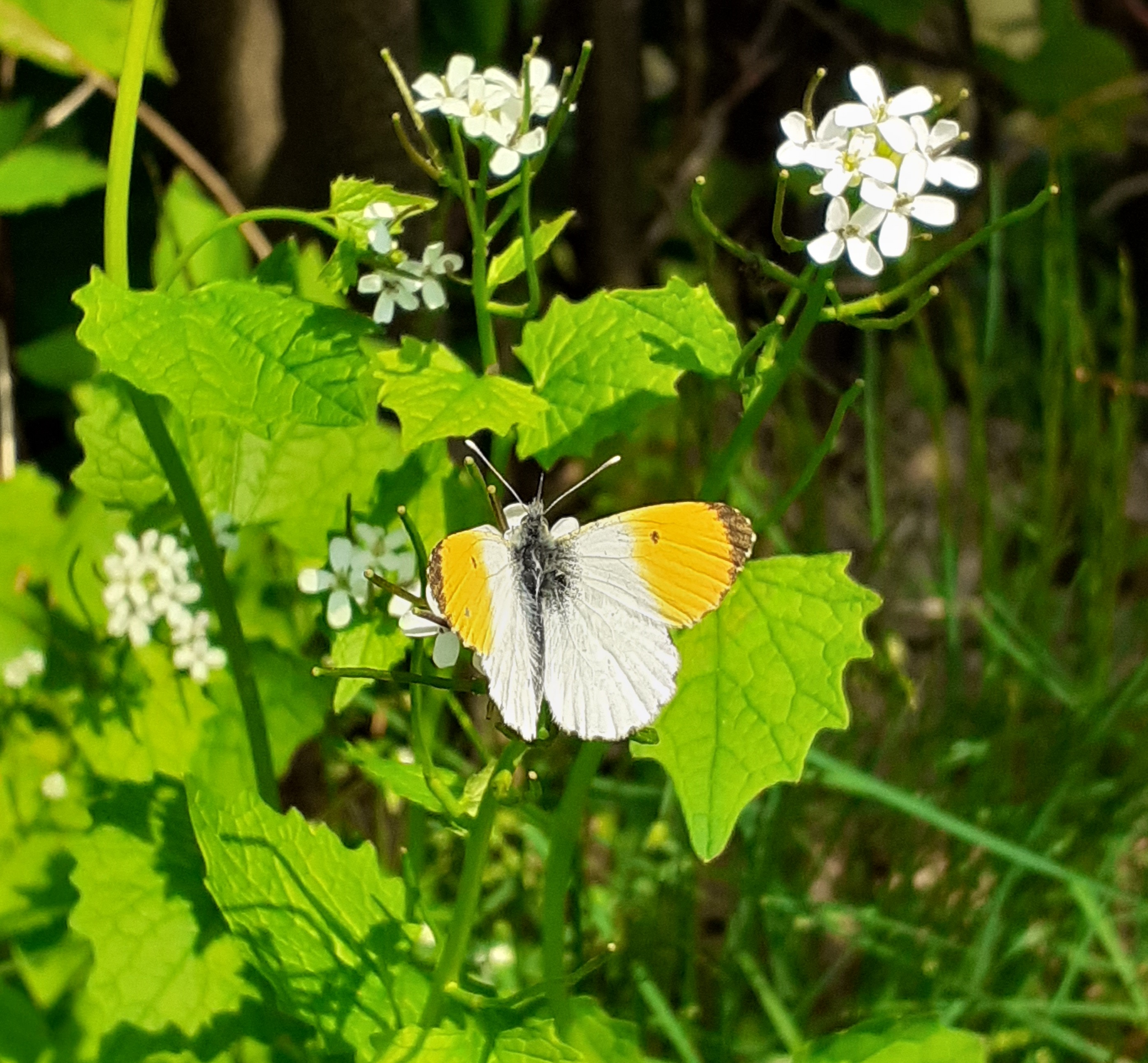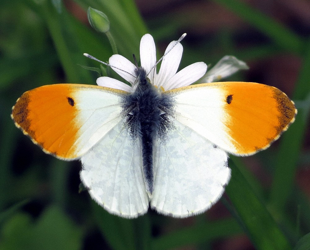 Aurorafalter (Anthocharis cardamines (Linnaeus, 1758)), Männchen, Blütenbesuch an Stellaria holostea, bei Nossen, April 2020 (© Andreas Hurtig)( Bild vergrößern)