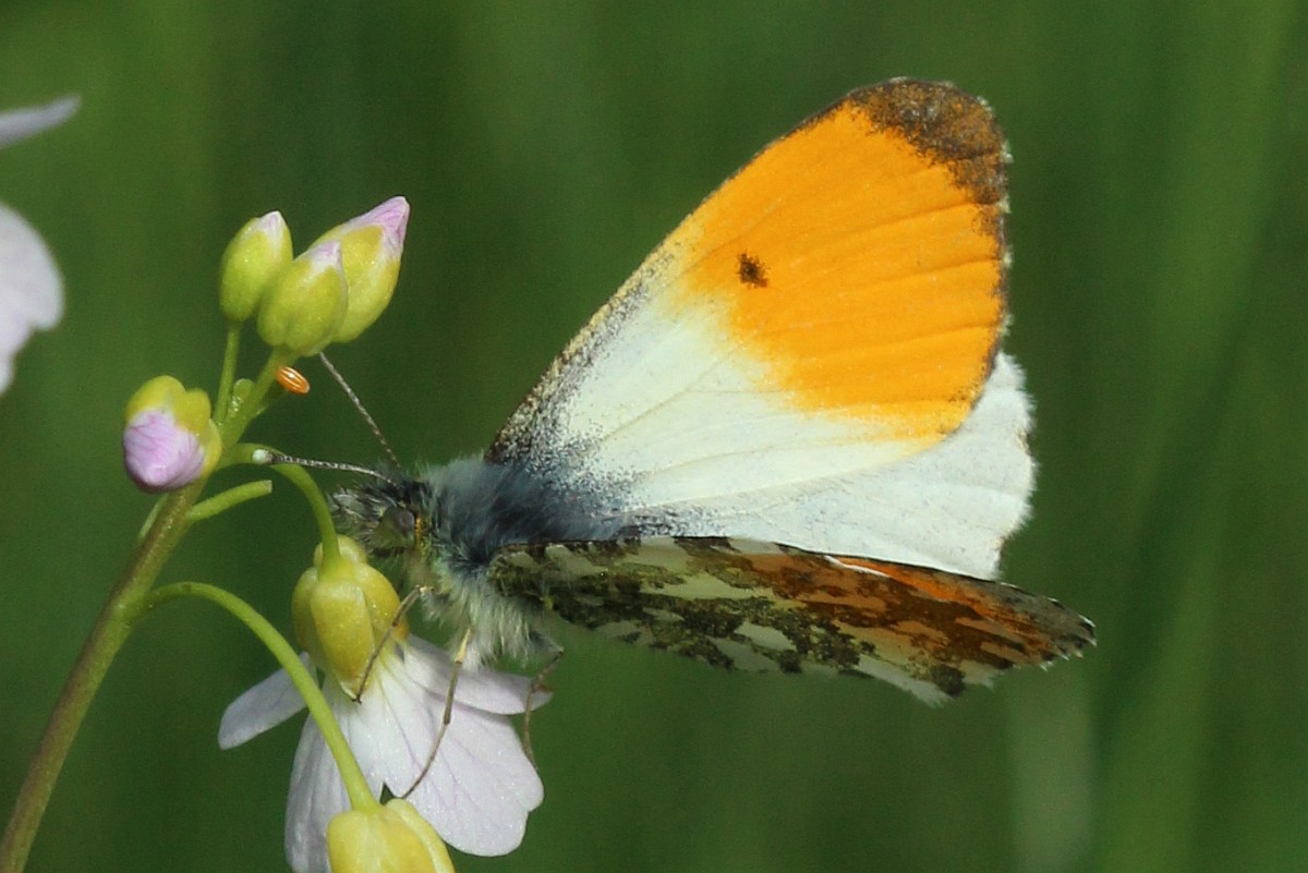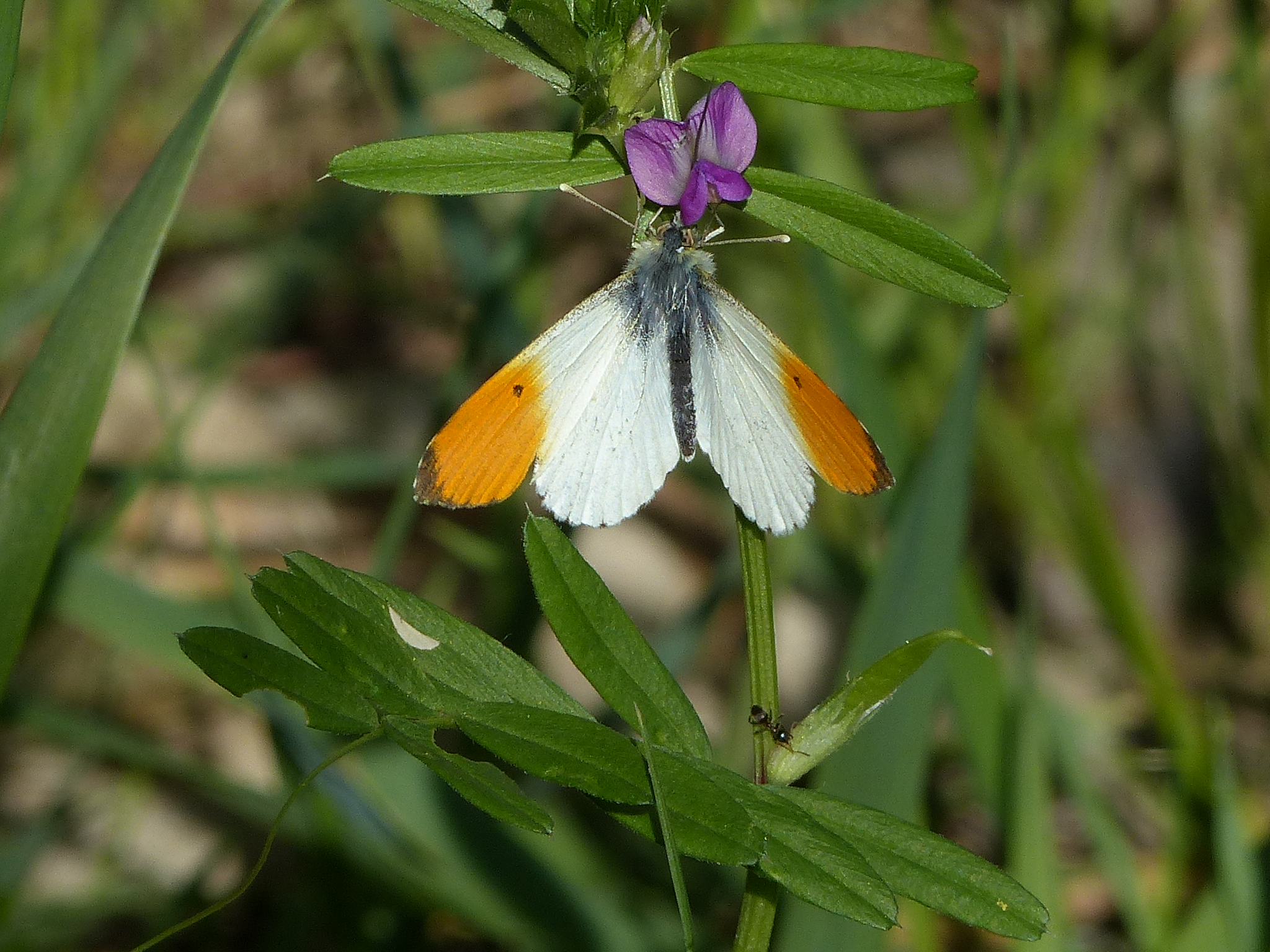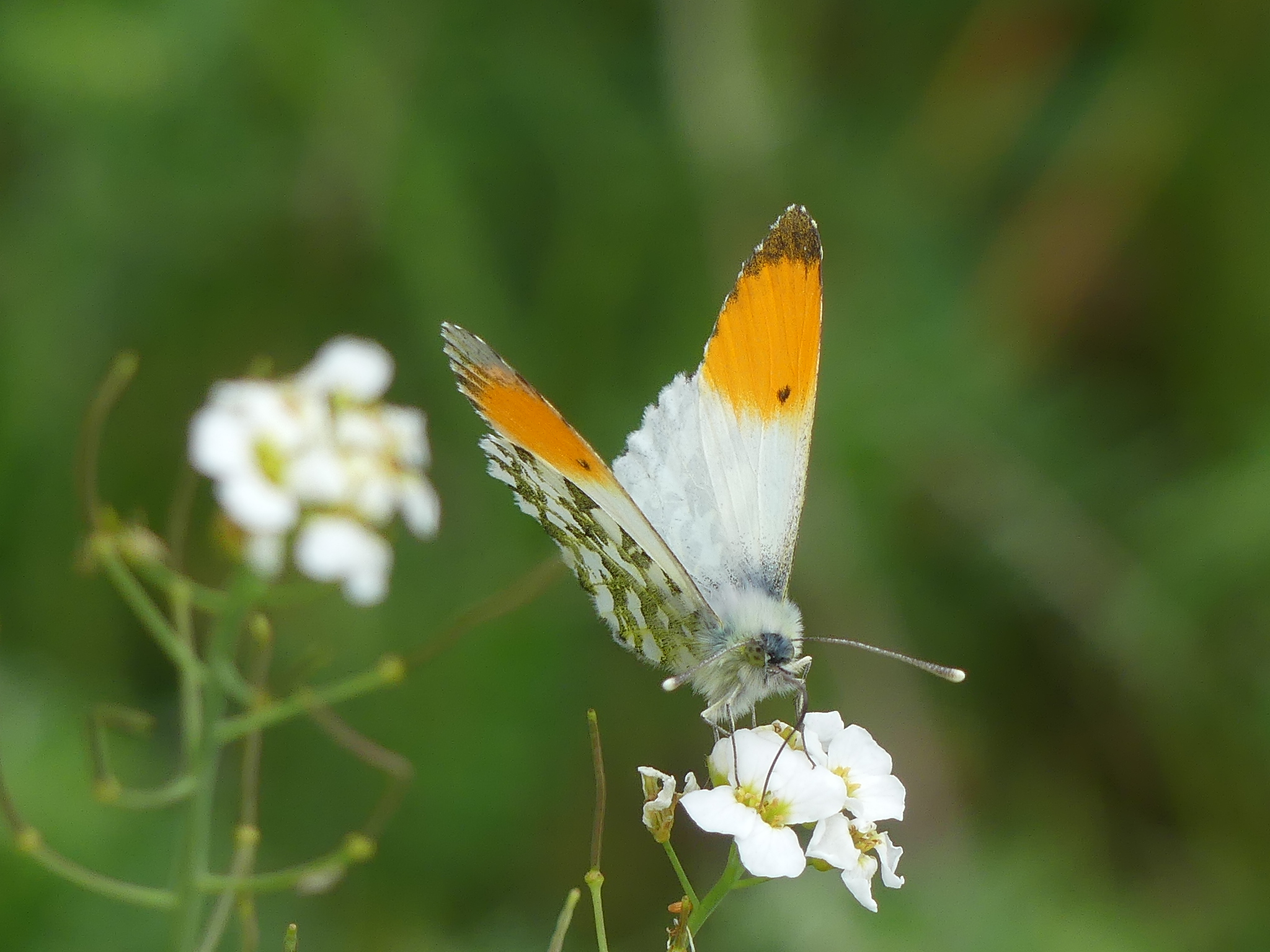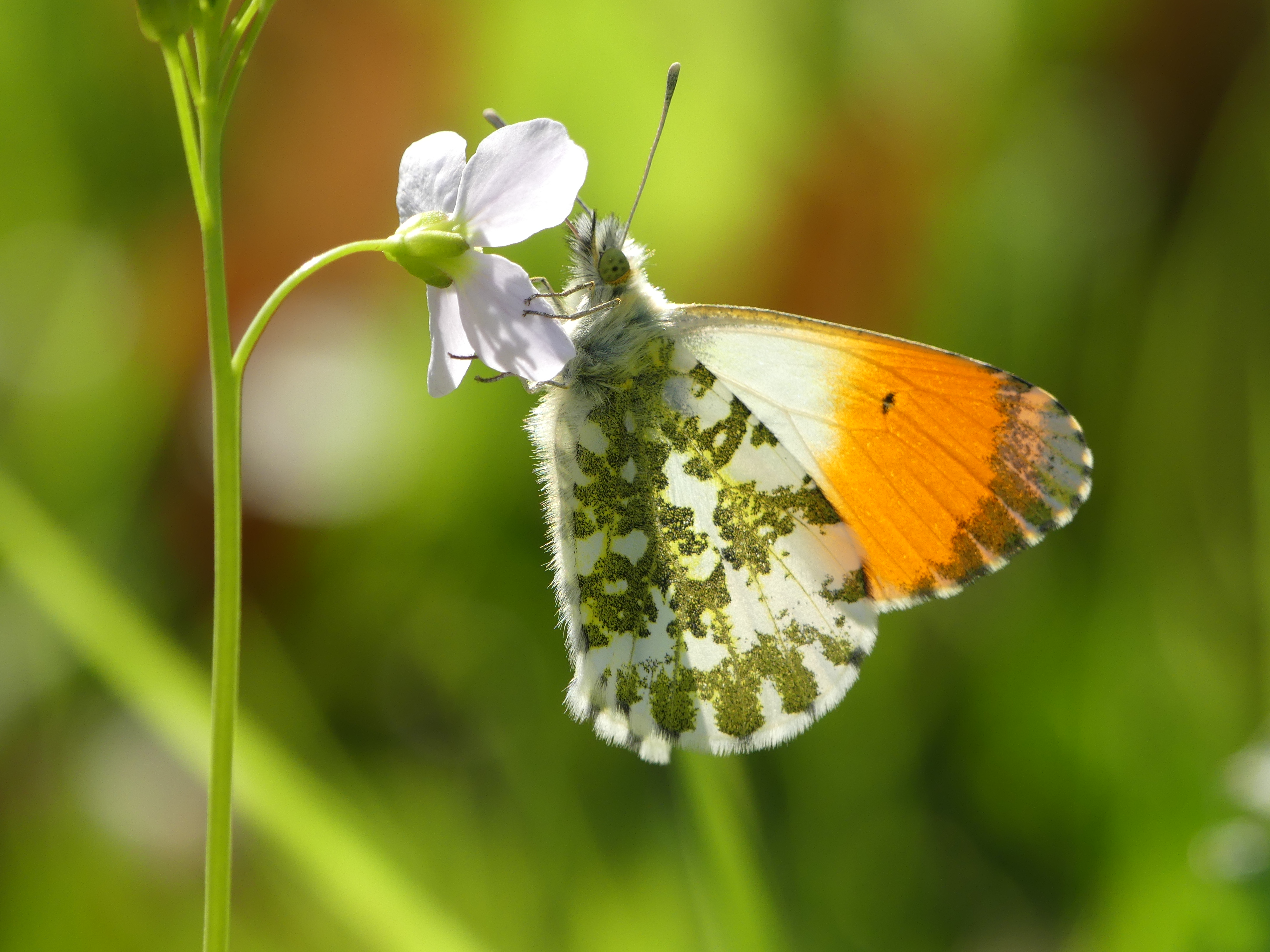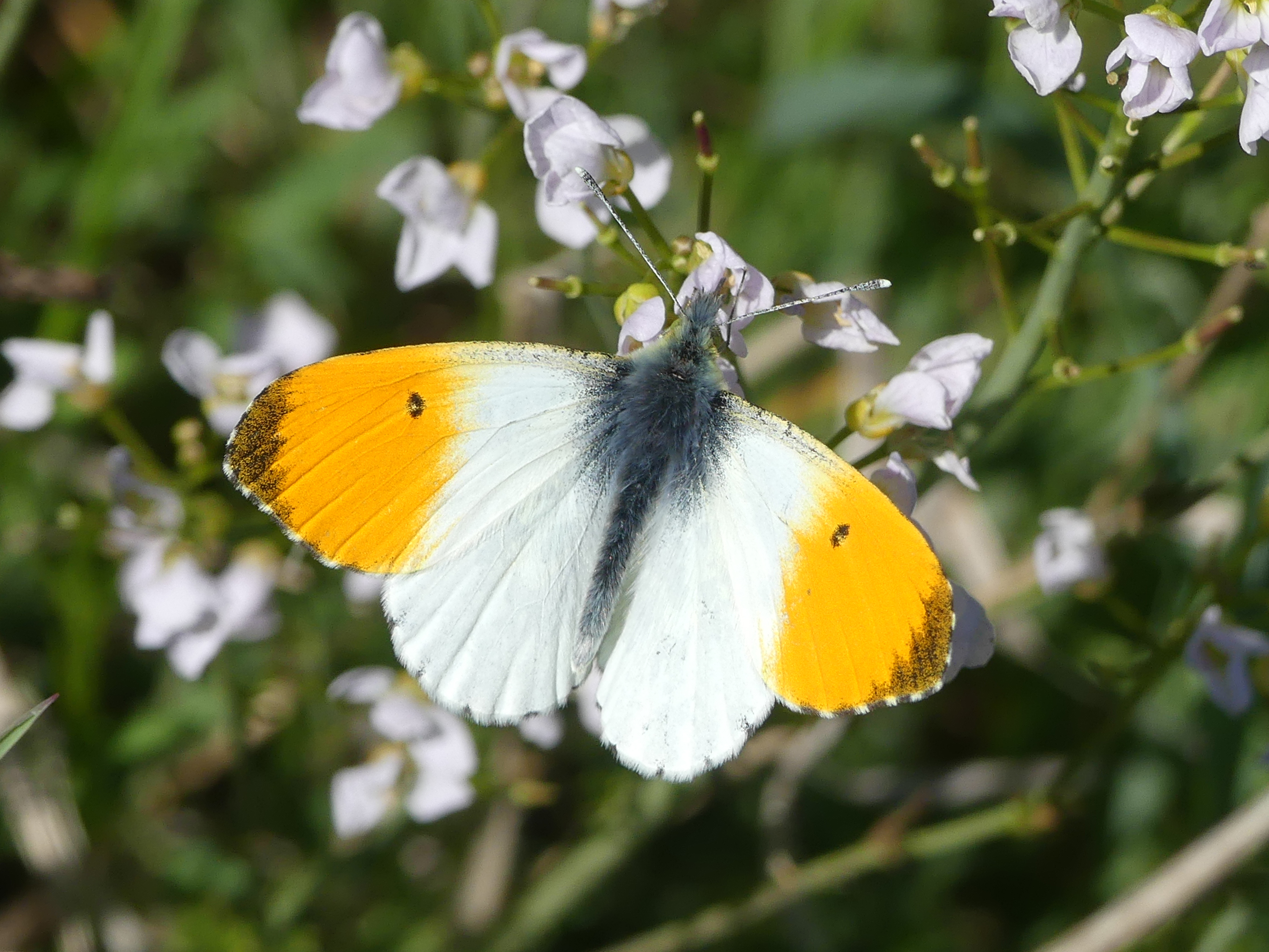 Aurorafalter (Anthocharis cardamines (Linnaeus, 1758)), Männchen, Blütenbesuch an Stellaria holostea, bei Nossen, April 2020 (© Andreas Hurtig)( Bild vergrößern)