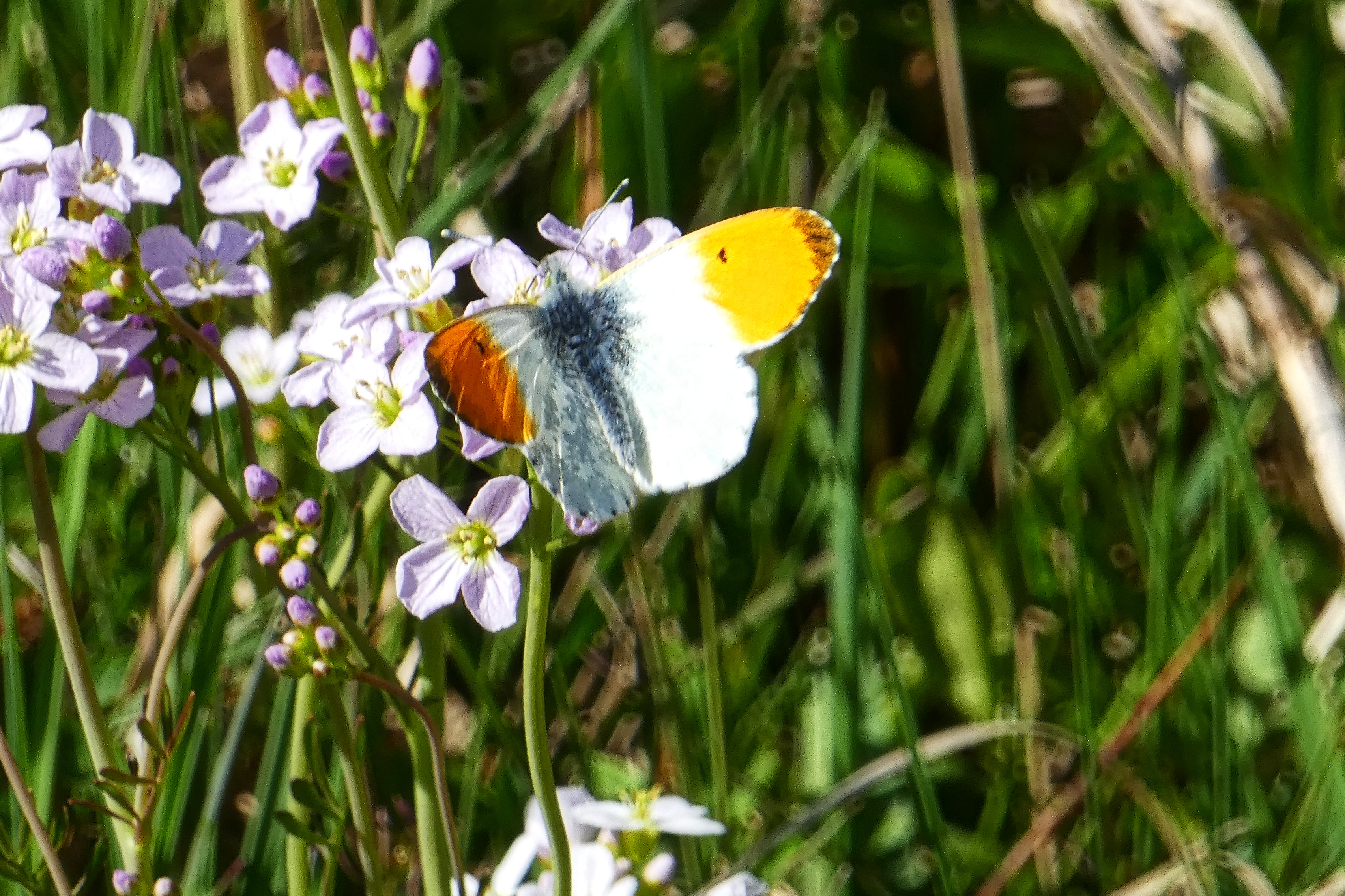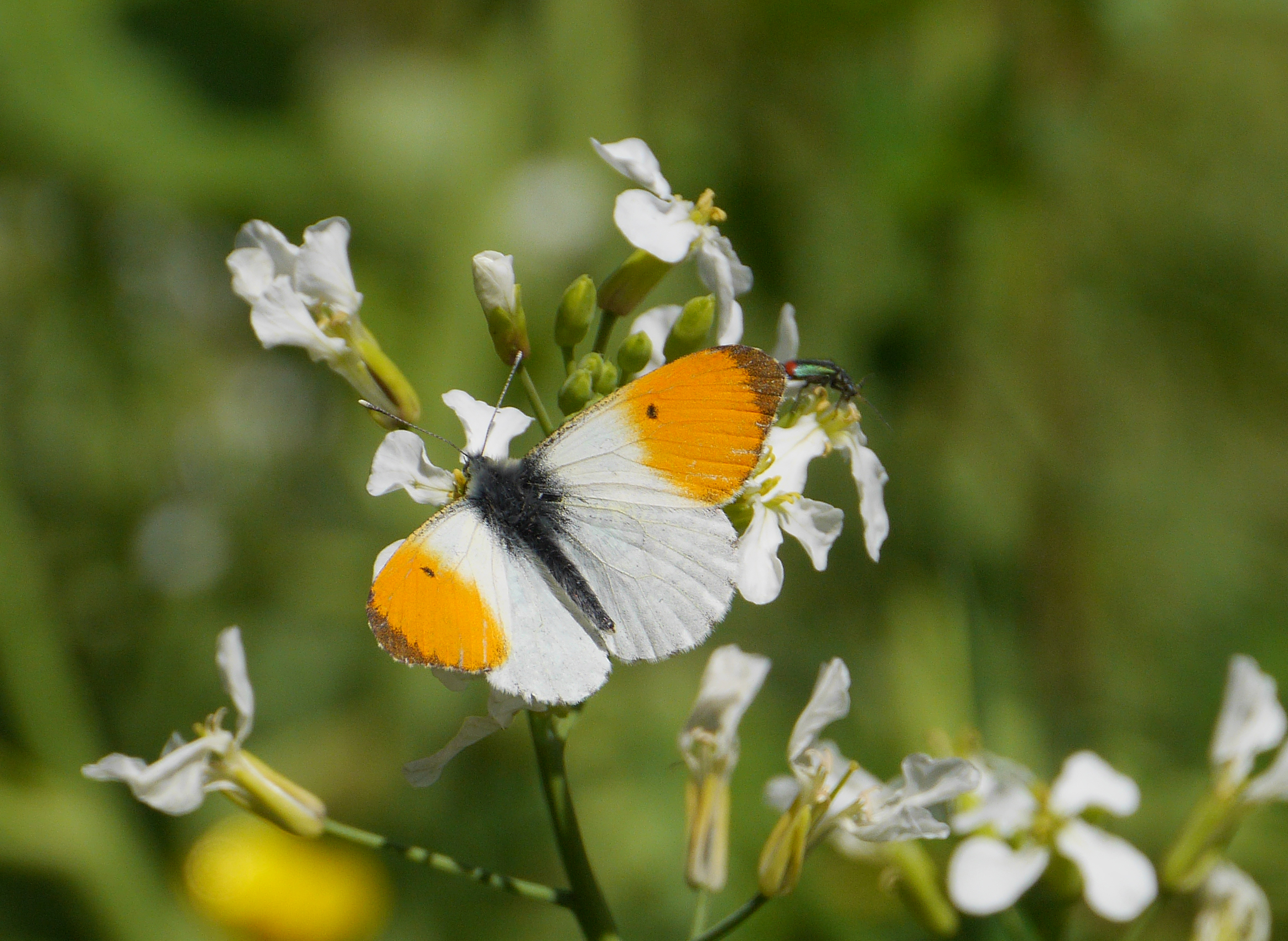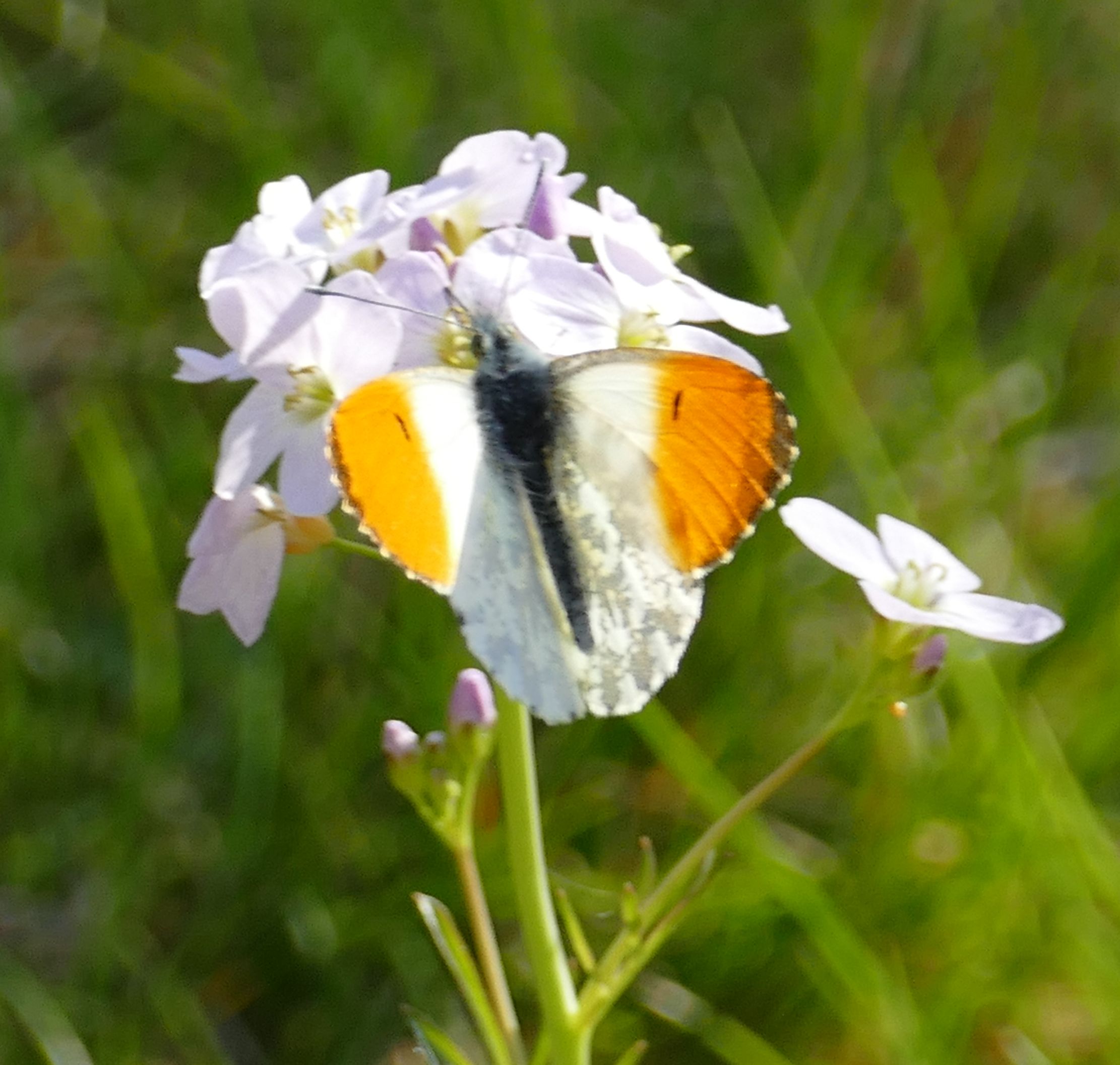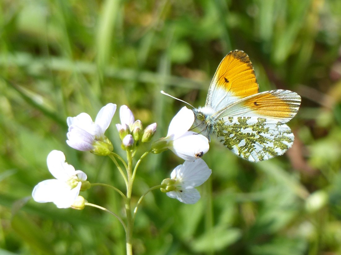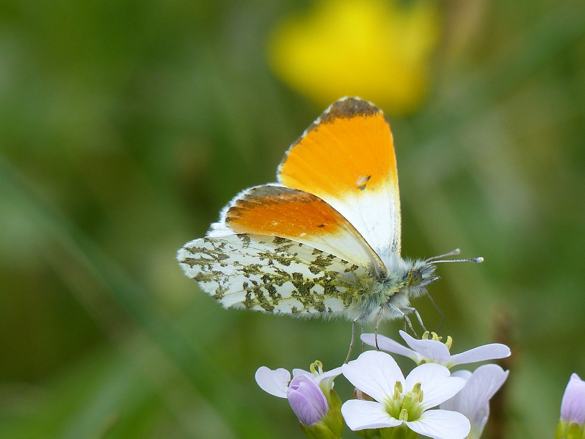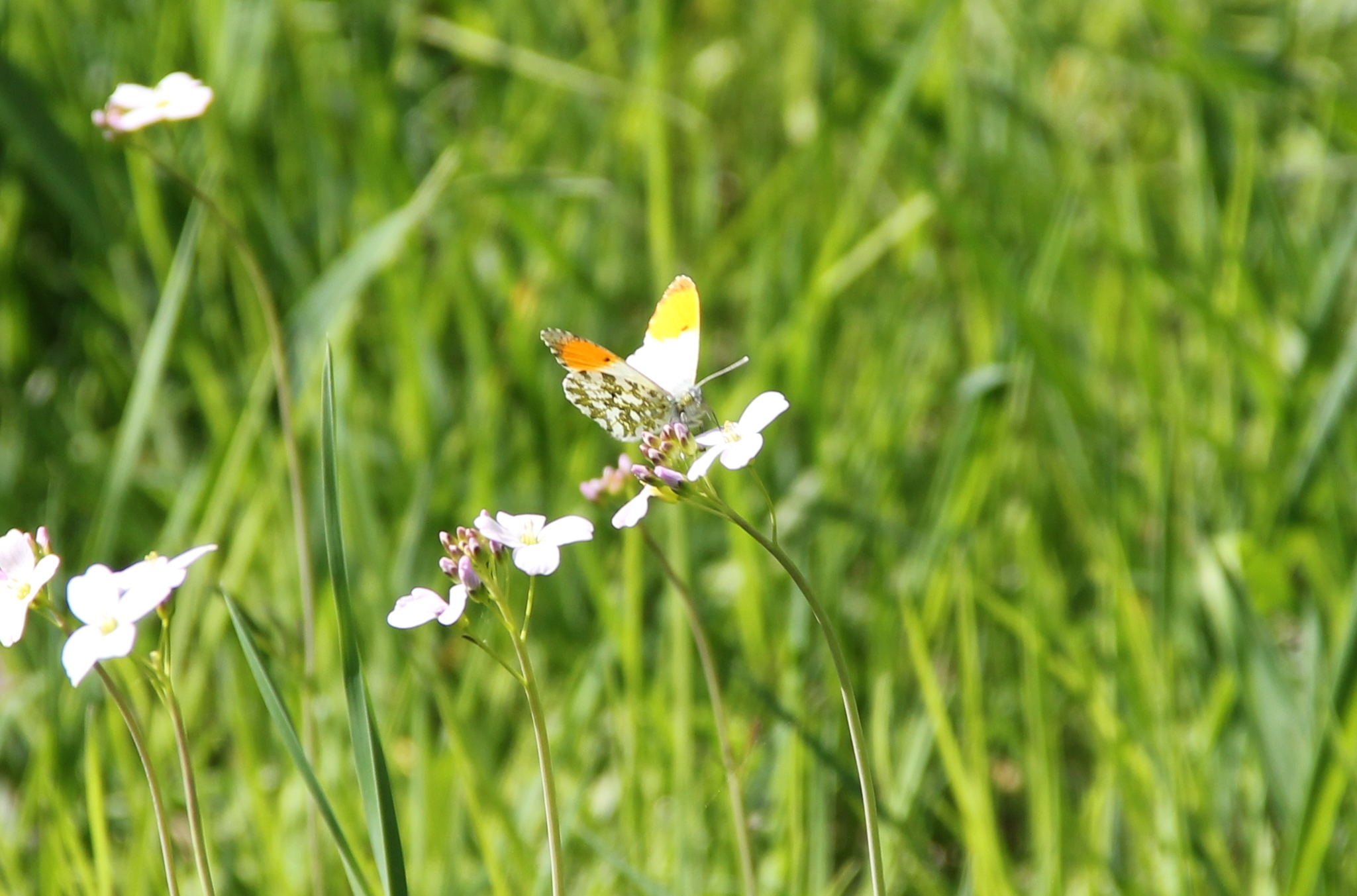 Aurorafalter (Anthocharis cardamines (Linnaeus, 1758)), Männchen, Blütenbesuch an Stellaria holostea, bei Nossen, April 2020 (© Andreas Hurtig)( Bild vergrößern)