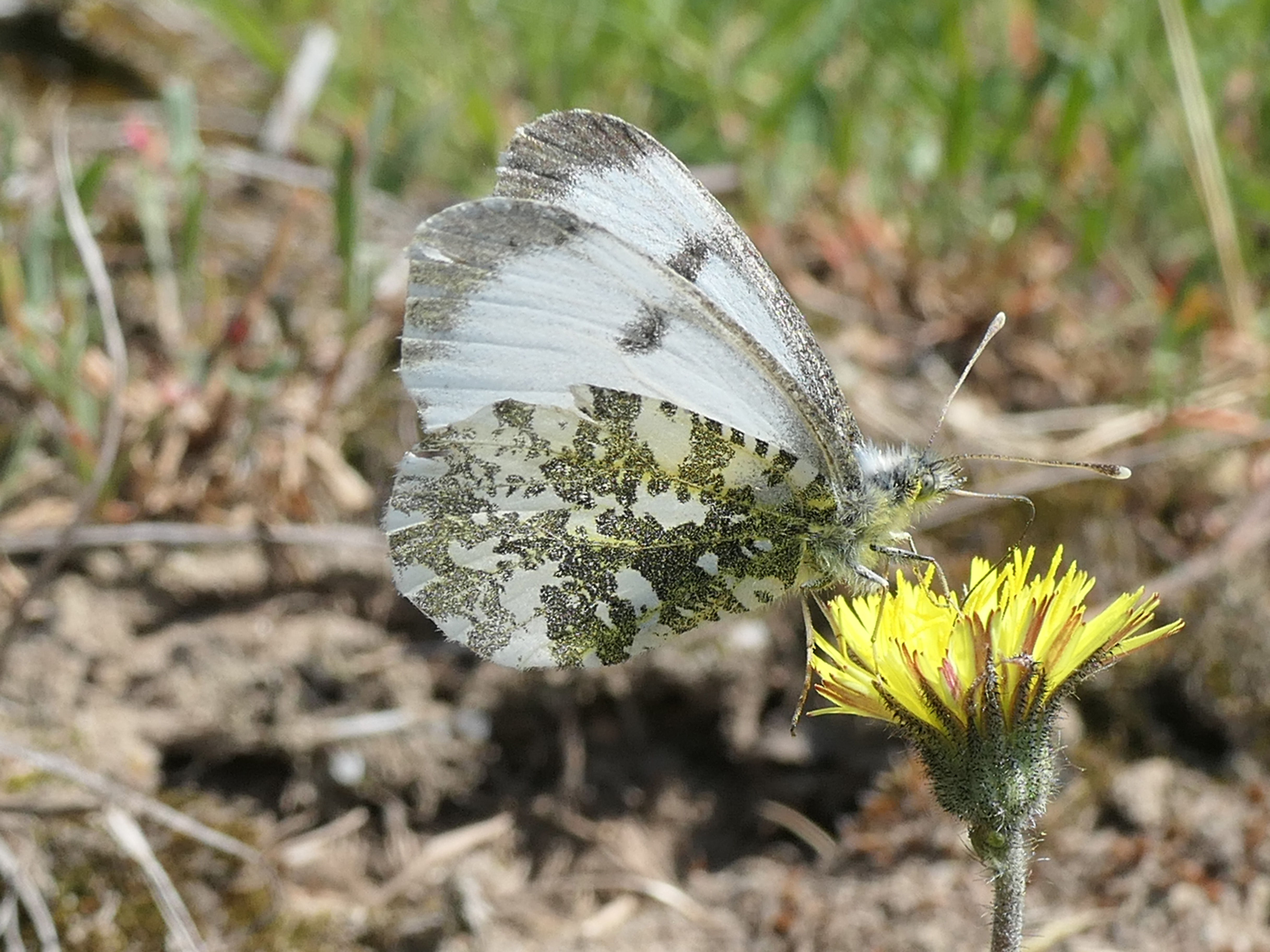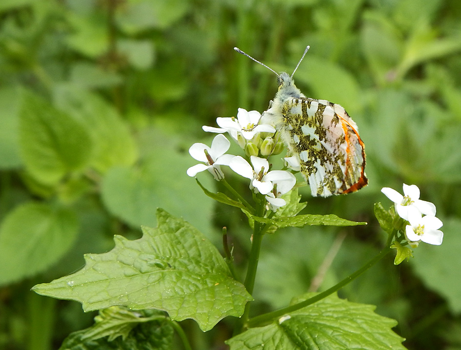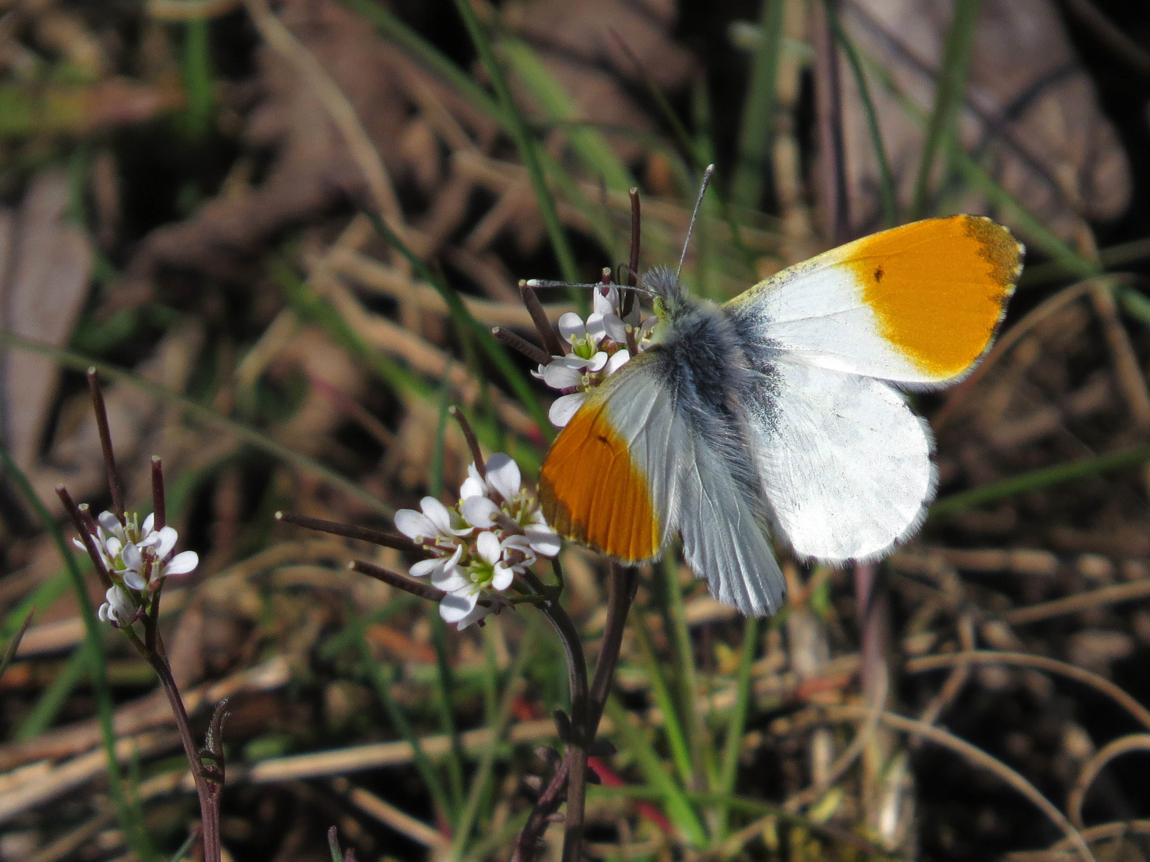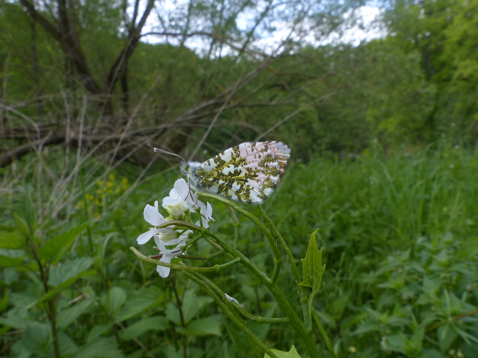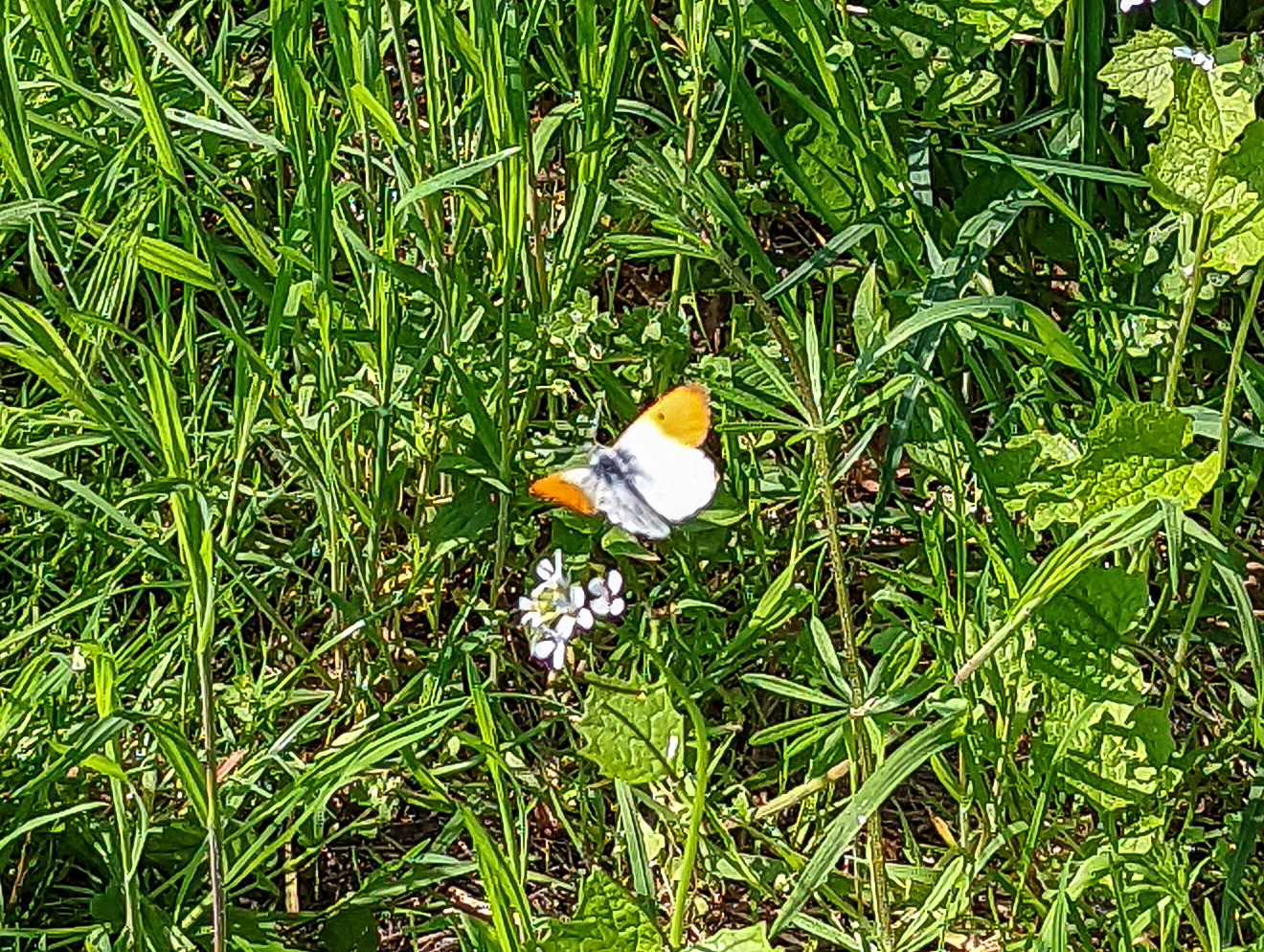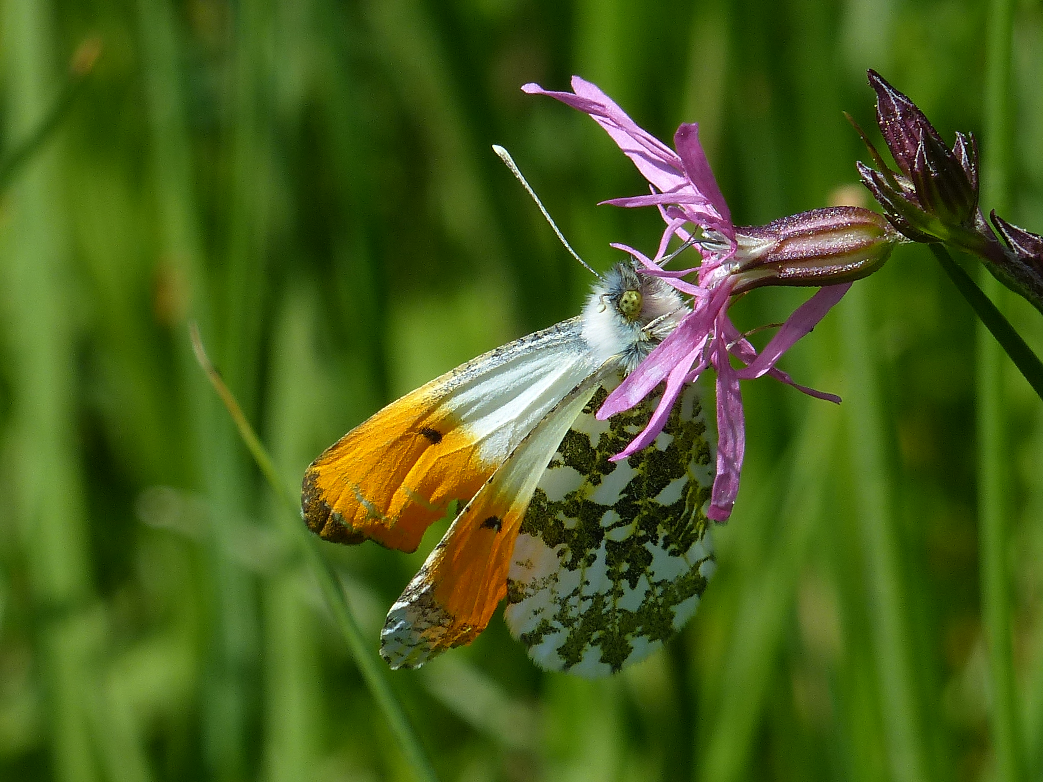 Aurorafalter (Anthocharis cardamines (Linnaeus, 1758)), Männchen, Blütenbesuch an Stellaria holostea, bei Nossen, April 2020 (© Andreas Hurtig)( Bild vergrößern)