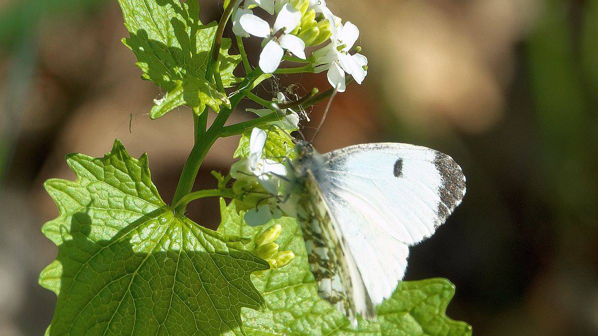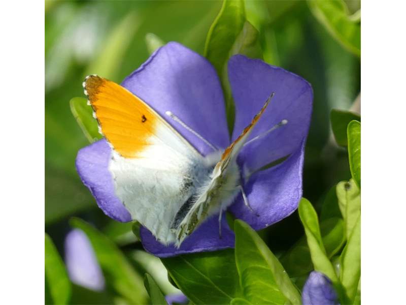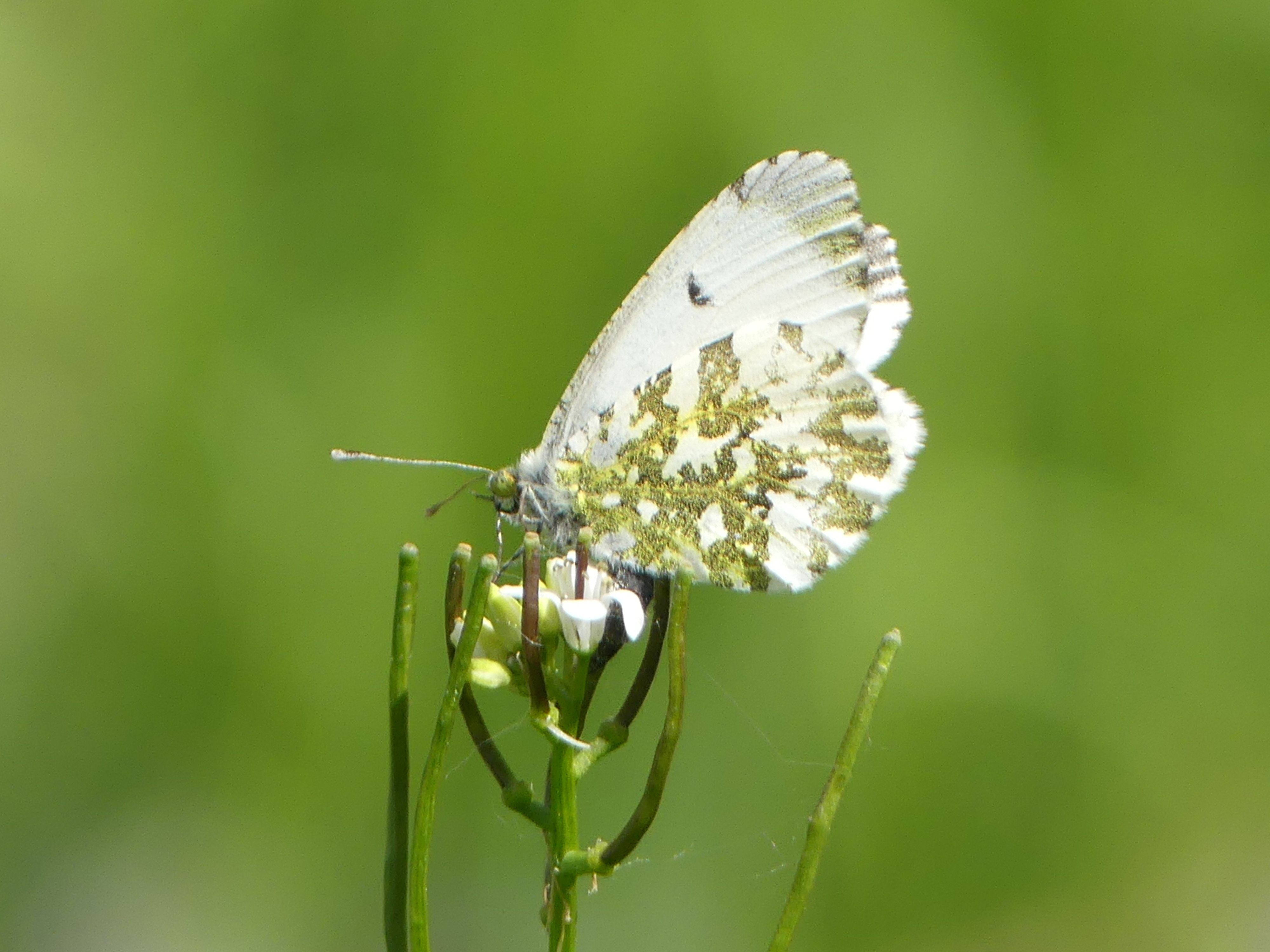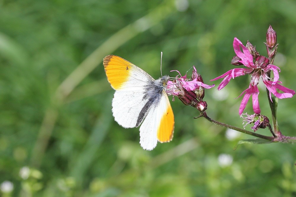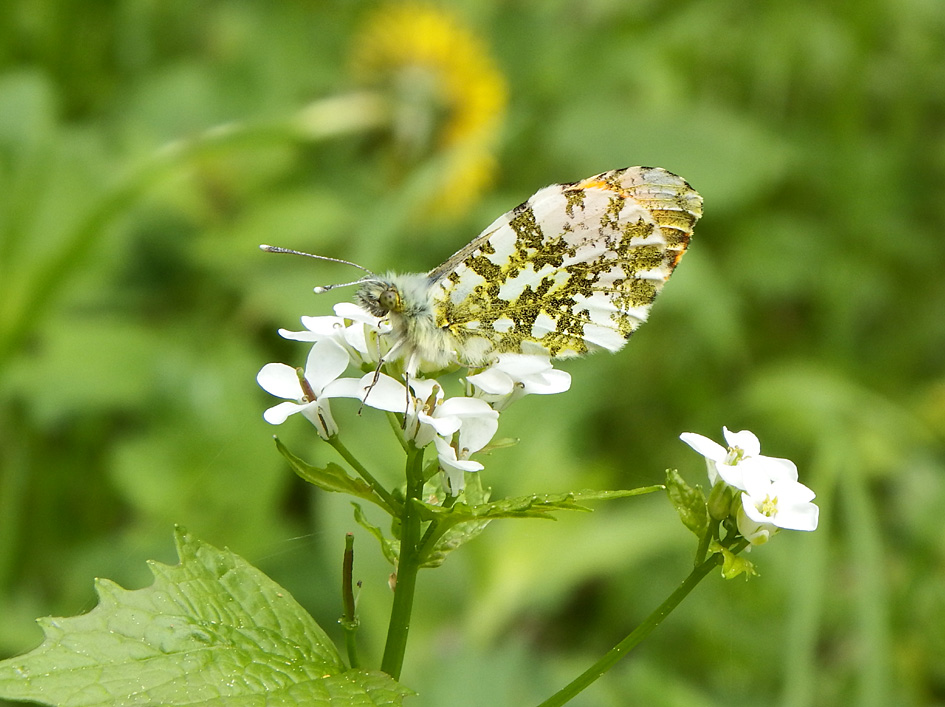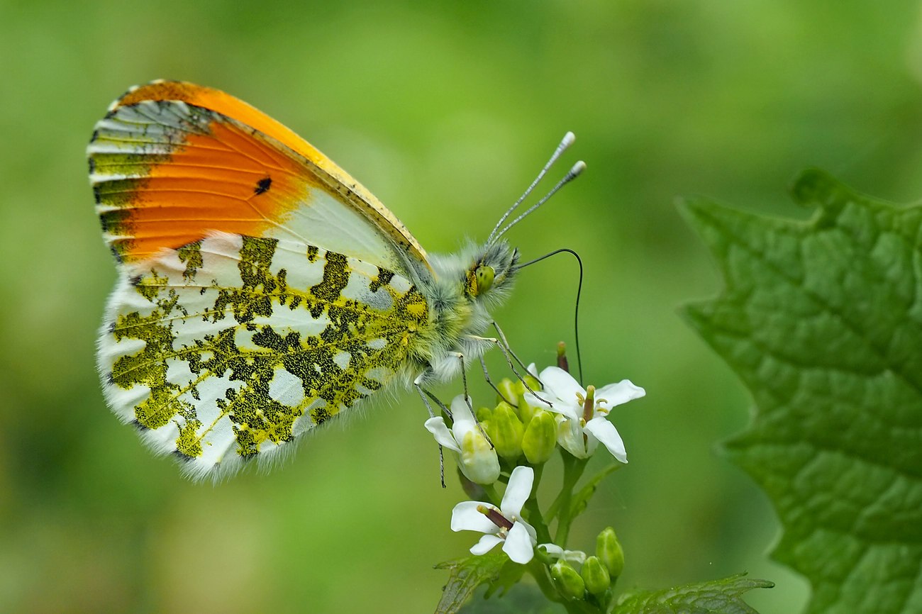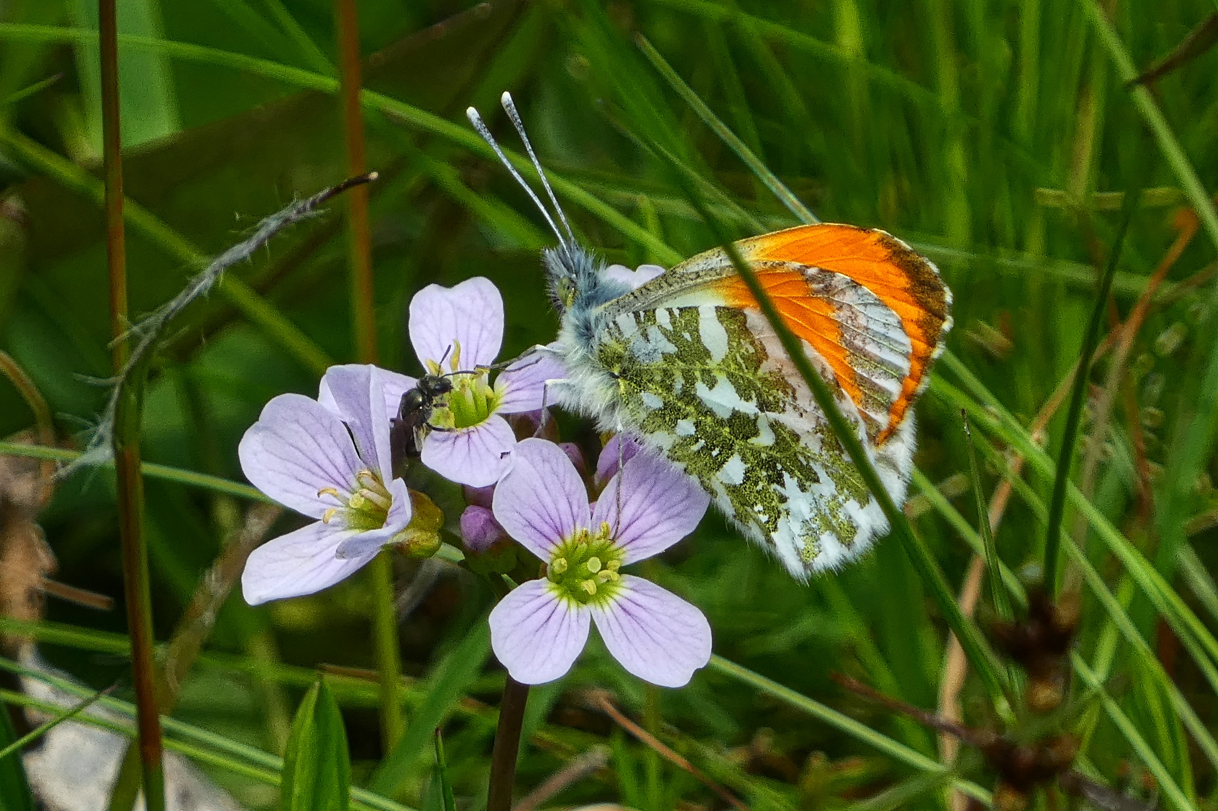 Aurorafalter (Anthocharis cardamines (Linnaeus, 1758)), Männchen, Blütenbesuch an Stellaria holostea, bei Nossen, April 2020 (© Andreas Hurtig)( Bild vergrößern)