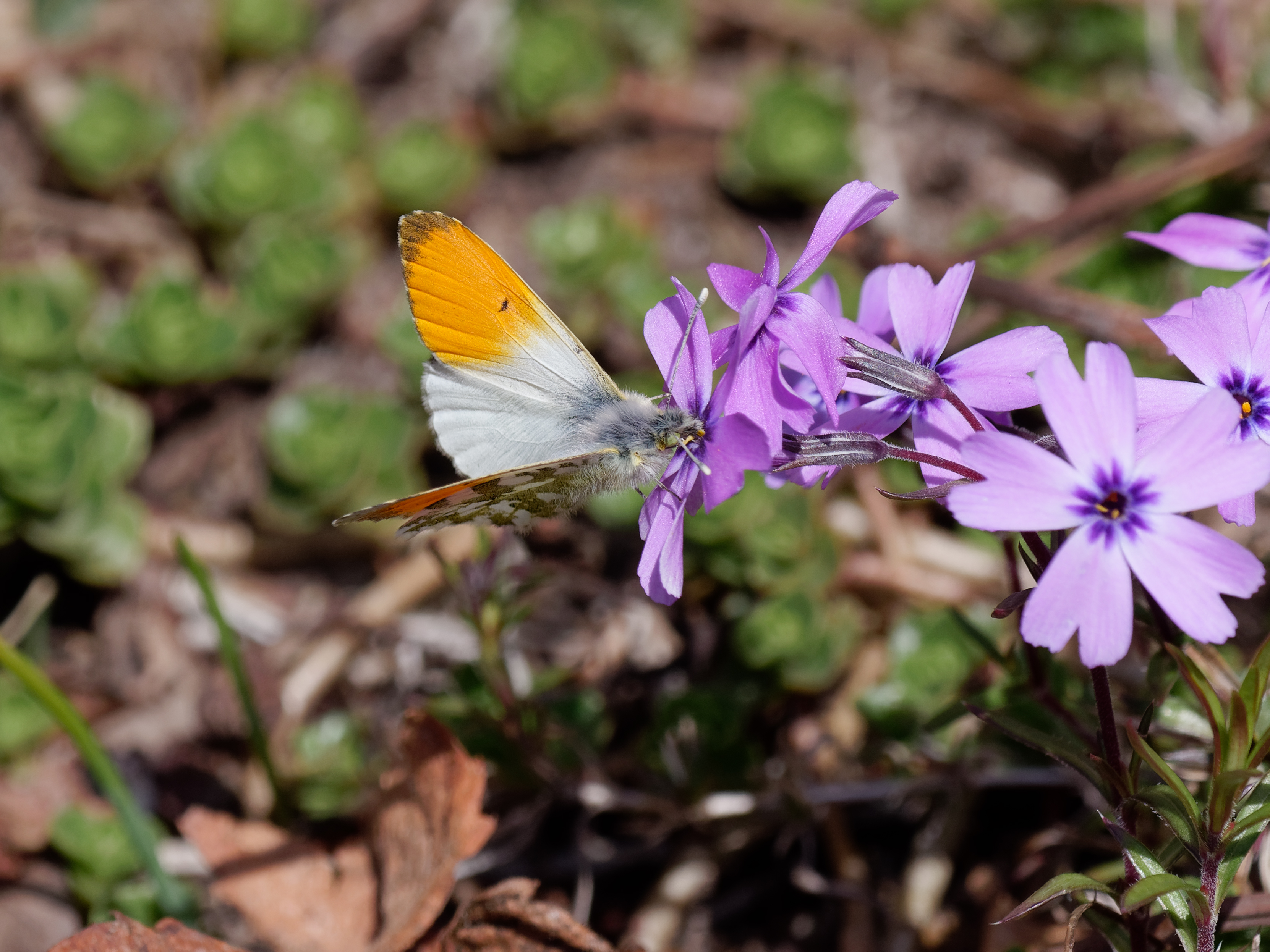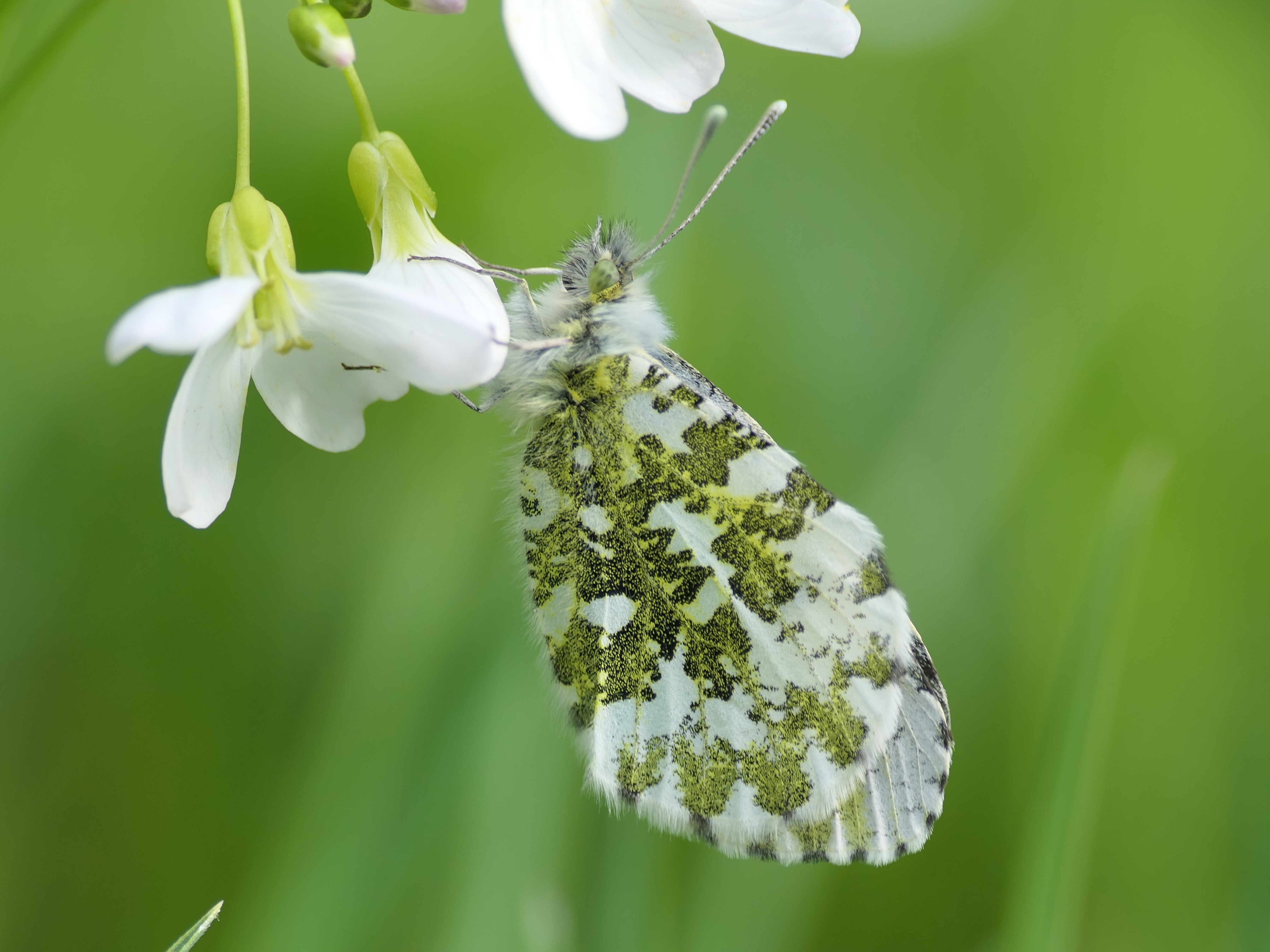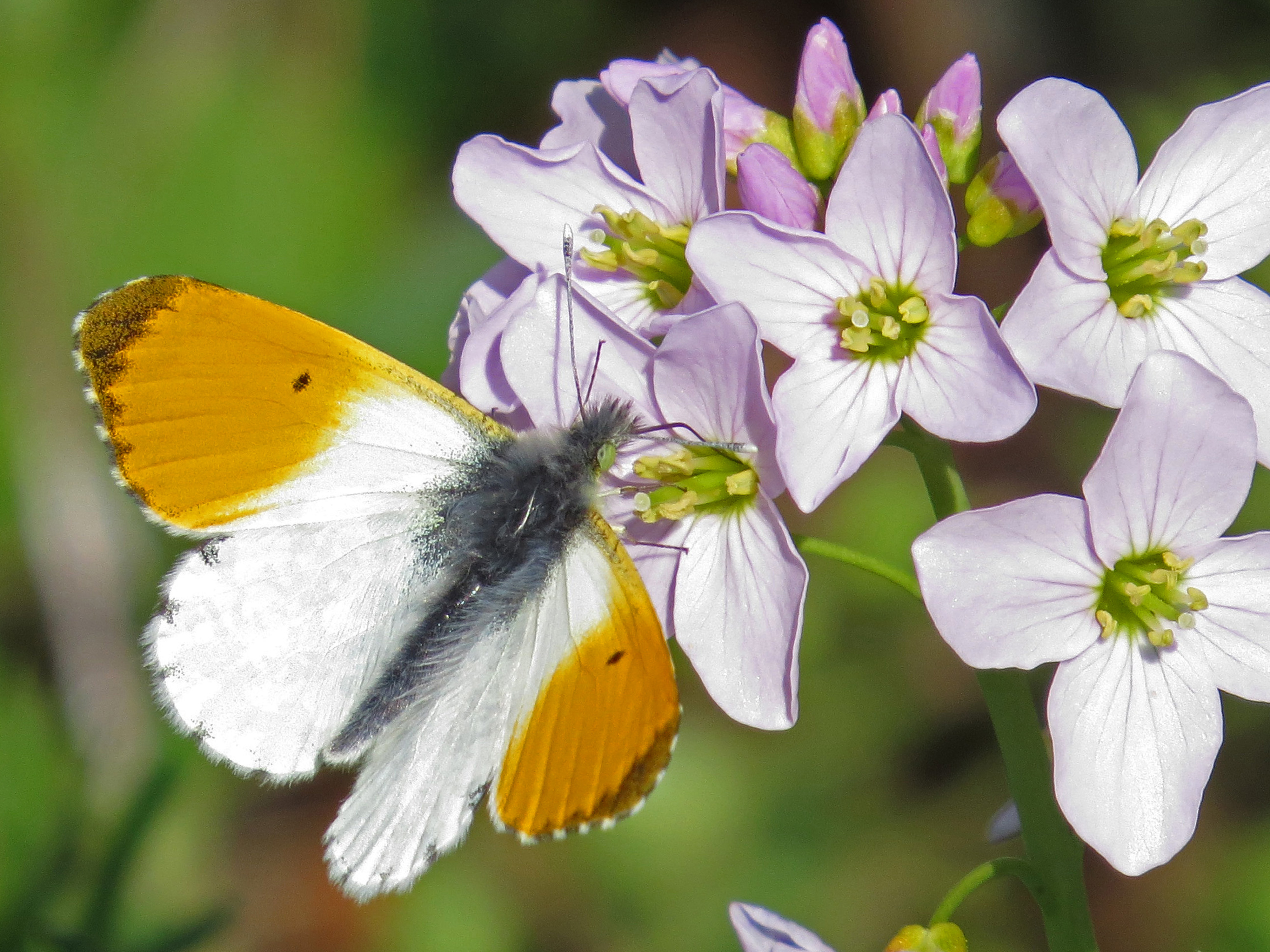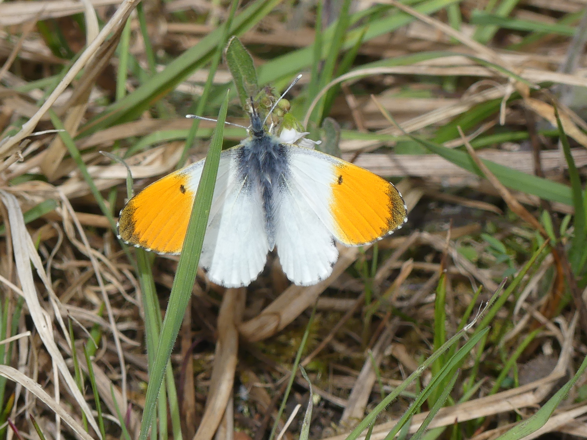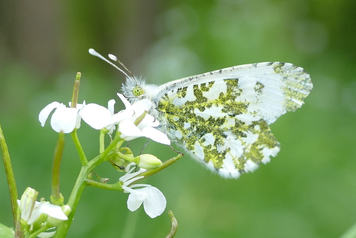 Aurorafalter (Anthocharis cardamines (Linnaeus, 1758)), Männchen, Blütenbesuch an Stellaria holostea, bei Nossen, April 2020 (© Andreas Hurtig)( Bild vergrößern)