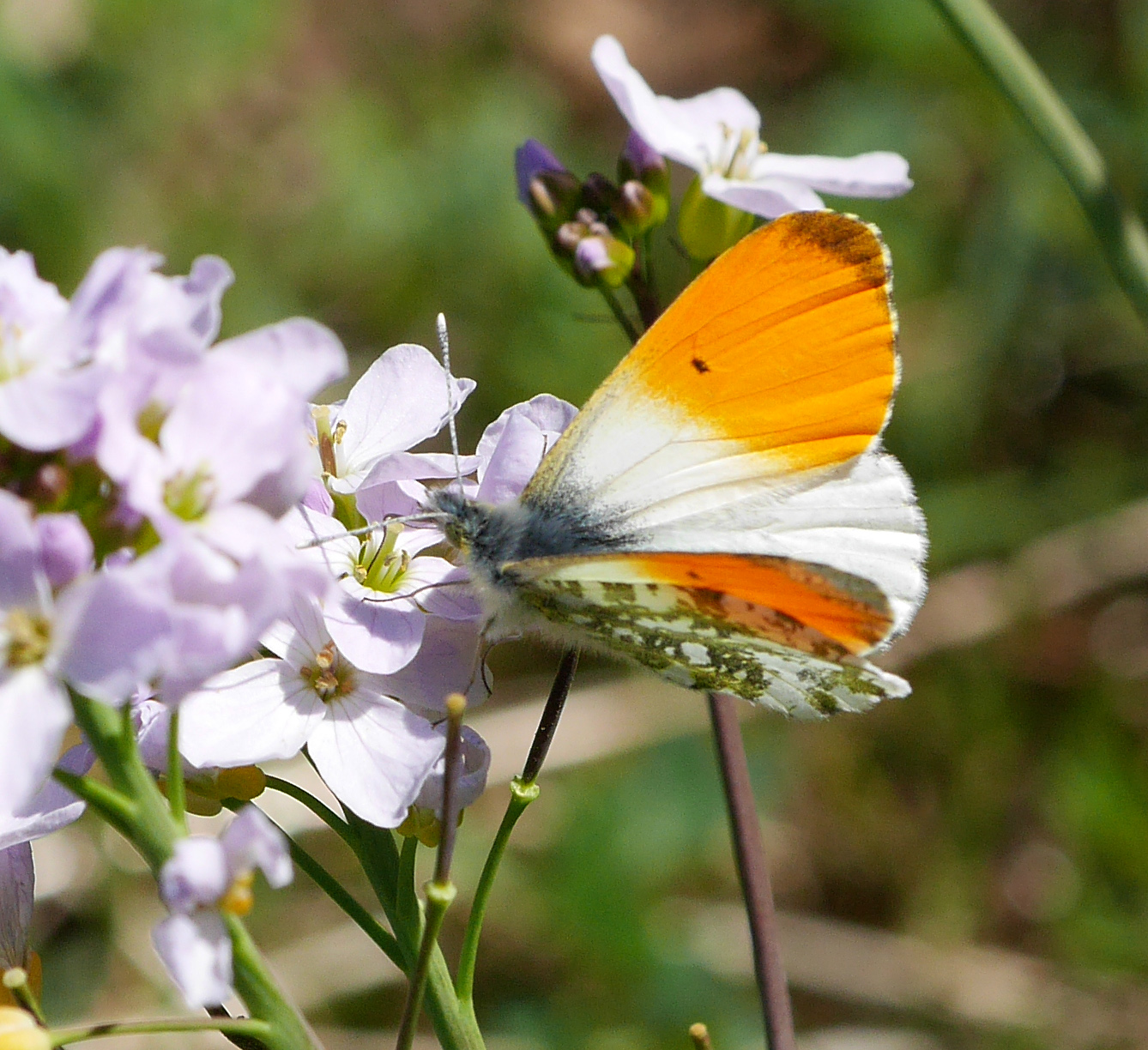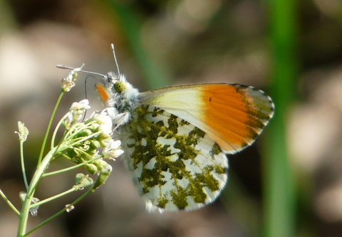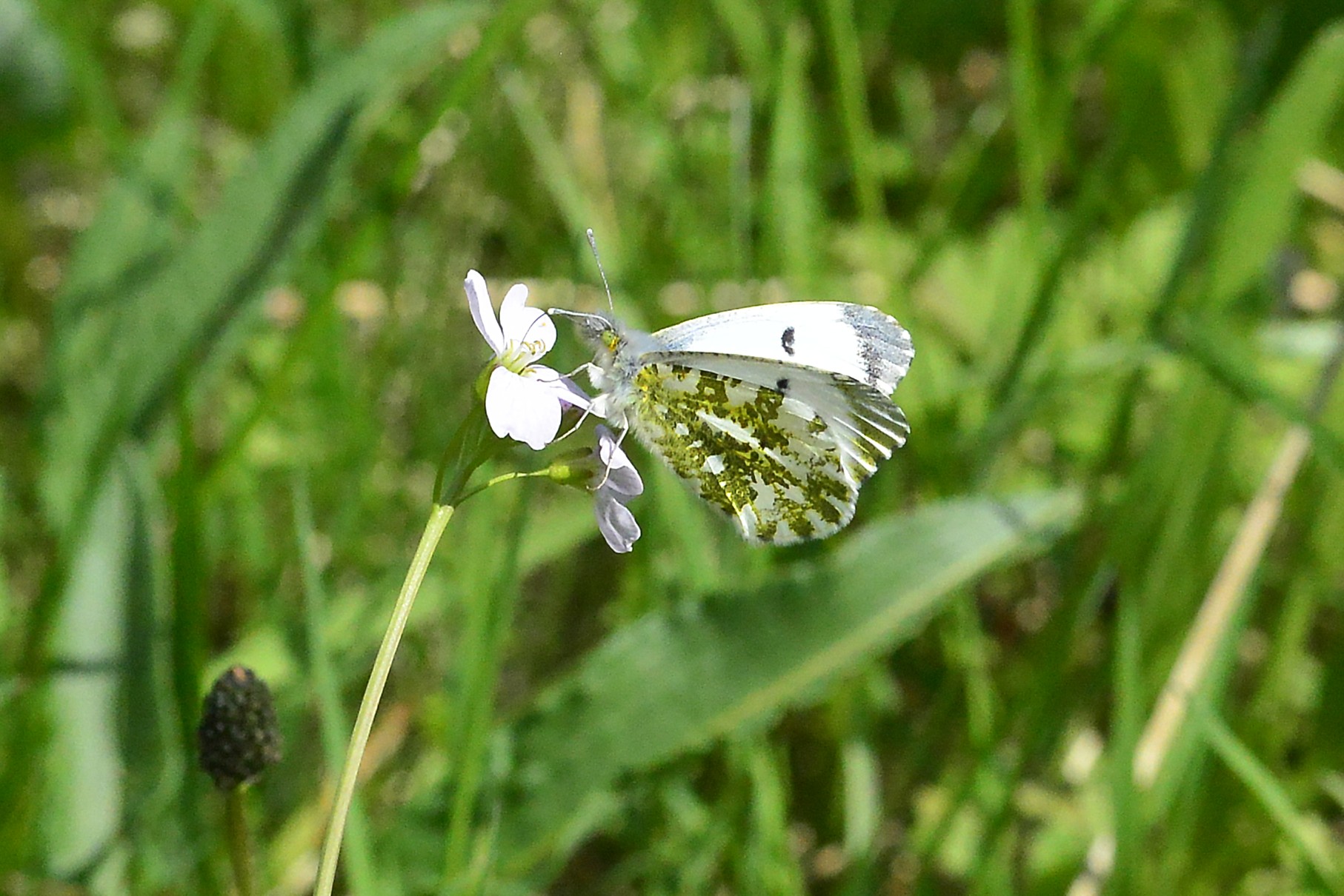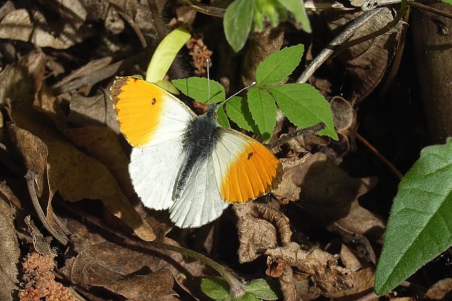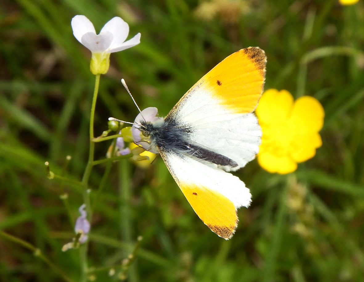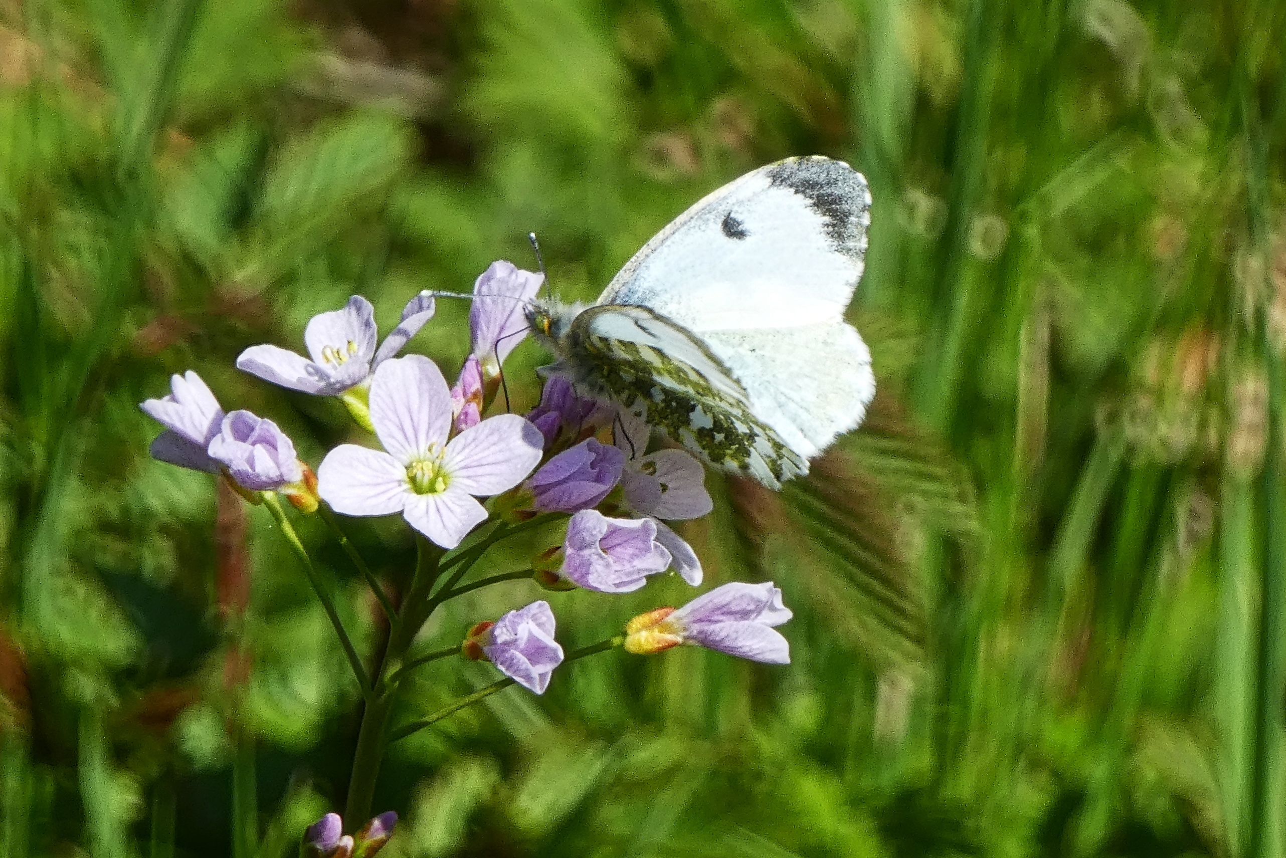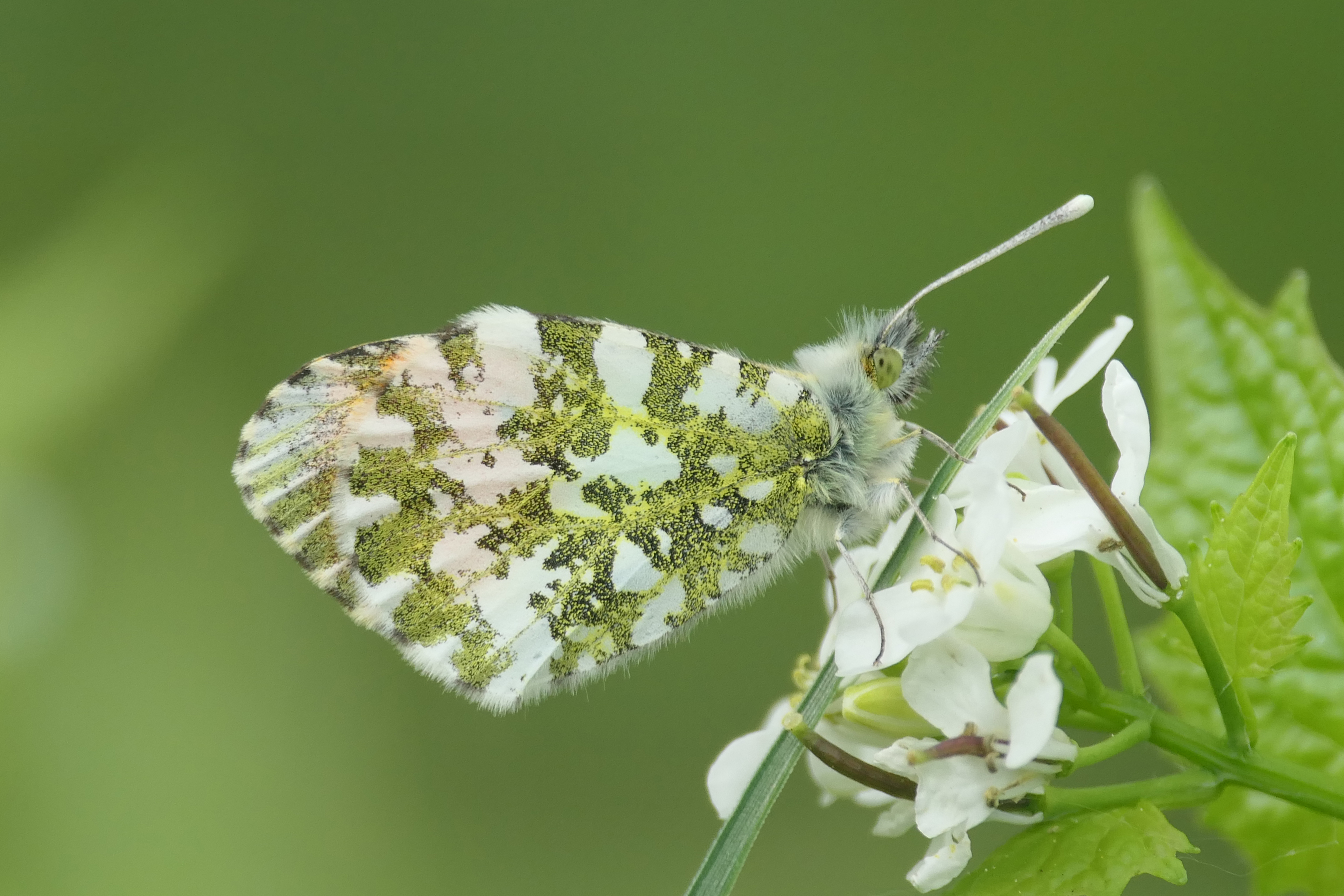 Aurorafalter (Anthocharis cardamines (Linnaeus, 1758)), Männchen, Blütenbesuch an Stellaria holostea, bei Nossen, April 2020 (© Andreas Hurtig)( Bild vergrößern)