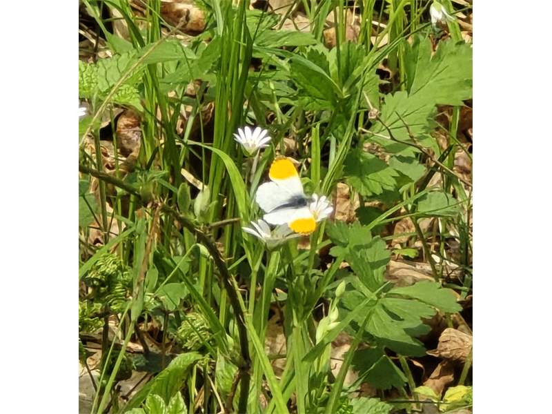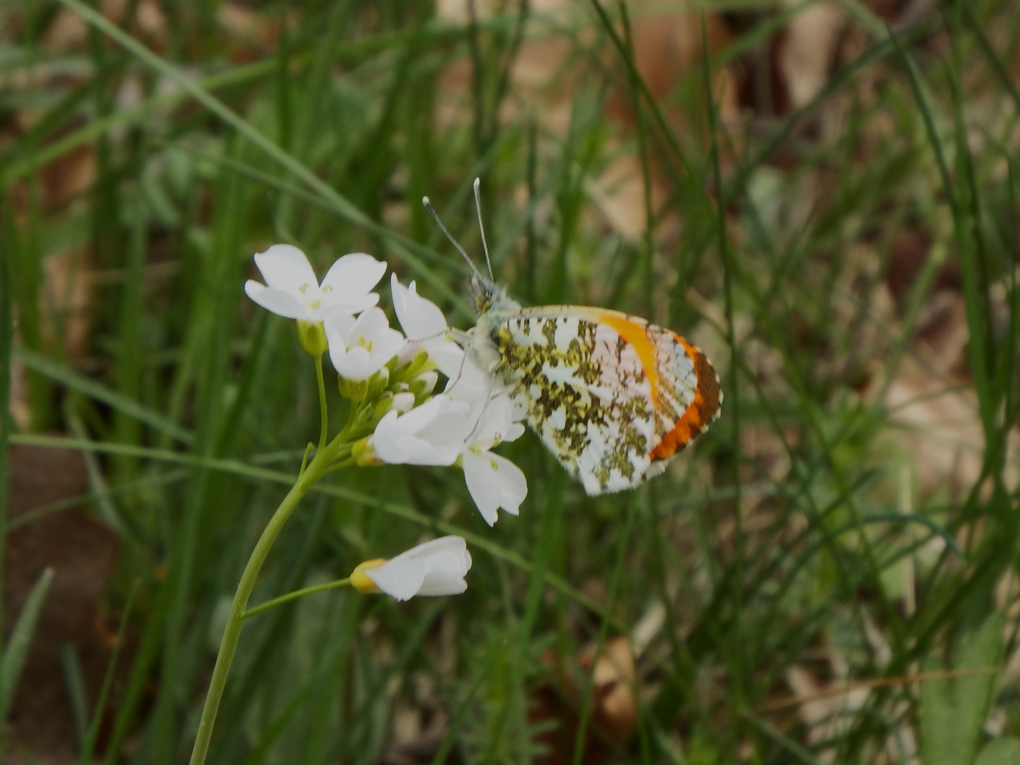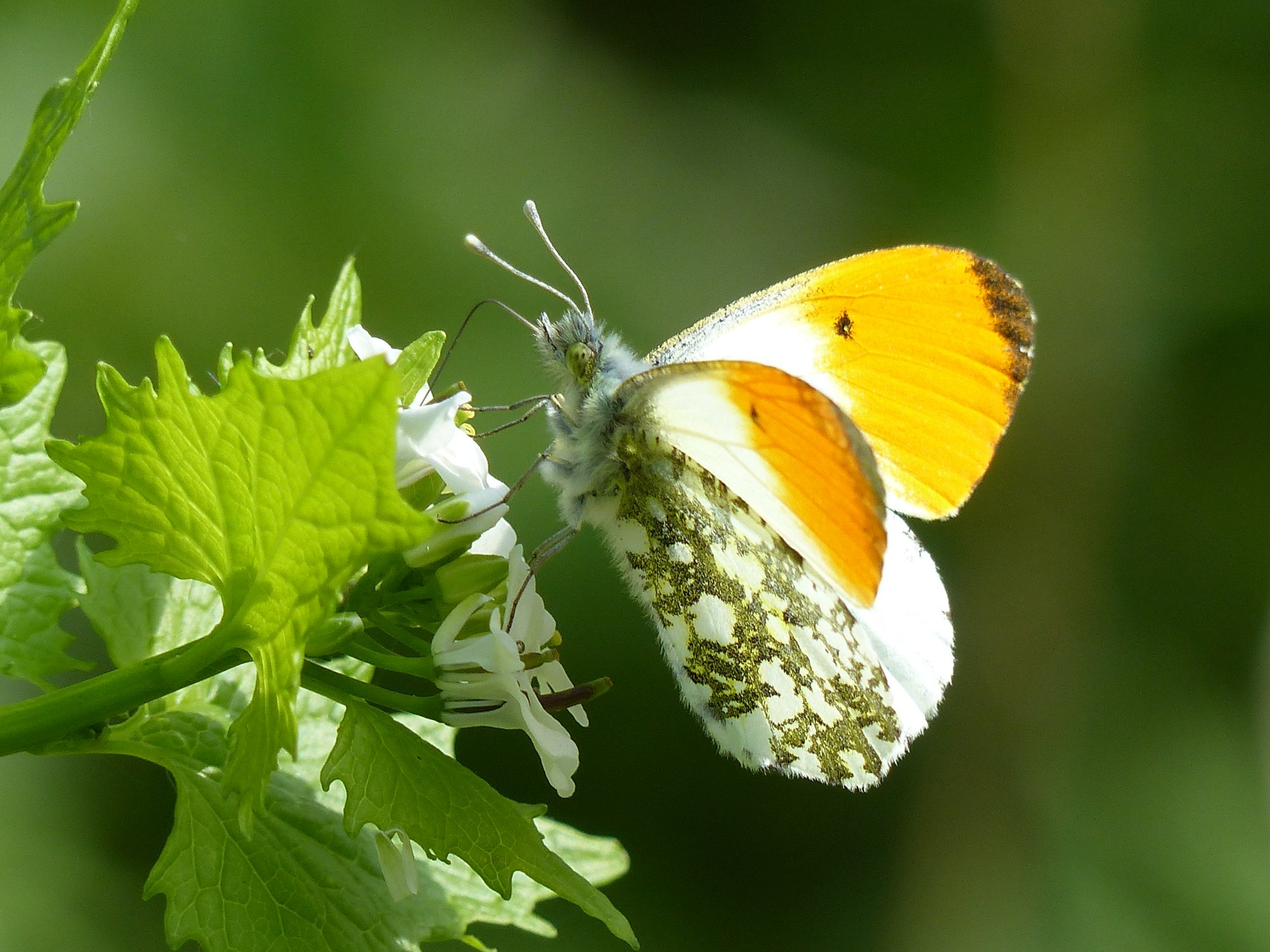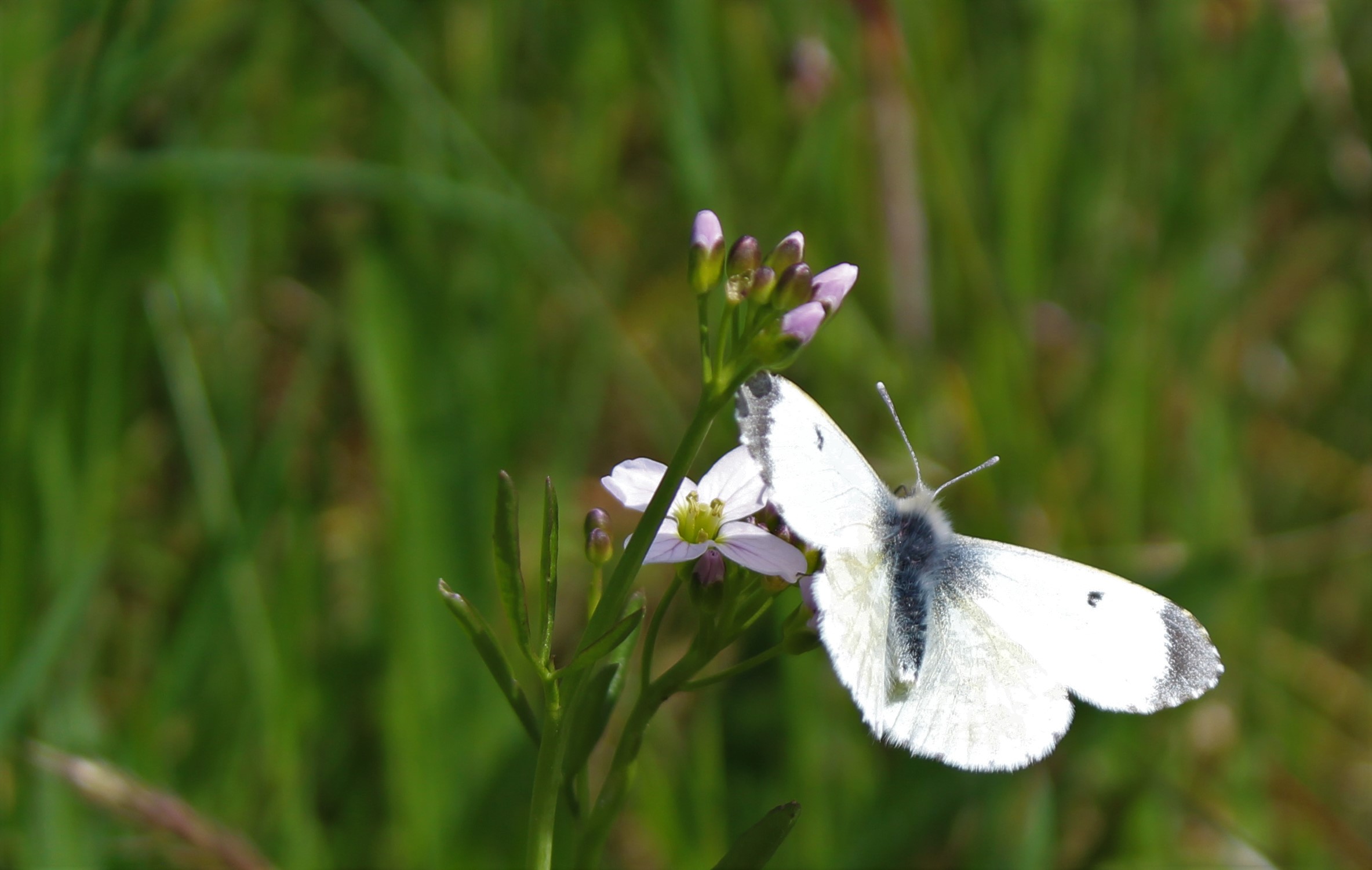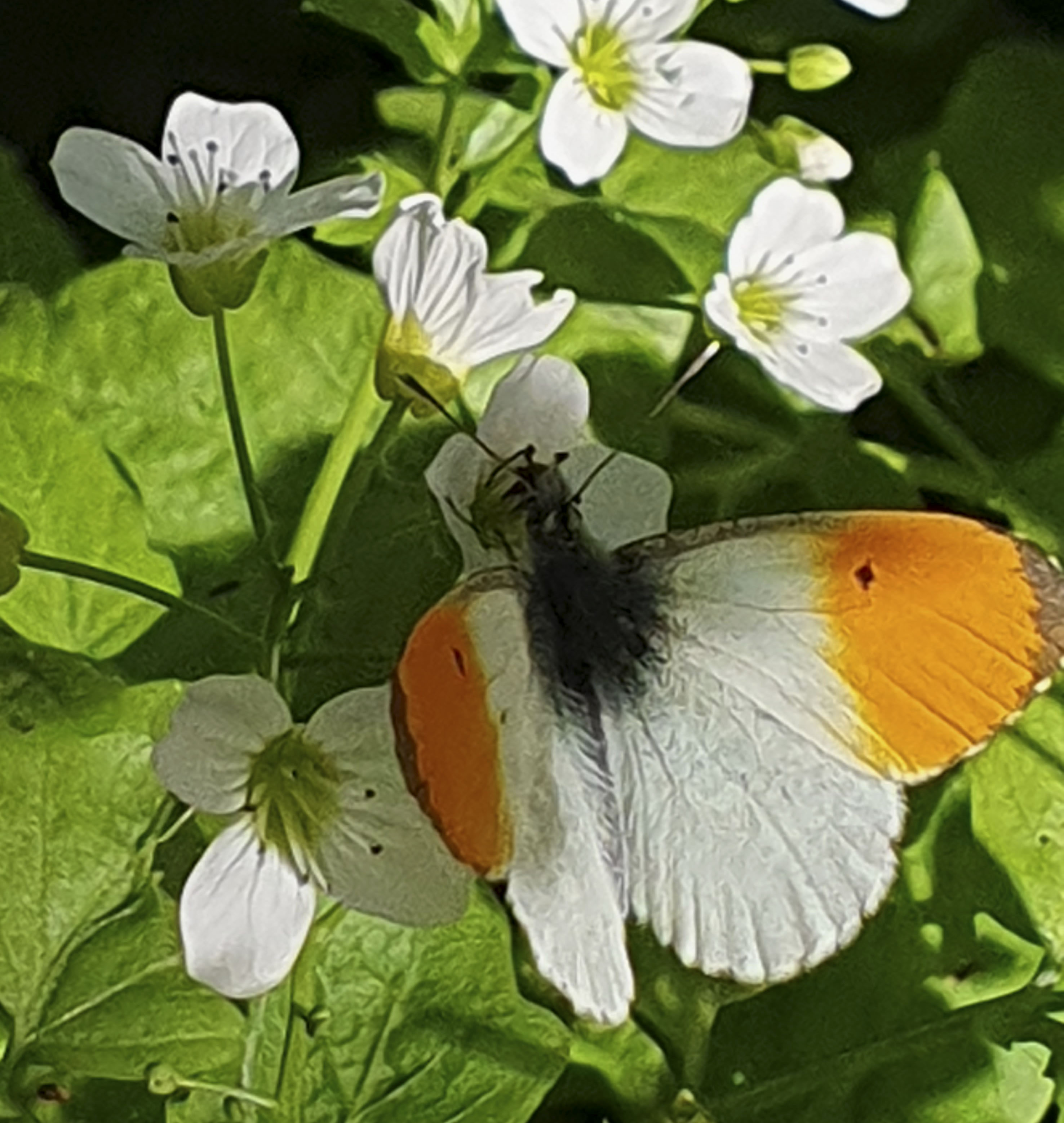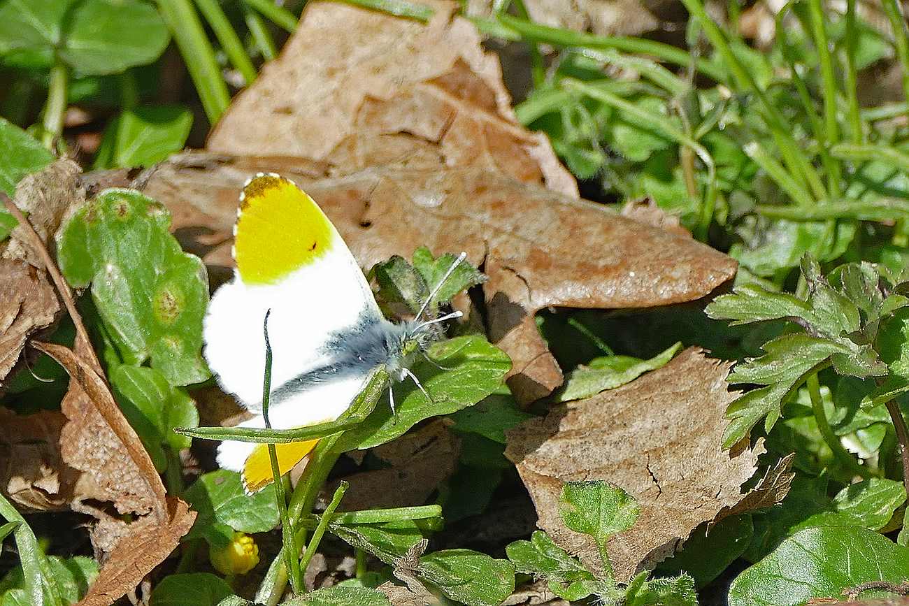 Aurorafalter (Anthocharis cardamines (Linnaeus, 1758)), Männchen, Blütenbesuch an Stellaria holostea, bei Nossen, April 2020 (© Andreas Hurtig)( Bild vergrößern)