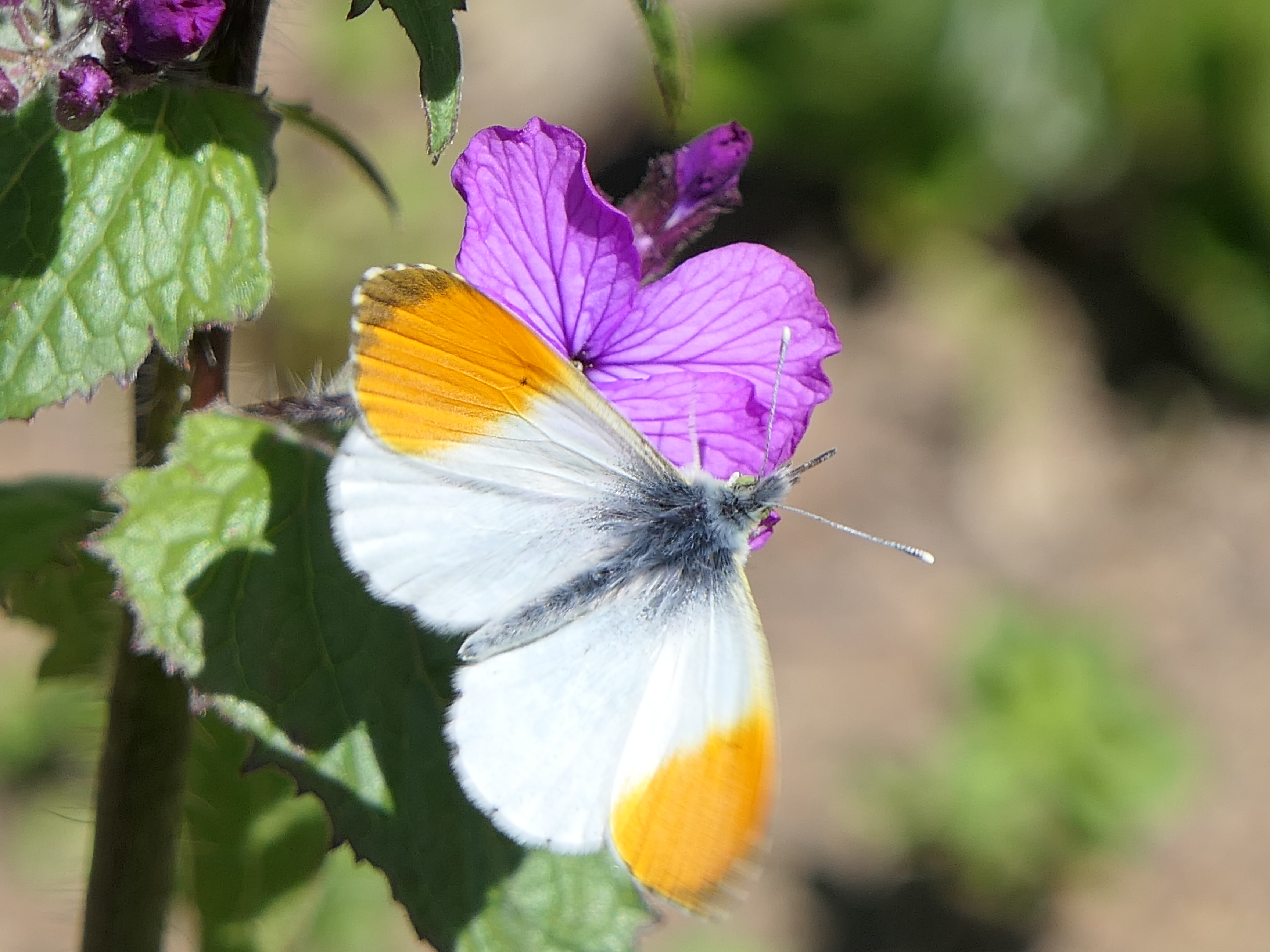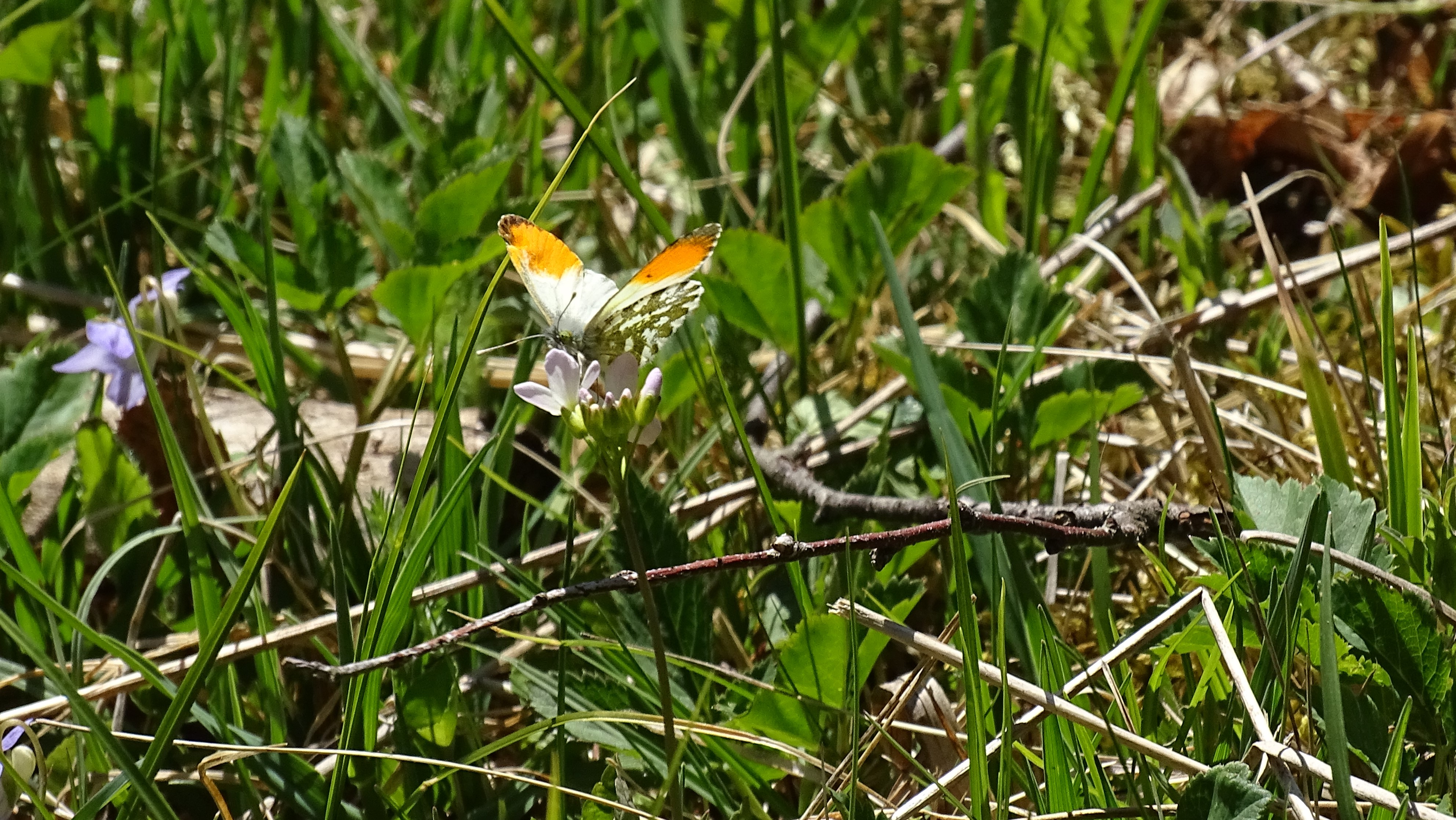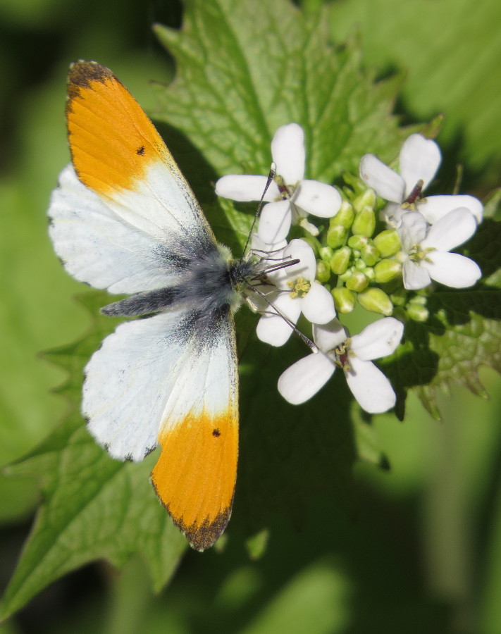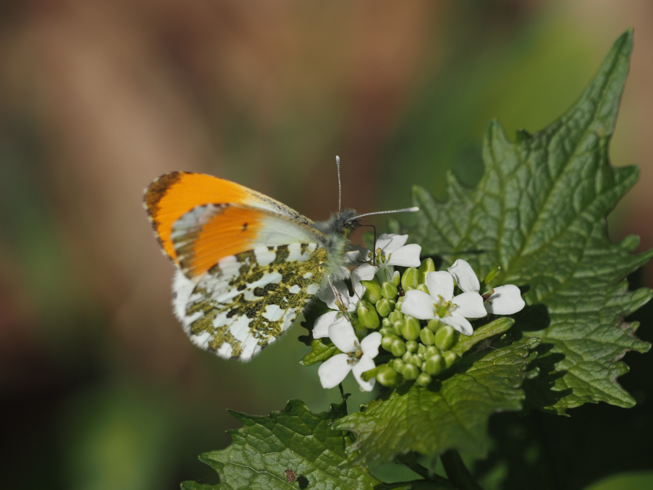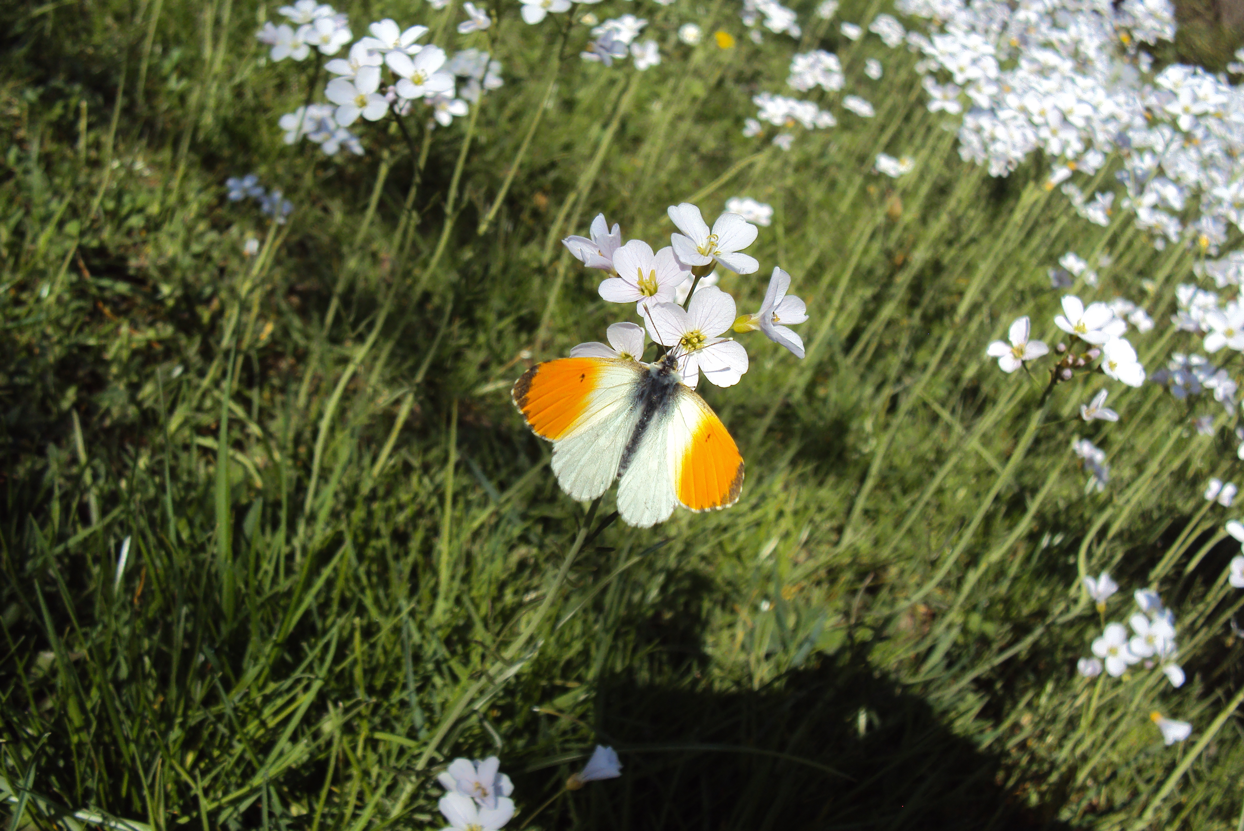 Aurorafalter (Anthocharis cardamines (Linnaeus, 1758)), Männchen, Blütenbesuch an Stellaria holostea, bei Nossen, April 2020 (© Andreas Hurtig)( Bild vergrößern)