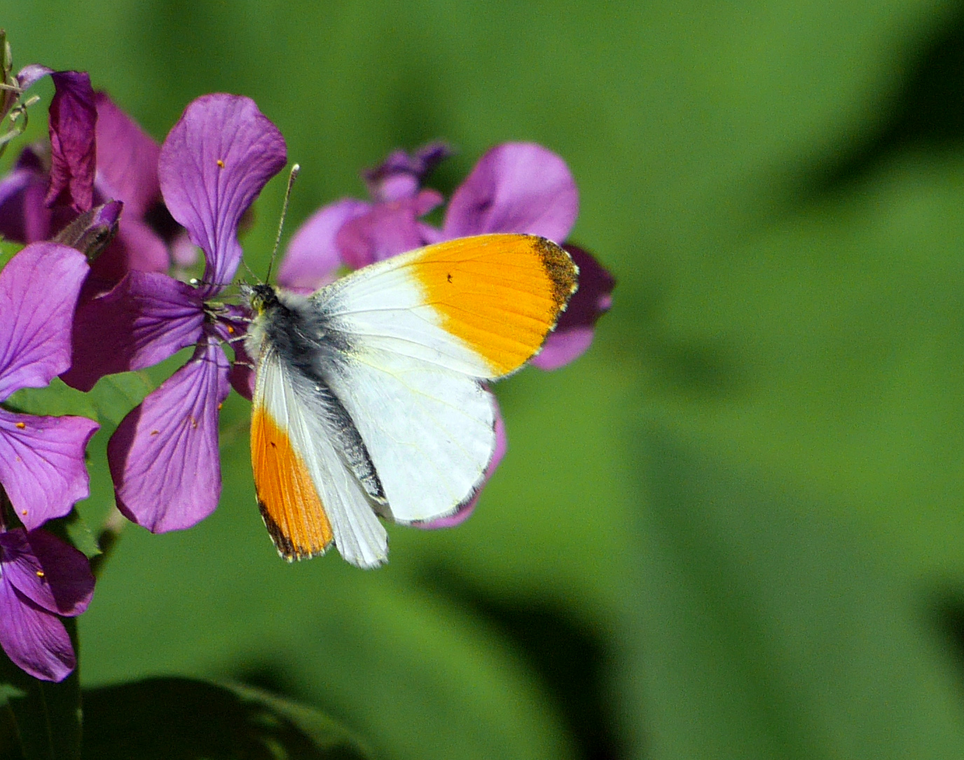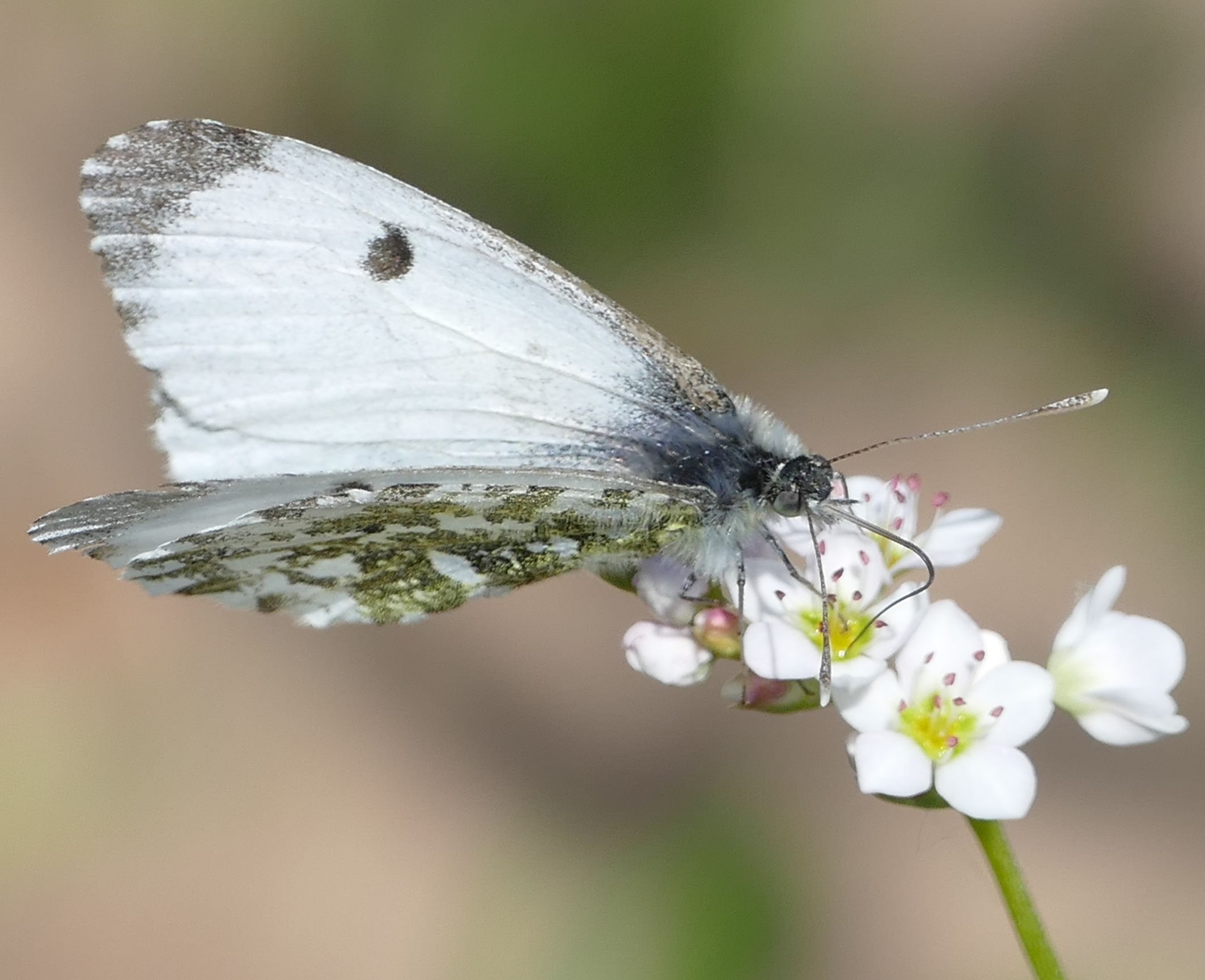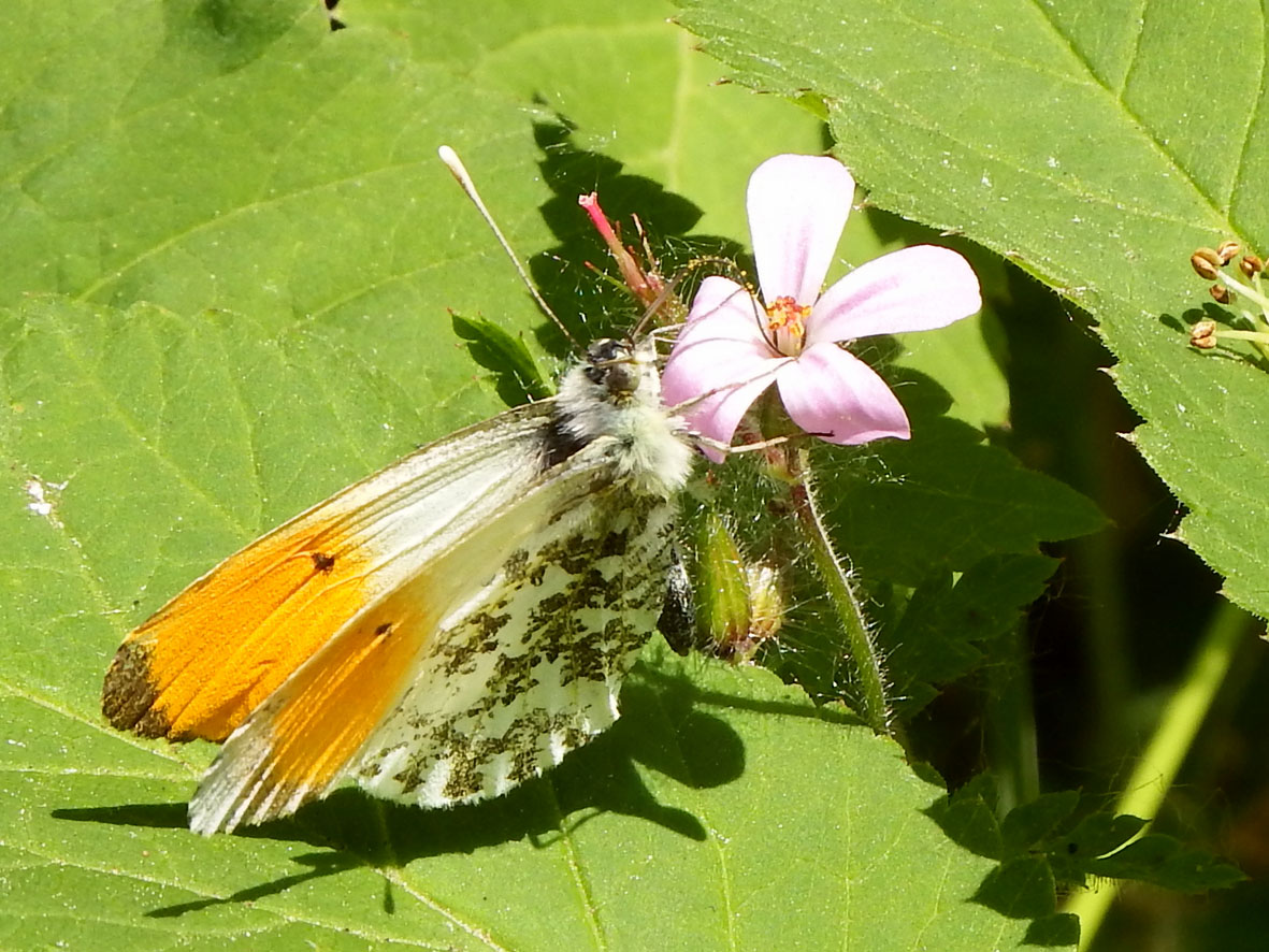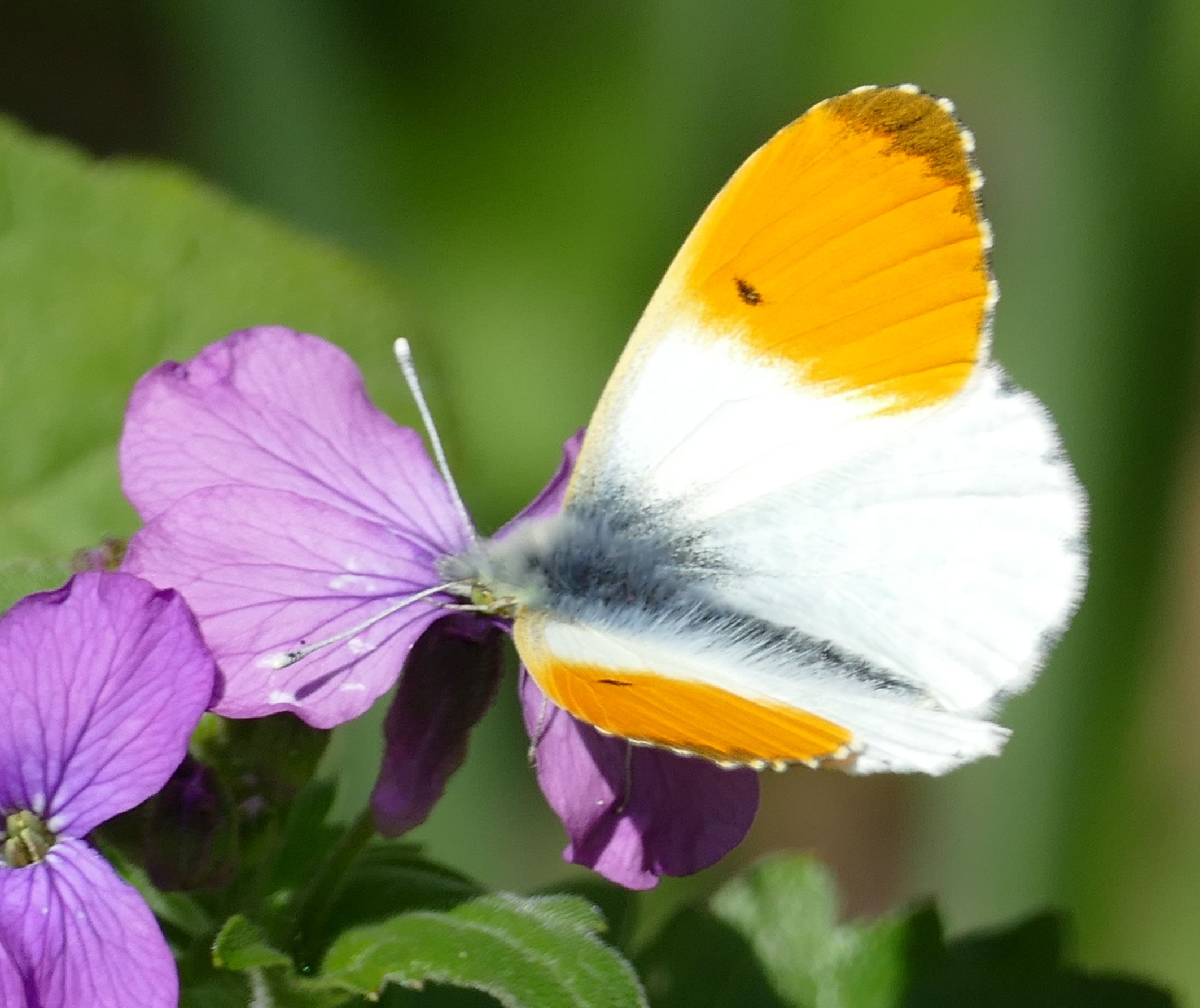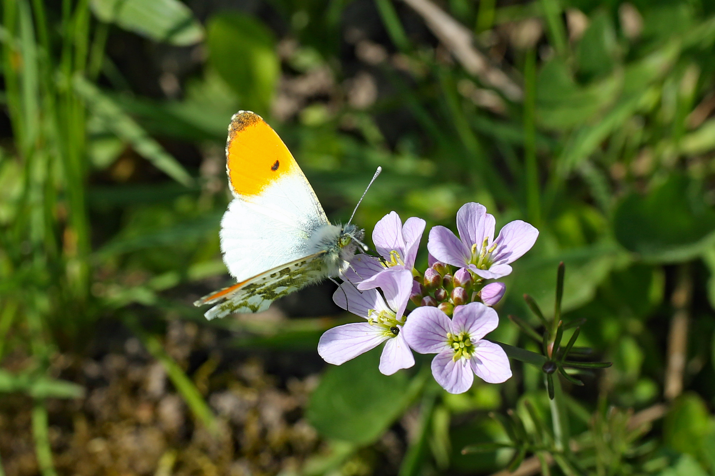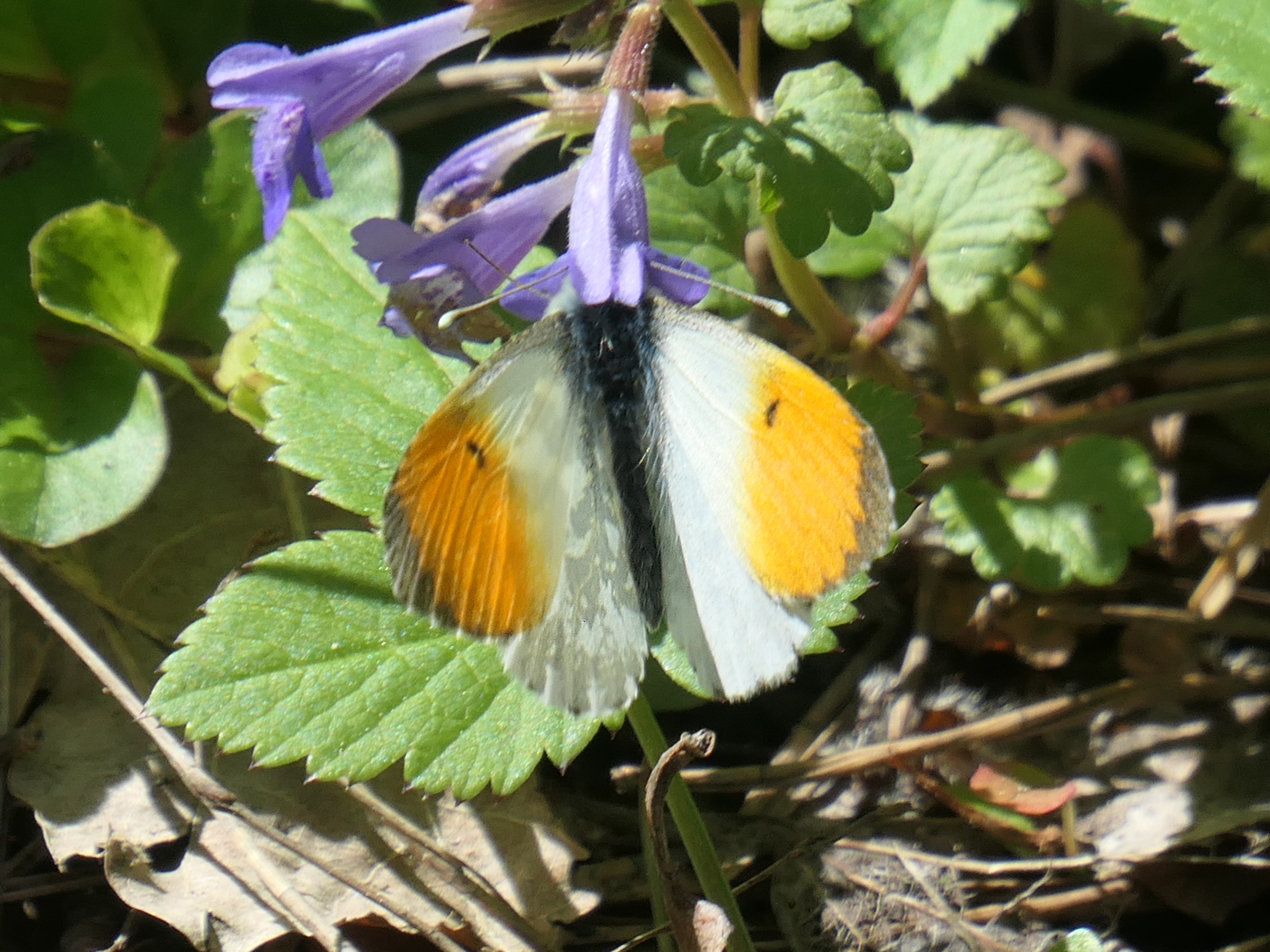 Aurorafalter (Anthocharis cardamines (Linnaeus, 1758)), Männchen, Blütenbesuch an Stellaria holostea, bei Nossen, April 2020 (© Andreas Hurtig)( Bild vergrößern)