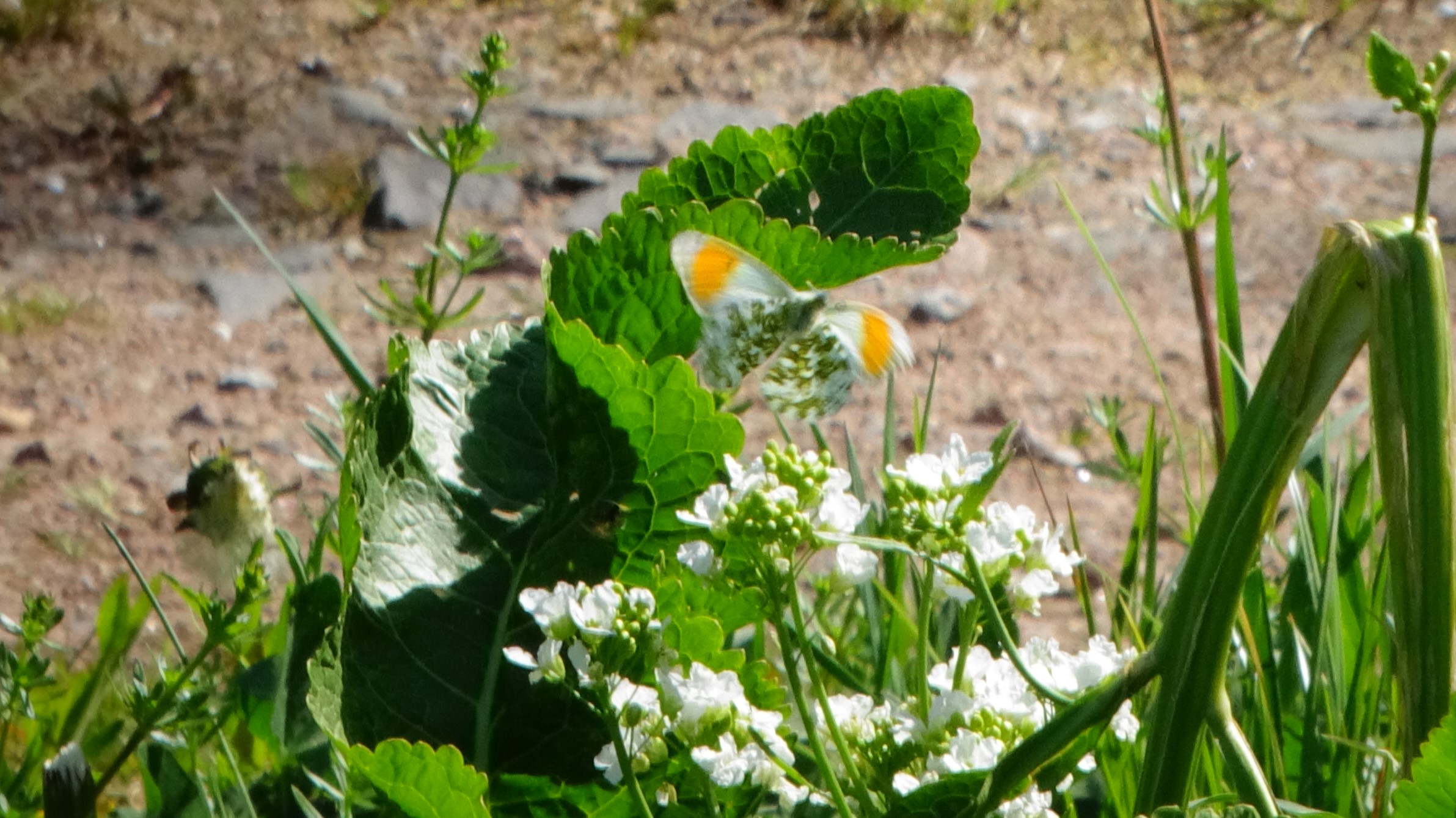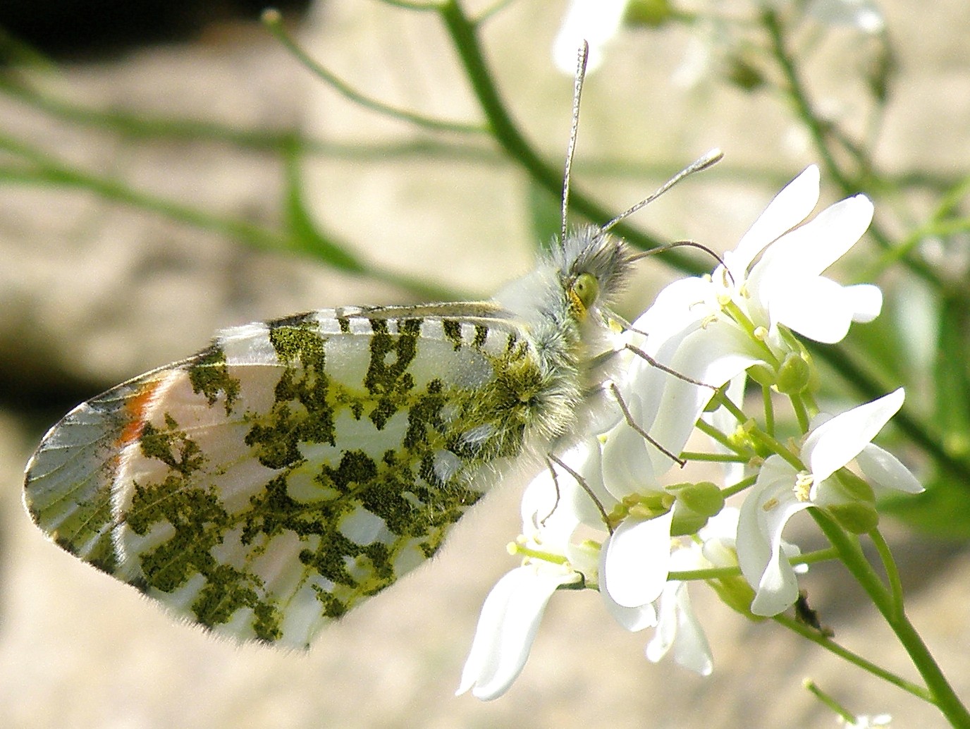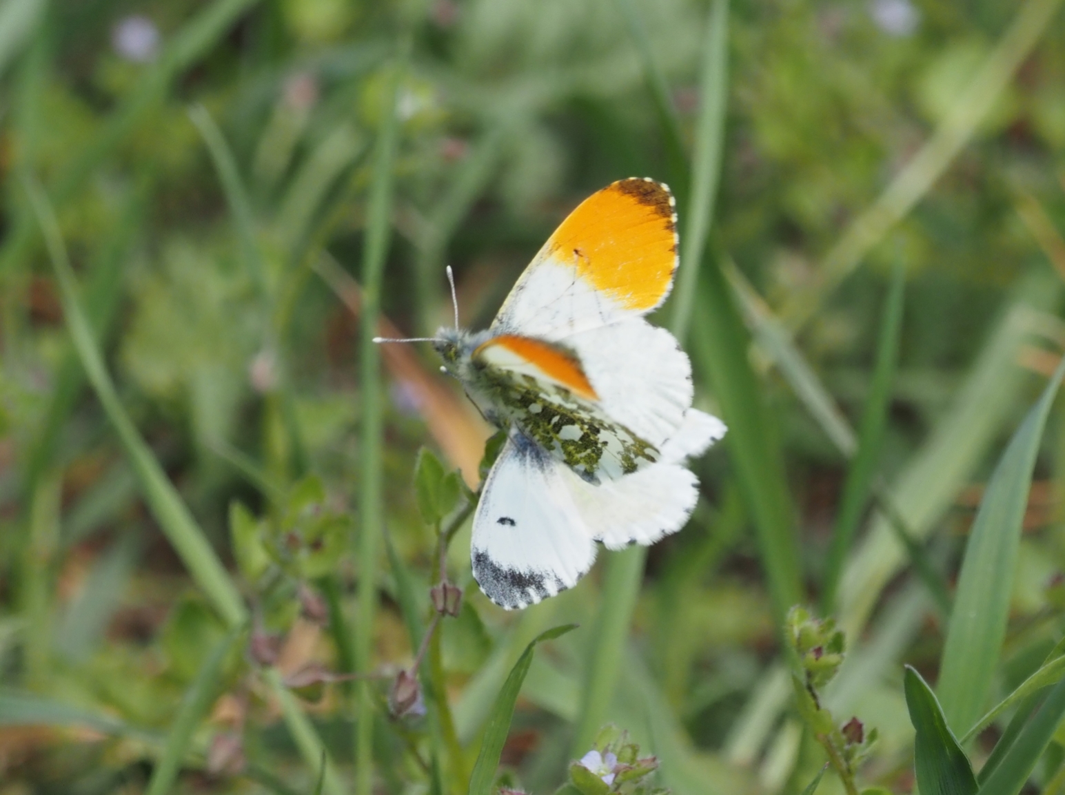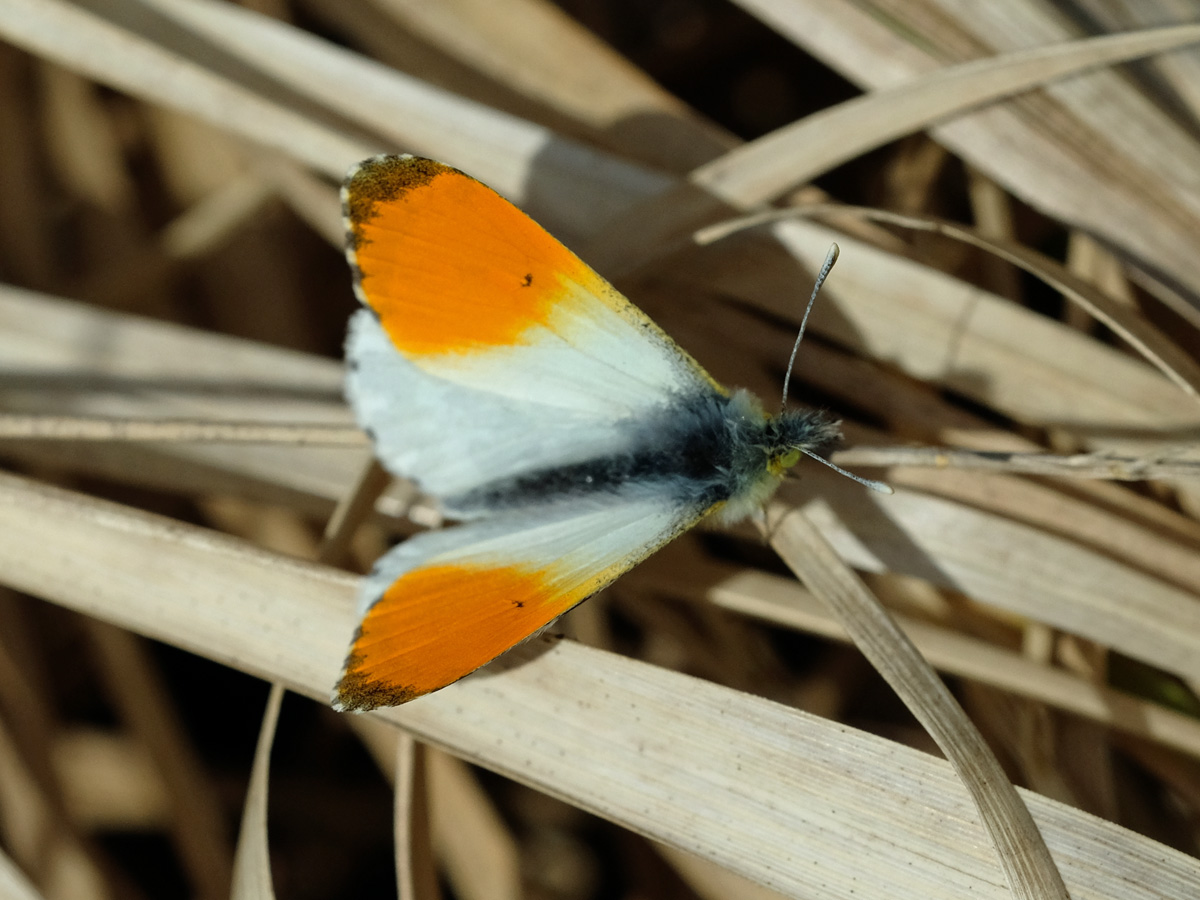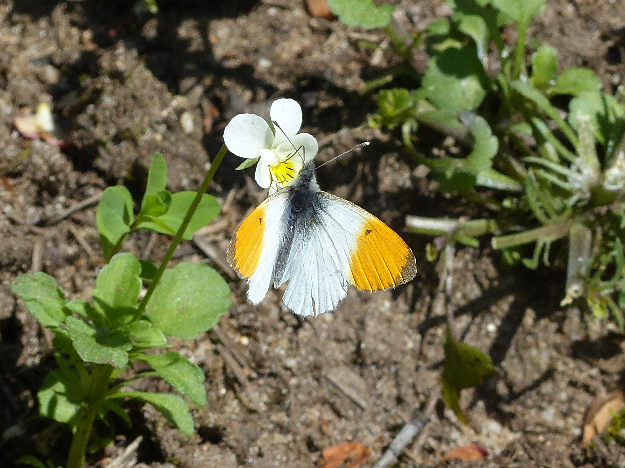 Aurorafalter (Anthocharis cardamines (Linnaeus, 1758)), Männchen, Blütenbesuch an Stellaria holostea, bei Nossen, April 2020 (© Andreas Hurtig)( Bild vergrößern)