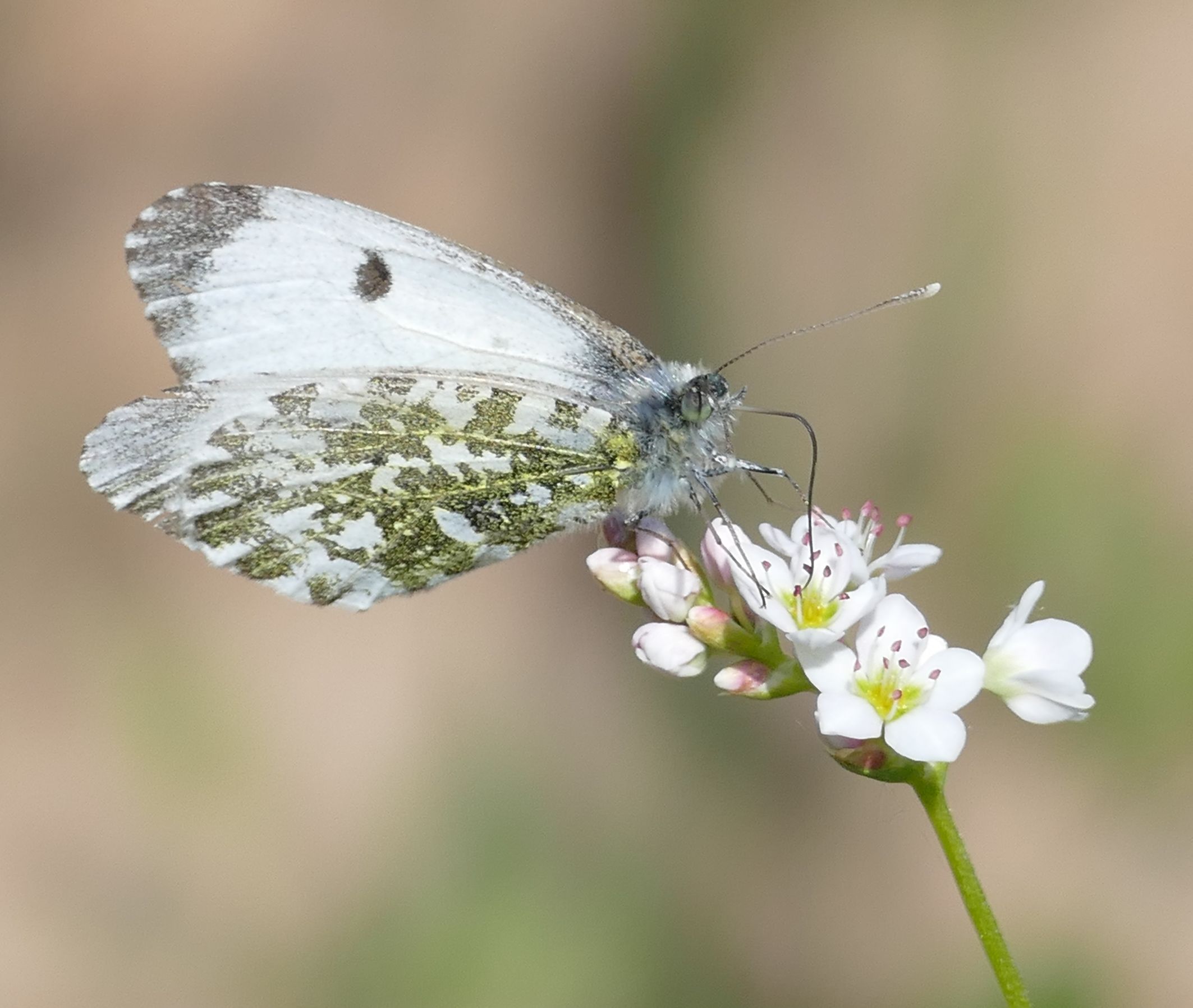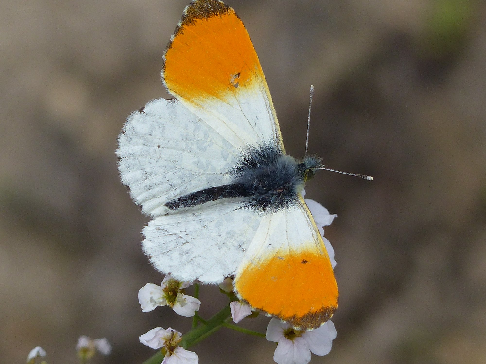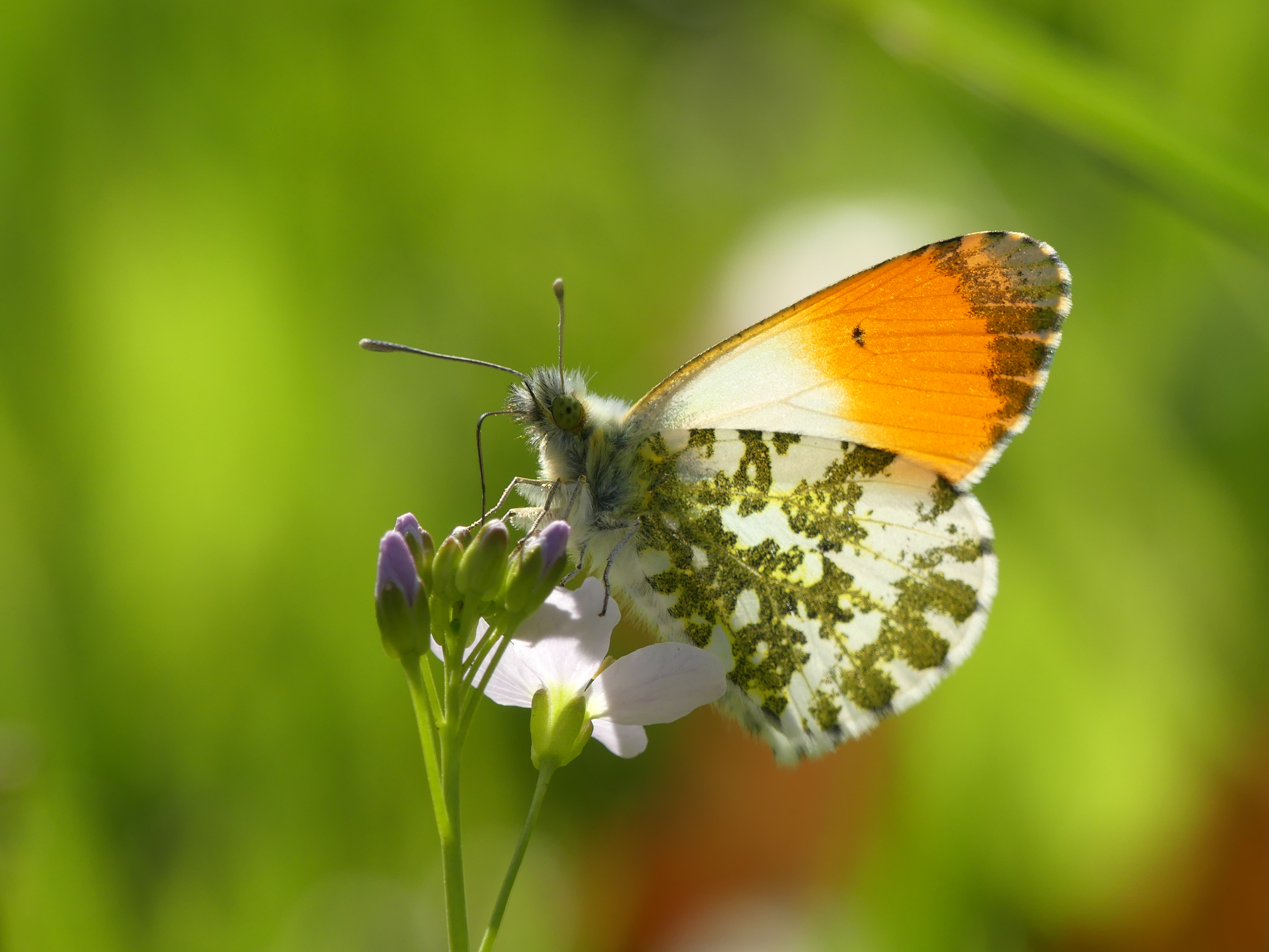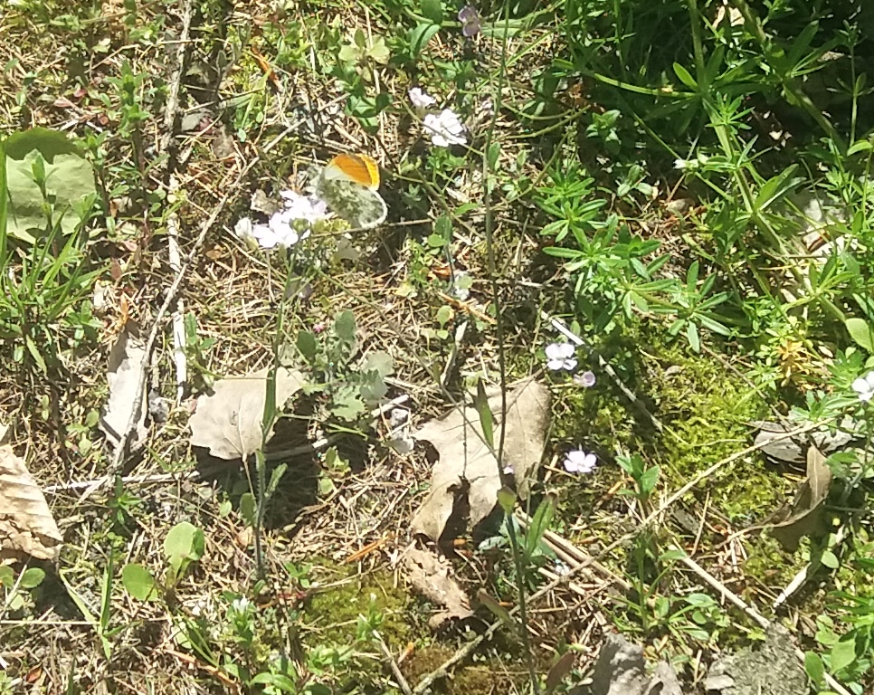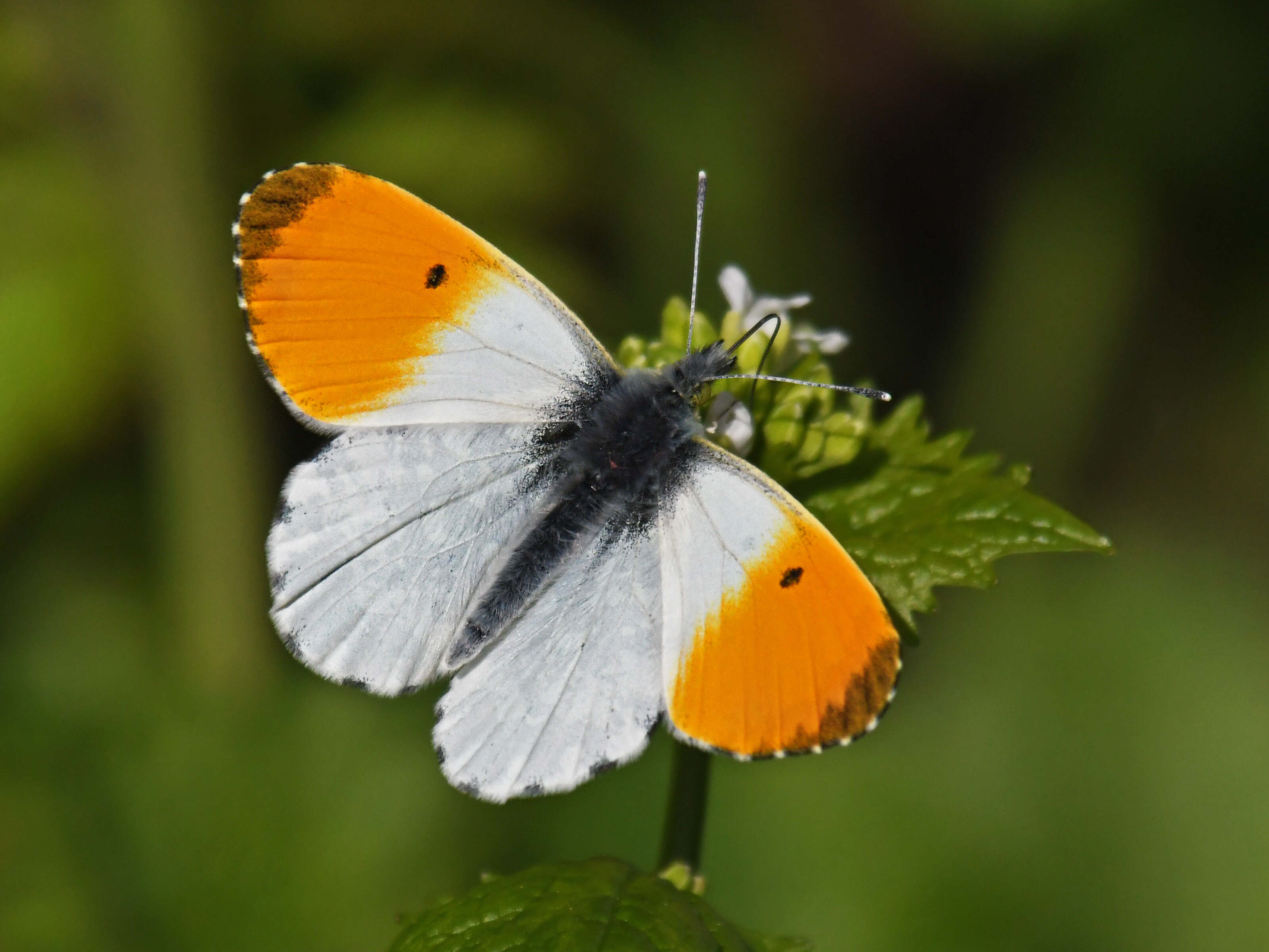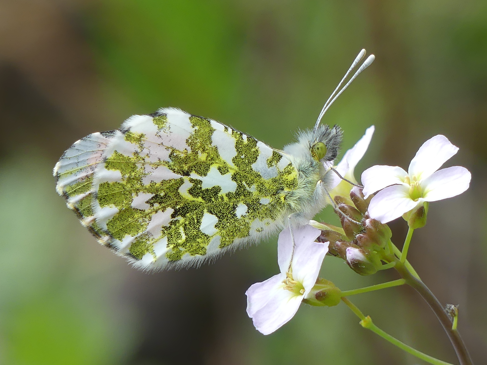 Aurorafalter (Anthocharis cardamines (Linnaeus, 1758)), Männchen, Blütenbesuch an Stellaria holostea, bei Nossen, April 2020 (© Andreas Hurtig)( Bild vergrößern)