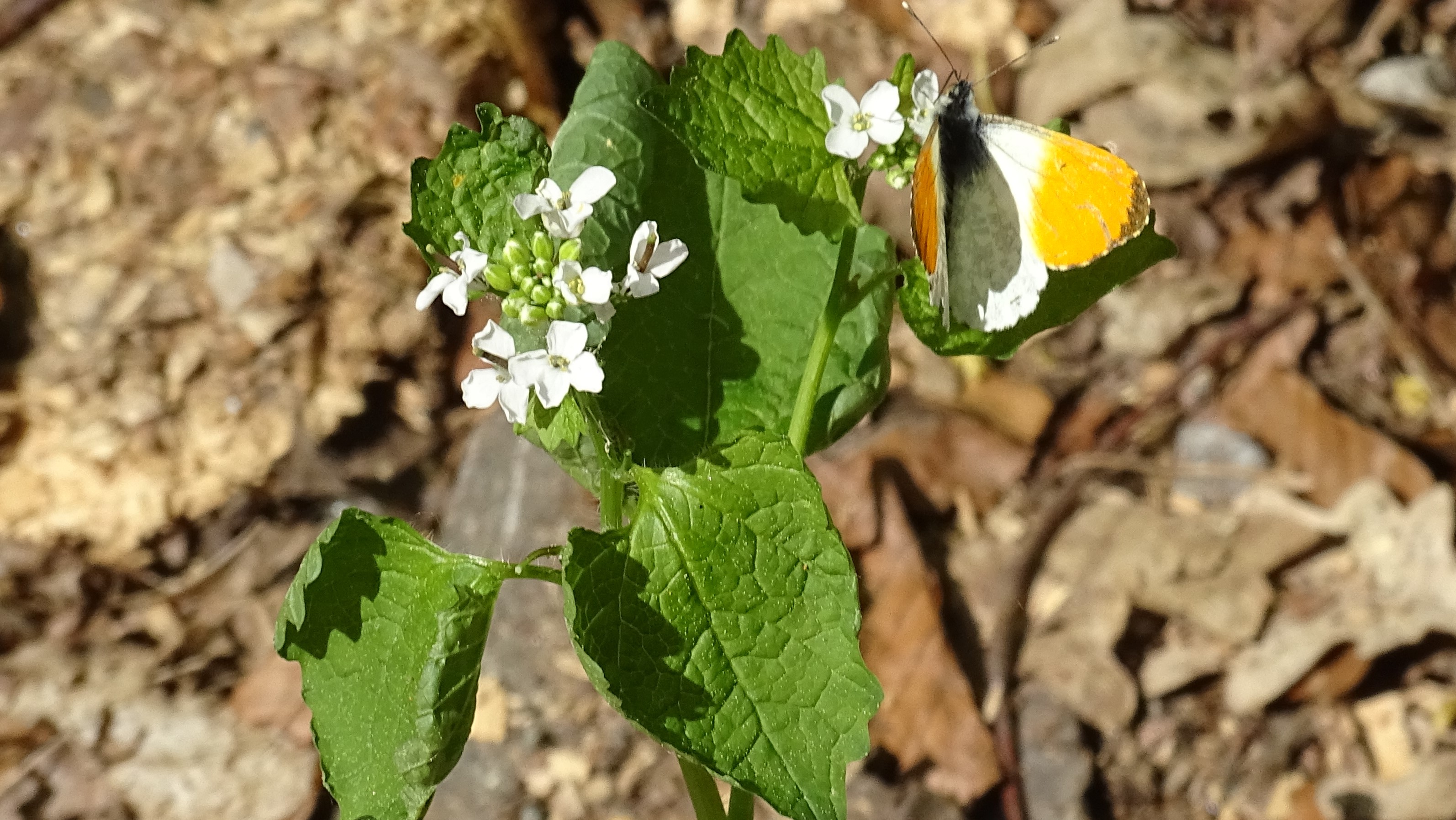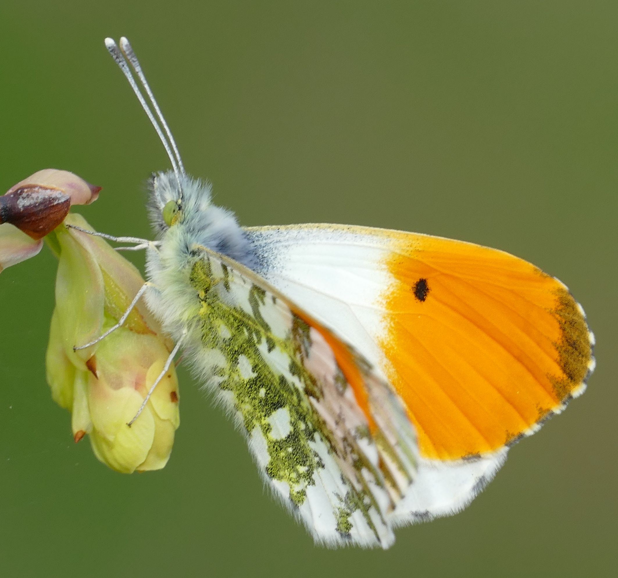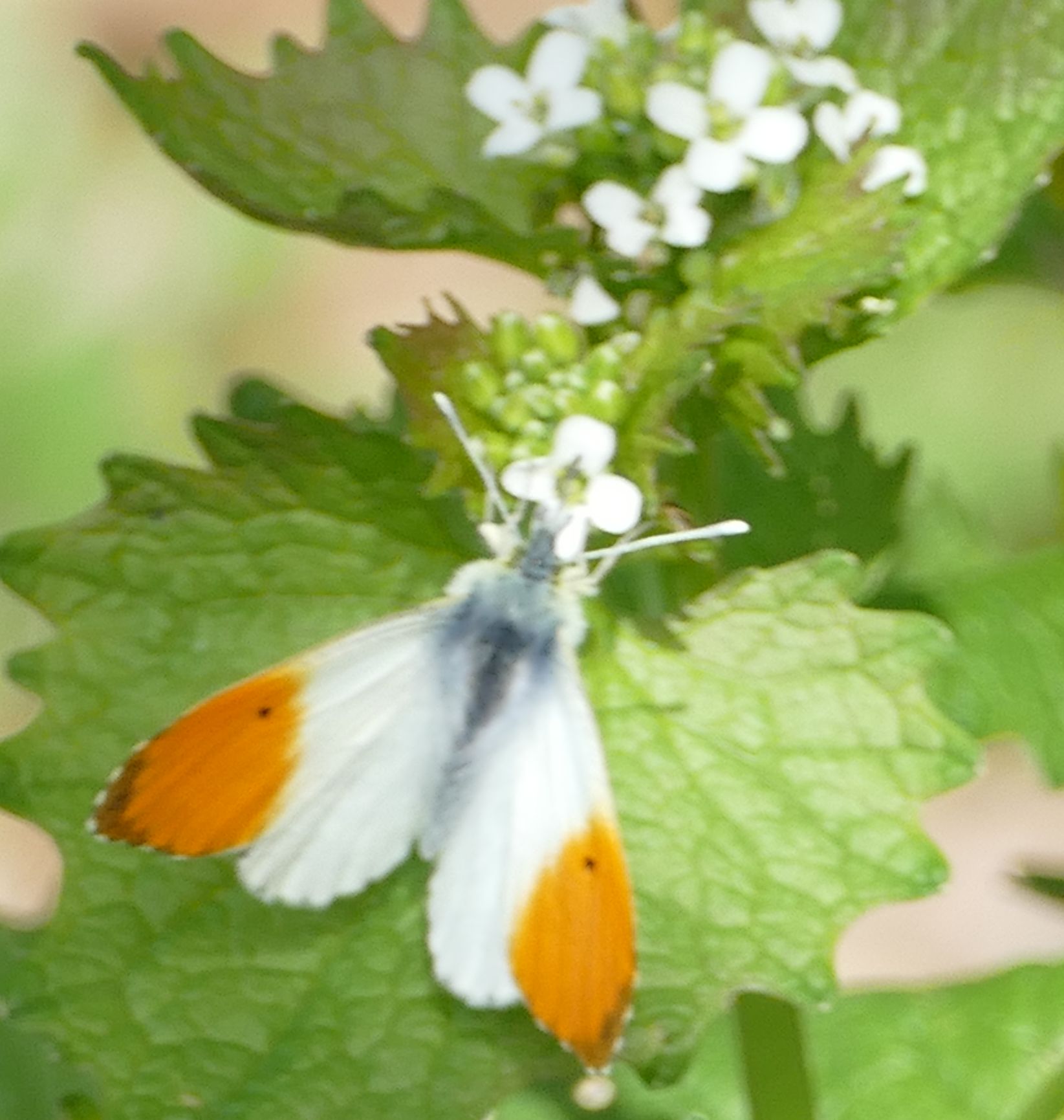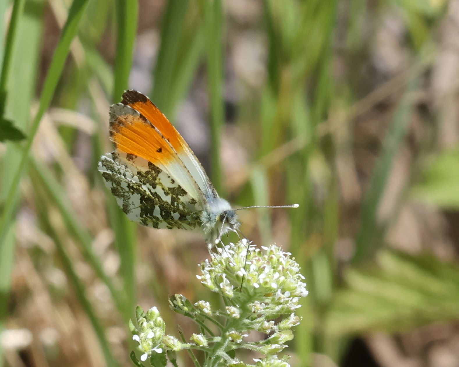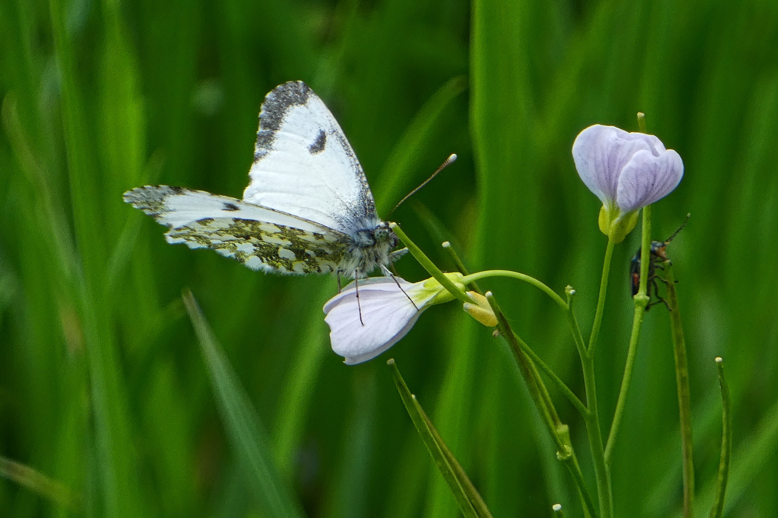 Aurorafalter (Anthocharis cardamines (Linnaeus, 1758)), Männchen, Blütenbesuch an Stellaria holostea, bei Nossen, April 2020 (© Andreas Hurtig)( Bild vergrößern)
