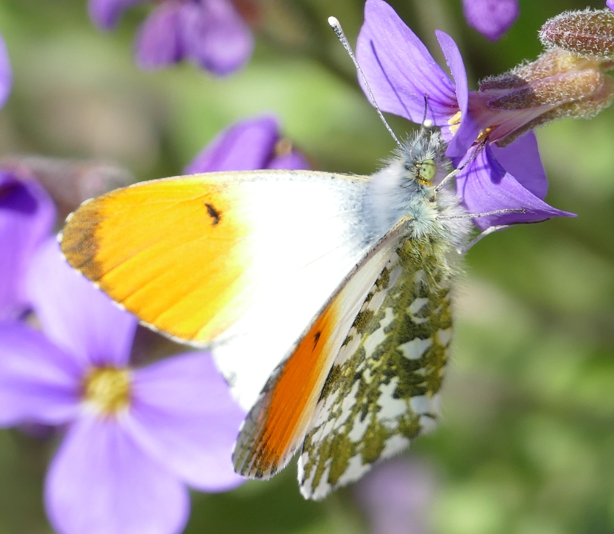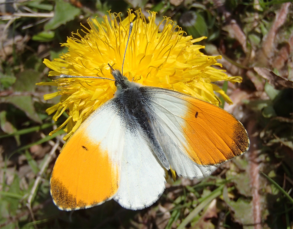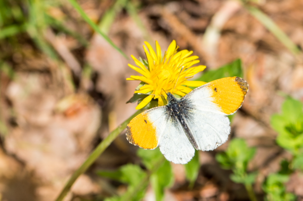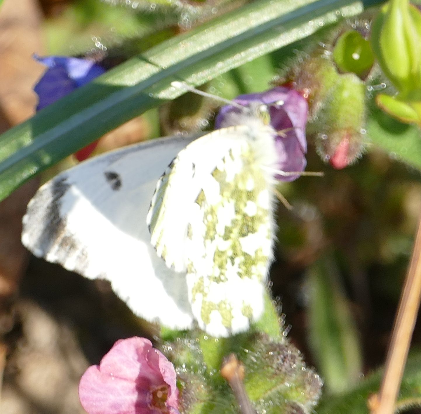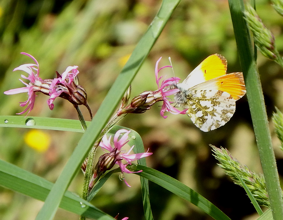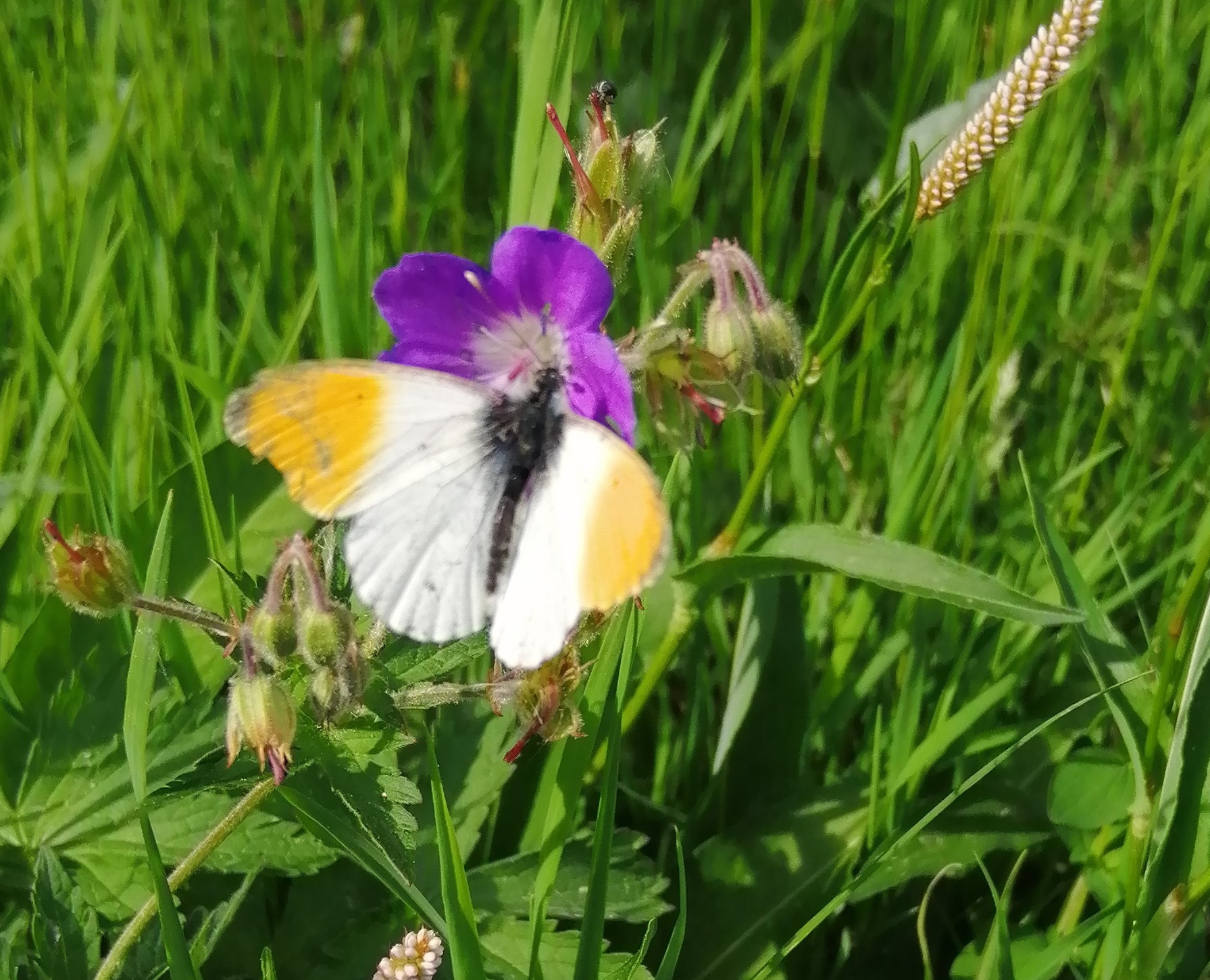 Aurorafalter (Anthocharis cardamines (Linnaeus, 1758)), Männchen, Blütenbesuch an Stellaria holostea, bei Nossen, April 2020 (© Andreas Hurtig)( Bild vergrößern)