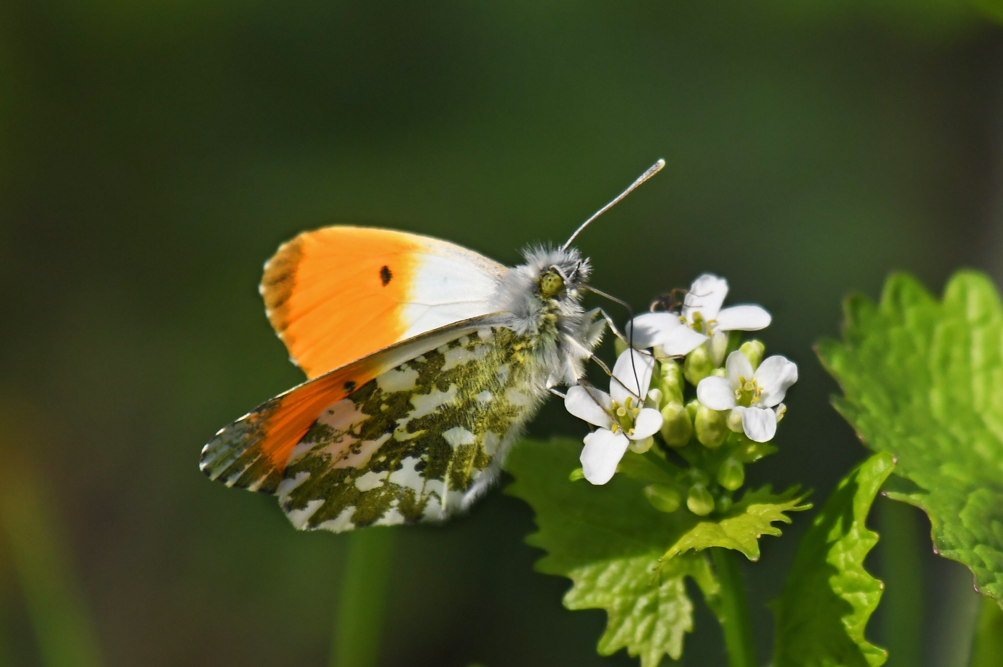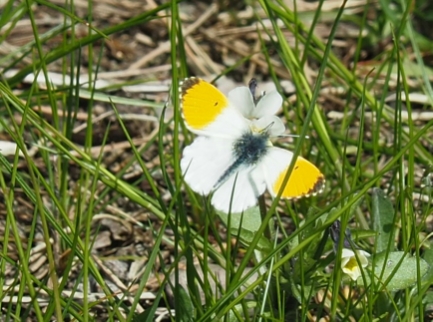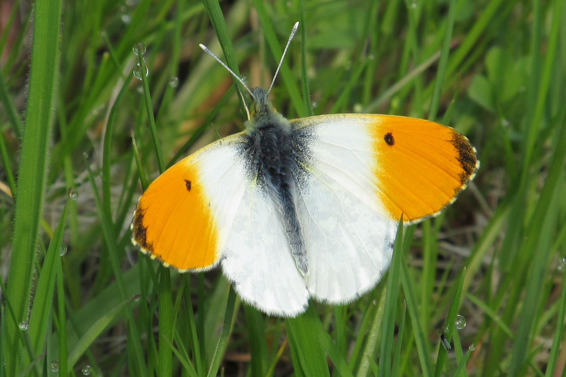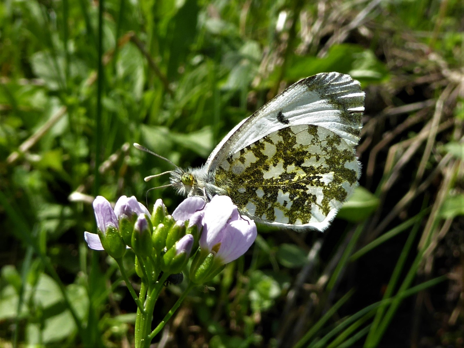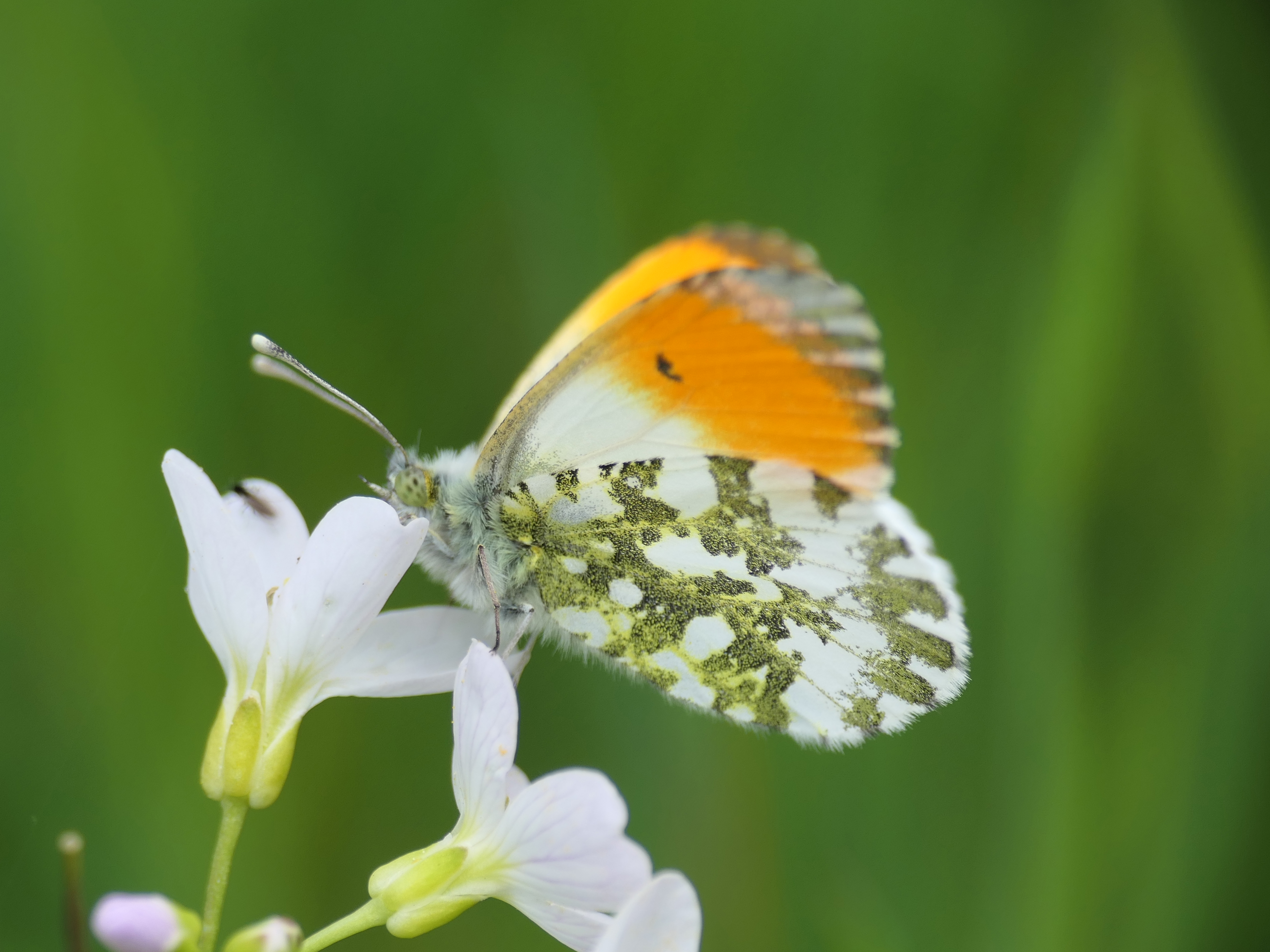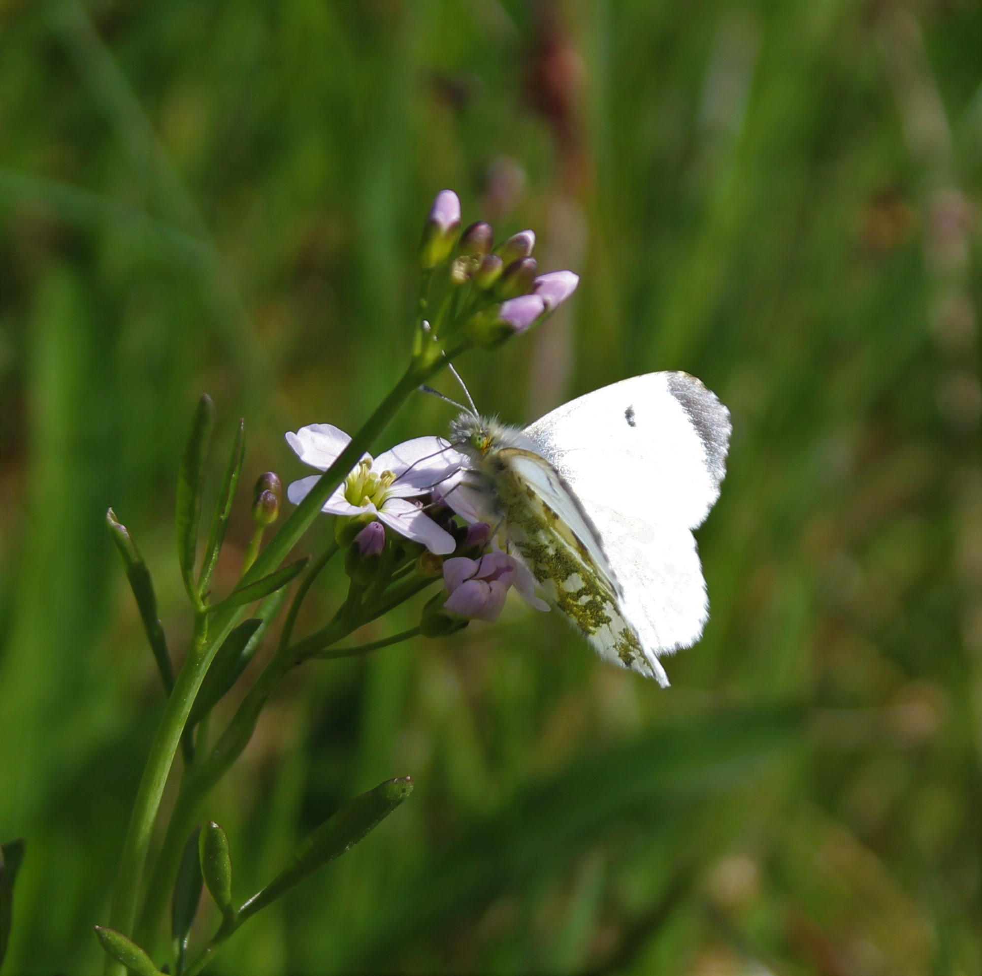 Aurorafalter (Anthocharis cardamines (Linnaeus, 1758)), Männchen, Blütenbesuch an Stellaria holostea, bei Nossen, April 2020 (© Andreas Hurtig)( Bild vergrößern)