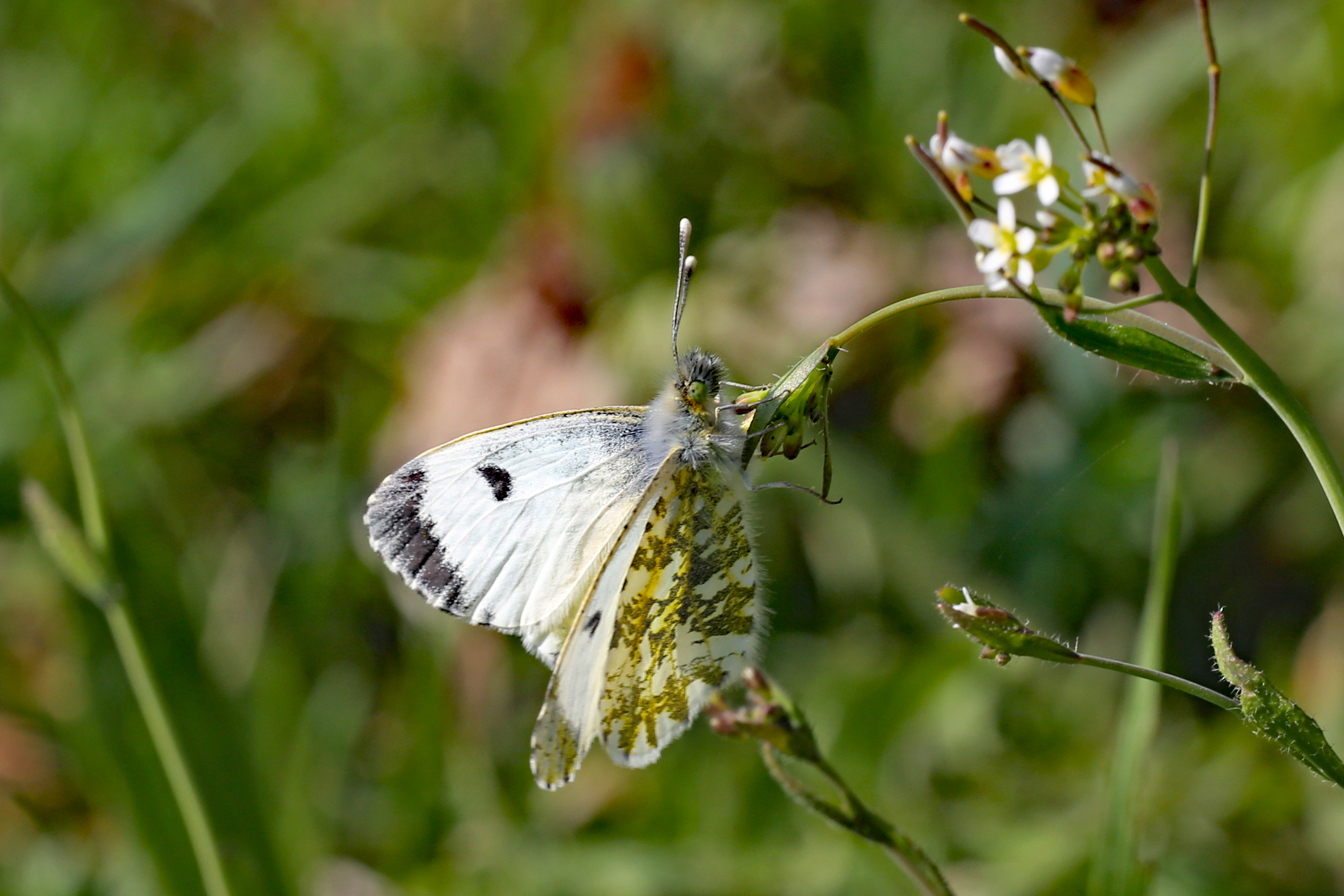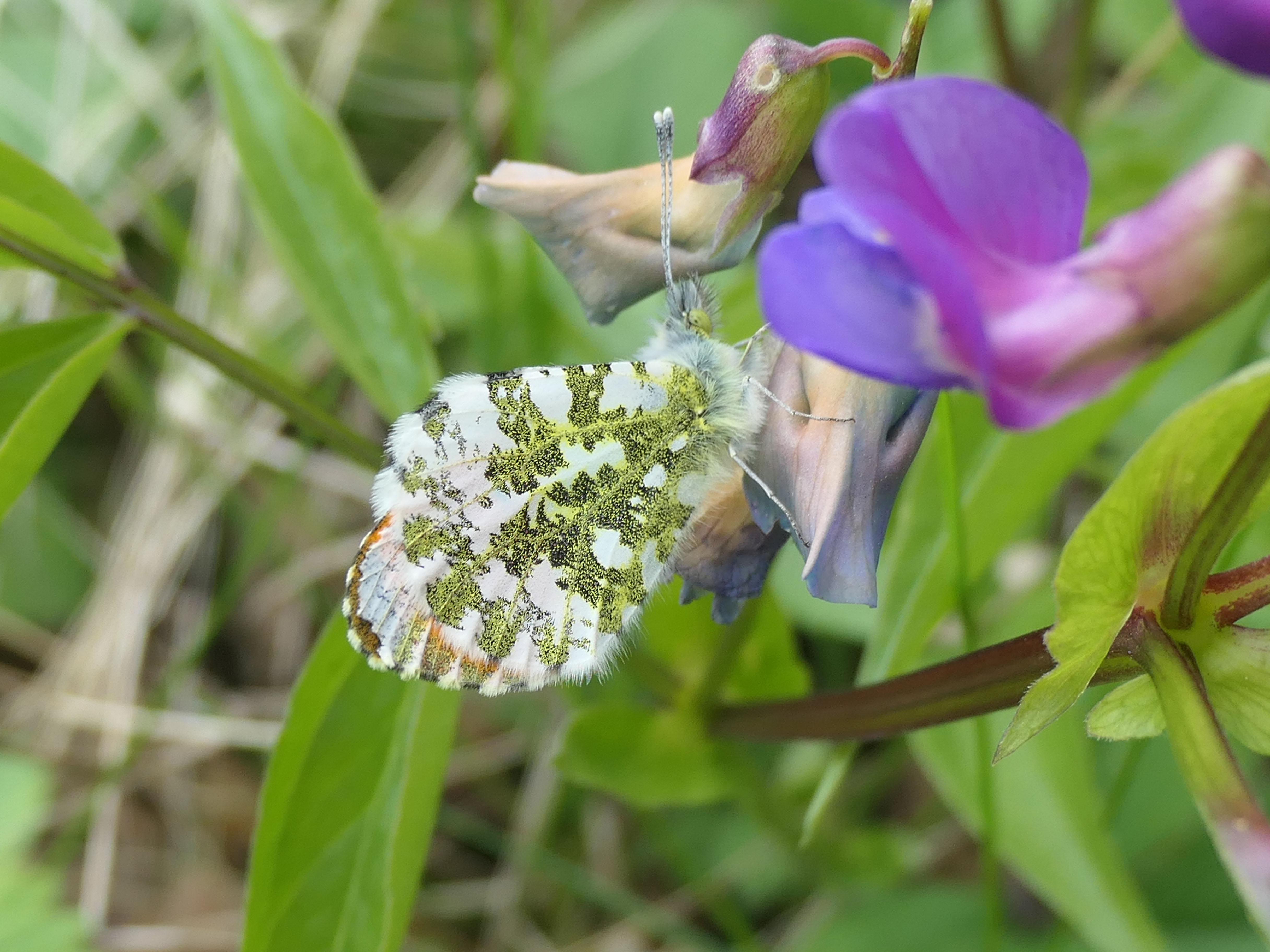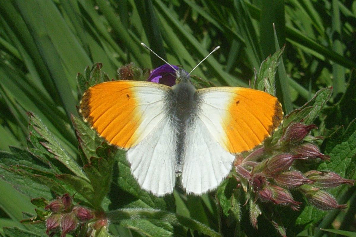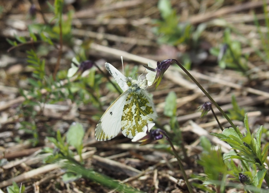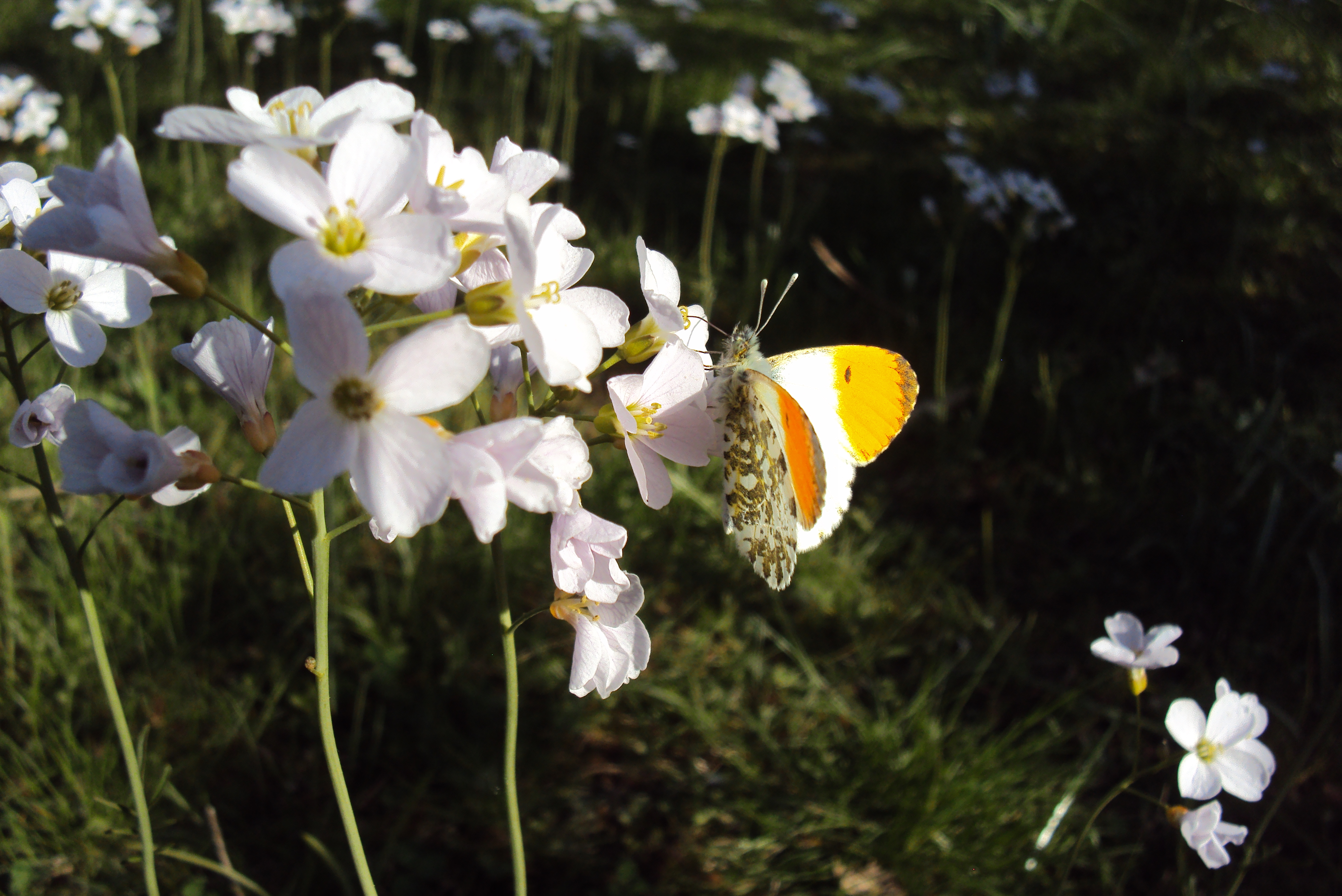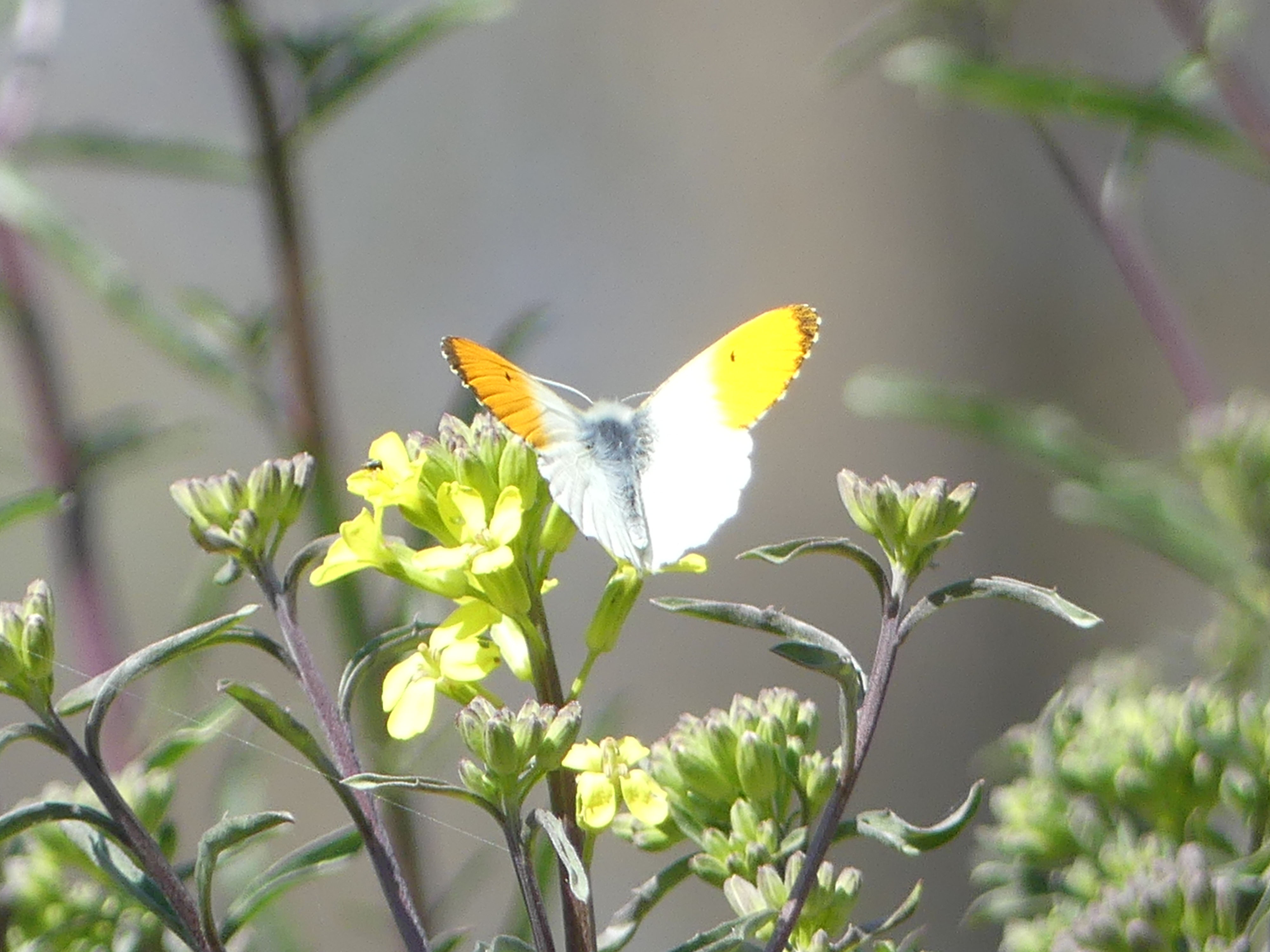Aurorafalter (Anthocharis cardamines (Linnaeus, 1758)), Männchen, Blütenbesuch an Stellaria holostea, bei Nossen, April 2020 (© Andreas Hurtig)( Bild vergrößern)