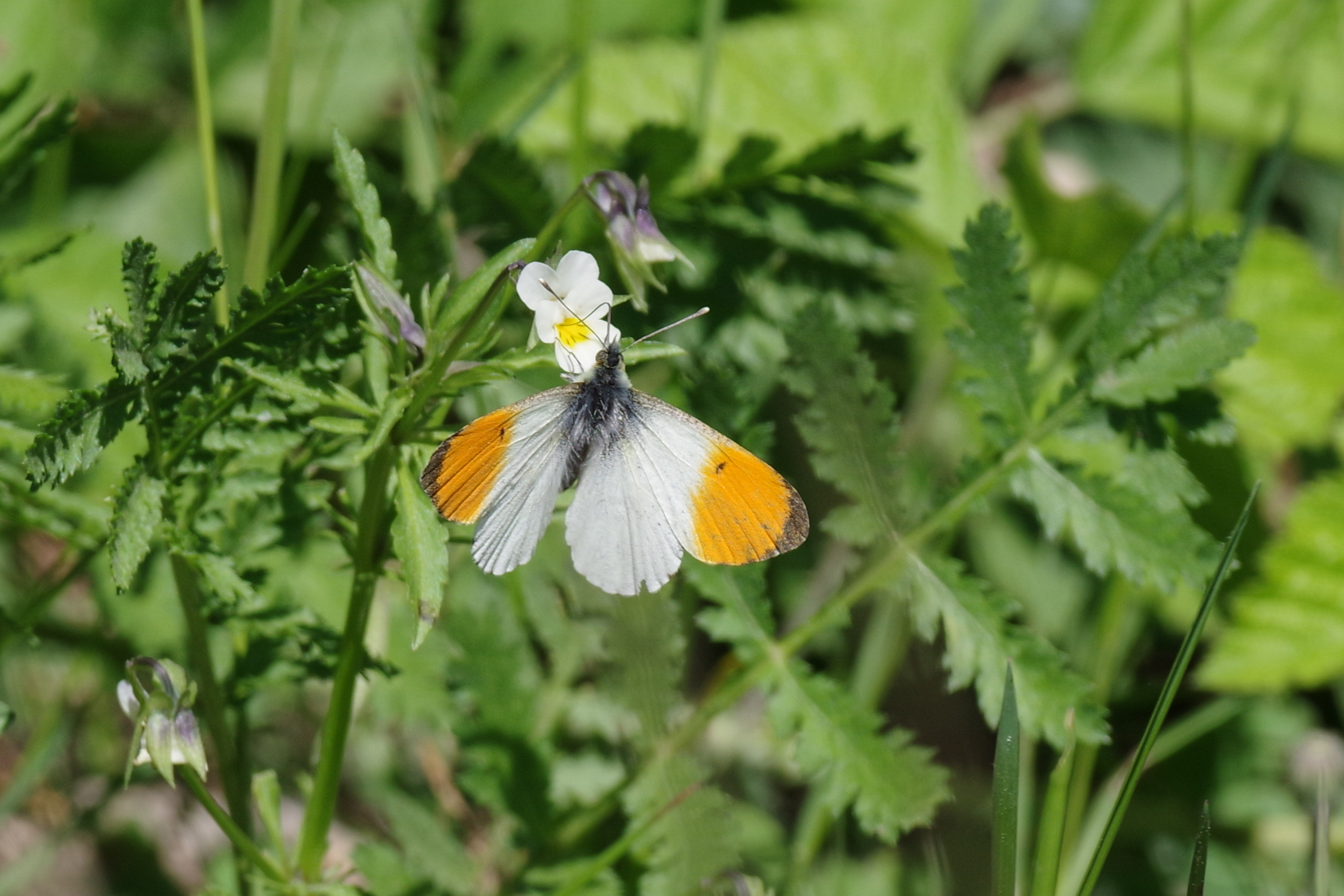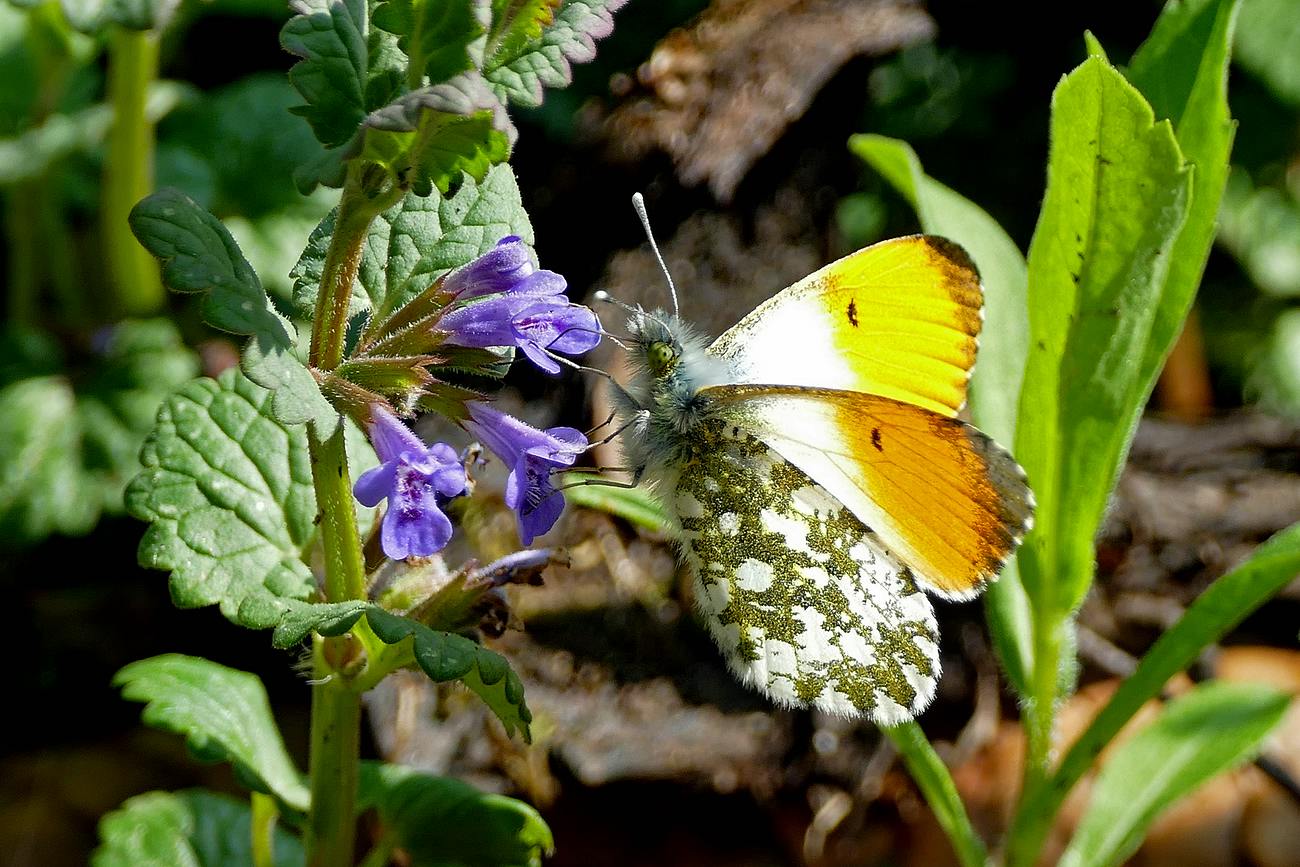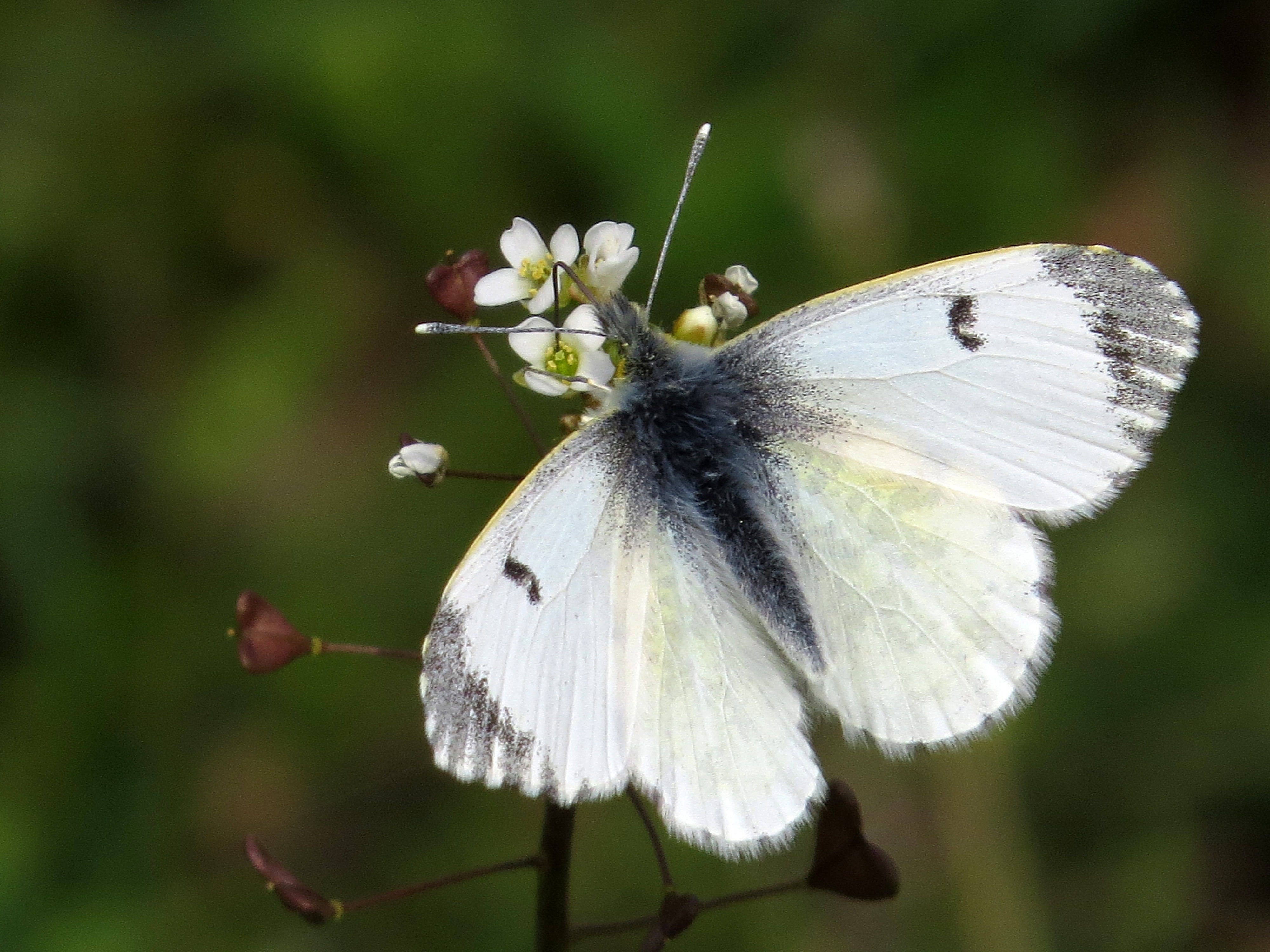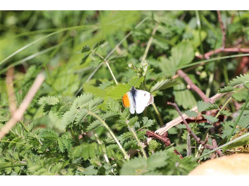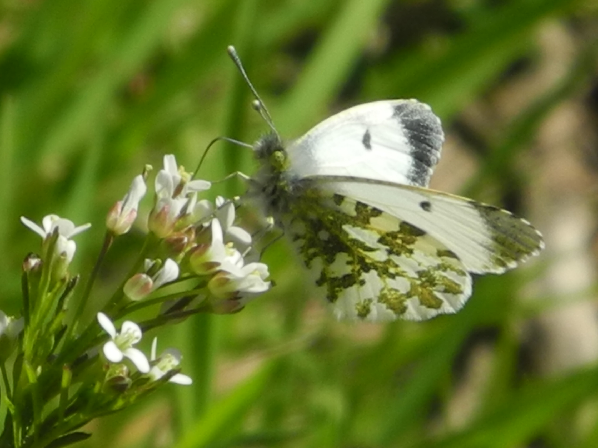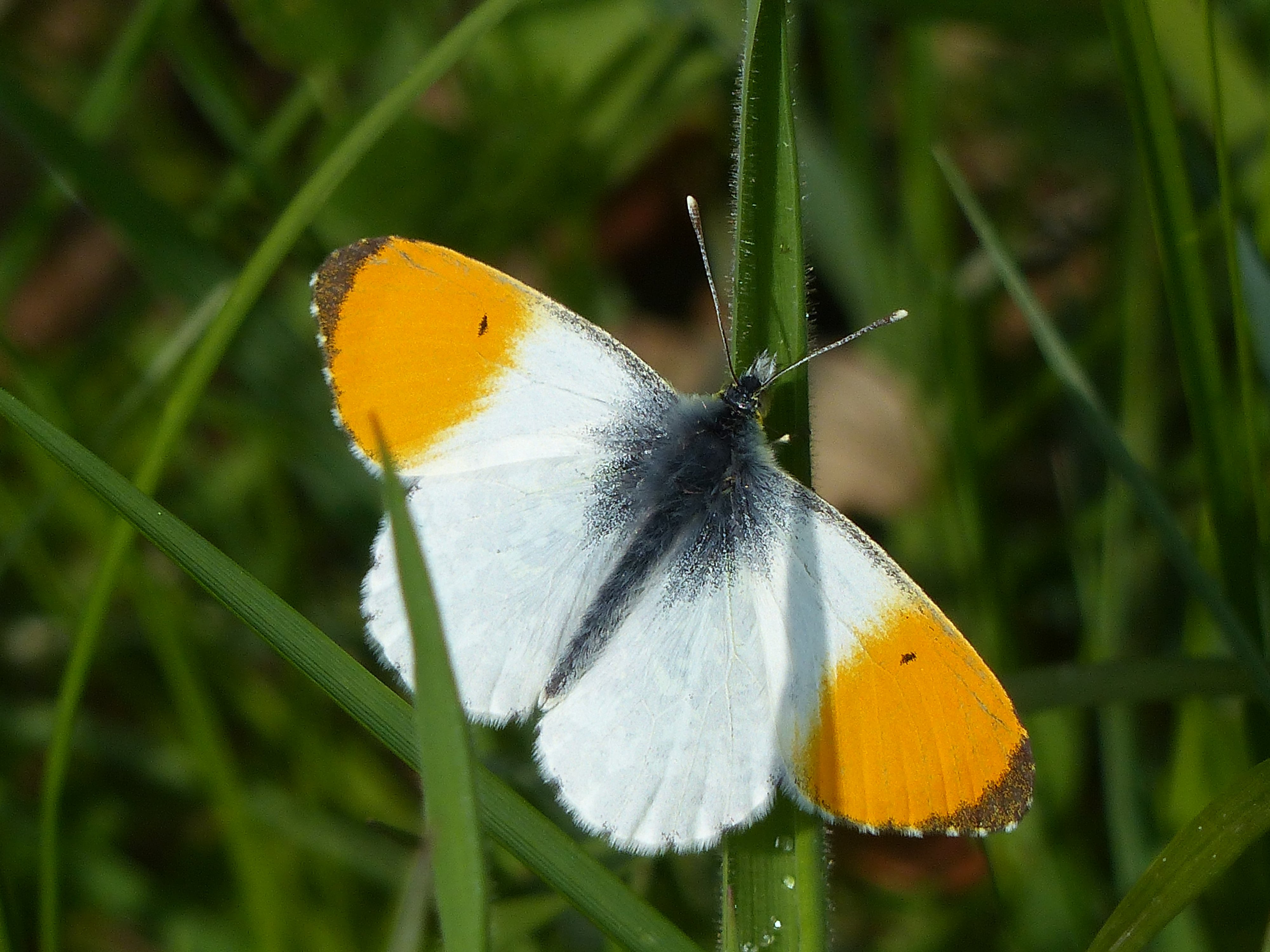 Aurorafalter (Anthocharis cardamines (Linnaeus, 1758)), Männchen, Blütenbesuch an Stellaria holostea, bei Nossen, April 2020 (© Andreas Hurtig)( Bild vergrößern)