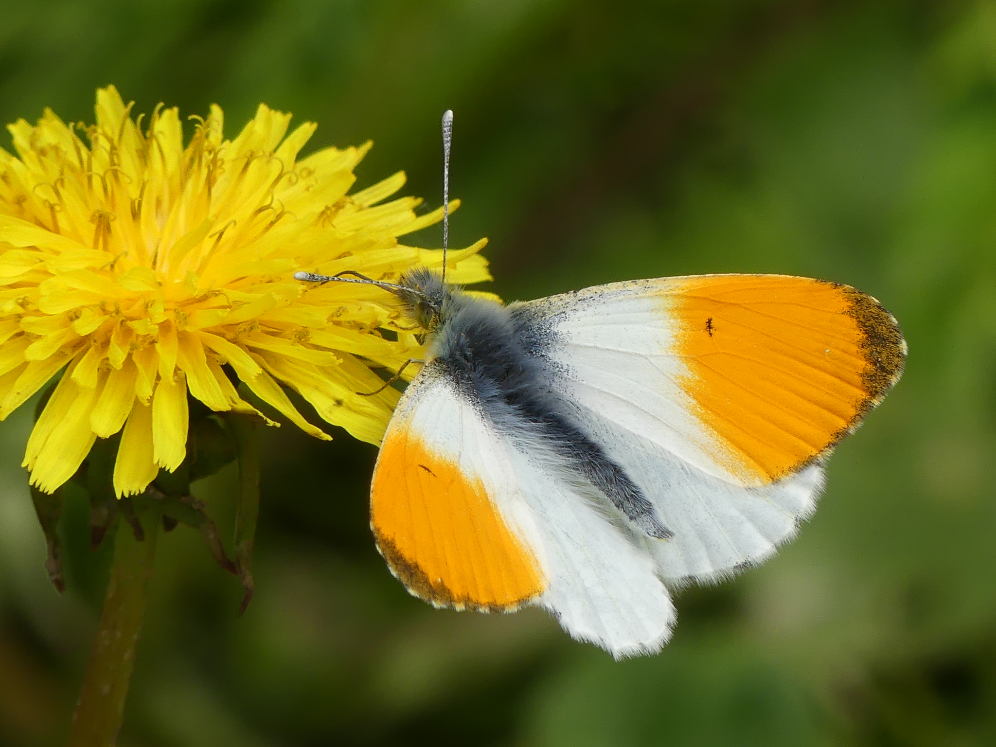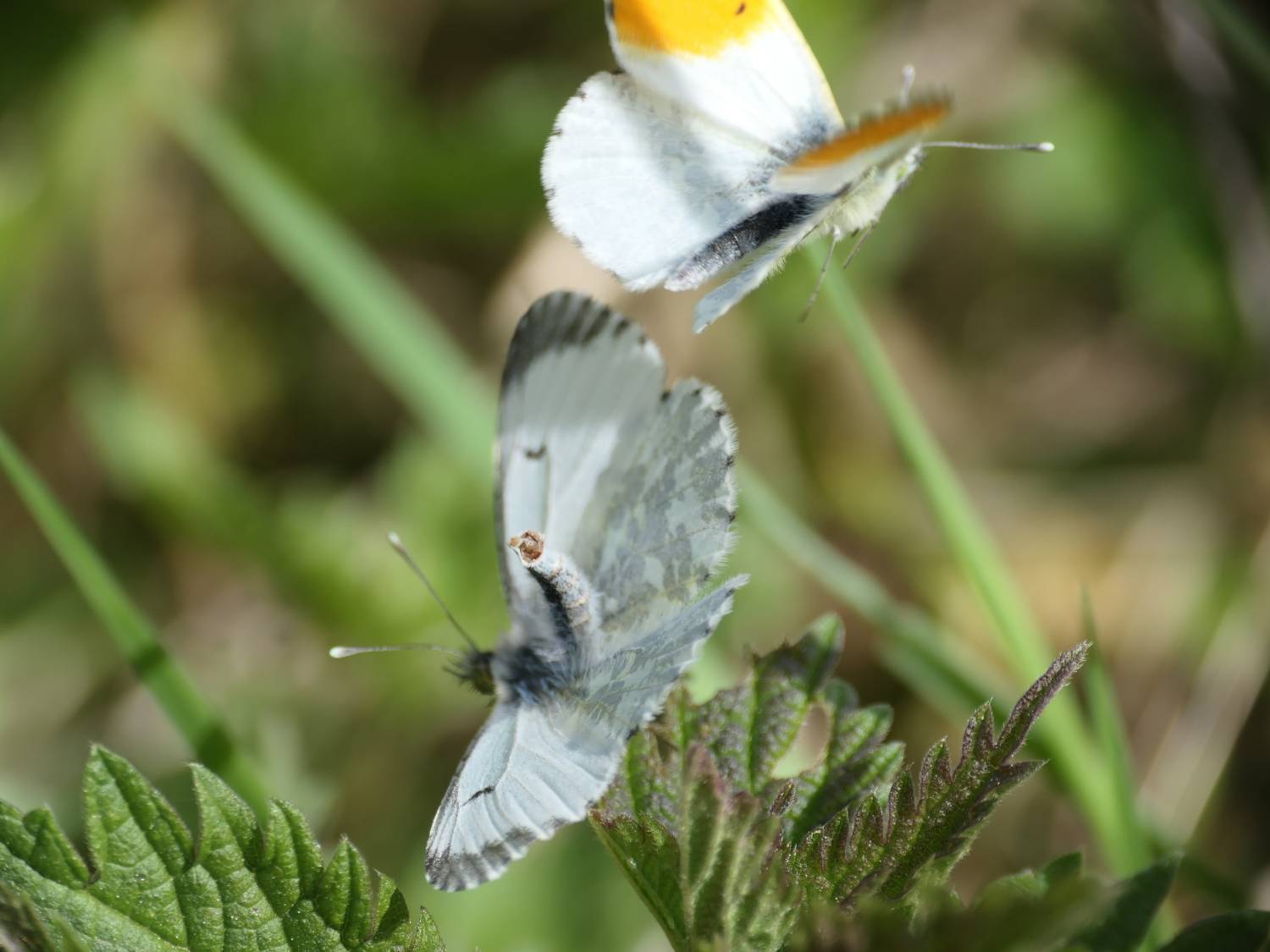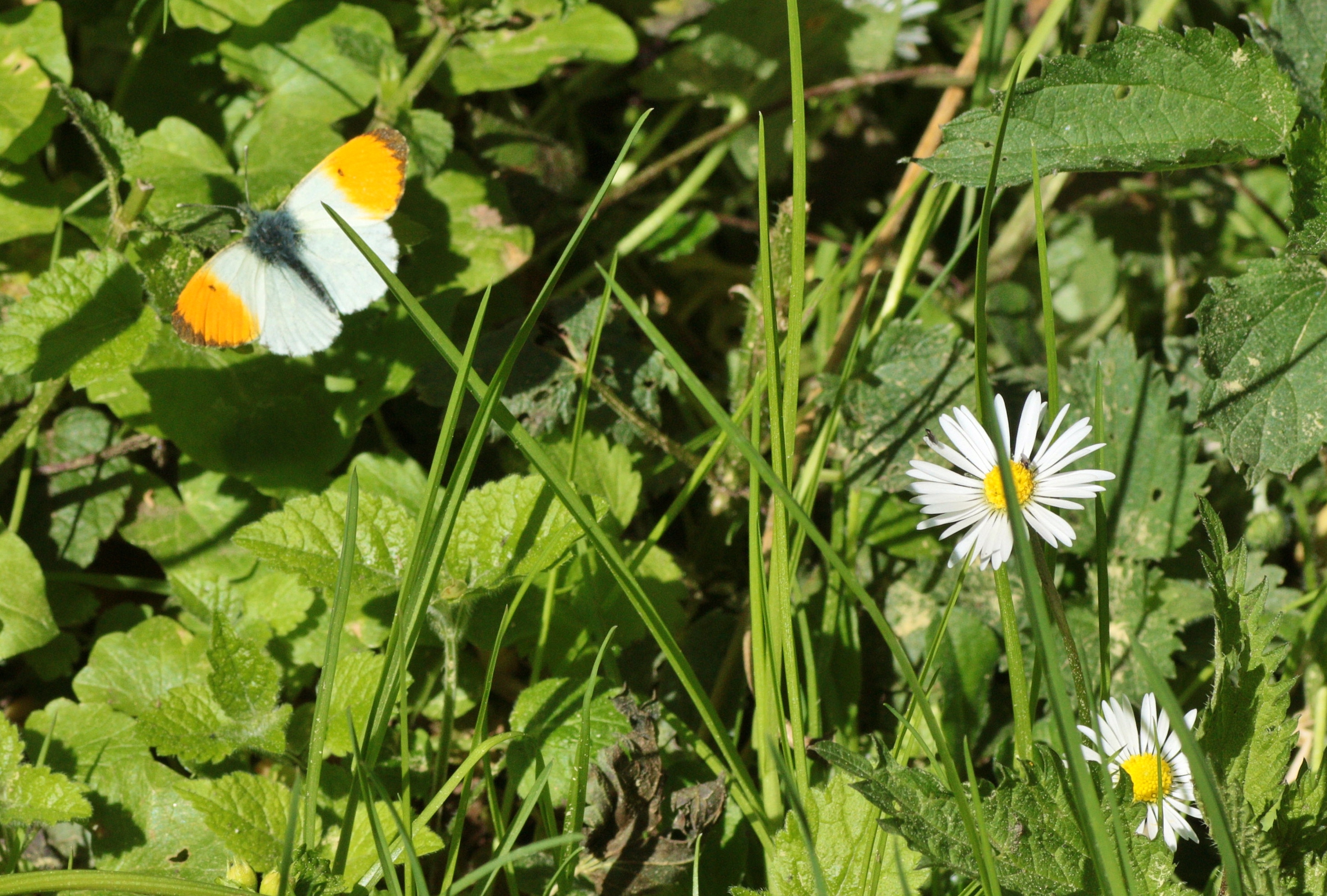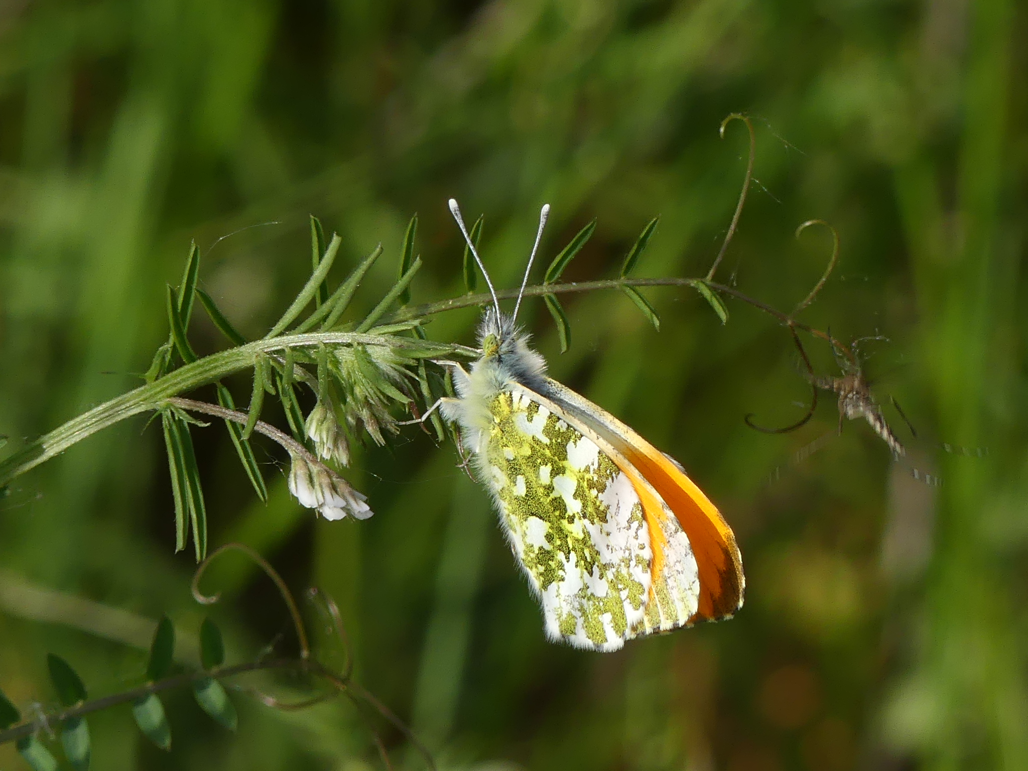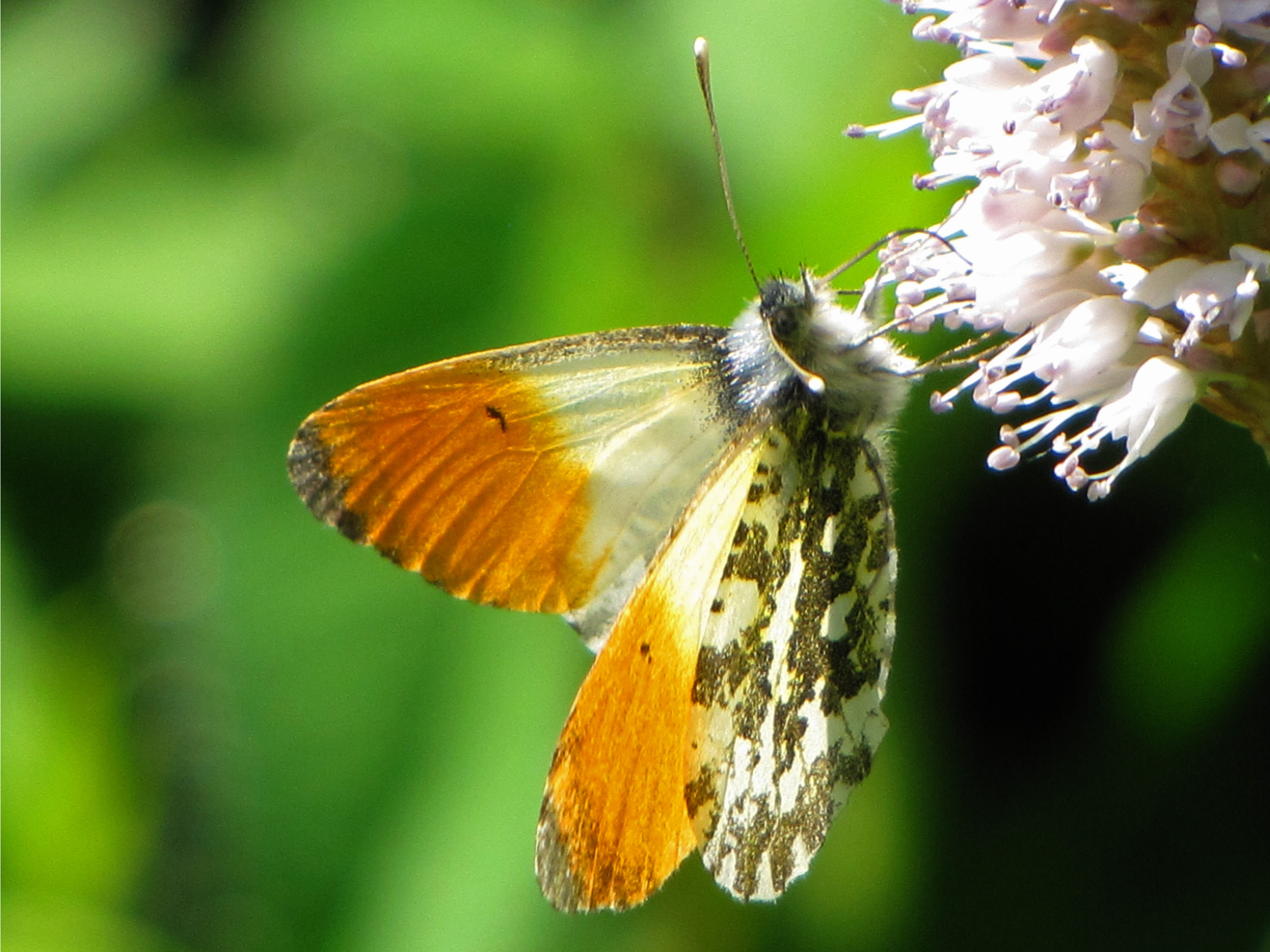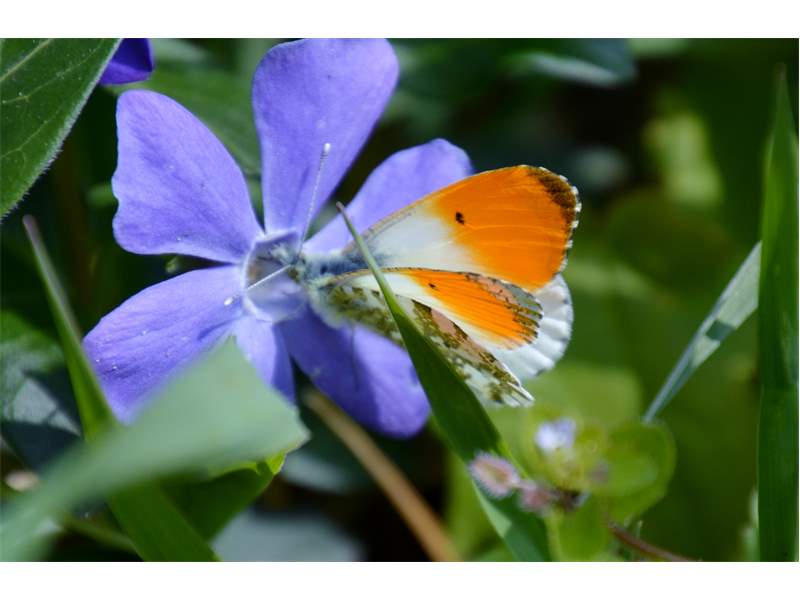 Aurorafalter (Anthocharis cardamines (Linnaeus, 1758)), Männchen, Blütenbesuch an Stellaria holostea, bei Nossen, April 2020 (© Andreas Hurtig)( Bild vergrößern)