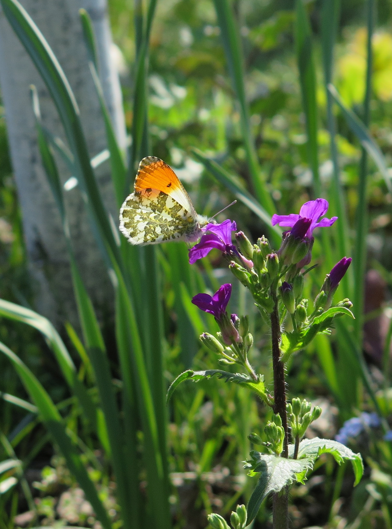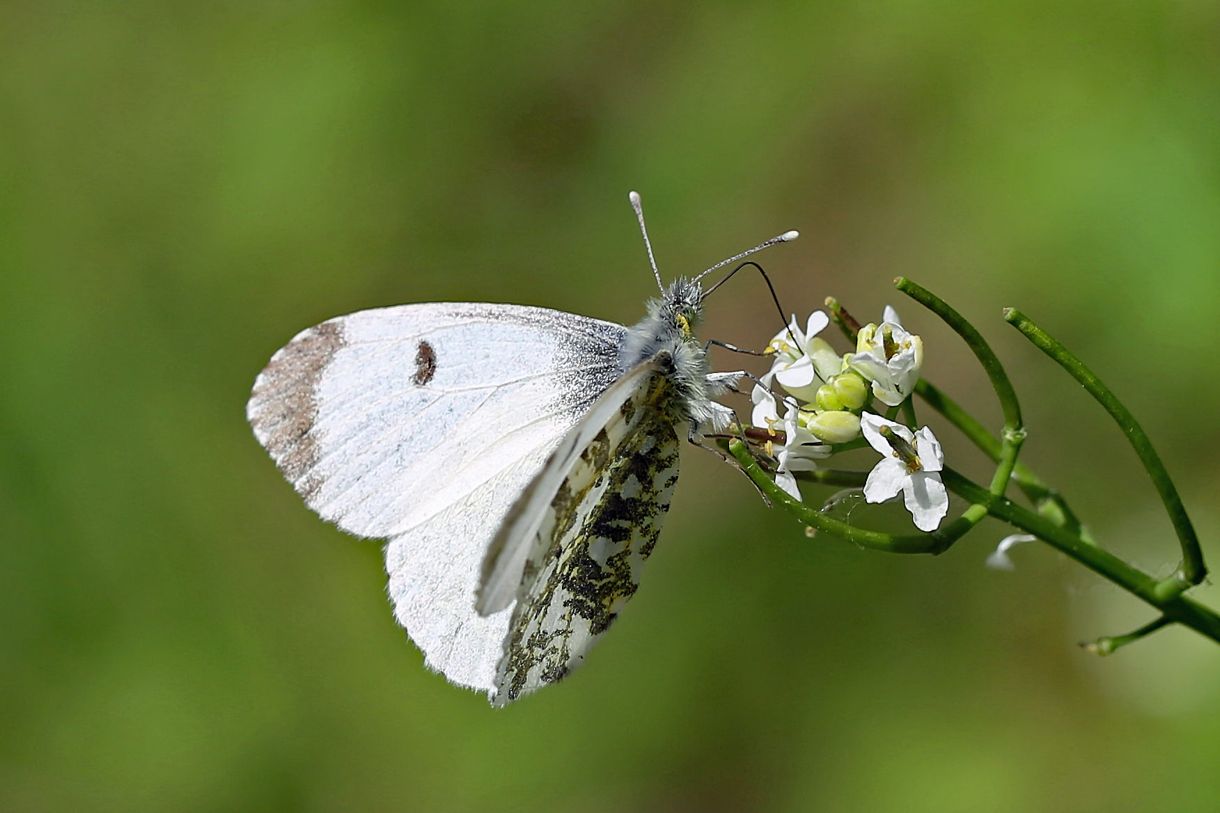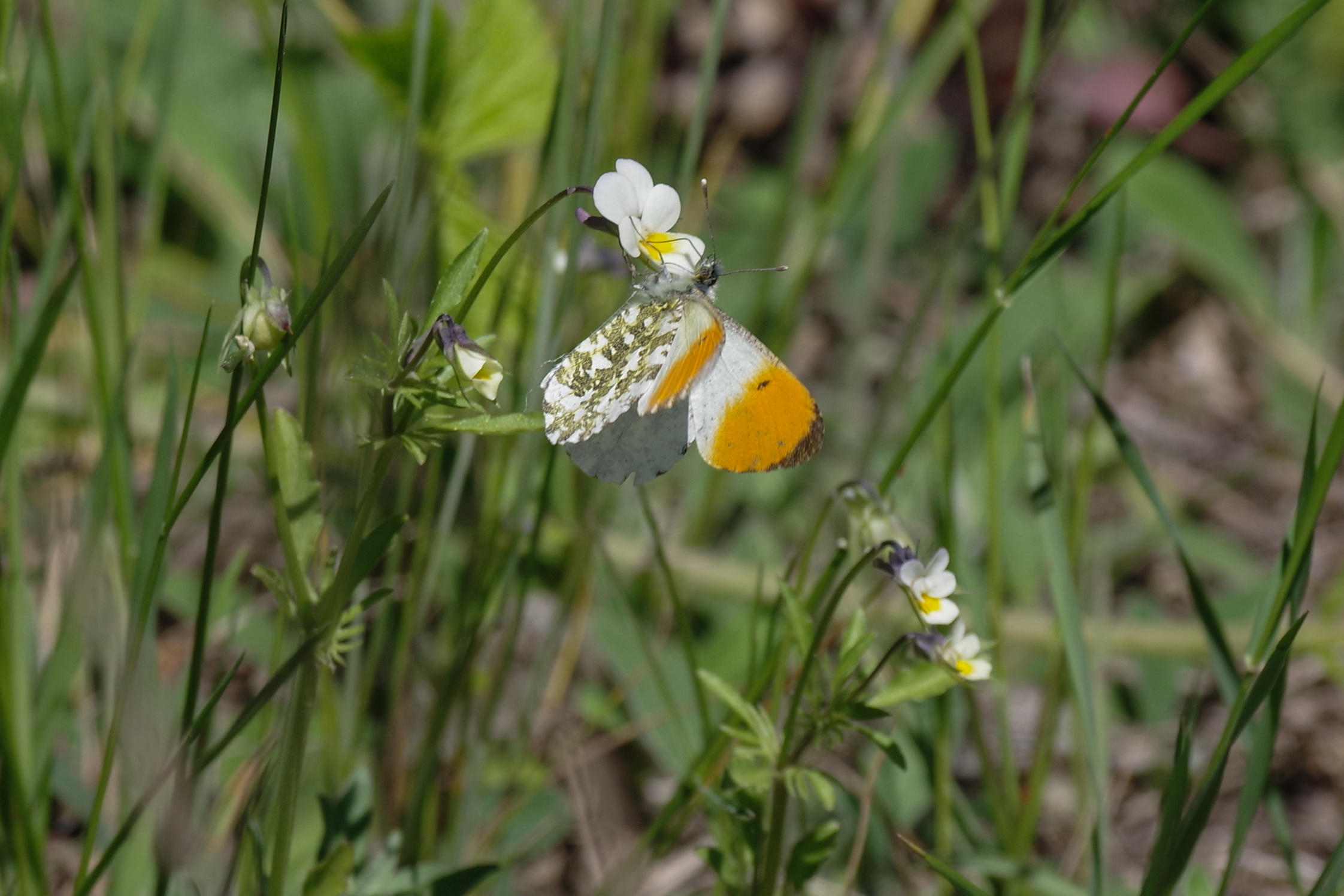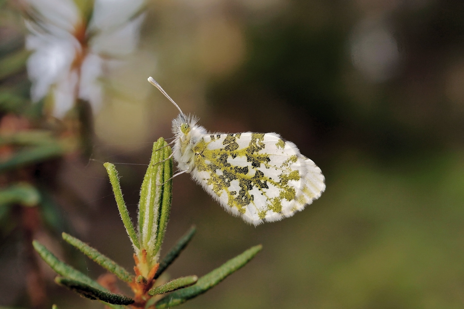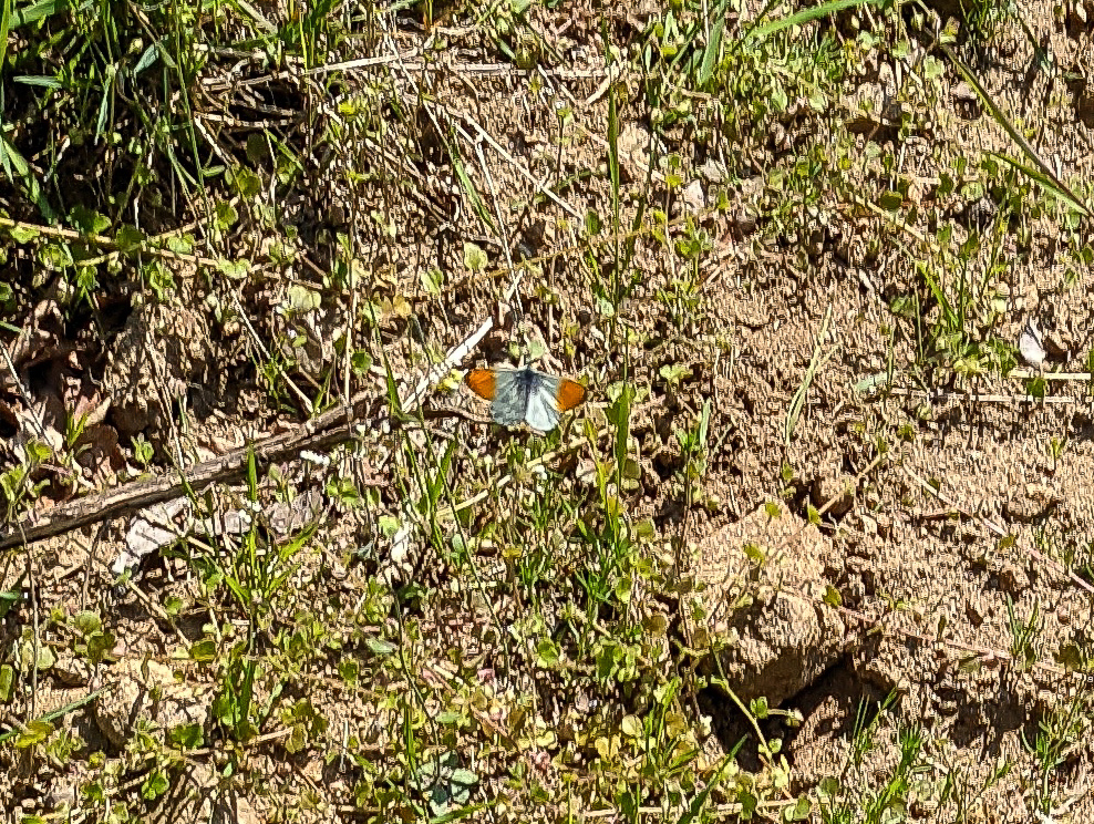 Aurorafalter (Anthocharis cardamines (Linnaeus, 1758)), Männchen, Blütenbesuch an Stellaria holostea, bei Nossen, April 2020 (© Andreas Hurtig)( Bild vergrößern)