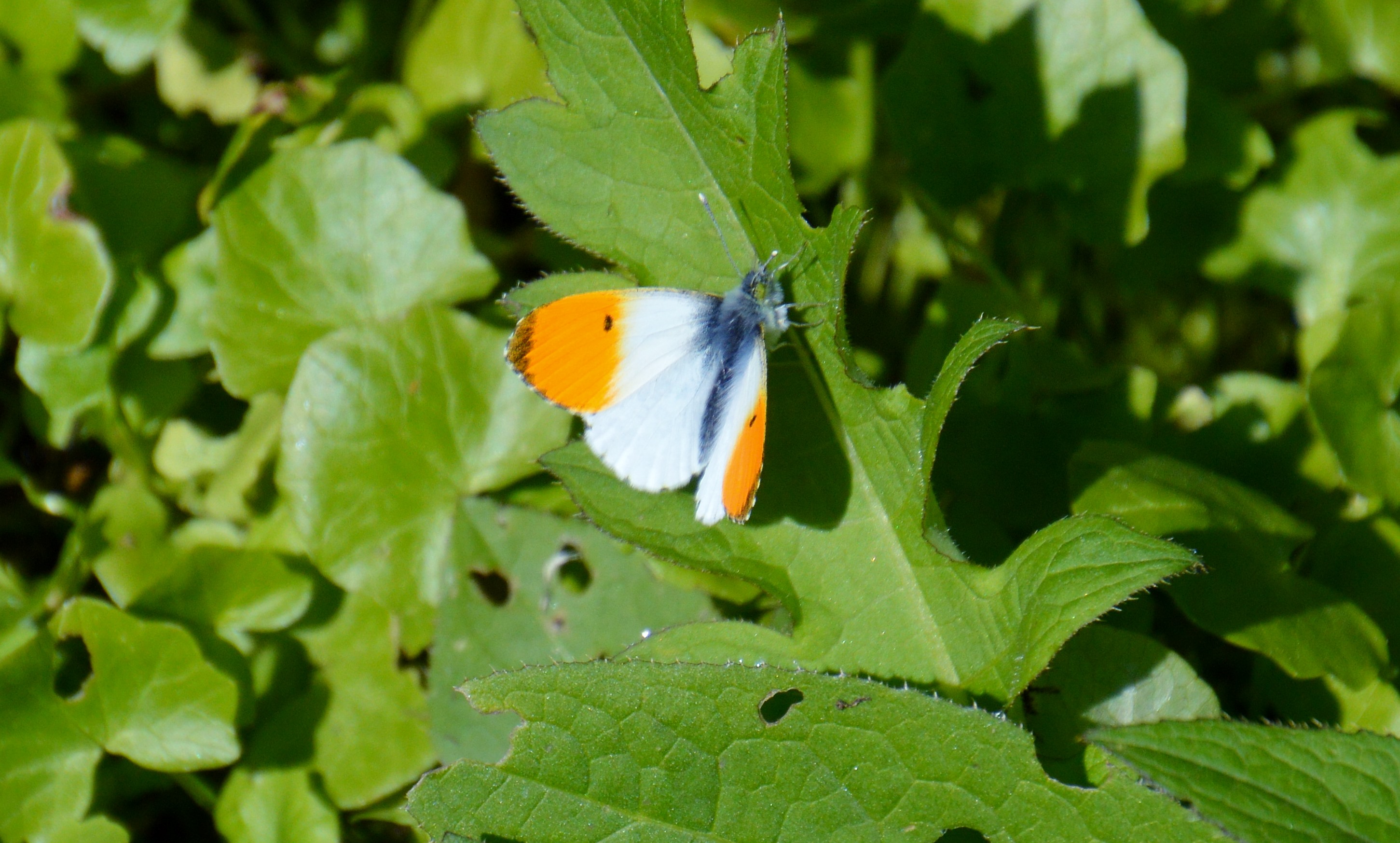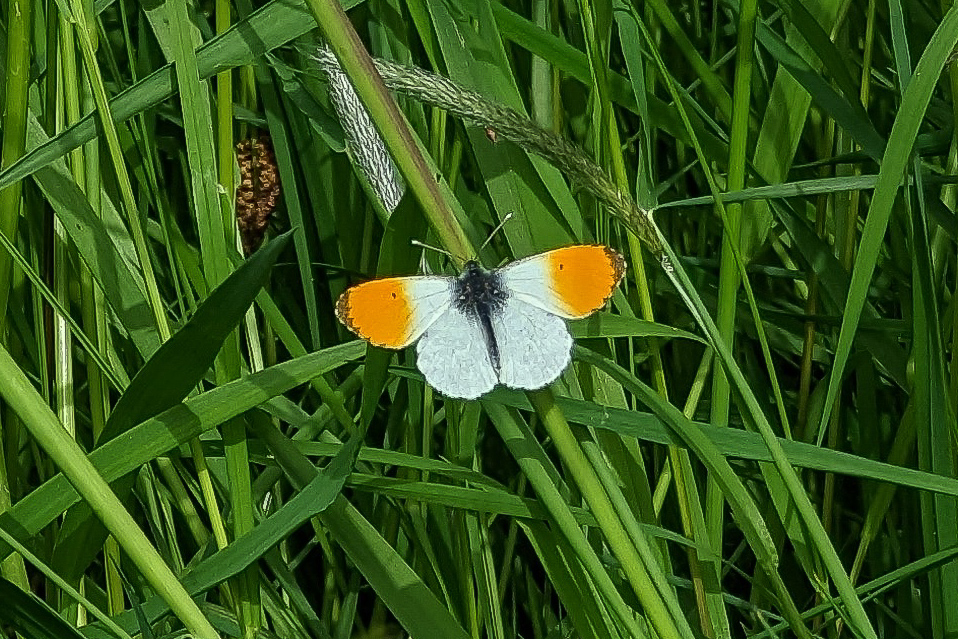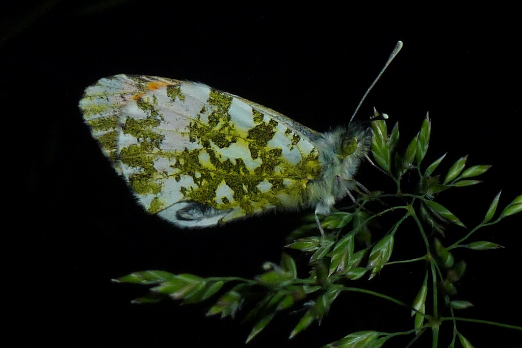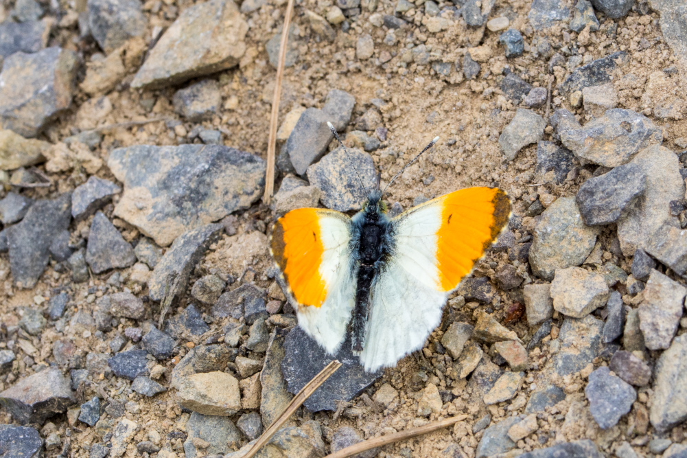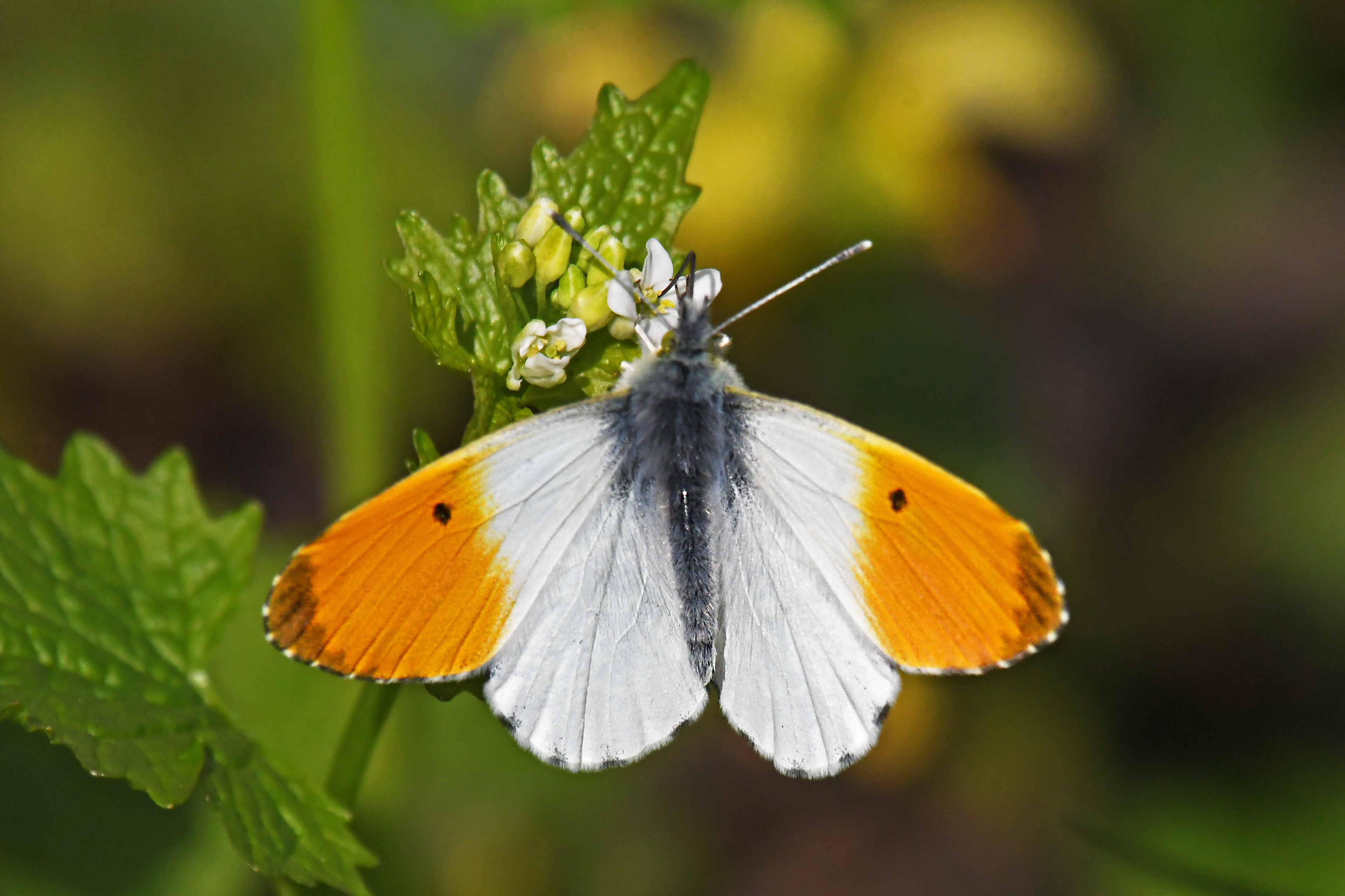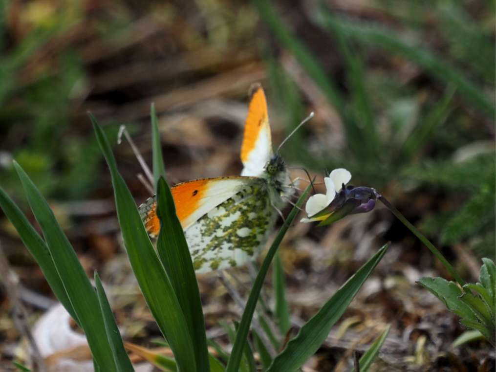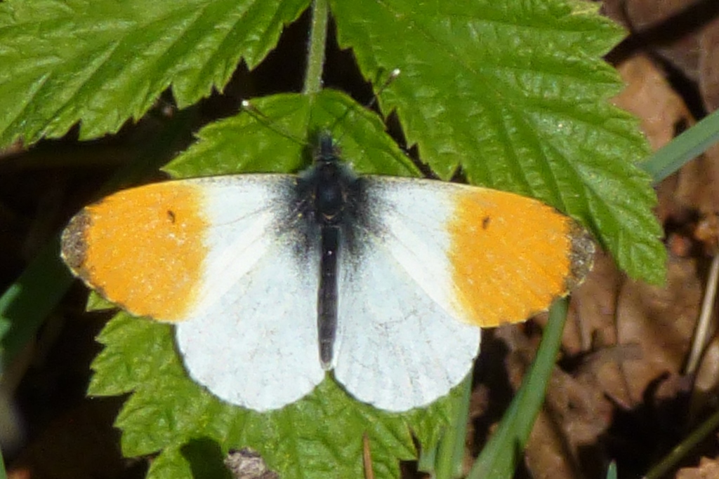 Aurorafalter (Anthocharis cardamines (Linnaeus, 1758)), Männchen, Blütenbesuch an Stellaria holostea, bei Nossen, April 2020 (© Andreas Hurtig)( Bild vergrößern)
