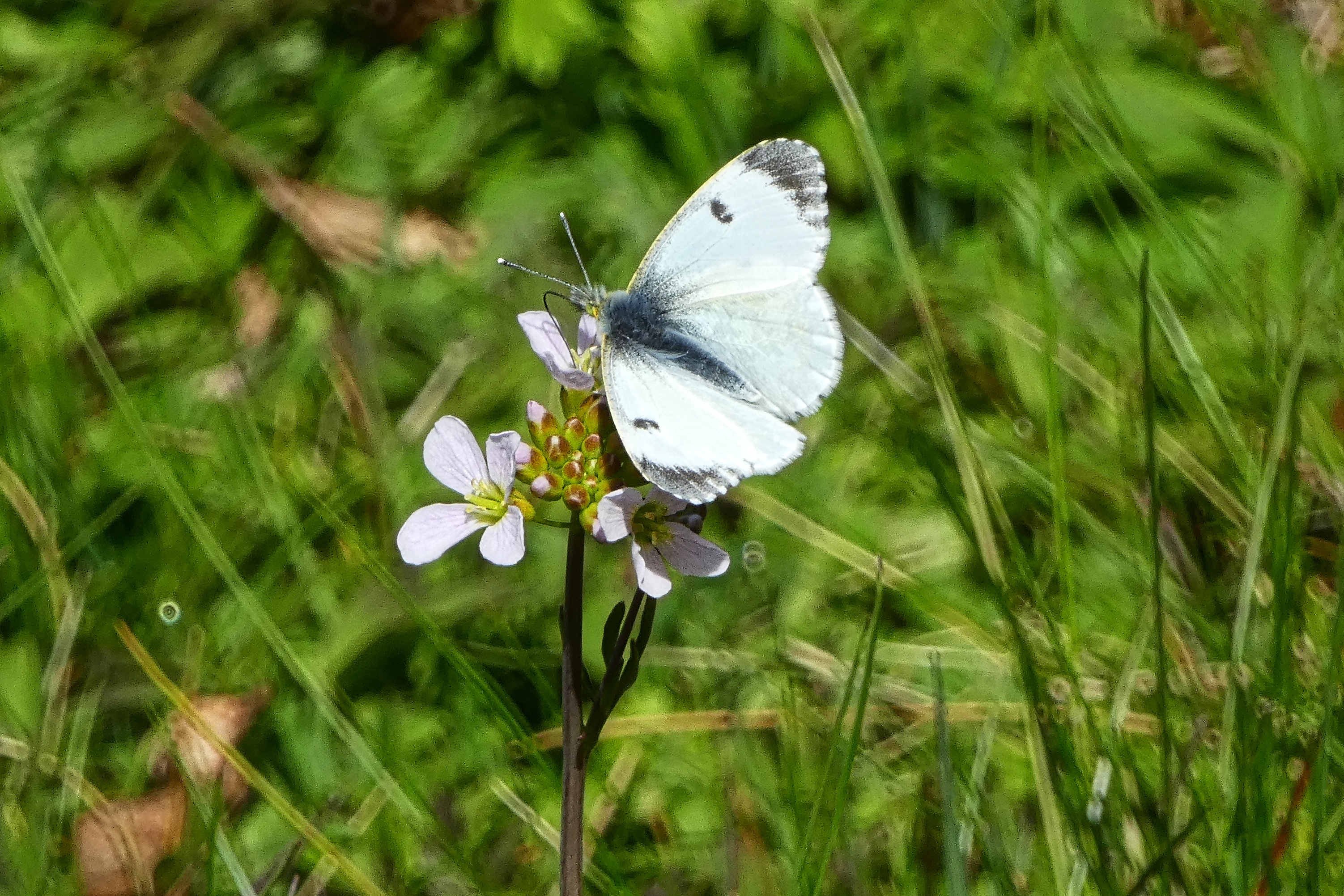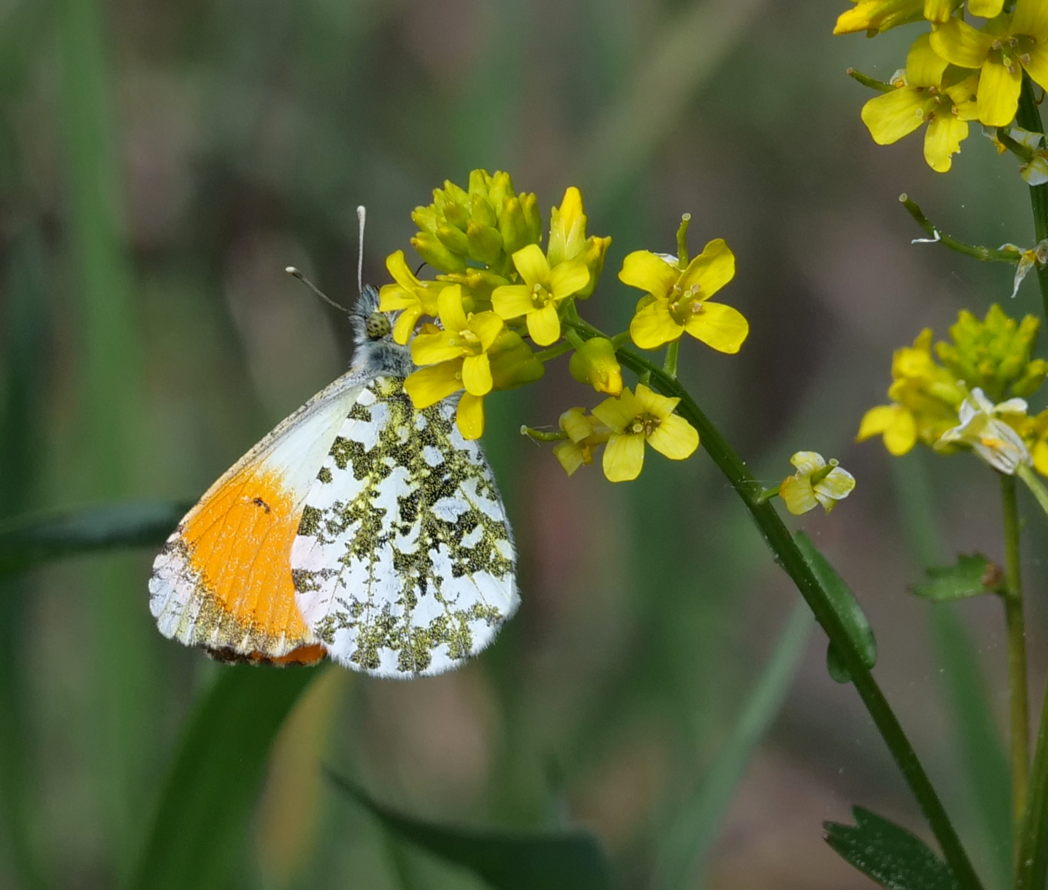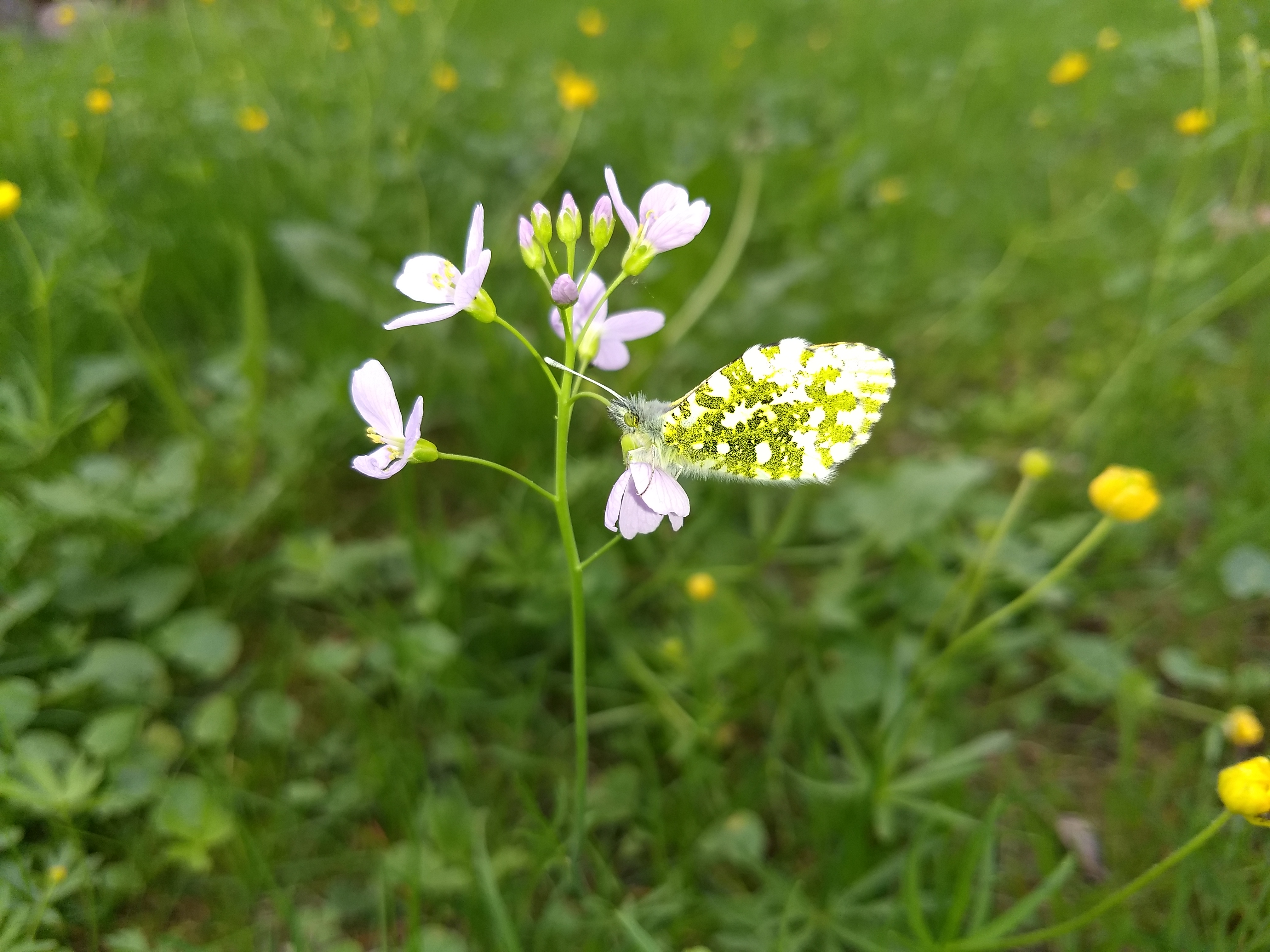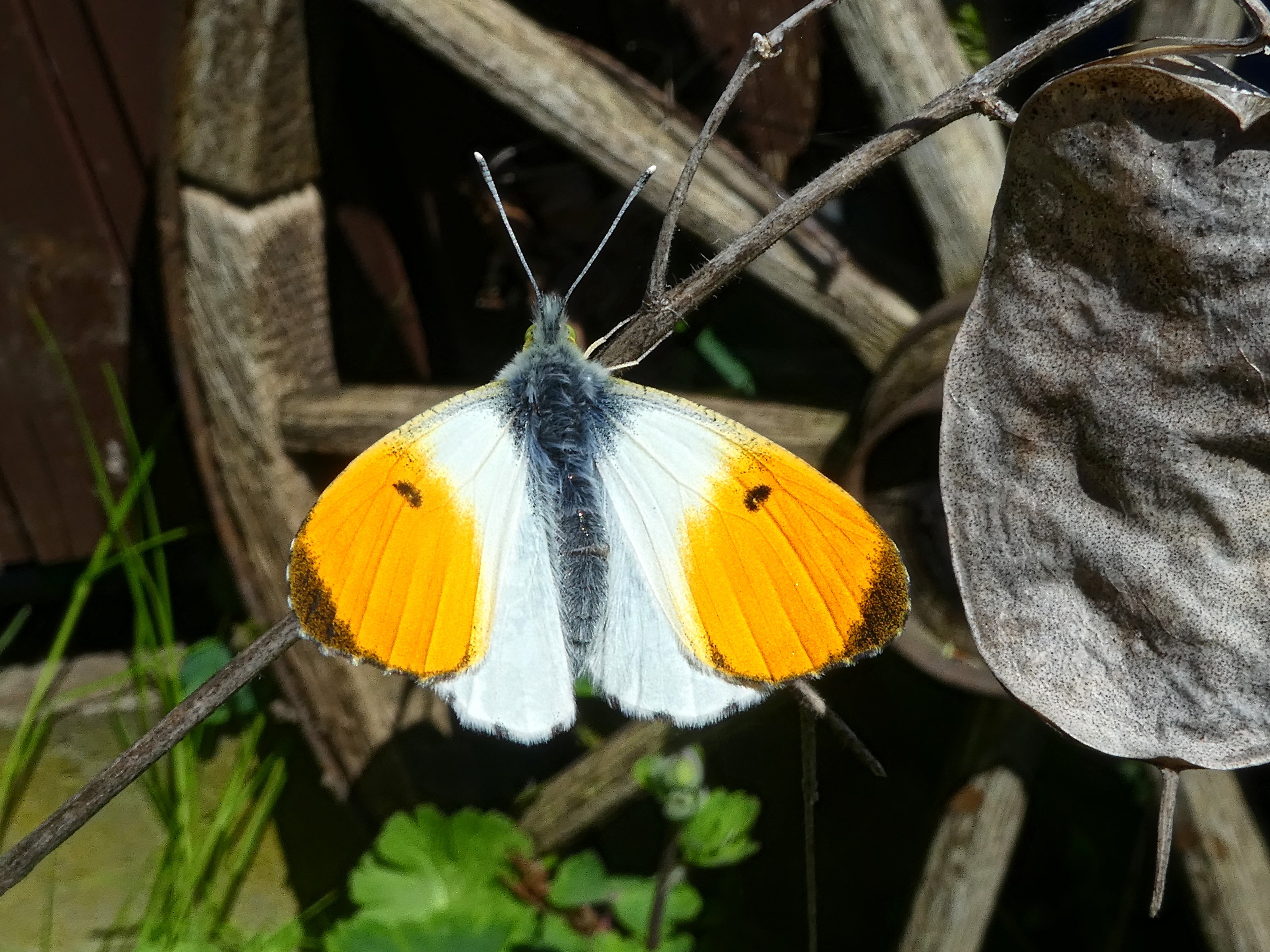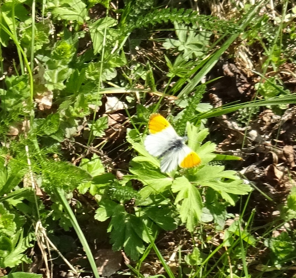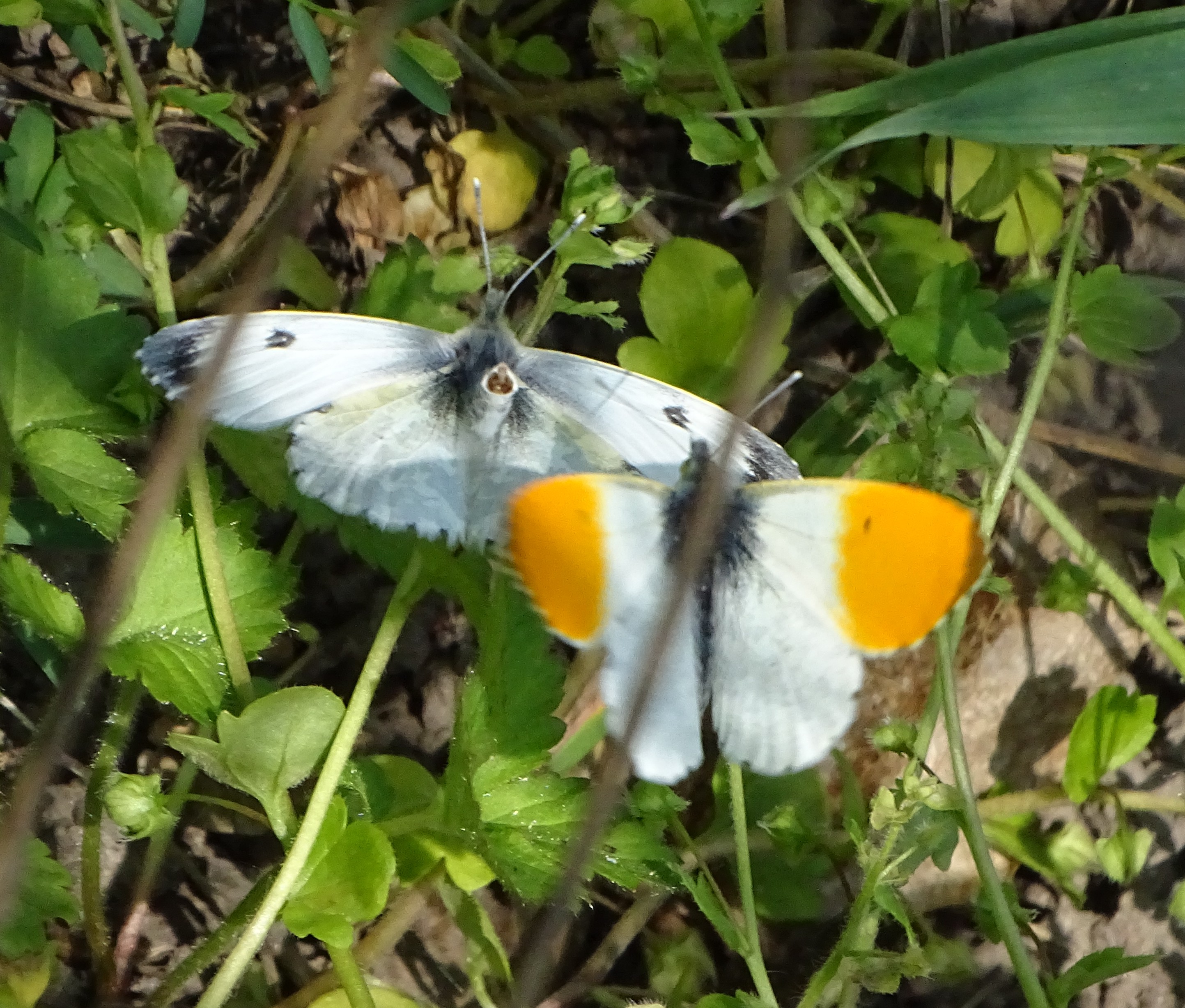 Aurorafalter (Anthocharis cardamines (Linnaeus, 1758)), Männchen, Blütenbesuch an Stellaria holostea, bei Nossen, April 2020 (© Andreas Hurtig)( Bild vergrößern)