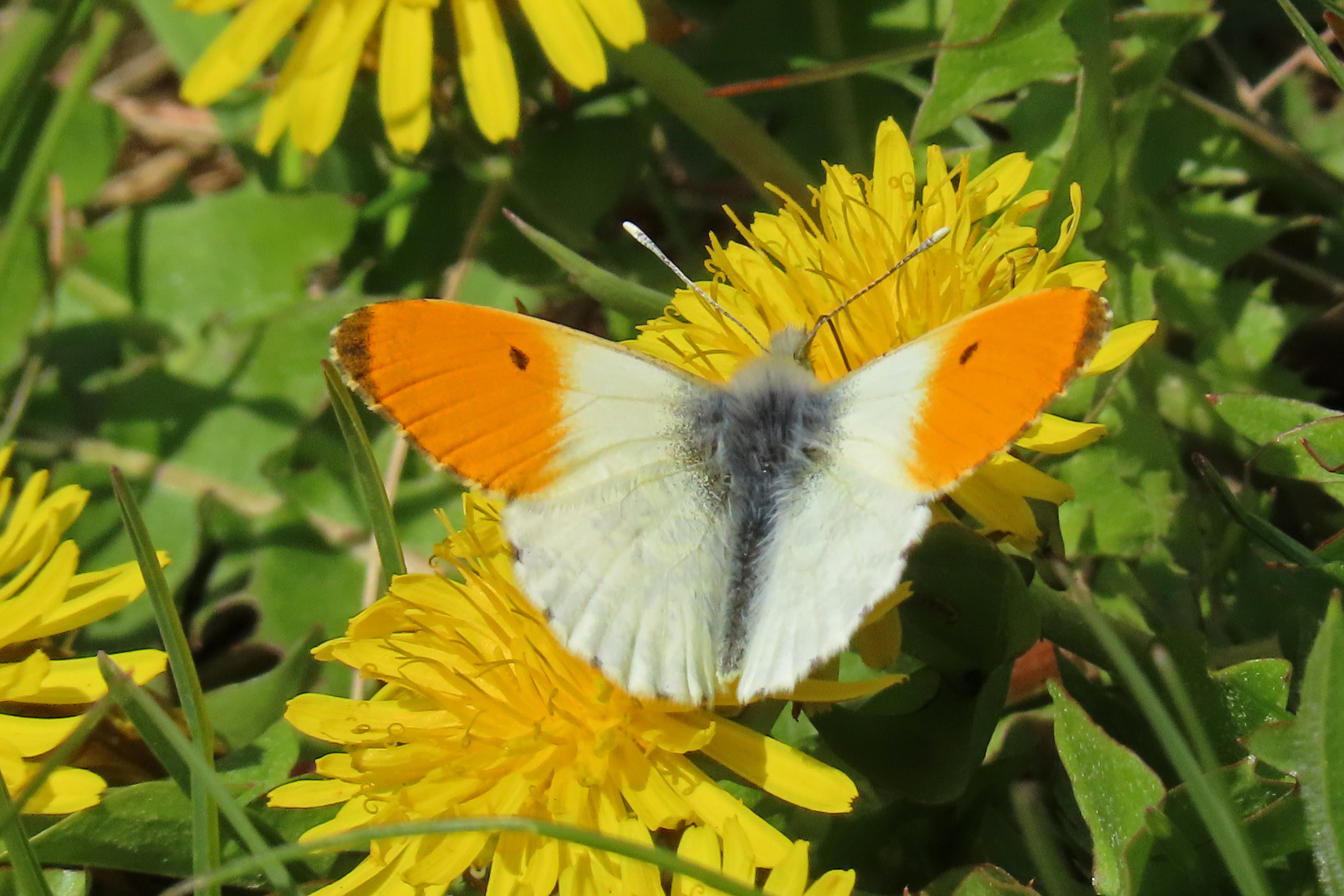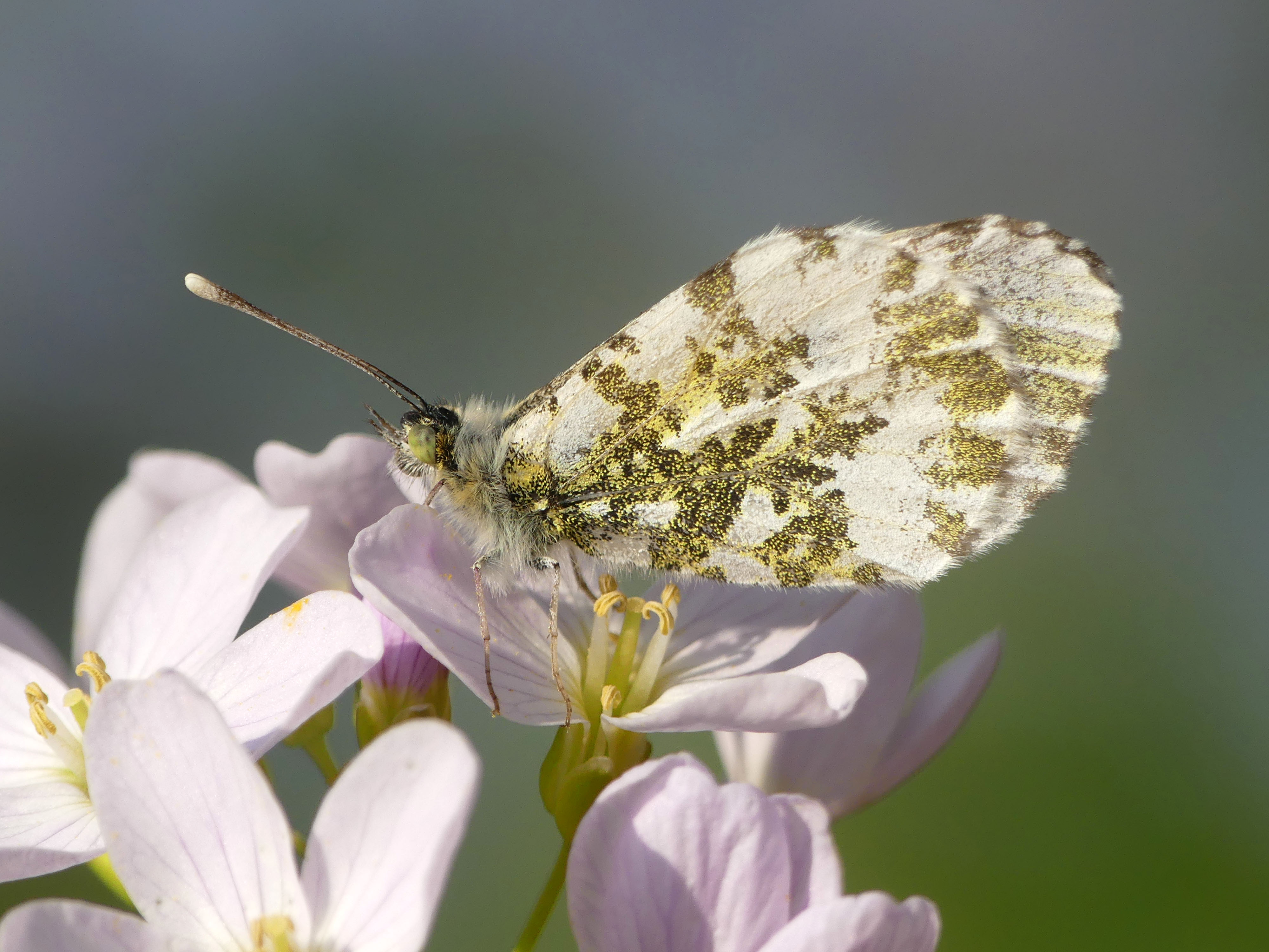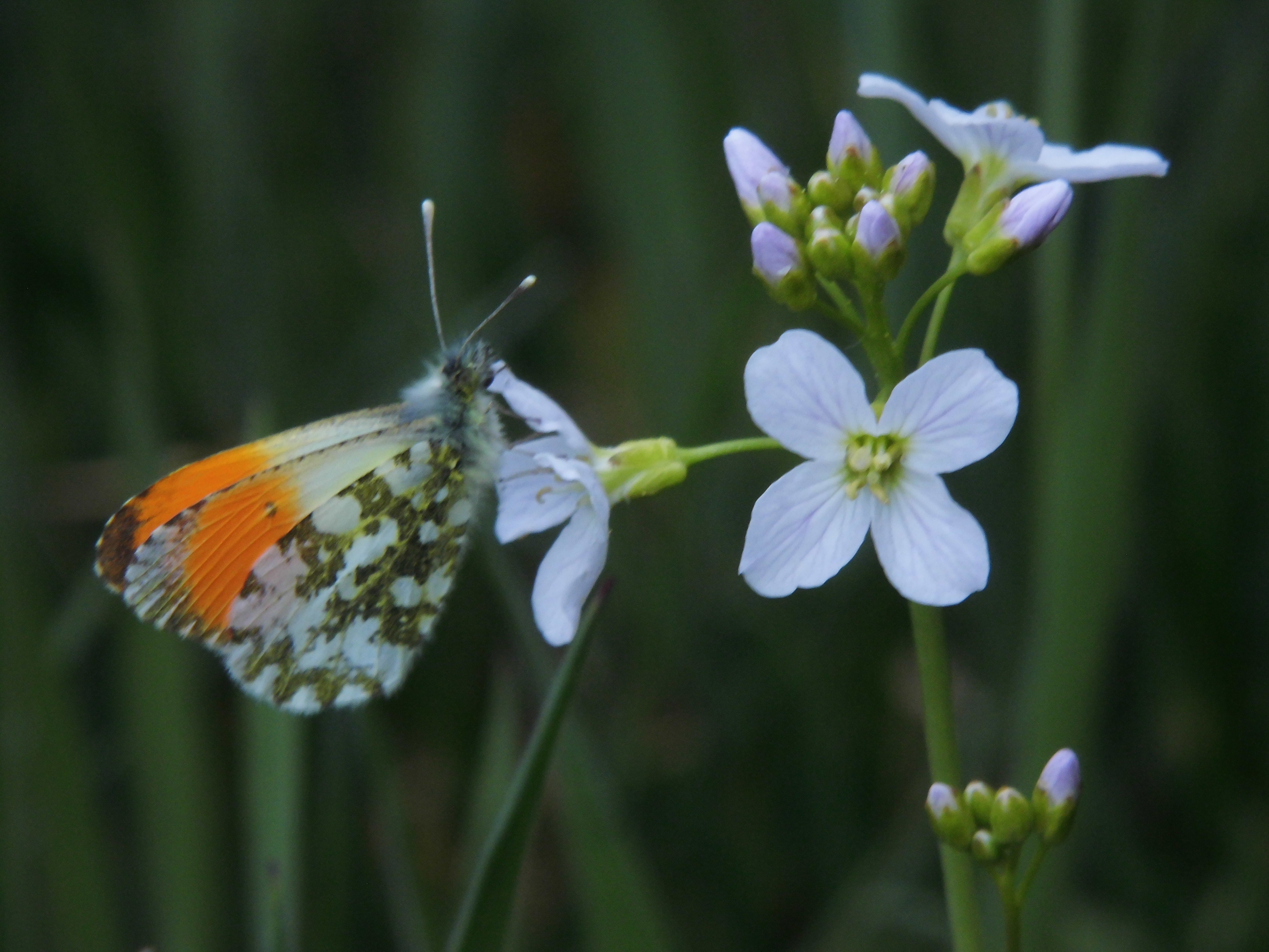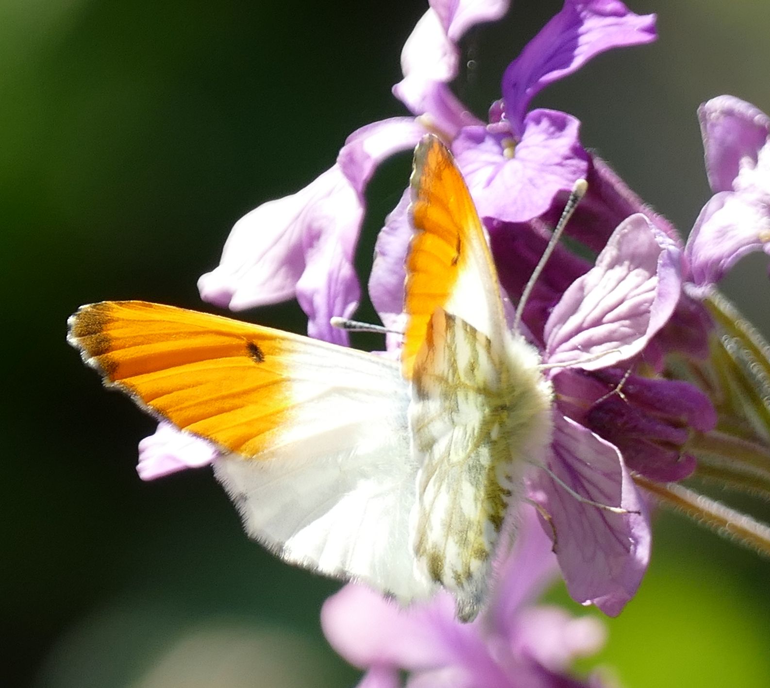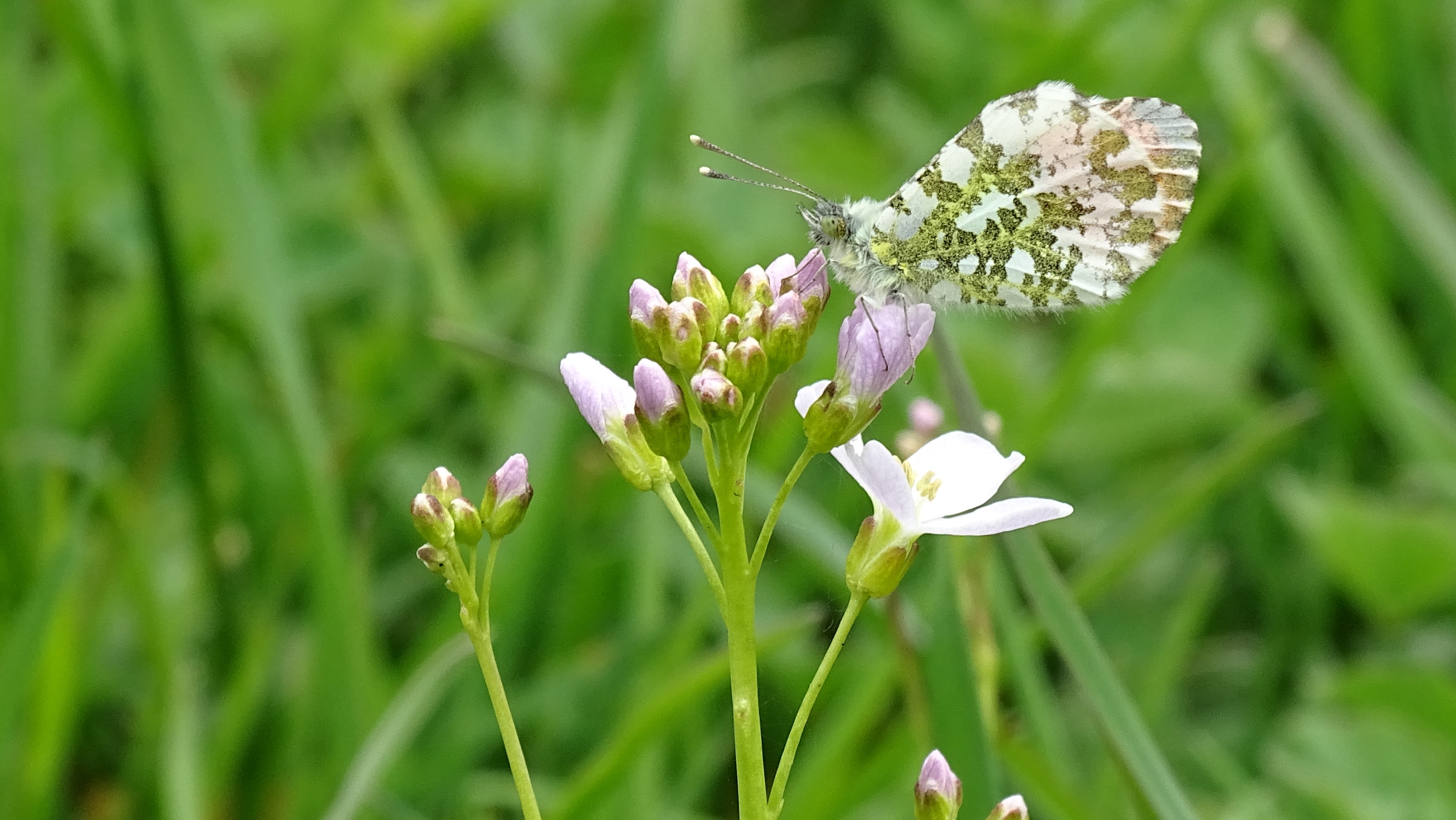 Aurorafalter (Anthocharis cardamines (Linnaeus, 1758)), Männchen, Blütenbesuch an Stellaria holostea, bei Nossen, April 2020 (© Andreas Hurtig)( Bild vergrößern)