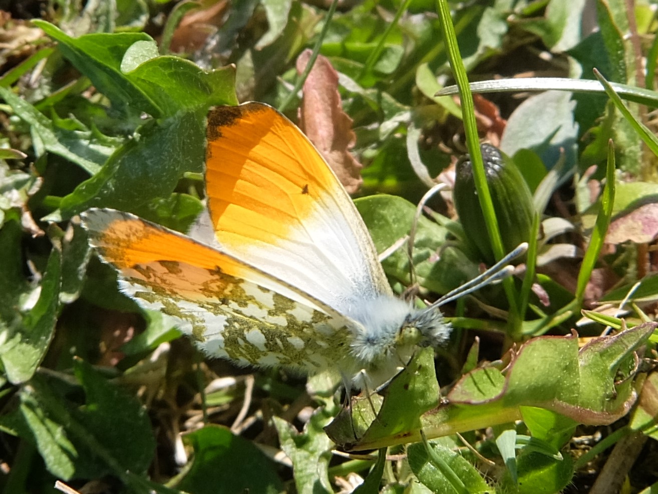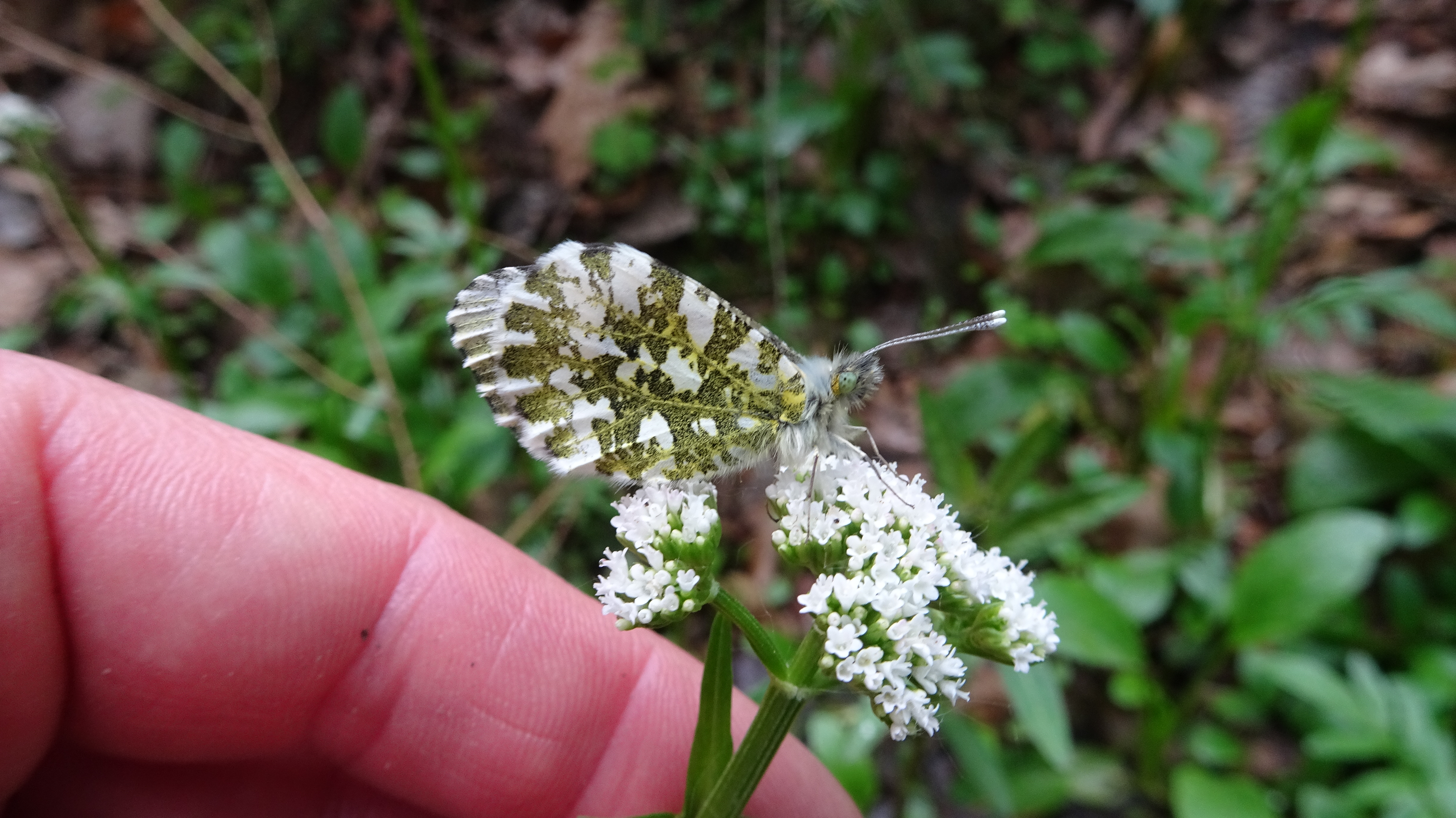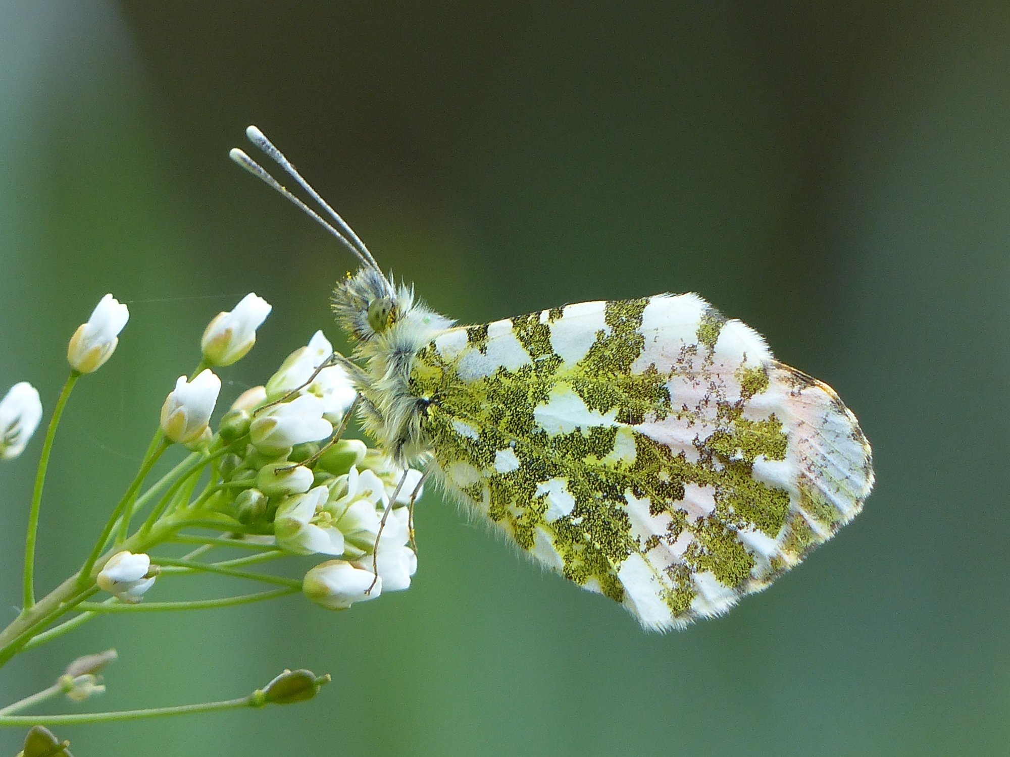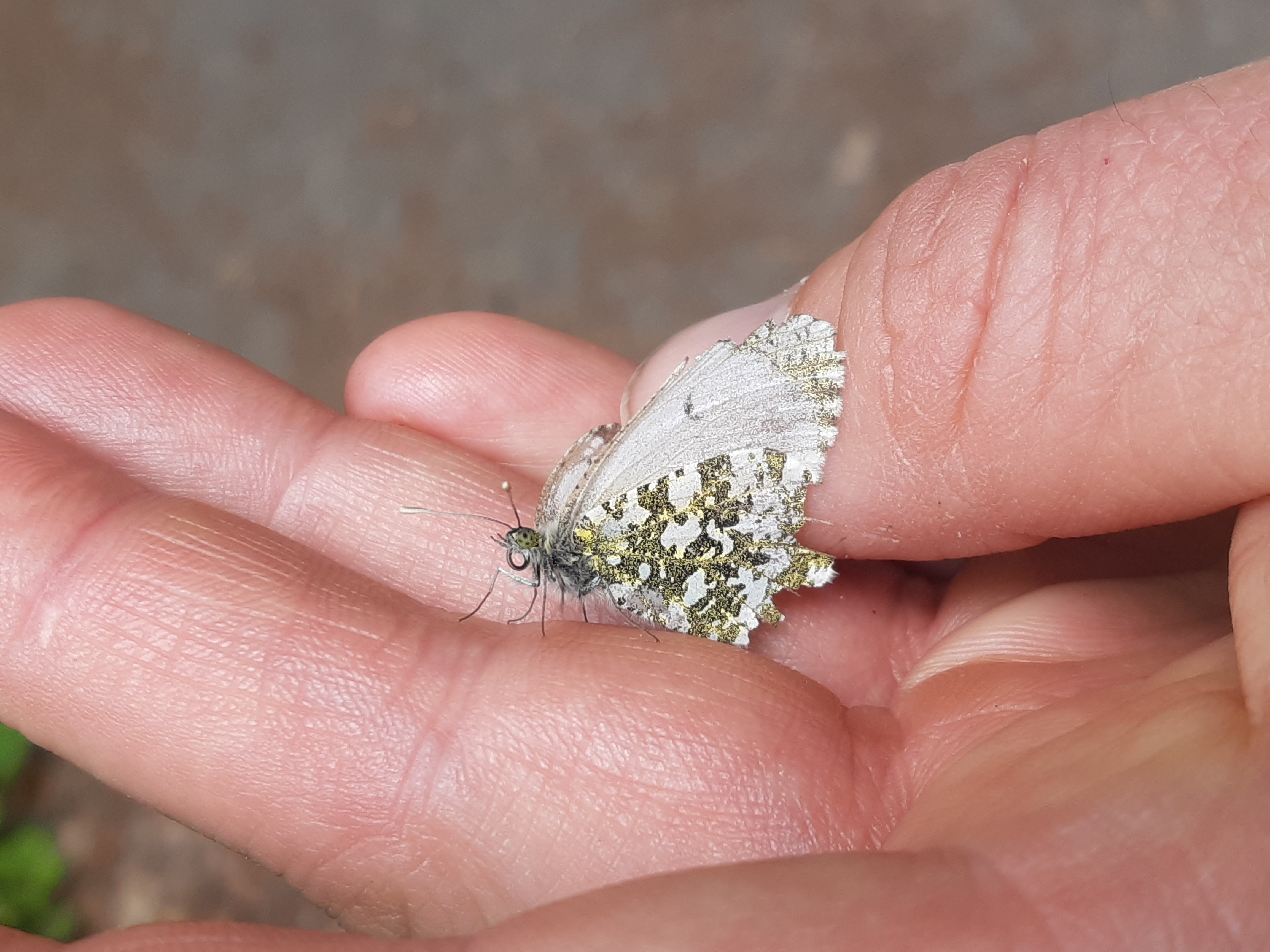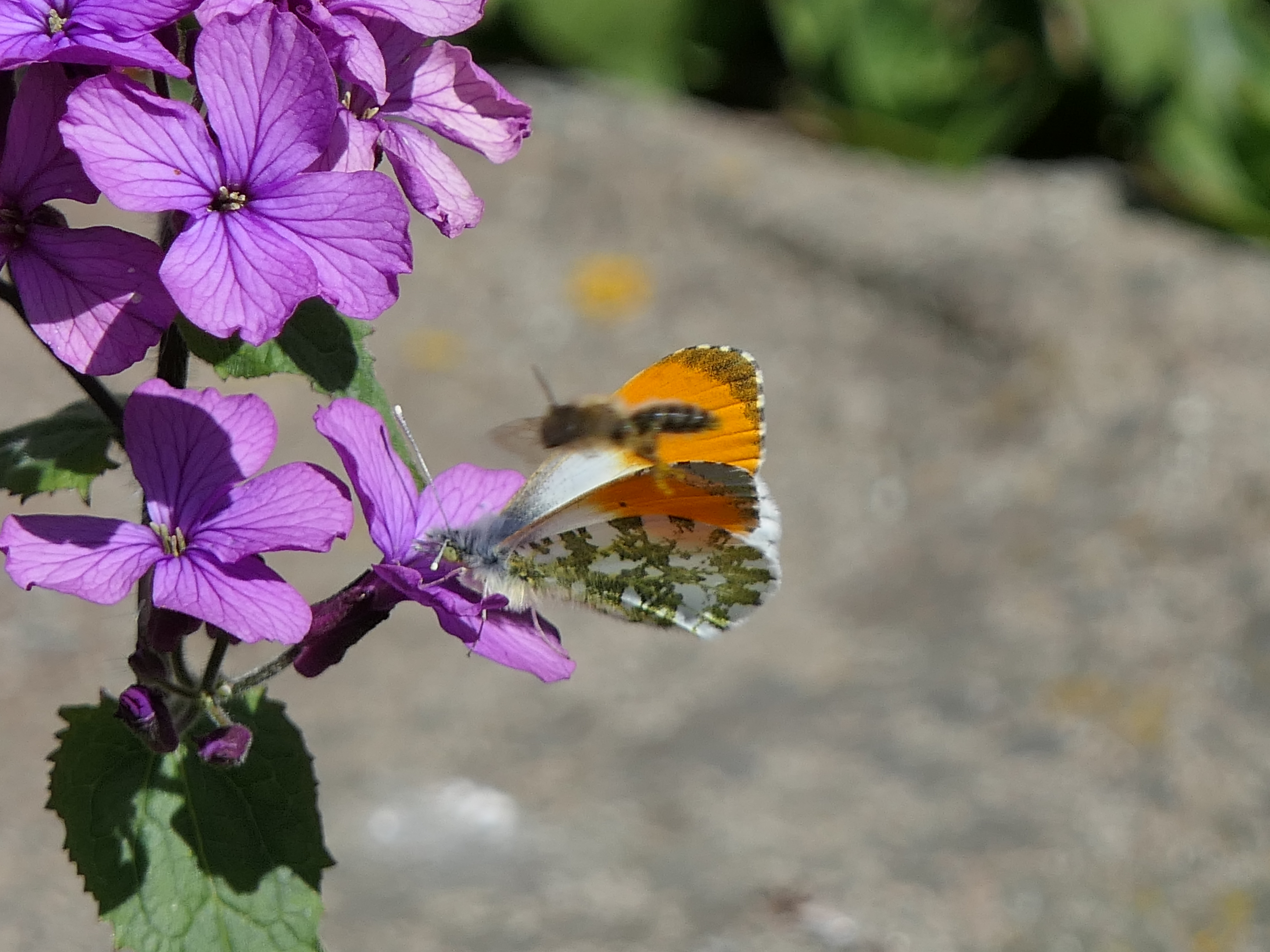 Aurorafalter (Anthocharis cardamines (Linnaeus, 1758)), Männchen, Blütenbesuch an Stellaria holostea, bei Nossen, April 2020 (© Andreas Hurtig)( Bild vergrößern)