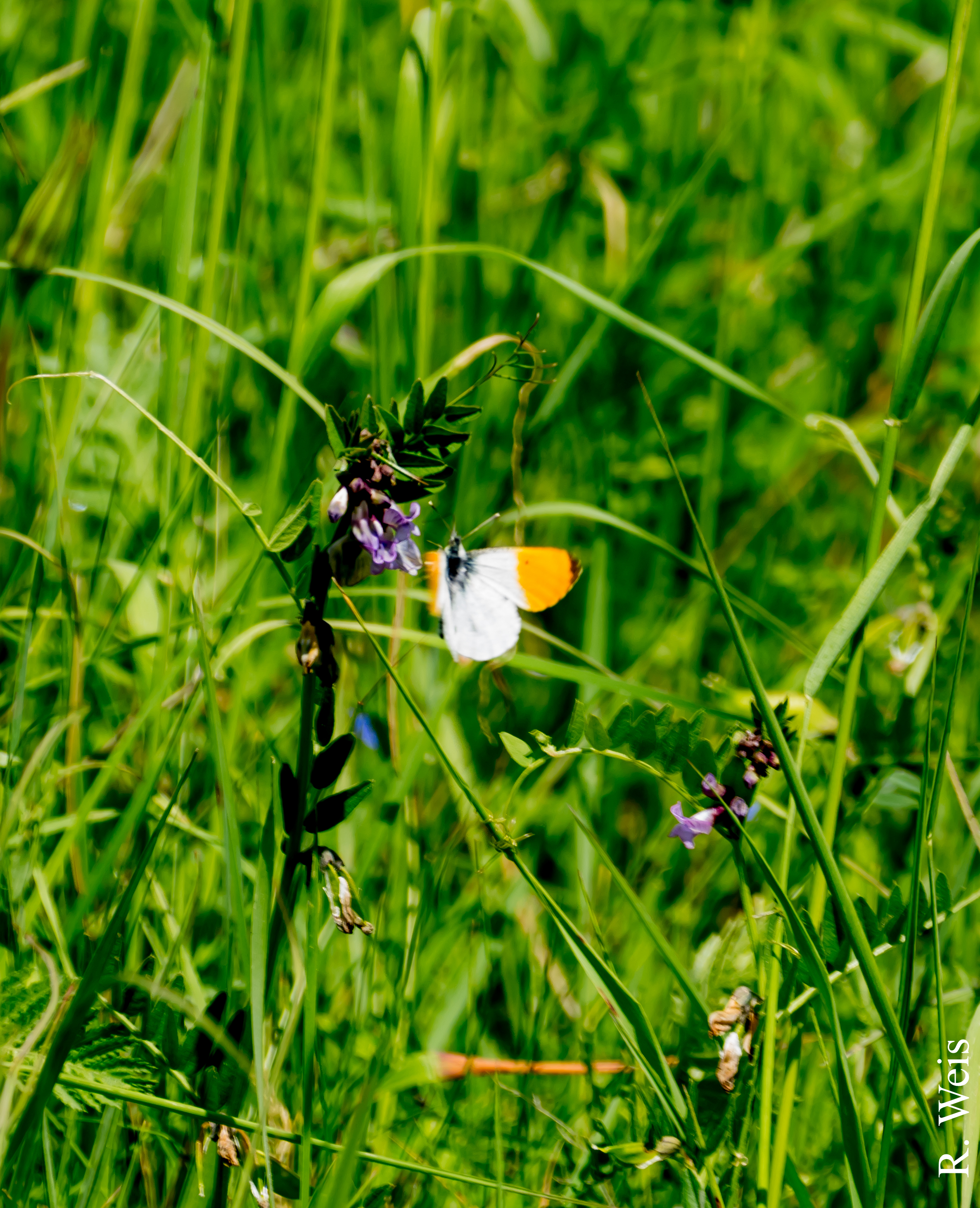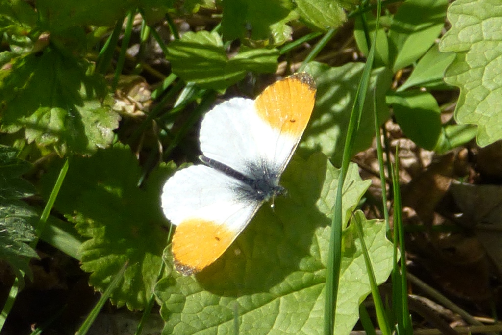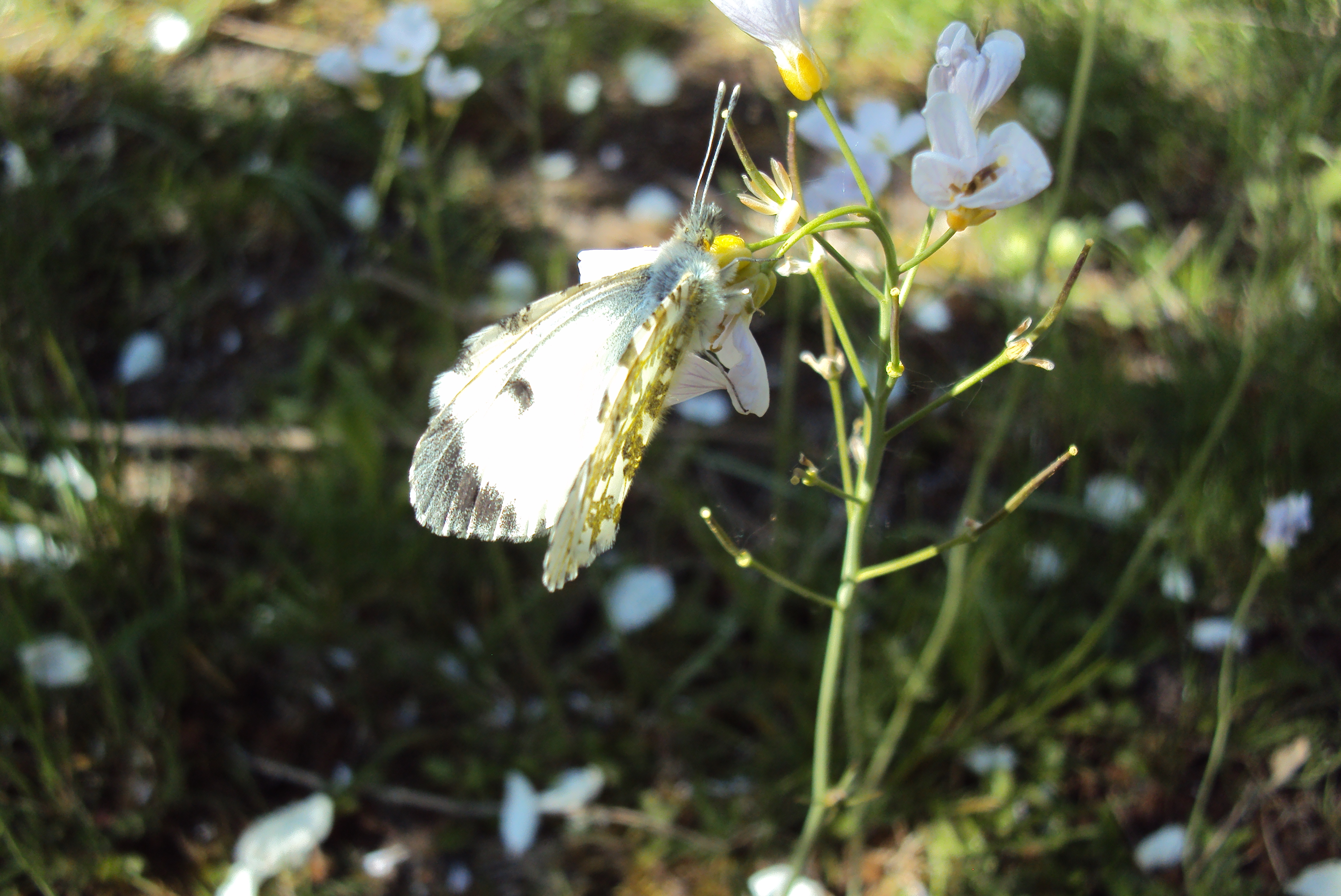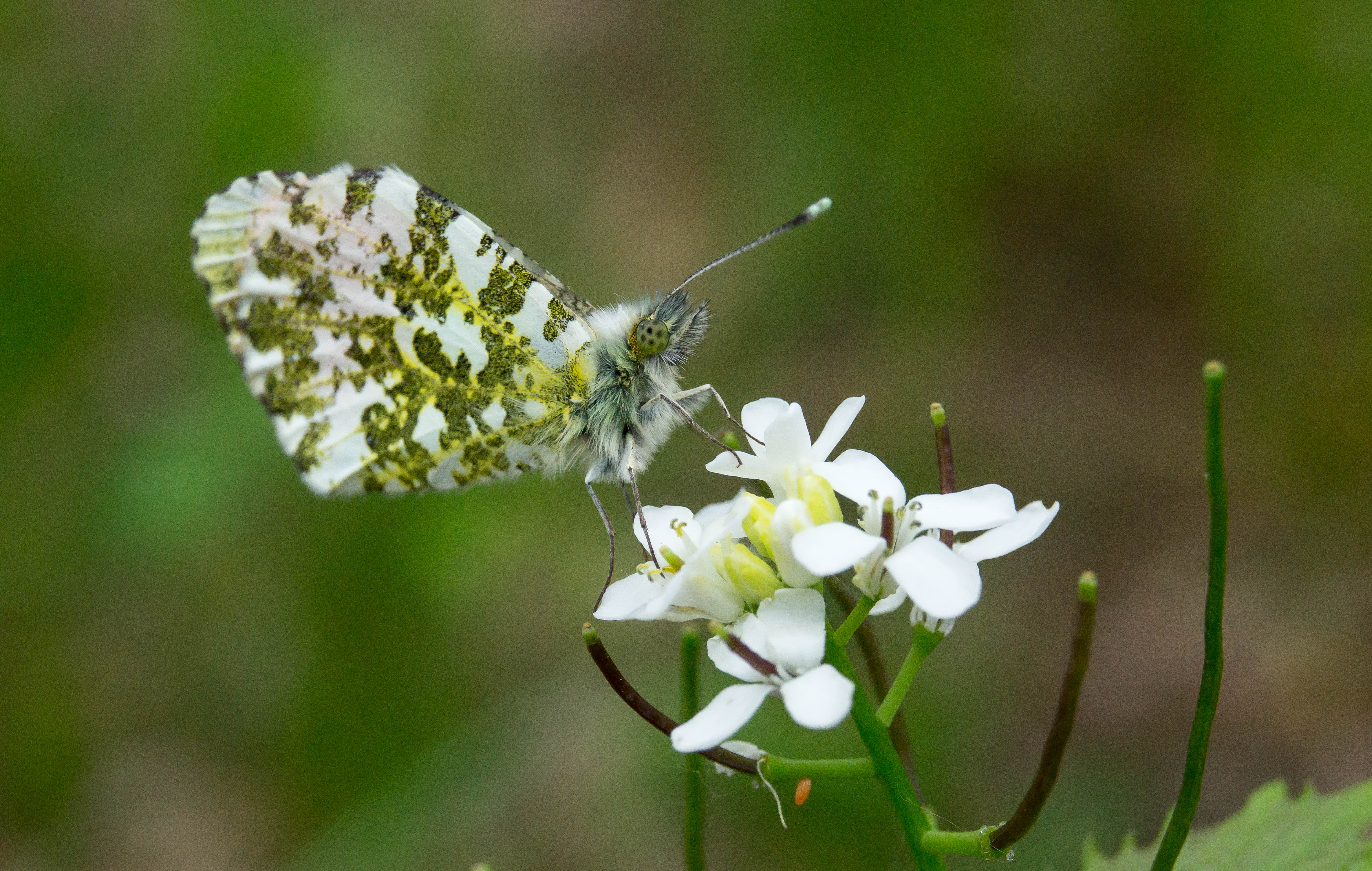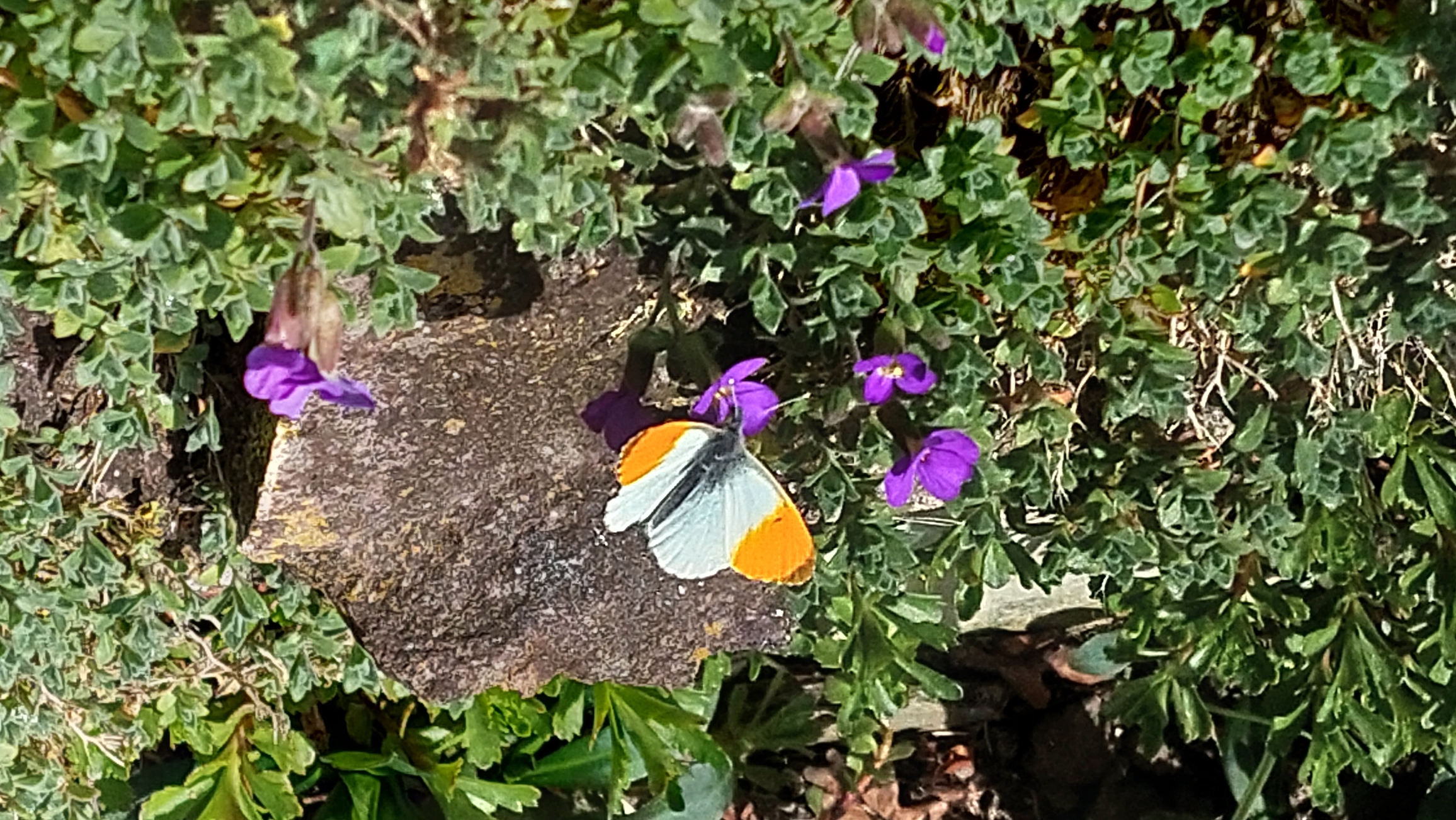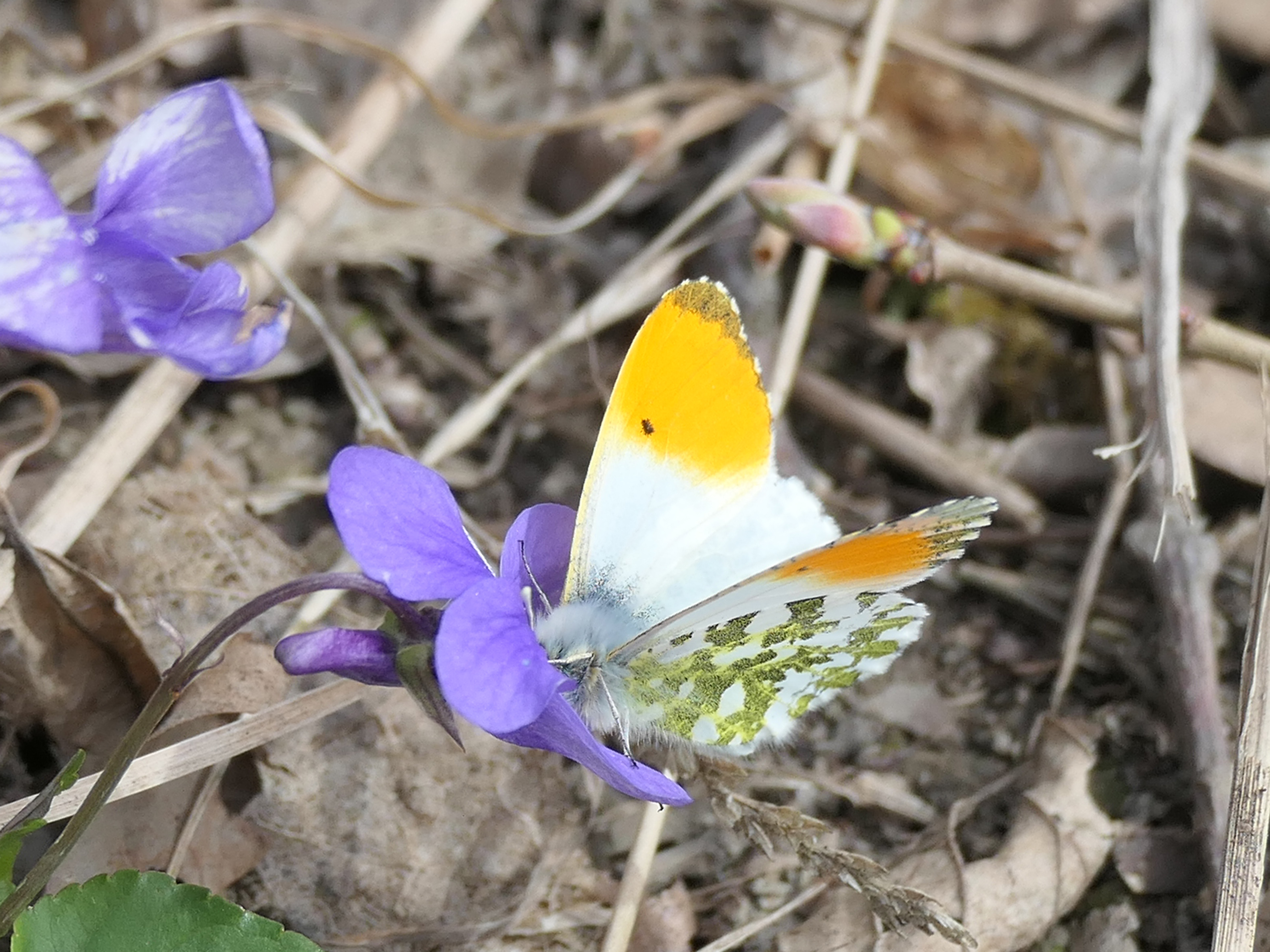 Aurorafalter (Anthocharis cardamines (Linnaeus, 1758)), Männchen, Blütenbesuch an Stellaria holostea, bei Nossen, April 2020 (© Andreas Hurtig)( Bild vergrößern)